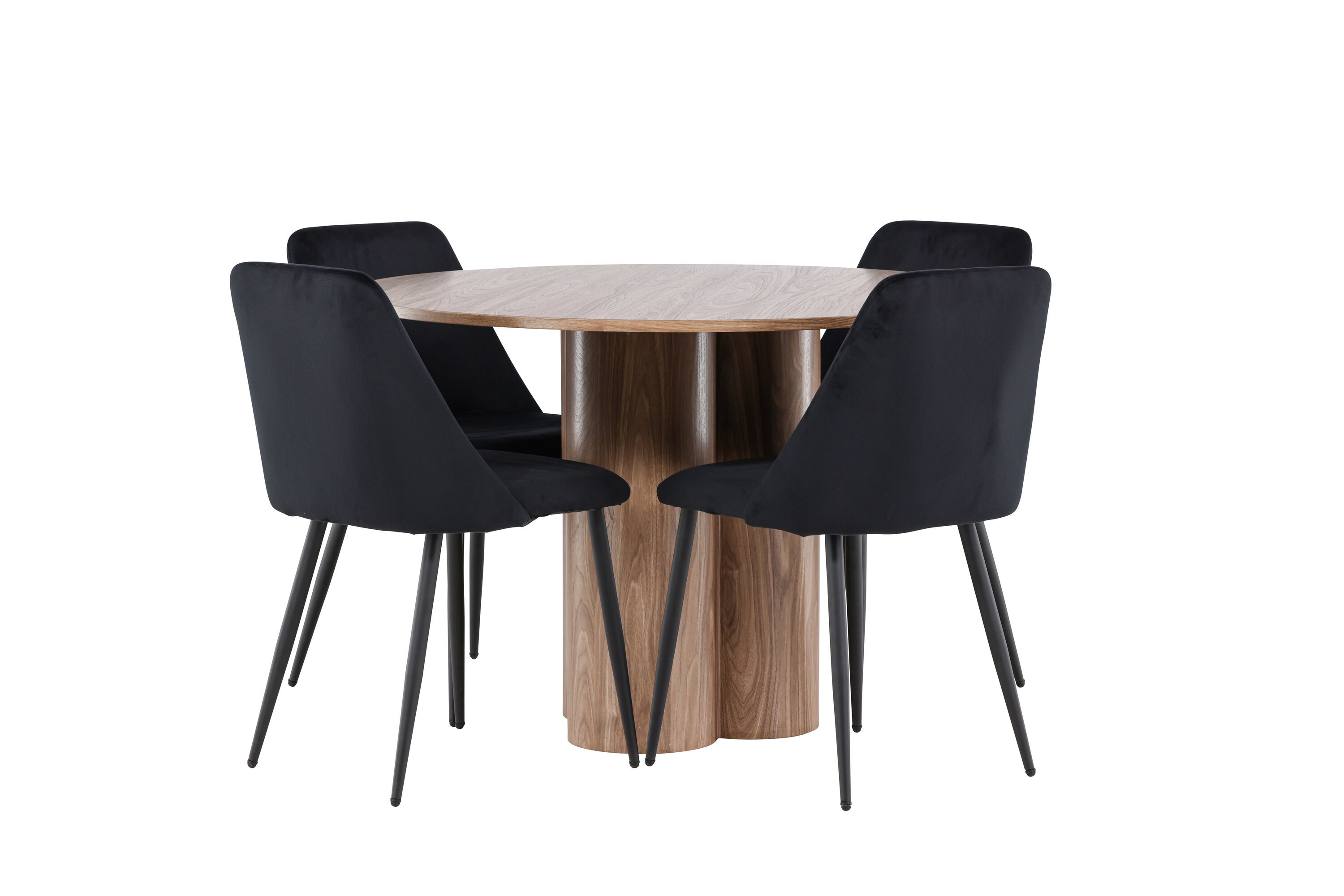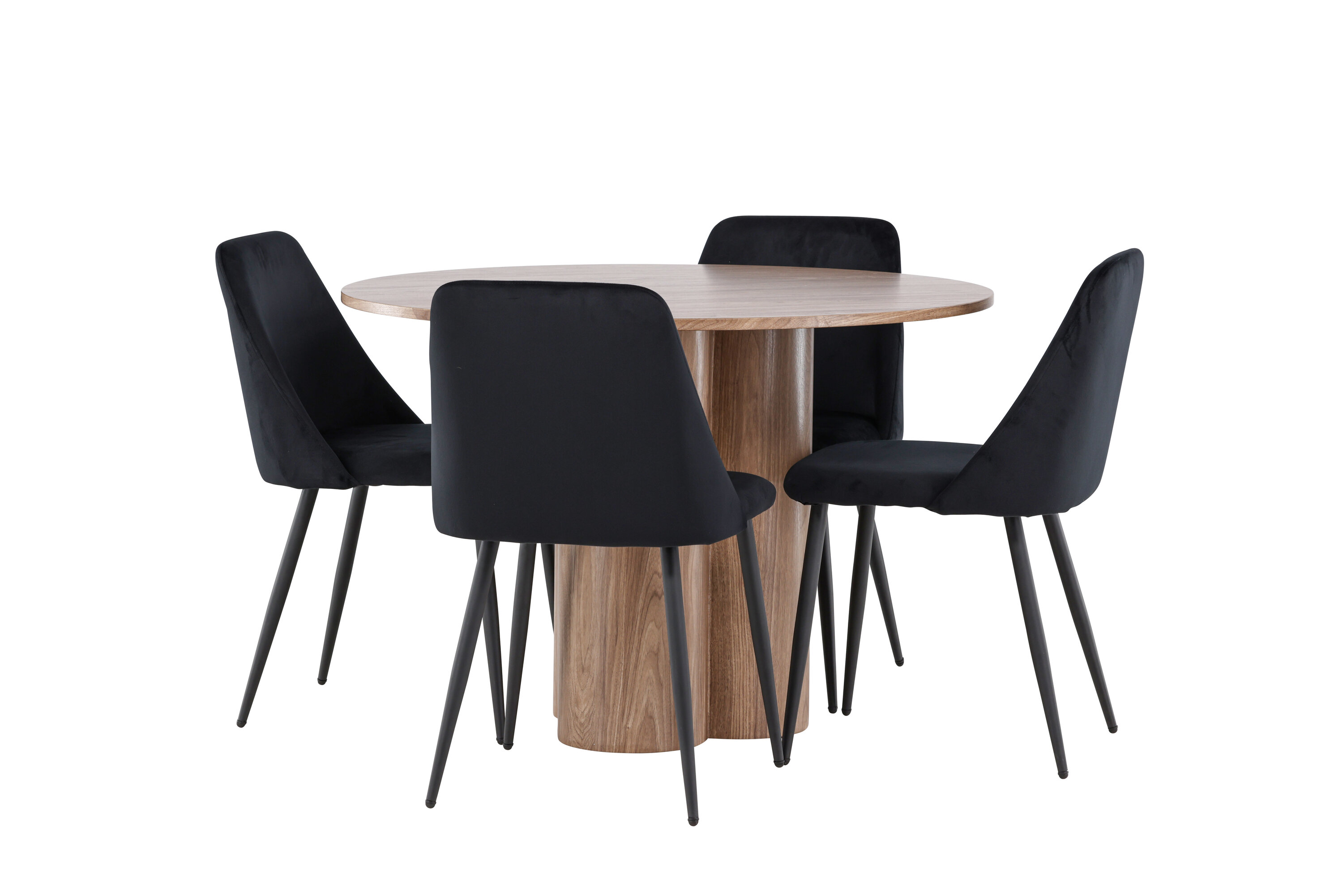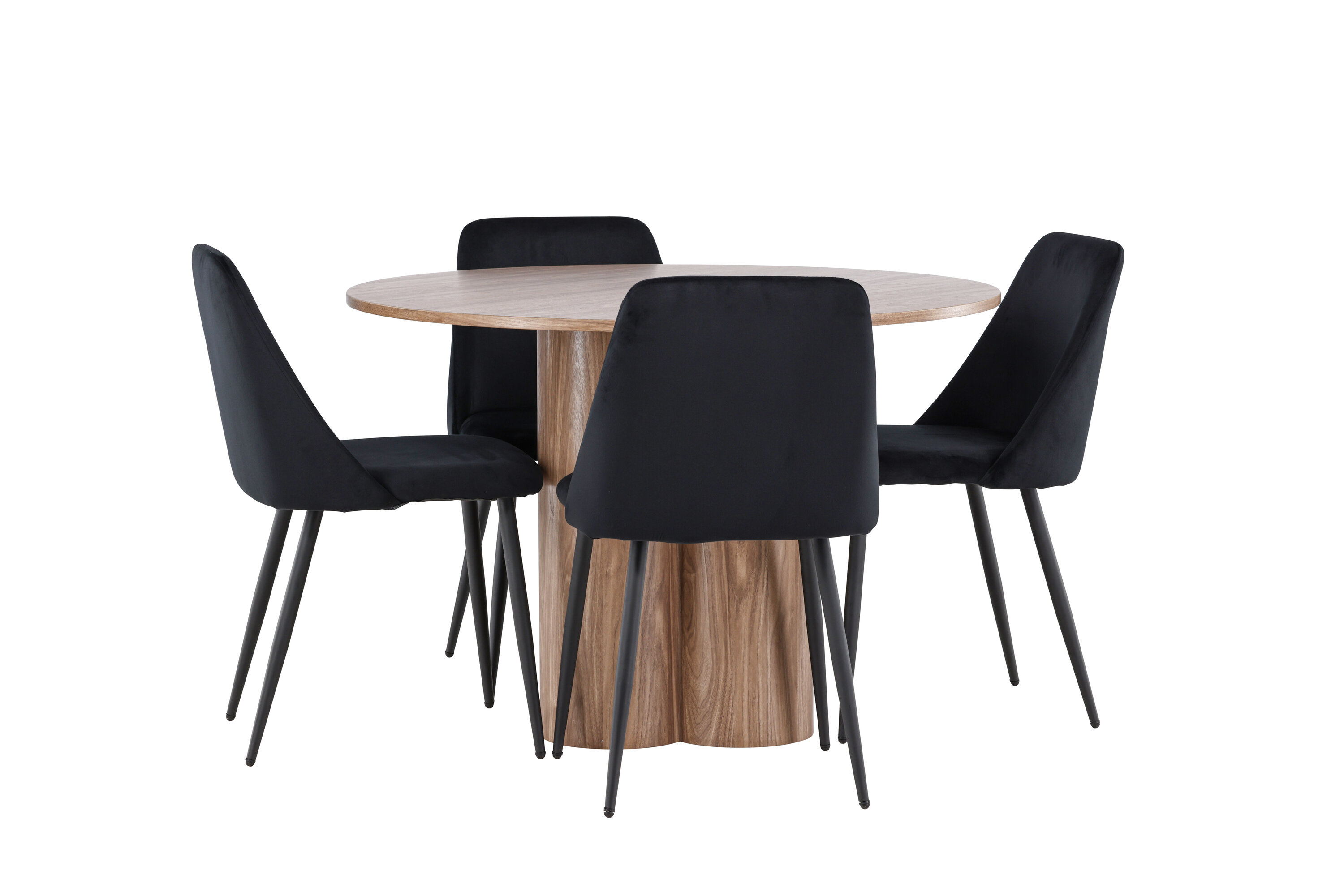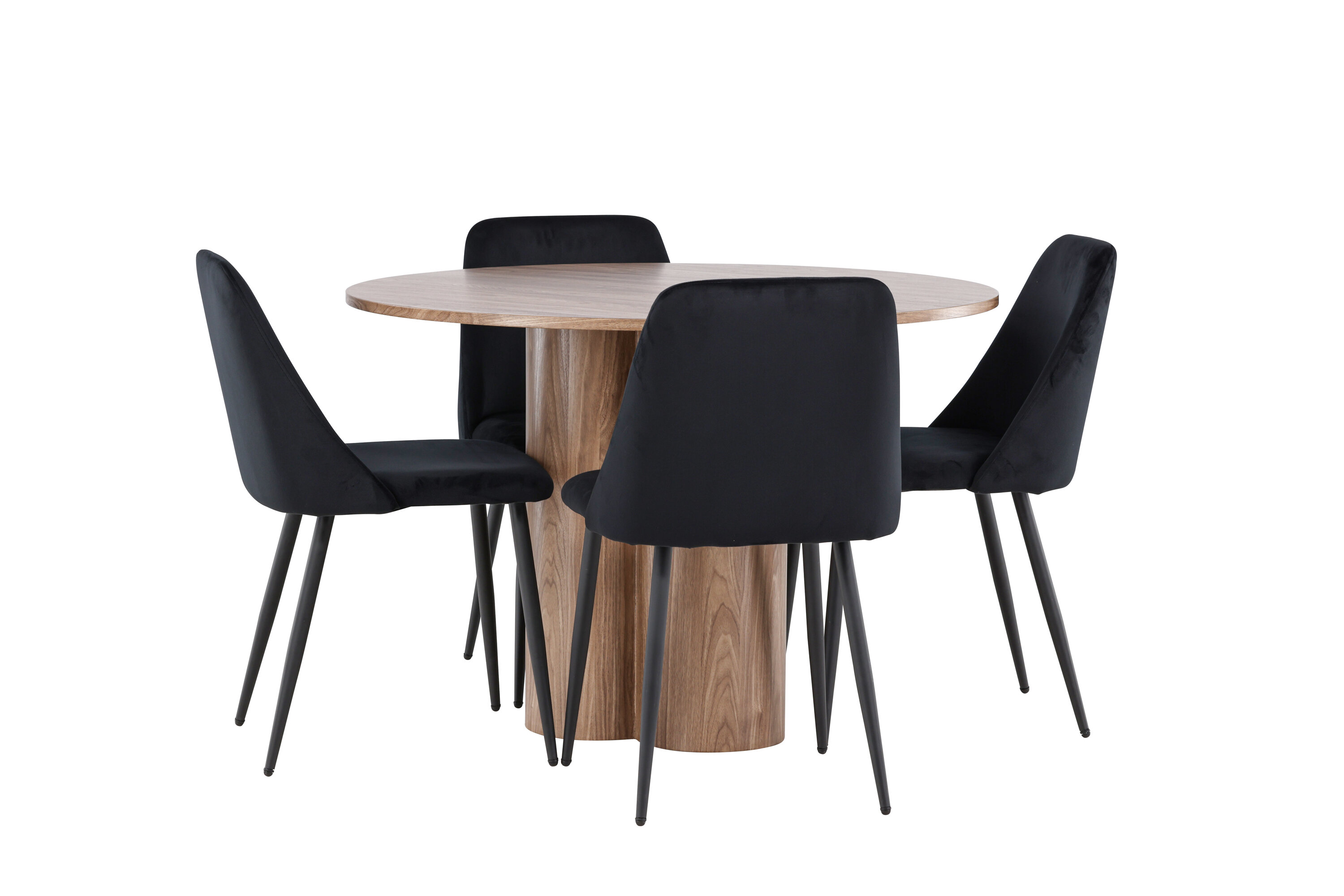 Uuendage oma söögituba keeruka söögikomplektiga, mis sisaldab Olivia lauda ja öötoole. See elegantne moodsa disaini ja luksuslike materjalide kombinatsioon loob ideaalse keskkonna nii igapäevasteks söögikordadeks kui ka pidulikeks sündmusteks. Olivia laud on stiilne ja ajatu lisand teie kodule. Mokavärvi ja MDF-konstruktsiooniga laud jätab sooja ja kutsuva mulje. Lauaplaadi läbimõõt on 110 cm, pakkudes piisavalt ruumi nelja inimese mugavaks istumiseks, olles samas piisavalt kompaktne, et mahutada väiksematesse ruumidesse. Olivia laud seisab tugeval alusel stabiilselt ja seda on lihtne puhastada, muutes selle nii praktiliseks kui ka elegantseks. Öötoolid täiendavad Olivia lauda oma luksusliku disainiga. Need toolid on polsterdatud musta sametiga, pakkudes eksklusiivset ja mugavat istumiskogemust. Pehme samet koos laua mokatooniga loob teie söögituppa harmoonilise ja elegantse atmosfääri. Öötoolid on disainitud nii esteetikat kui ka mugavust silmas pidades, mistõttu on need ideaalsed pikkadeks ja nauditavateks õhtusöökideks. Olivia söögikomplekti ja öötoolidega saate tervikliku söögitoa, mis ühendab funktsionaalsuse elegantse disainiga. Sellest söögikomplektist saab kahtlemata teie kodu keskne punkt, kuhu pere ja sõbrad saavad koguneda veetlevate einete ja meeldiva seltskonna nautimiseks.