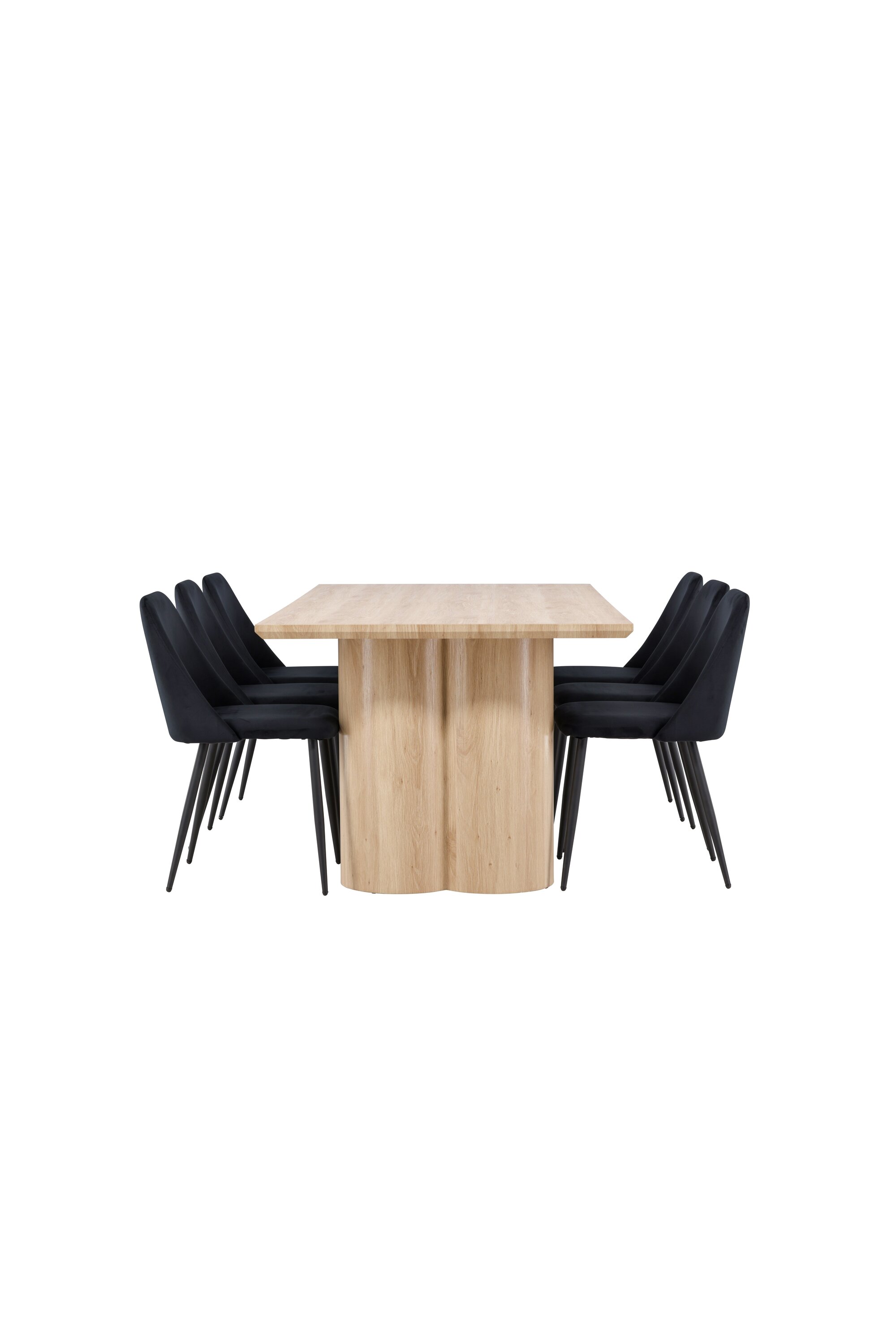 Muutke oma söögituba meie stiilse söögikomplektiga, mis koosneb sarja NIGHT söögitoolidest ja elegantsest Olivia söögilauast. See kombinatsioon pakub nii mugavust kui ka kaasaegset disaini, mis sobib ideaalselt igaks sündmuseks. Söögitool sarjast NIGHT on sama mugav kui stiilne! Toolil on täielikult polsterdatud musta sametist iste ja sobivas mustas toonis toolijalad. Siit saad söögitooli, mis loob tuppa luksusliku sära ning aitab kaasa kutsuvale ja moeteadlikule õhkkonnale. Maitsva toidu kõrvale istudes peaks olema hea tunne! Avasta Olivia söögilaua ilu ja funktsionaalsus. Oma suurte mõõtmetega 210×100 cm on see laud ideaalne valik sõprade ja pere tervitamiseks ühisele einele ja suhtlemisele. Olivia söögilaud on veetlevas valgeks lubjatud värvitoonis, mis loob teie tuppa maalähedase ja pingevaba õhkkonna. Maalähedane toon annab teie söögikordadele ja vestlustele soojuse ja harmoonia tunde. Looge mälestusi ja nautige meeldivaid hetki oma lähedastega Olivia söögilaua taga. Muljetavaldav suurus ja pingevaba värv aitavad luua teie kodus kutsuva ja külalislahke õhkkonna. Laske Olivia söögilaual luua teie seltskondlikke koosviibimisi ja mälestusi, mis kestavad kogu elu. Andke oma kodule harmoonia ja kogukonna tunne selle fantastilise ja funktsionaalse lauaga.