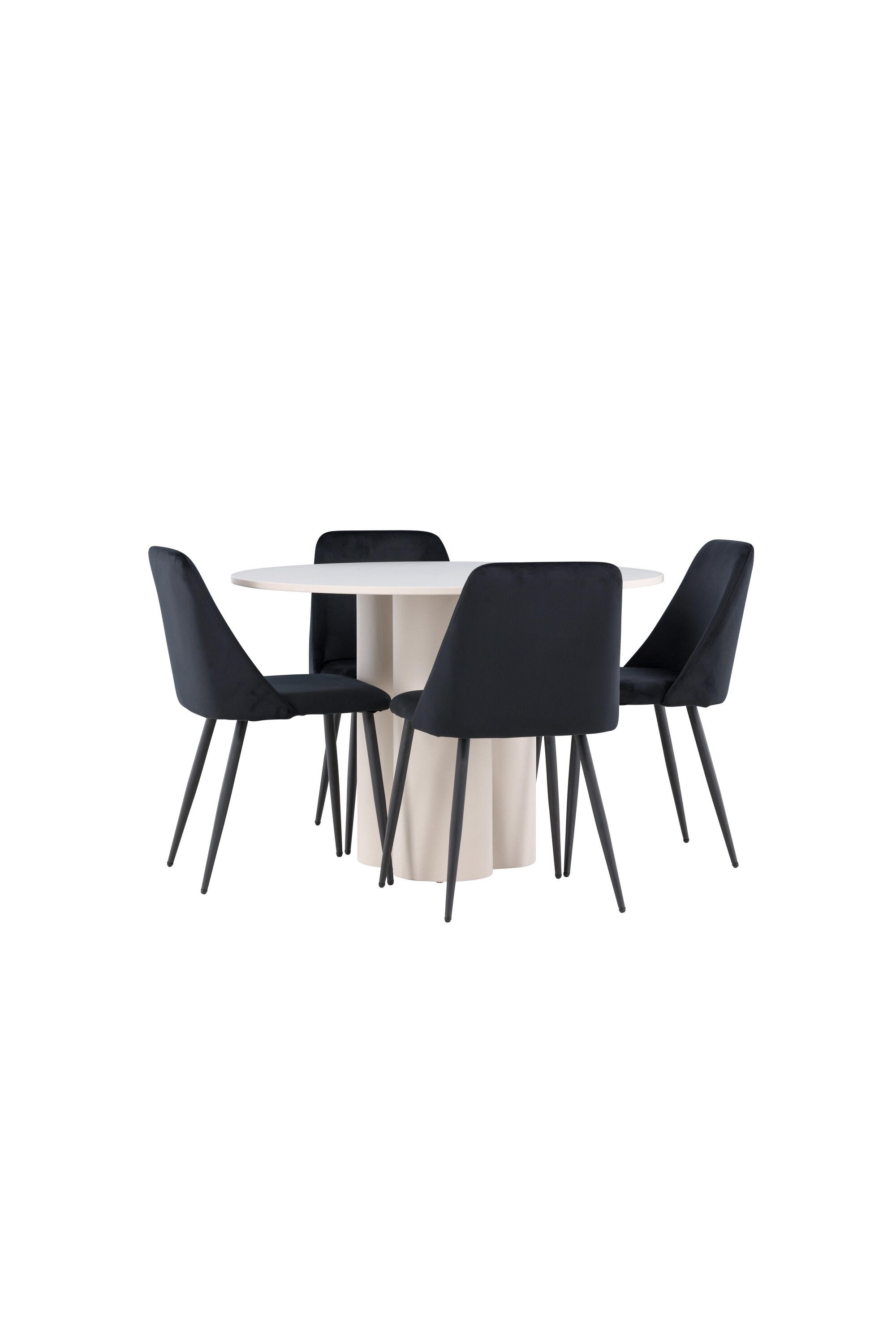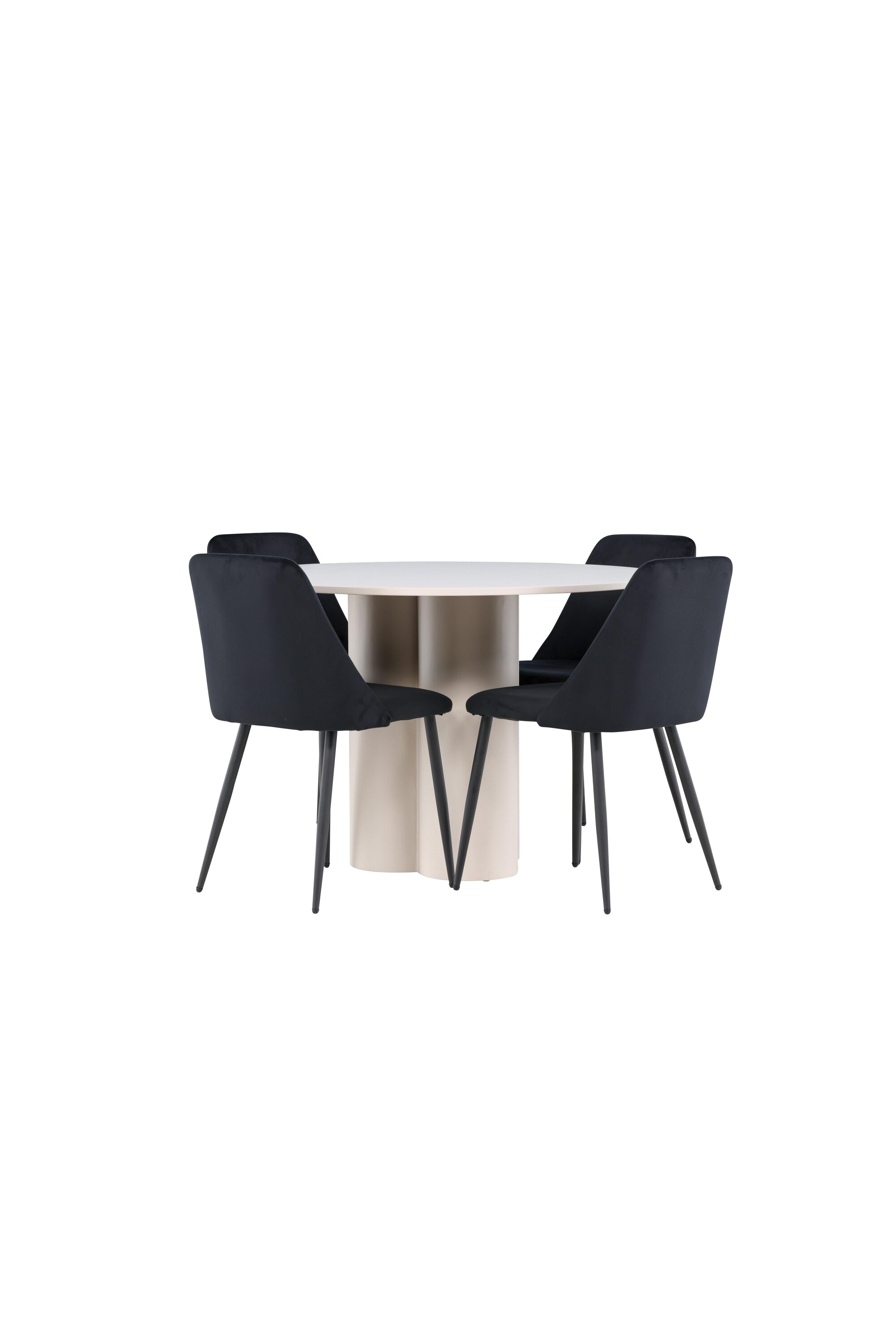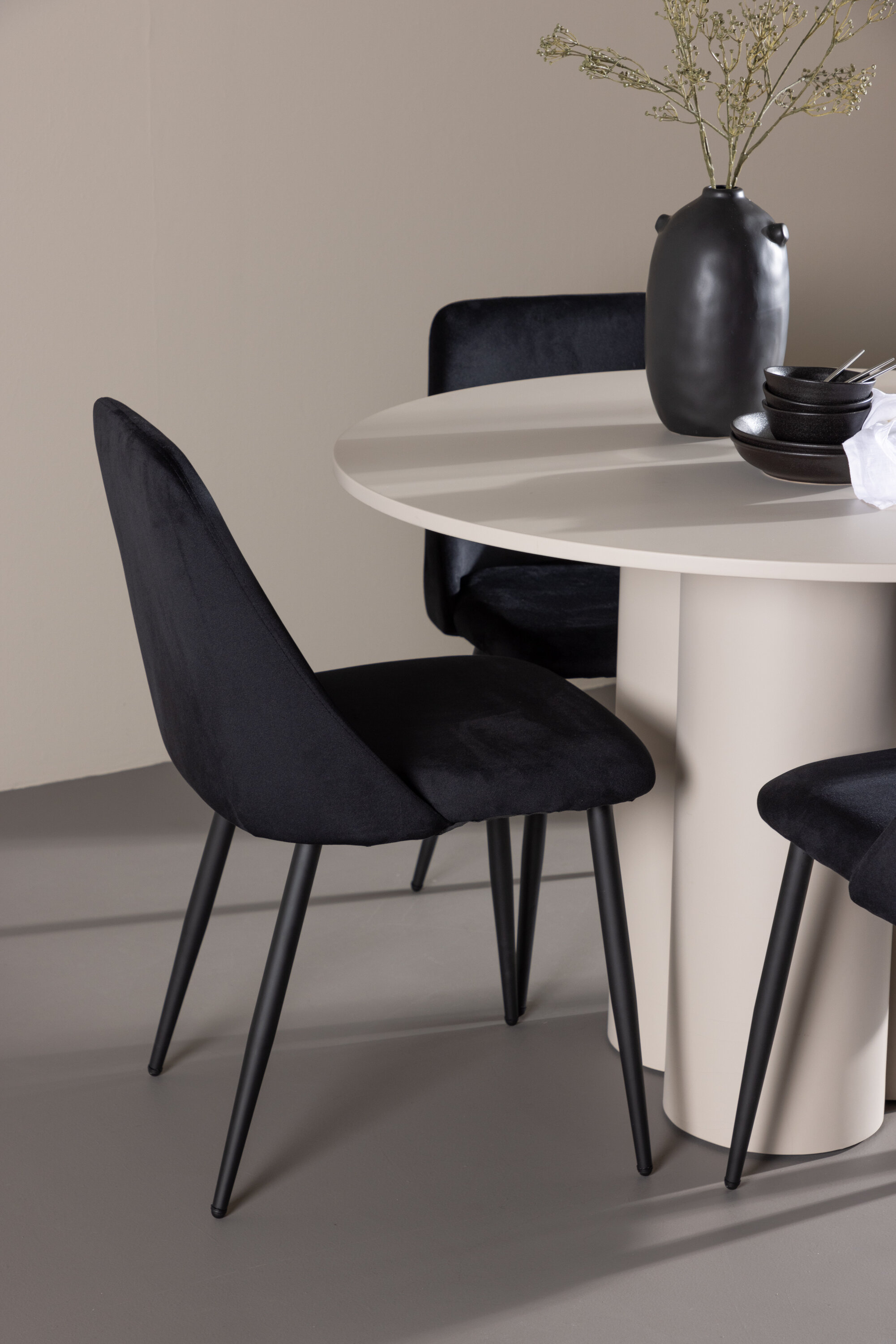 Looge elegantne ja kutsuv söögituba meie stiilse söögigrupiga, mis ühendab Olivia laua luksuslike öötoolidega. See söögituba, mis sobib ideaalselt nii igapäevasteks õhtusöökideks kui ka pidulikeks sündmusteks, loob teie söögitoale kaasaegse ja peene atmosfääri. MDF-st valmistatud Olivia laual on helebeež värv, mis lisab teie söögitoale sooja ja kutsuva tunde. 110 cm läbimõõduga laud pakub rohkelt ruumi söögiks ja vestlusteks, ümar kuju loob aga tasakaalustatud ja sotsiaalse keskkonna. Laua vastupidav konstruktsioon tagab pikaajalise kasutuse ja stabiilsuse. Neli Night tooli täiendavad lauda suurepäraselt oma elegantsete musta sametiga kaetud istmete ja stiilsete musta terasest jalgadega. Need toolid pakuvad nii mugavust kui ka stiili, muutes need ideaalseks pikaks ja nauditavaks õhtusöögiks pere ja sõpradega. Nende kaasaegne disain koos kõrgete seljatugede ja pehmete istmetega annab teie söögitoale rafineeritud ja kaasaegse ilme. See söögituba on ideaalne kombinatsioon esteetikast ja funktsionaalsusest, mistõttu on see suurepärane valik neile, kes otsivad elegantset ja mugavat söögituba. Täiustage oma söögituba Olivia laua ja öötoolide kombinatsiooniga ning looge koht, kus jagatakse mälestusi ja rõõmu.