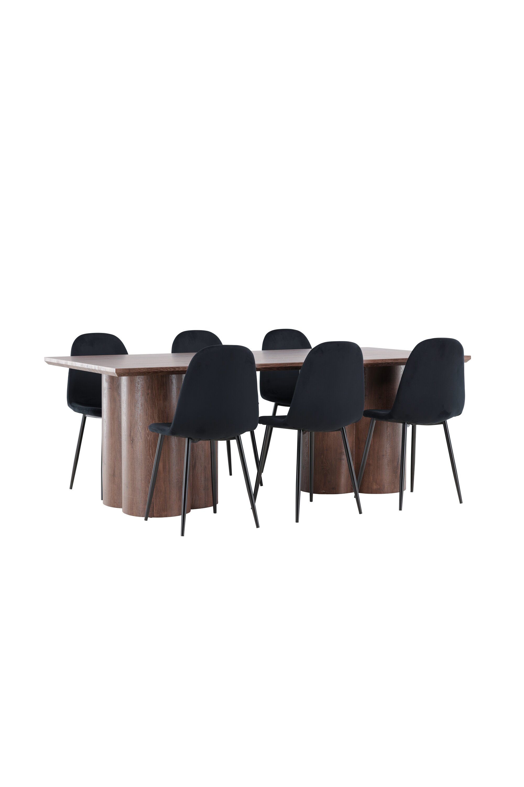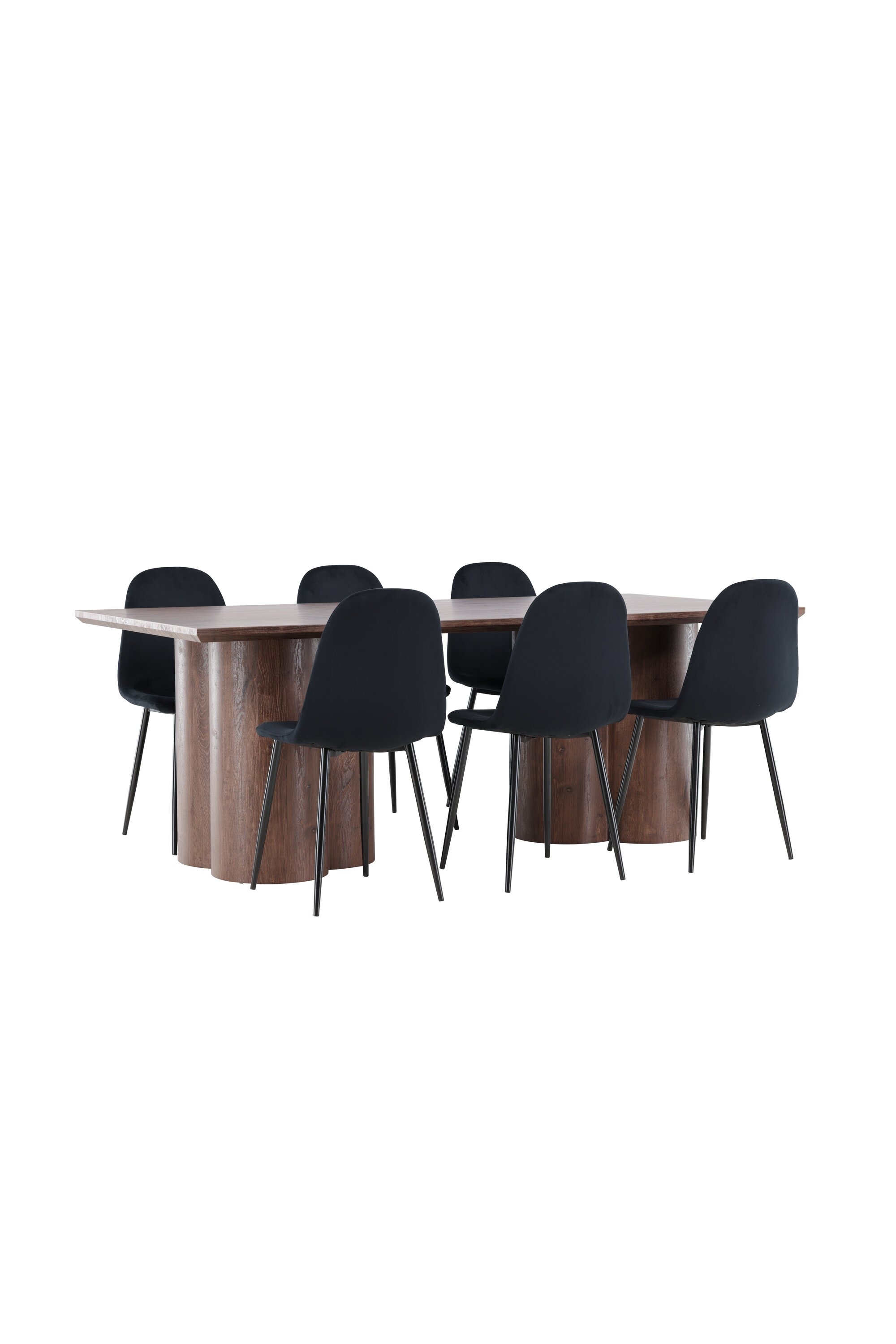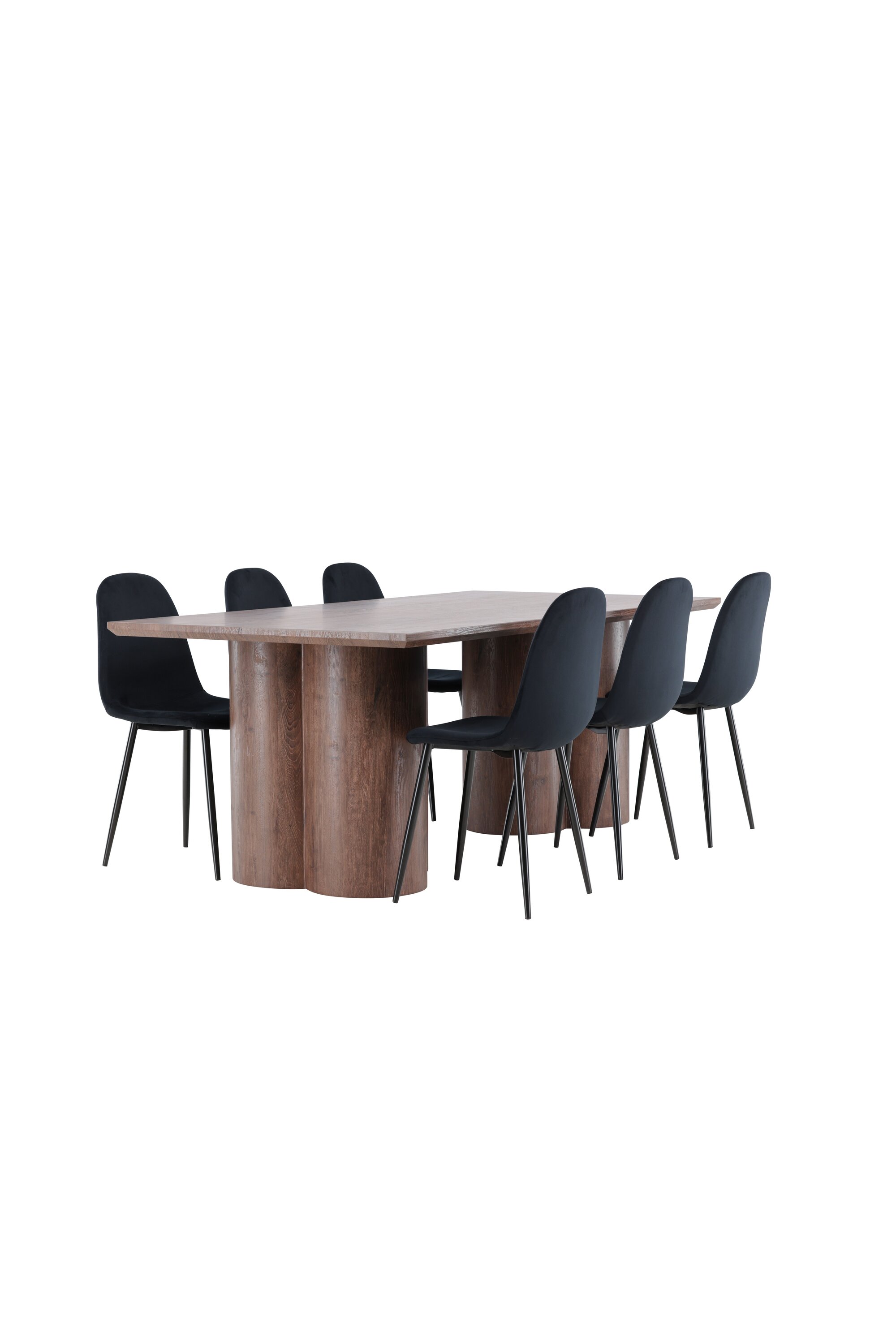 Avasta Polari söögigrupp – ideaalne kombinatsioon stiilist ja mugavusest teie koju. Polari söögitoolil on ühtlane must värv ja kaasaegne disain, mis muudab selle nii mugavaks kui ka pilkupüüdvaks. Tool on täielikult kaetud musta sametkangaga ja pehme polstriga ning jalad on mustast pulbervärvitud metallist. Ümardatud selja ja istmega pakub see mugavat istumiskogemust, tegemata järeleandmisi disainis. Täieliku söögikomplekti saamiseks täiendage söögitoole Olivia söögilauaga. Olivia söögilaud on harmooniline segu stiilist ja funktsionaalsusest. Suurte mõõtmetega 100×210 cm laud pakub palju ruumi lähedaste kogumiseks õhtusöökideks ja seltskondlikeks sündmusteks. Seemisnahavärvi pinnaga MDF-materjalist valmistatud Olivia loob teie koju sooja ja kutsuva atmosfääri. Selle neutraalne disain sulandub hästi erinevate interjööristiilidega ning loob rahuliku ja külalislahke tunde. Polari ja Olivia söögigrupp on midagi enamat kui lihtsalt mööbel – need on kohad, kus sõprade ja perega mälestusi tehakse. Olgu see söögigrupp teie koosviibimiste sõlmpunkt ja looge koos sooje ja meeldejäävaid hetki.