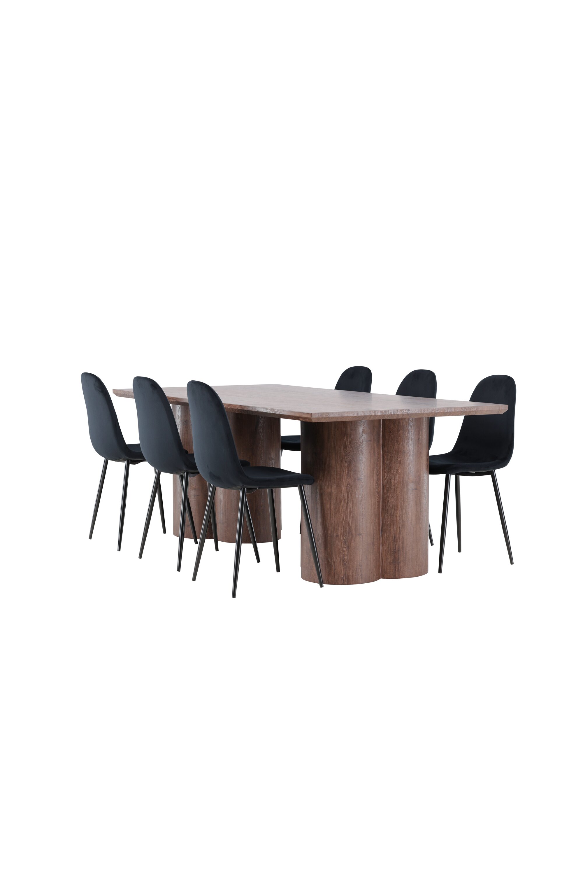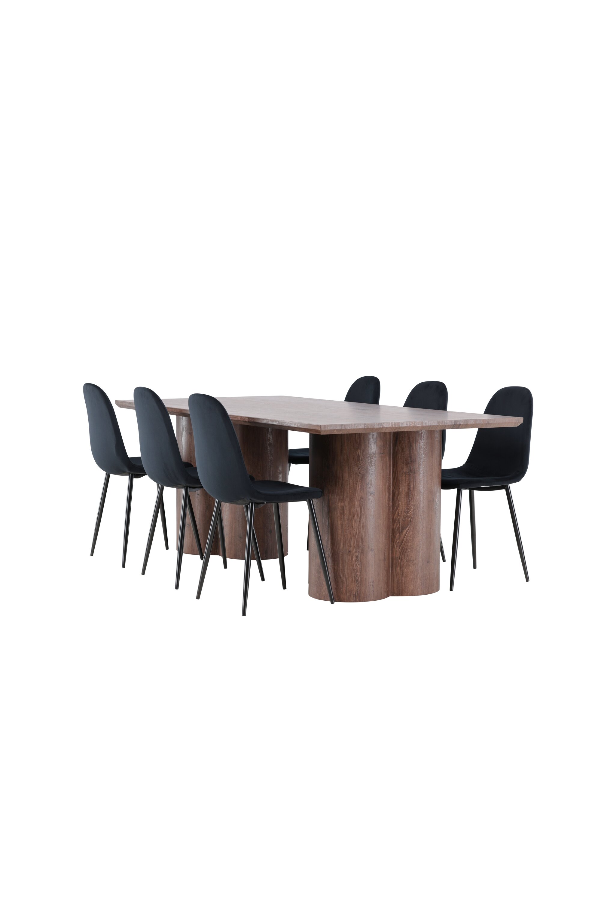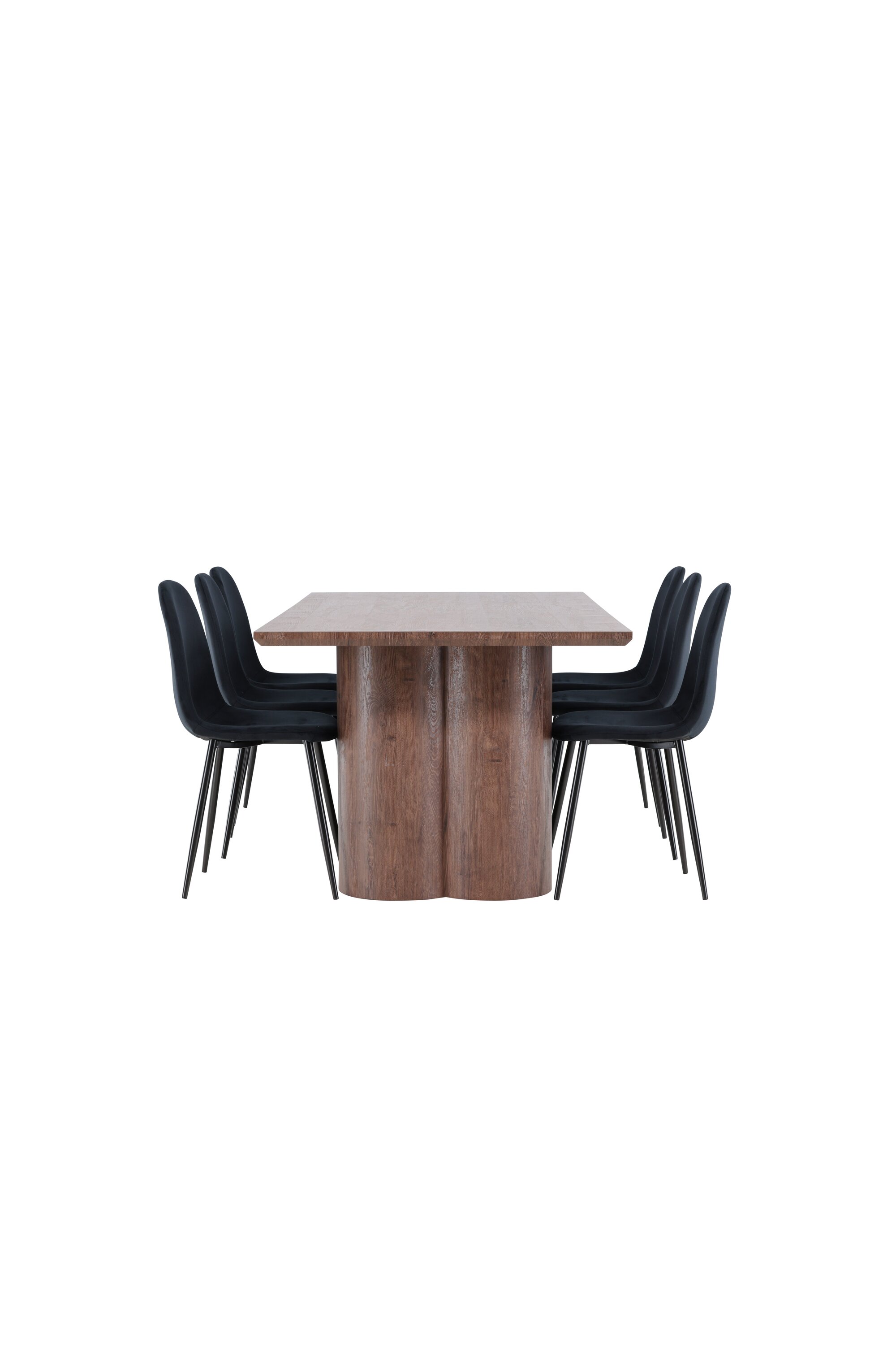 Avasta Polari söögigrupp – ideaalne kombinatsioon stiilist ja mugavusest teie koju. Polari söögitoolil on ühtlane must värv ja kaasaegne disain, mis muudab selle nii mugavaks kui ka pilkupüüdvaks. Tool on täielikult kaetud musta sametkangaga ja pehme polstriga ning jalad on mustast pulbervärvitud metallist. Ümardatud selja ja istmega pakub see mugavat istumiskogemust, tegemata järeleandmisi disainis. Täieliku söögikomplekti saamiseks täiendage söögitoole Olivia söögilauaga. Olivia söögilaud on harmooniline segu stiilist ja funktsionaalsusest. Suurte mõõtmetega 100×210 cm laud pakub palju ruumi lähedaste kogumiseks õhtusöökideks ja seltskondlikeks sündmusteks. Seemisnahavärvi pinnaga MDF-materjalist valmistatud Olivia loob teie koju sooja ja kutsuva atmosfääri. Selle neutraalne disain sulandub hästi erinevate interjööristiilidega ning loob rahuliku ja külalislahke tunde. Polari ja Olivia söögigrupp on midagi enamat kui lihtsalt mööbel – need on kohad, kus sõprade ja perega mälestusi tehakse. Olgu see söögigrupp teie koosviibimiste sõlmpunkt ja looge koos sooje ja meeldejäävaid hetki.