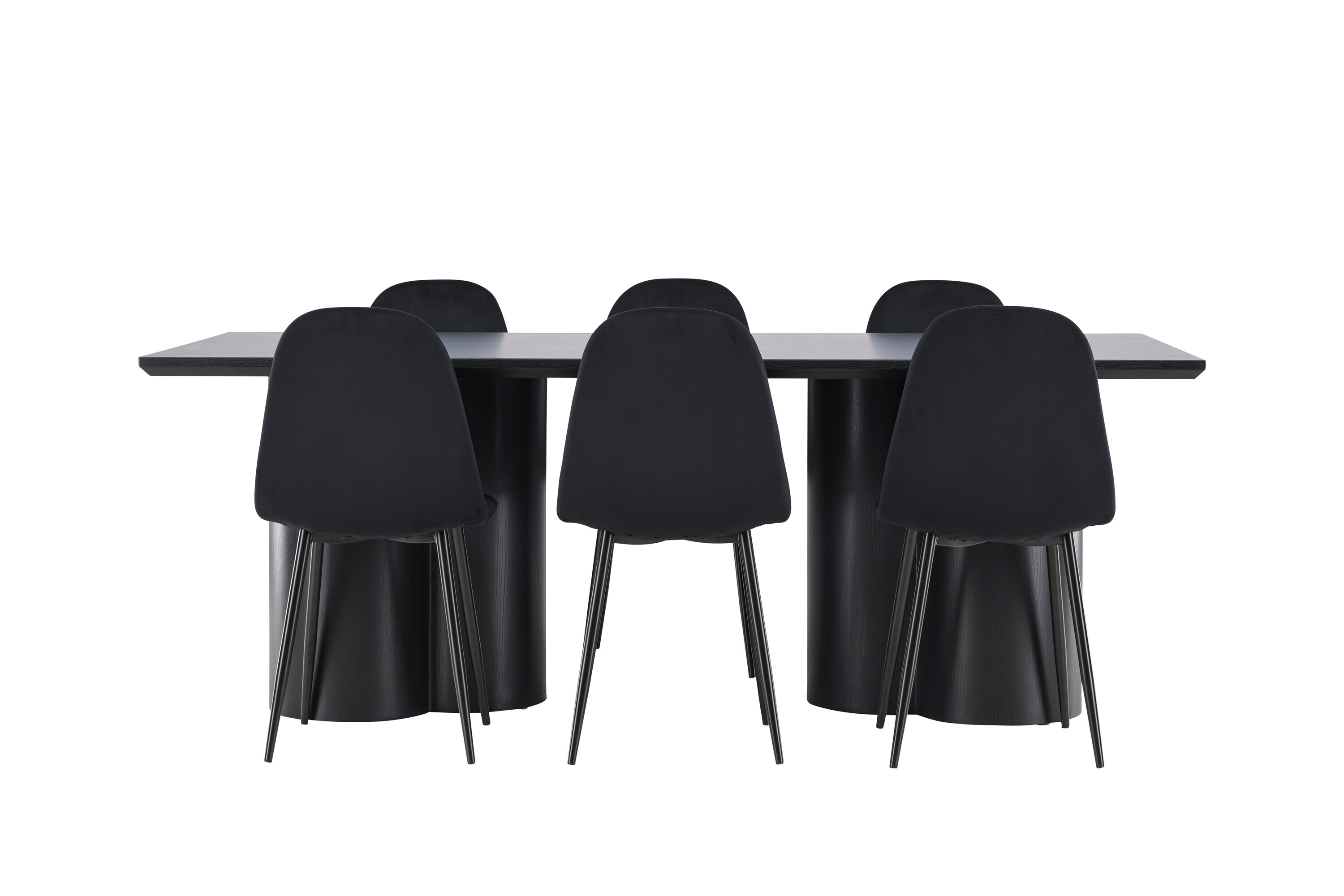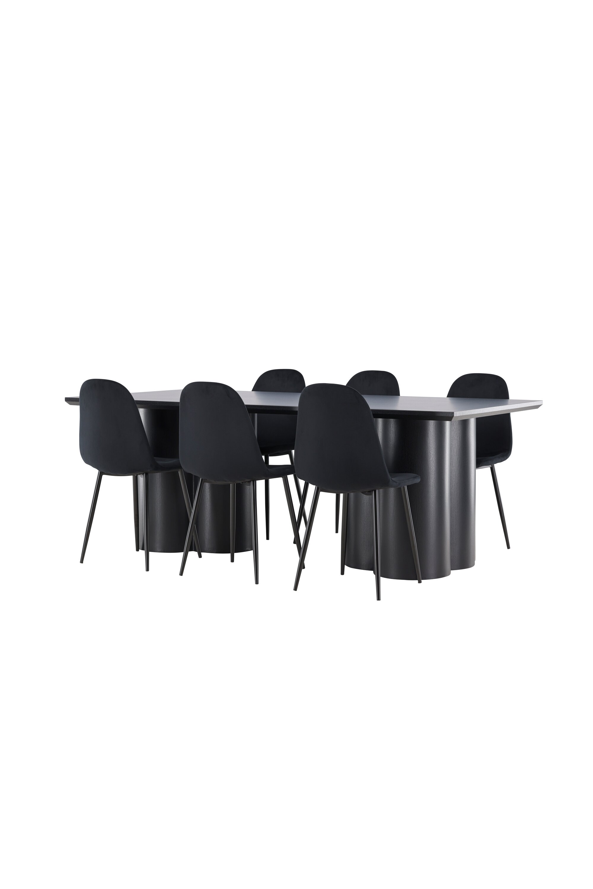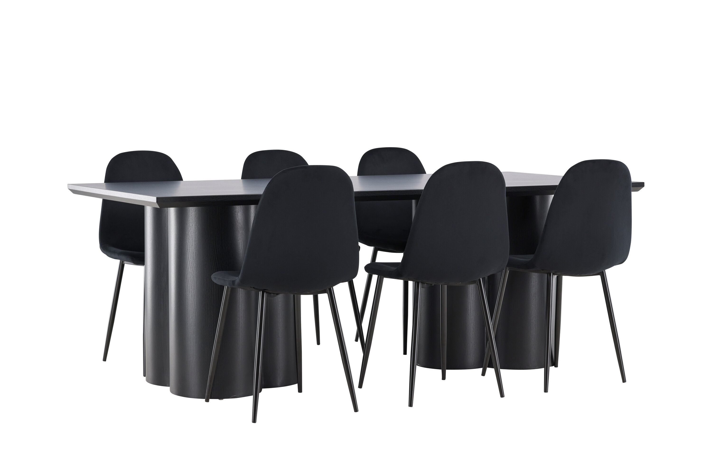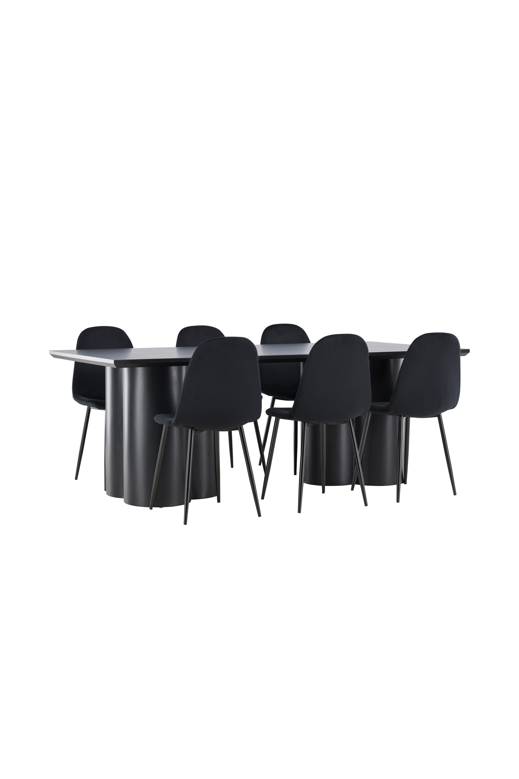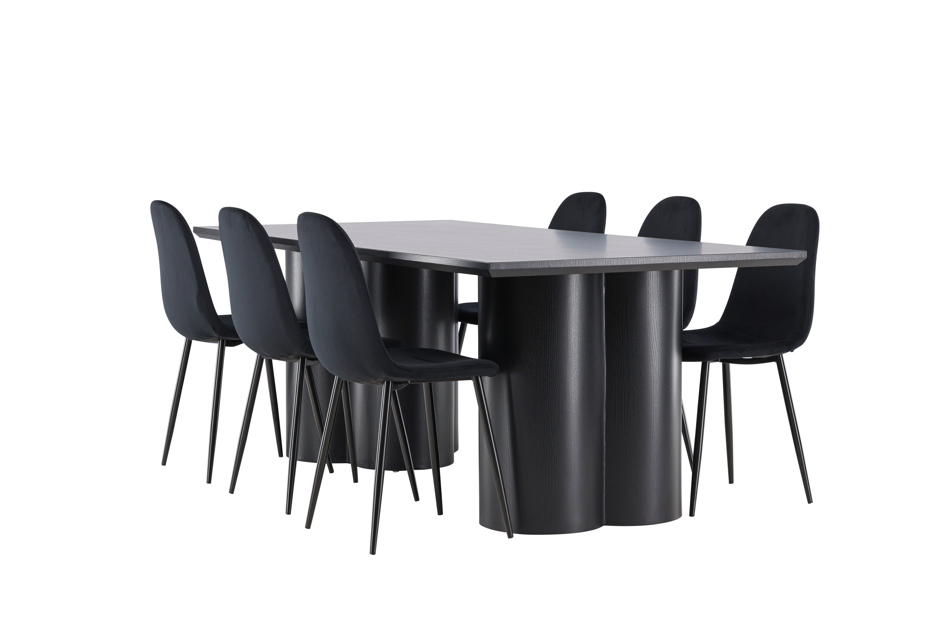 Avastage täiuslik söögikomplekt Polari söögitooli ja Olivia söögilauaga – kombinatsioon, millest õhkub nii elegantsi kui ka funktsionaalsust teie koju. Polari söögitool on üleni mustas ja moodsa disainiga klanitud. Sellel on täielikult polsterdatud disain, jalad mustast pulbervärvitud metallist ning ümardatud seljatugi ja iste mustast sametist pehme polstriga. Siin ei pea te mugavuse ja disaini vahel järeleandmisi tegema! Olivia söögilaud, mille mõõtmed on 210×100 cm, on ideaalne sõprade ja pere tervitamiseks ühistele einetele ja koosviibimistele. Viimistletud musta varjundiga laud õhkab elegantsi ja modernsust, samas kui selle tugev konstruktsioon tagab pikaajalise stabiilsuse. Andke oma söögitoale luksuse ja modernsuse tunne Polari söögitooli ja Olivia söögilauaga. See söögikomplekt loob harmoonilise atmosfääri ja jätab püsiva mulje. See kombinatsioon sobib suurepäraselt nii igapäevasteks õhtusöökideks kui ka pidulikeks sündmusteks ning pakub tasakaalu ajatu disaini ja moodsate detailide vahel, muutes selle ideaalseks valikuks kõikideks seltskondlikeks koosviibimisteks.