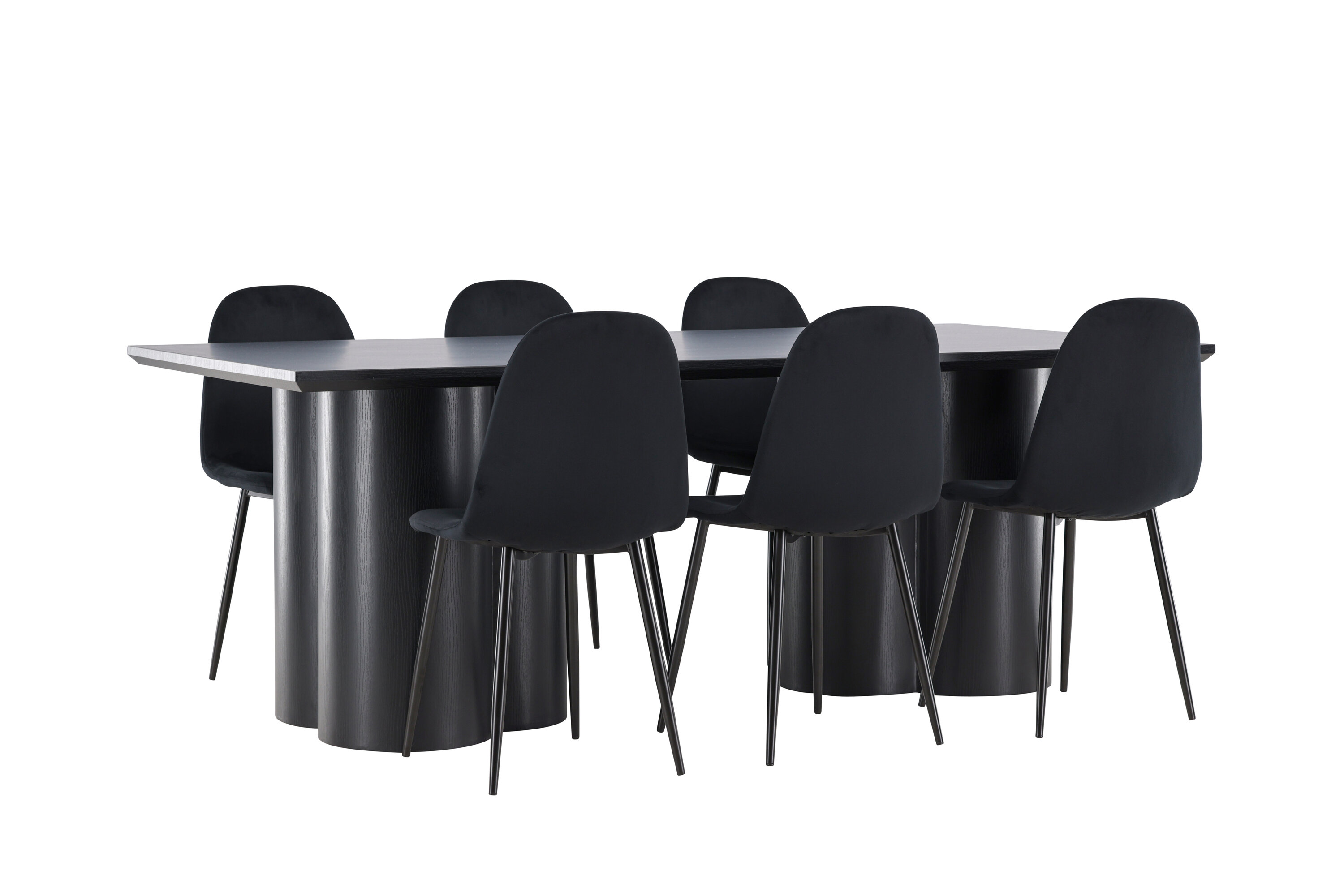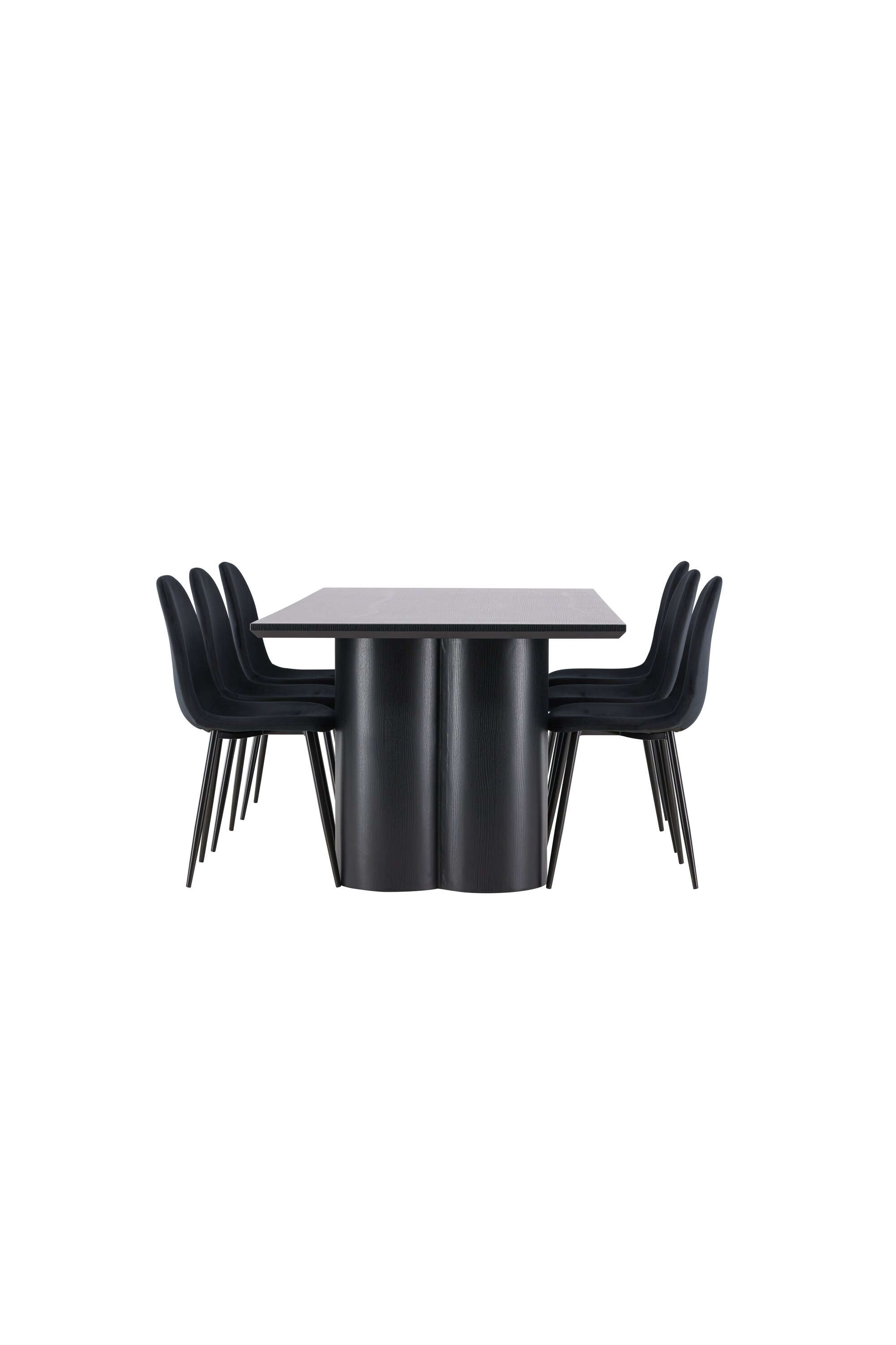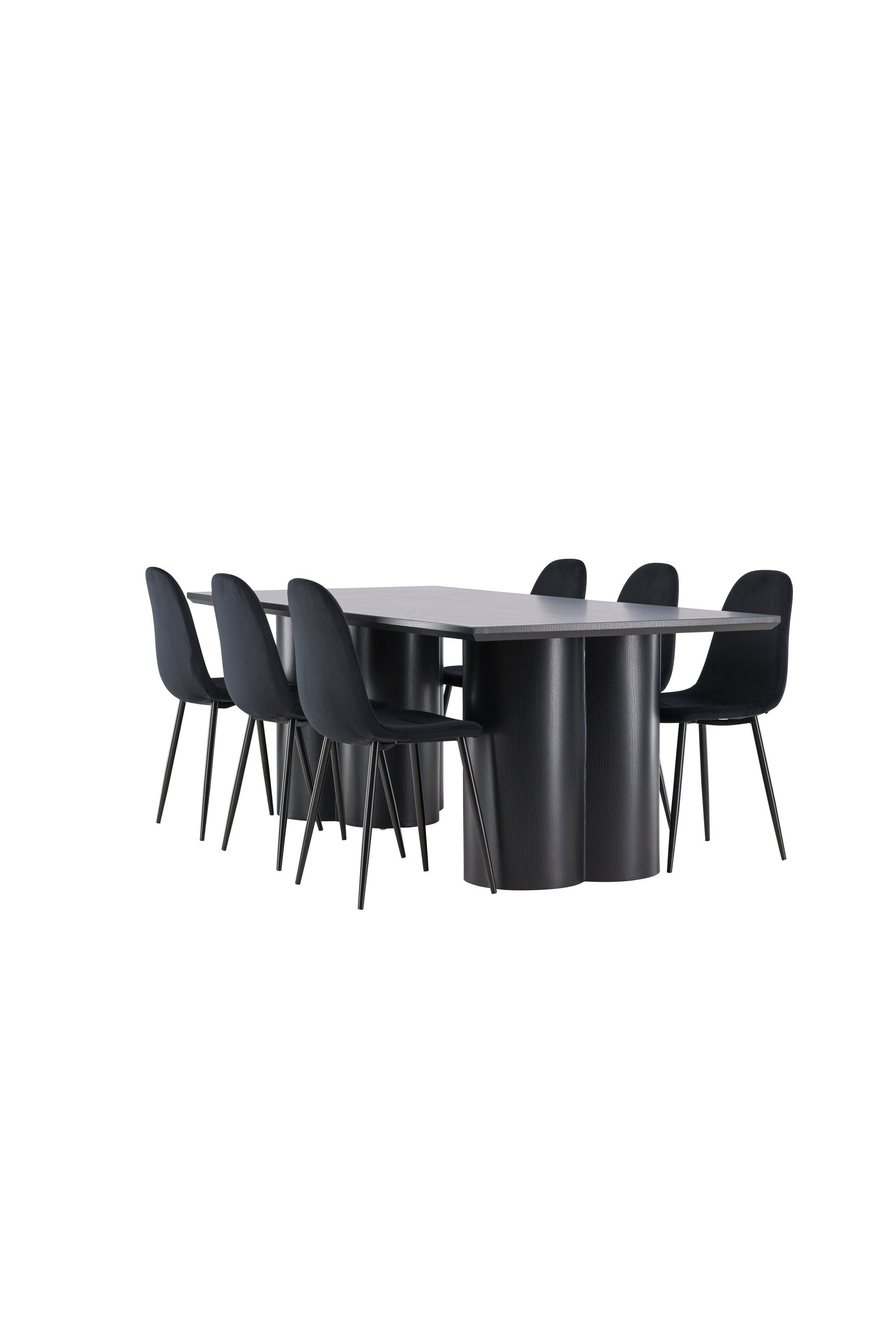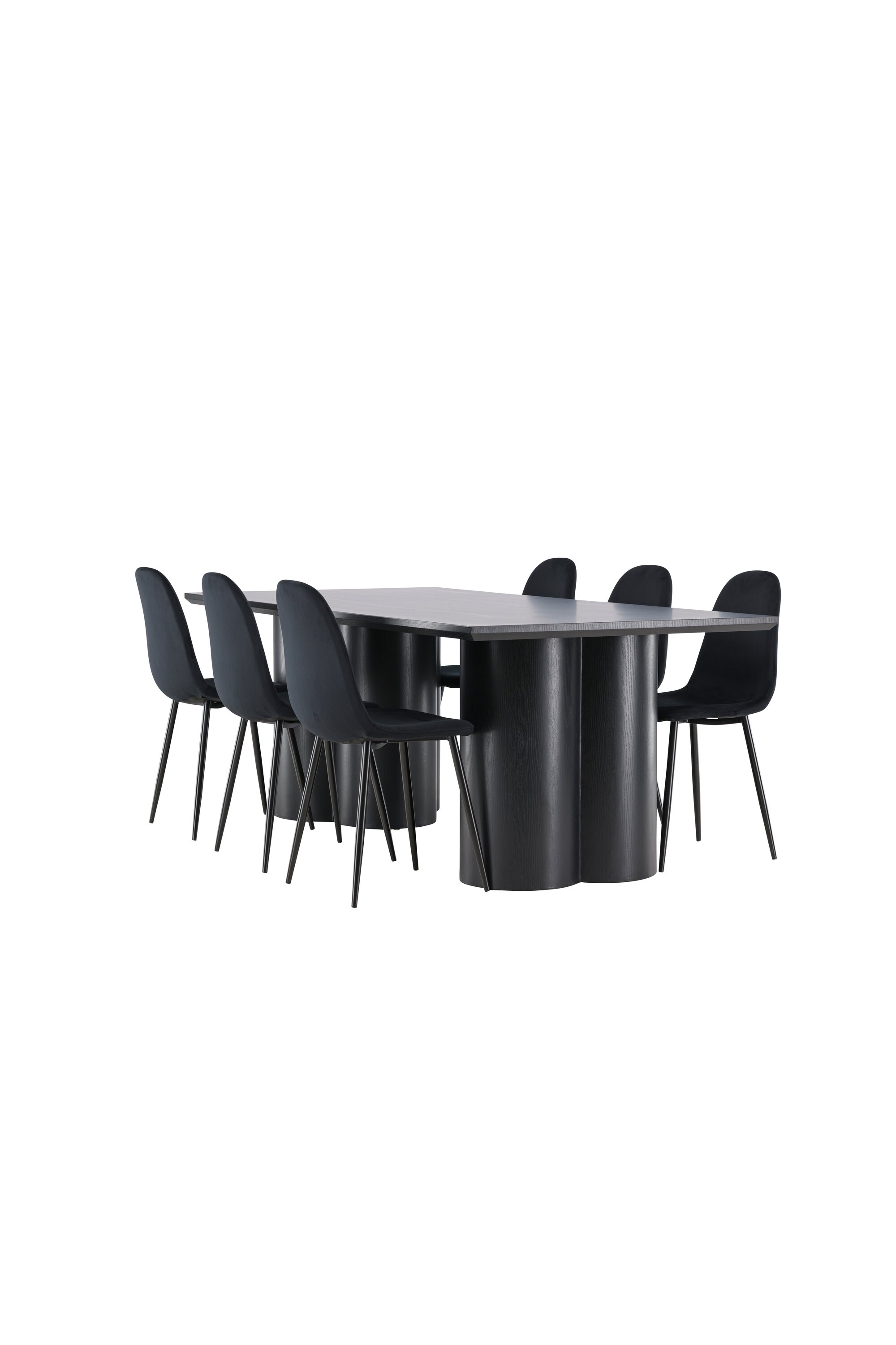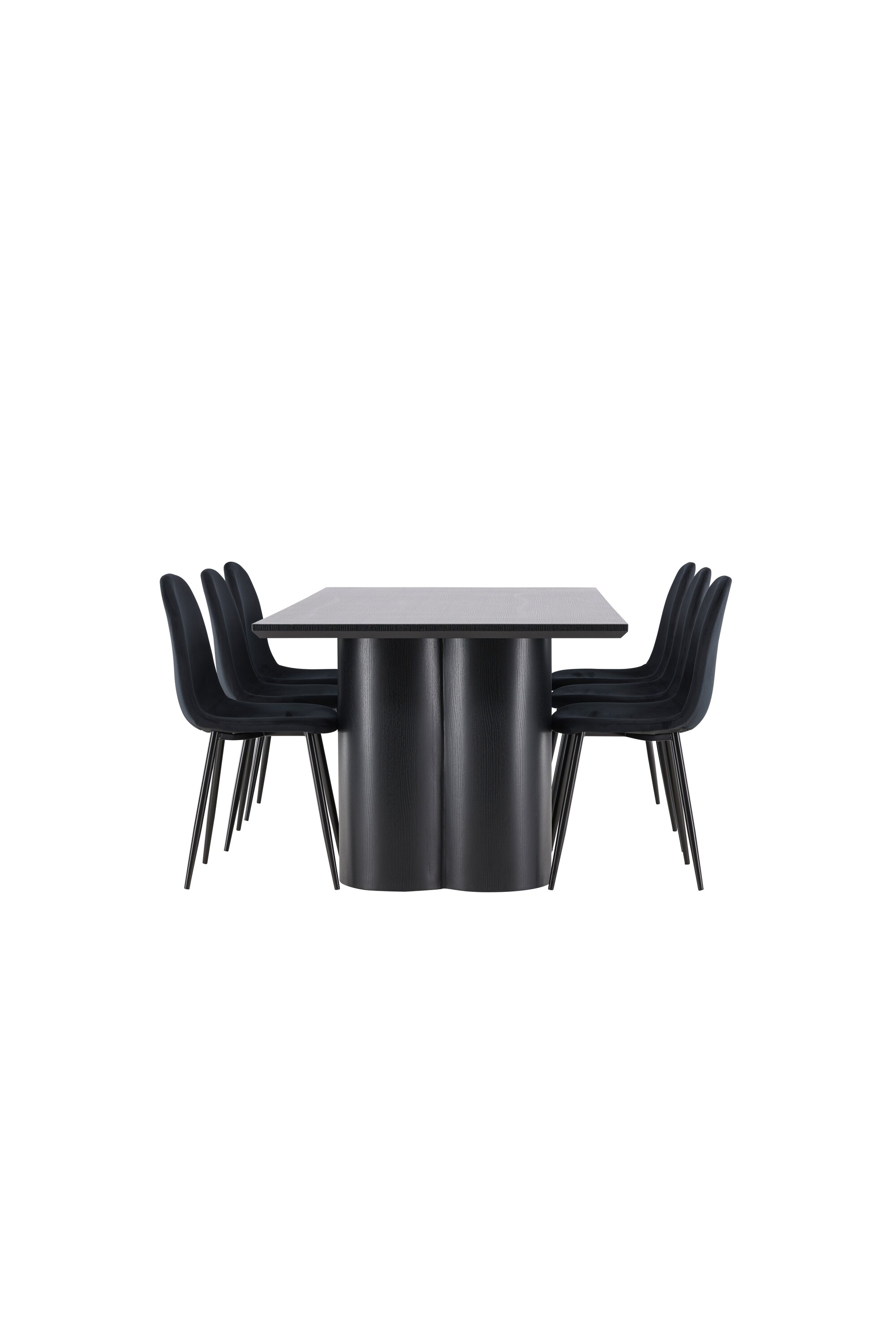Avastage täiuslik söögikomplekt Polari söögitooli ja Olivia söögilauaga – kombinatsioon, millest õhkub nii elegantsi kui ka funktsionaalsust teie koju. Polari söögitool on üleni mustas ja moodsa disainiga klanitud. Sellel on täielikult polsterdatud disain, jalad mustast pulbervärvitud metallist ning ümardatud seljatugi ja iste mustast sametist pehme polstriga. Siin ei pea te mugavuse ja disaini vahel järeleandmisi tegema! Olivia söögilaud, mille mõõtmed on 210×100 cm, on ideaalne sõprade ja pere tervitamiseks ühistele einetele ja koosviibimistele. Viimistletud musta varjundiga laud õhkab elegantsi ja modernsust, samas kui selle tugev konstruktsioon tagab pikaajalise stabiilsuse. Andke oma söögitoale luksuse ja modernsuse tunne Polari söögitooli ja Olivia söögilauaga. See söögikomplekt loob harmoonilise atmosfääri ja jätab püsiva mulje. See kombinatsioon sobib suurepäraselt nii igapäevasteks õhtusöökideks kui ka pidulikeks sündmusteks ning pakub tasakaalu ajatu disaini ja moodsate detailide vahel, muutes selle ideaalseks valikuks kõikideks seltskondlikeks koosviibimisteks.