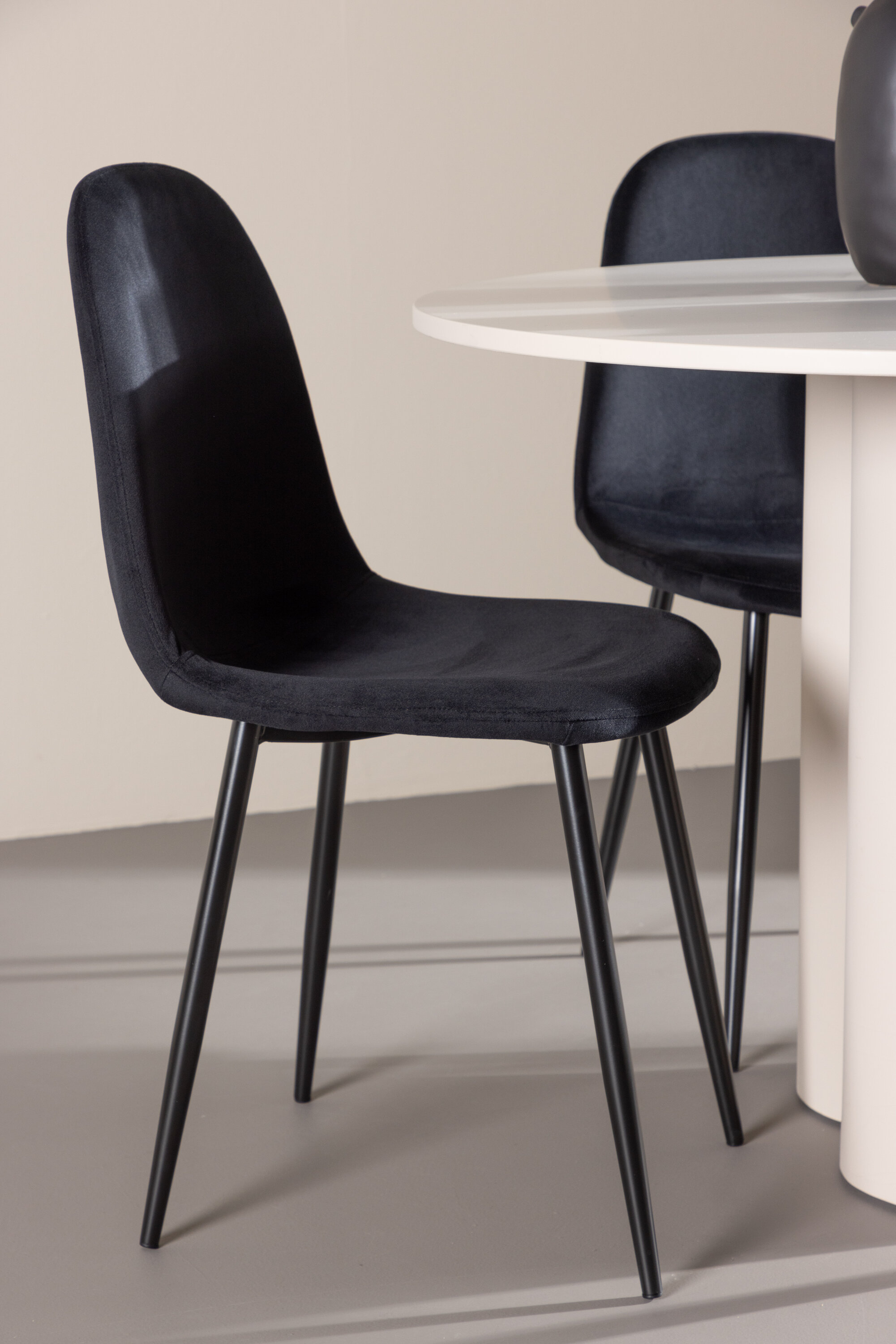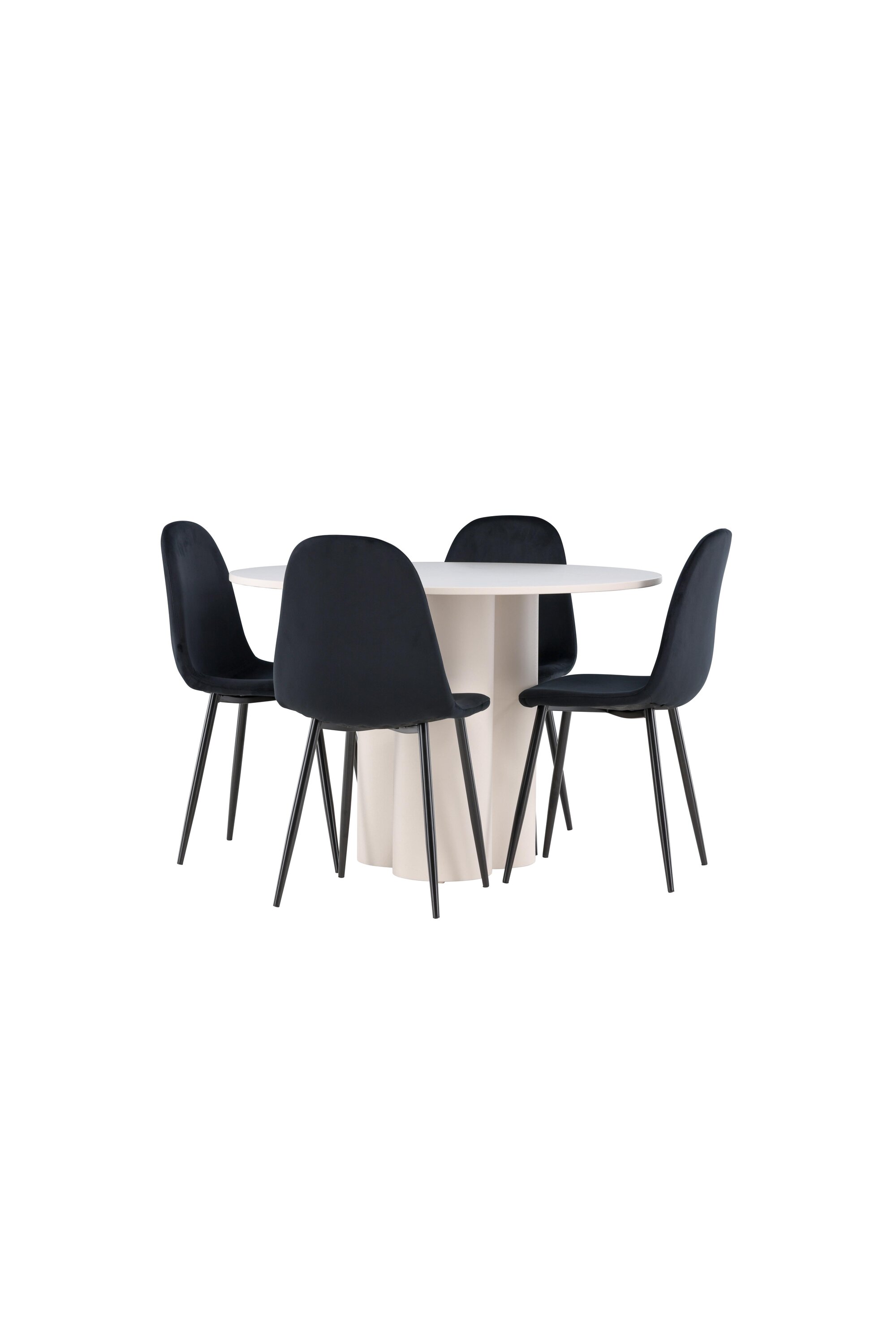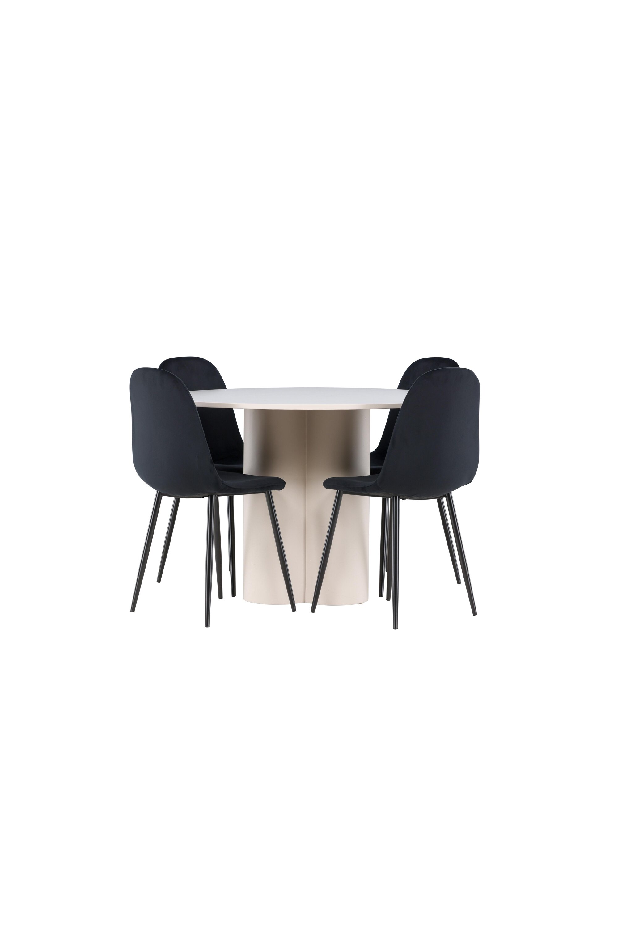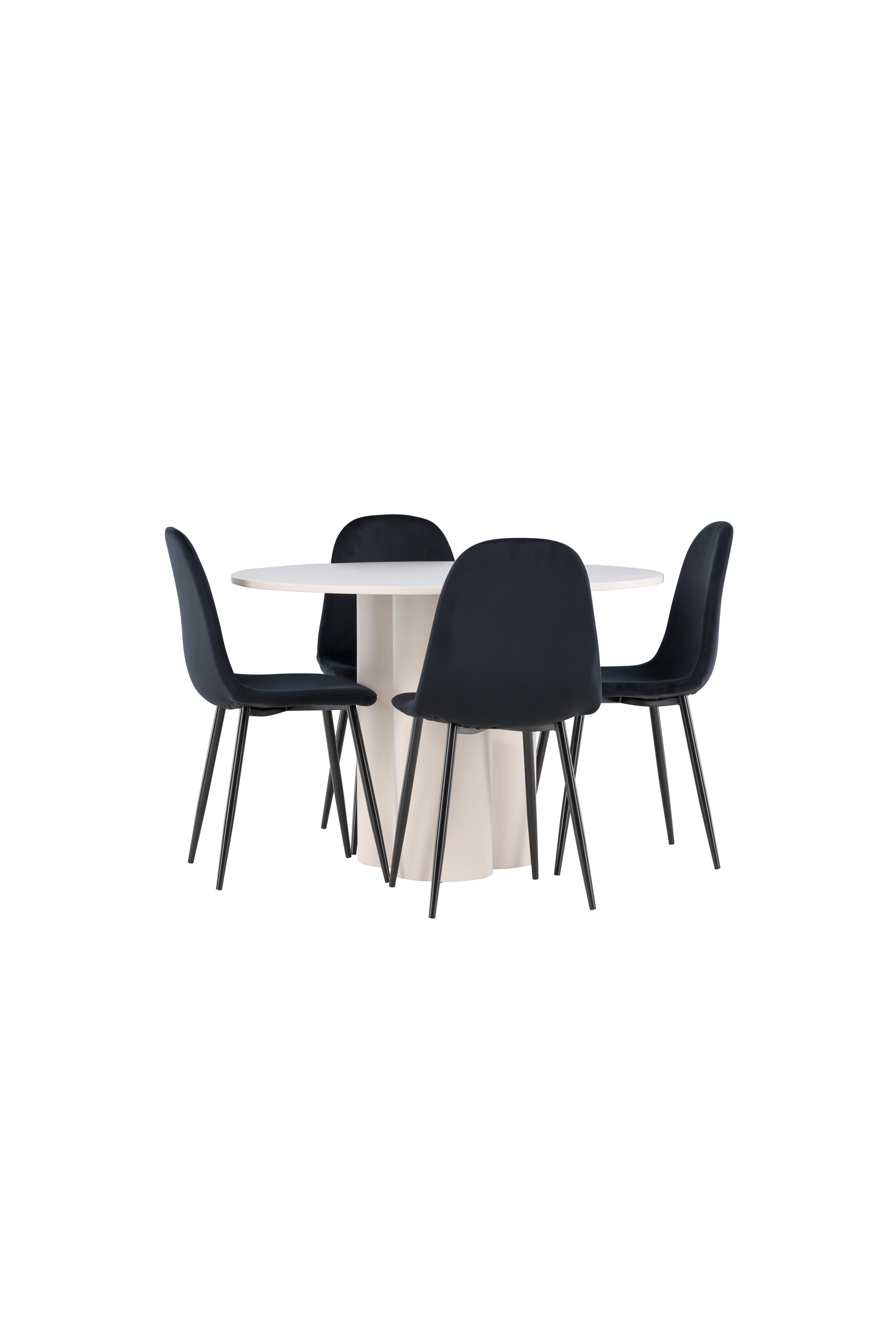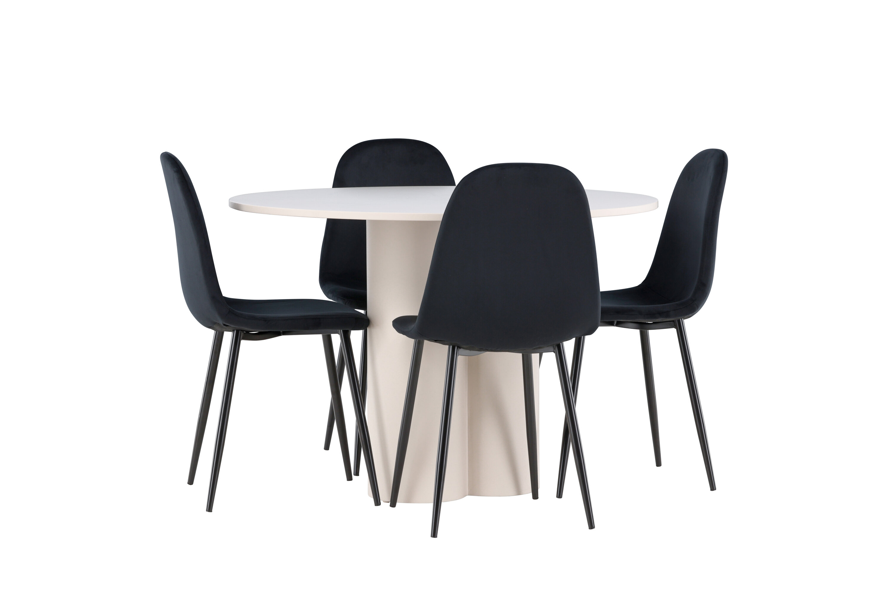 Looge elegantne ja kutsuv söögituba meie stiilse söögigrupiga, mis ühendab Olivia laua luksuslike Polari toolidega. See söögituba, mis sobib ideaalselt nii igapäevasteks õhtusöökideks kui ka pidulikeks sündmusteks, loob teie söögitoale kaasaegse ja peene atmosfääri. MDF-st valmistatud Olivia laual on helebeež värv, mis lisab teie söögitoale sooja ja kutsuva tunde. 110 cm läbimõõduga laud pakub rohkelt ruumi söögiks ja vestlusteks, ümar kuju loob aga tasakaalustatud ja sotsiaalse keskkonna. Laua vastupidav konstruktsioon tagab pikaajalise kasutuse ja stabiilsuse. Neli Polari tooli täiendavad lauda suurepäraselt oma elegantsete musta sametiga kaetud istmetega. Need toolid pakuvad nii mugavust kui ka stiili, muutes need ideaalseks pikaks ja nauditavaks õhtusöögiks pere ja sõpradega. Nende kaasaegne disain koos kõrgete seljatugede ja pehmete istmetega annab teie söögitoale rafineeritud ja kaasaegse ilme. See söögituba on ideaalne kombinatsioon esteetikast ja funktsionaalsusest, mistõttu on see suurepärane valik neile, kes otsivad elegantset ja mugavat söögituba. Täiustage oma söögituba Olivia laua ja Polari toolide kombinatsiooniga ning looge koht, kus jagatakse mälestusi ja rõõmu.