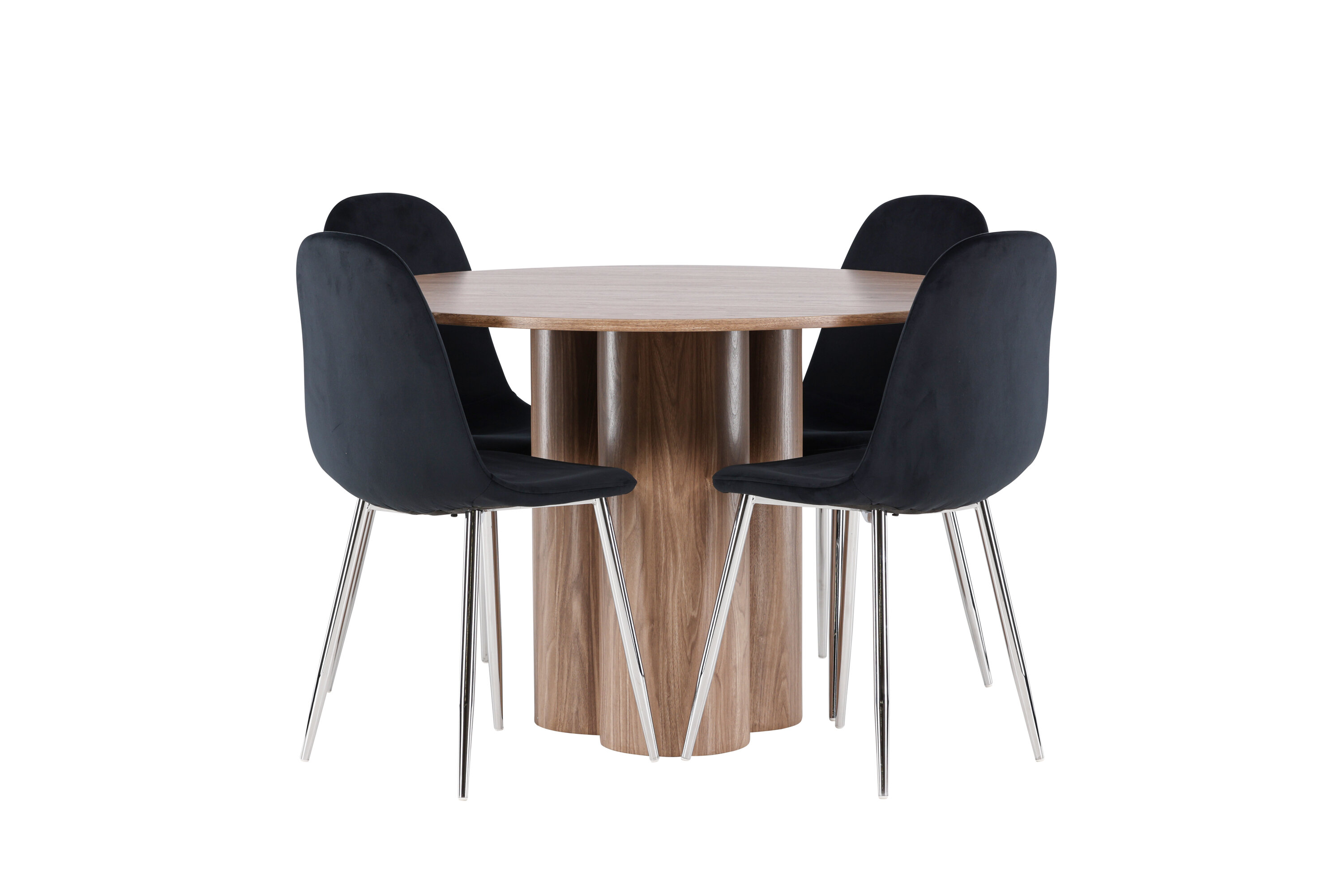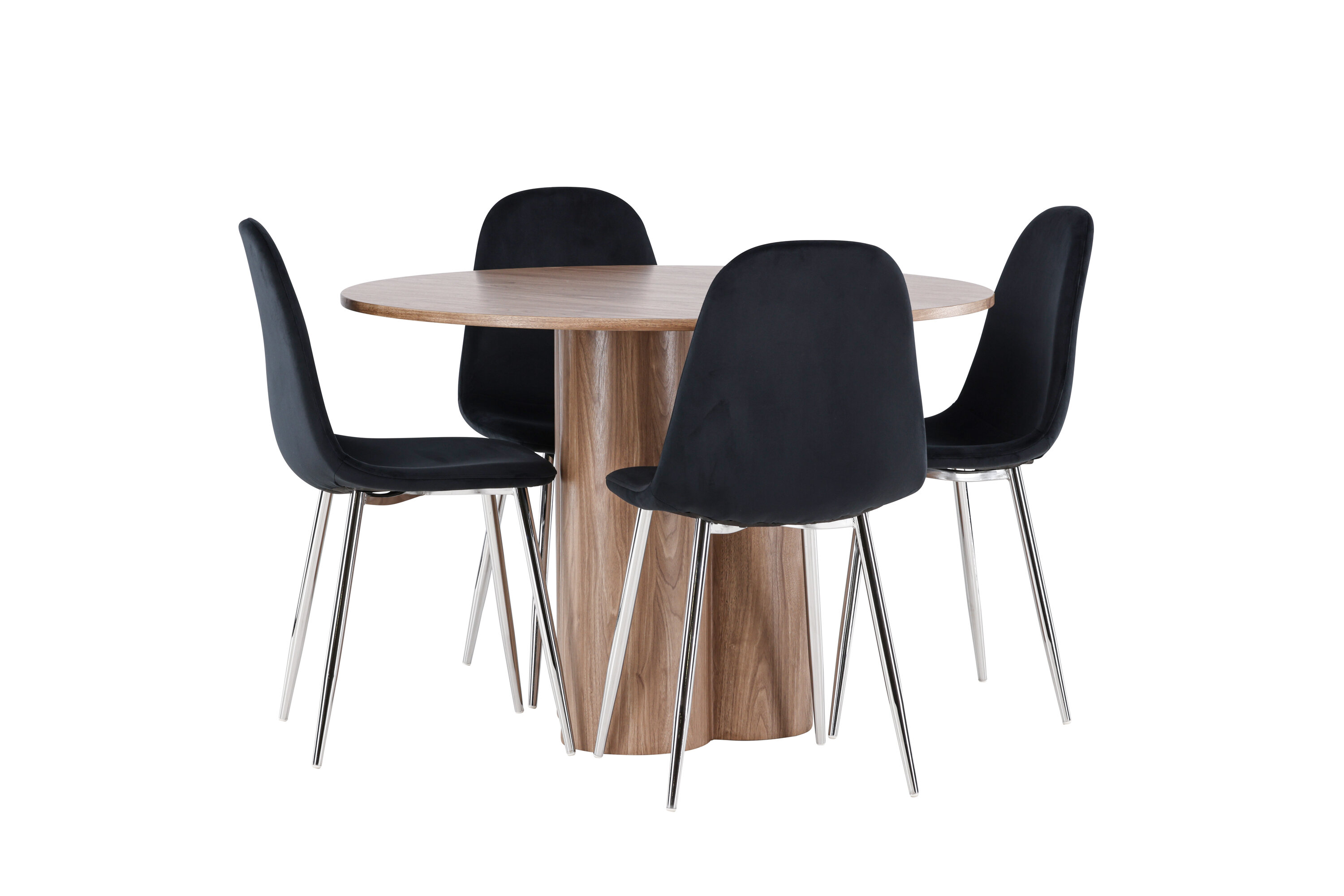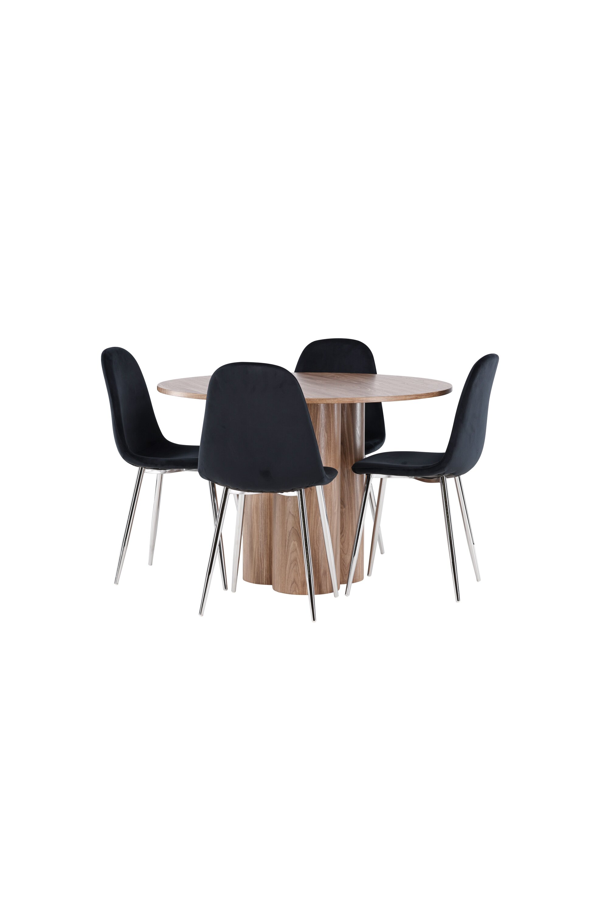 Avastage oma koju täiuslik söögikomplekt koos Olivia söögilaua ja Polari toolidega. Olivia söögilaud on kutsuv ja elegantne mööbliese, mis oma 110 cm läbimõõduga sobib suurepäraselt sõprade ja pere kokkusaamiseks, et veeta mõnusaid eineid ja mõnusaid hetki. Oma lummava mokavärvi ja skandinaavialiku disainiga ühendab see lihtsuse ja stiili, muutes selle ajatuks valikuks igasse ruumi. Olgu siis lõdvestunud hiline hommikueine või pidulik õhtusöök – Olivia söögilaud on garanteeritud pilgupüüdja. Täiendage söögilauda meie elegantsete Polari toolidega, mis pakuvad luksust ja mugavust. Nendel toolidel on täielikult polsterdatud disain, kroomitud metallist jalad, veidi ümar seljatugi ja klanitud must sametist iste, millel on pehme polster, mis lisab mugavust. Siin ei pea te mugavuse ja disaini vahel järeleandmisi tegema. Luksuslik tunne ja kaasaegne esteetika muudavad Polari toolid suurepäraseks täienduseks Olivia söögilauale. Looge oma kodu südames kutsuv õhkkond ja nautige koos mõnusaid eineid.