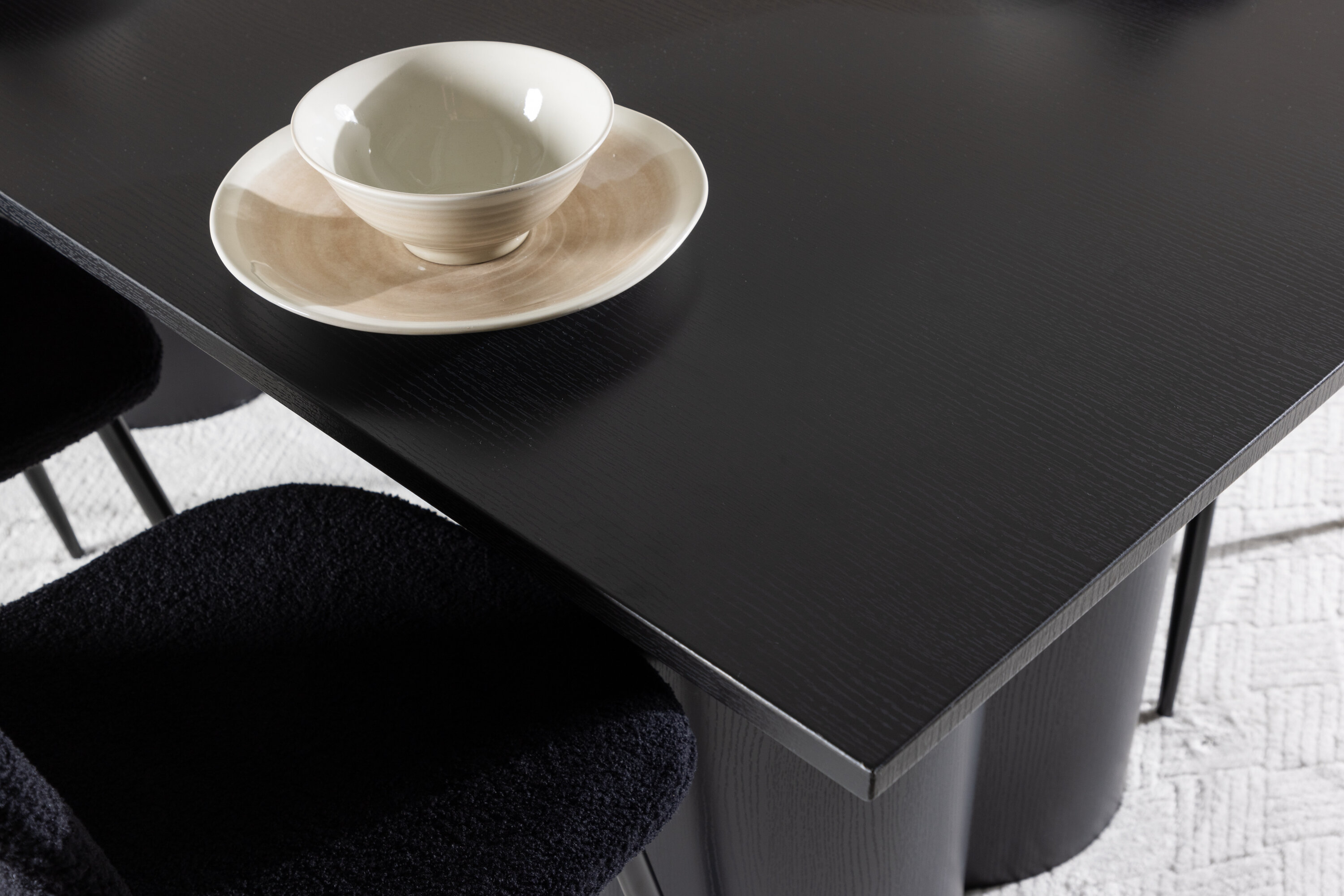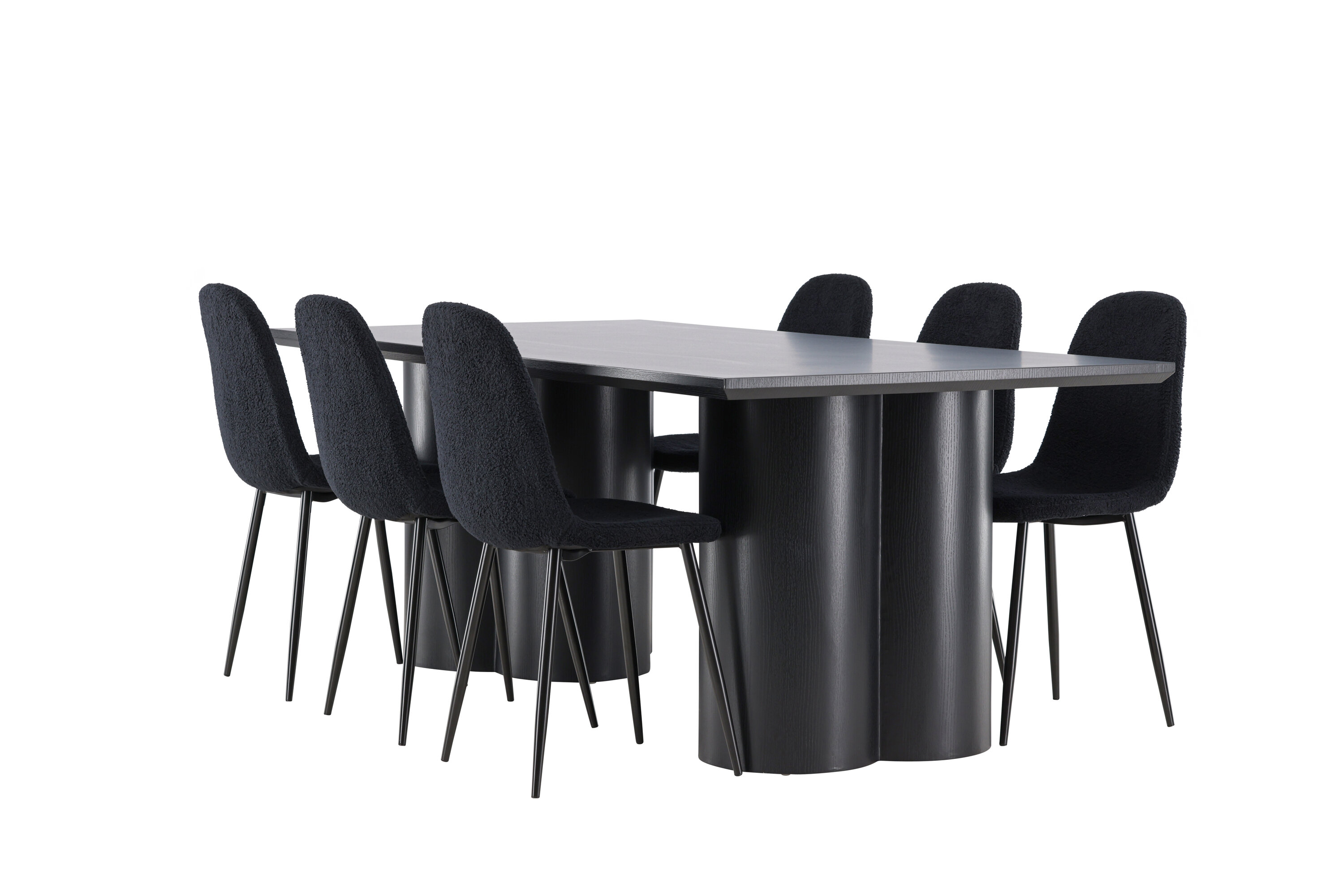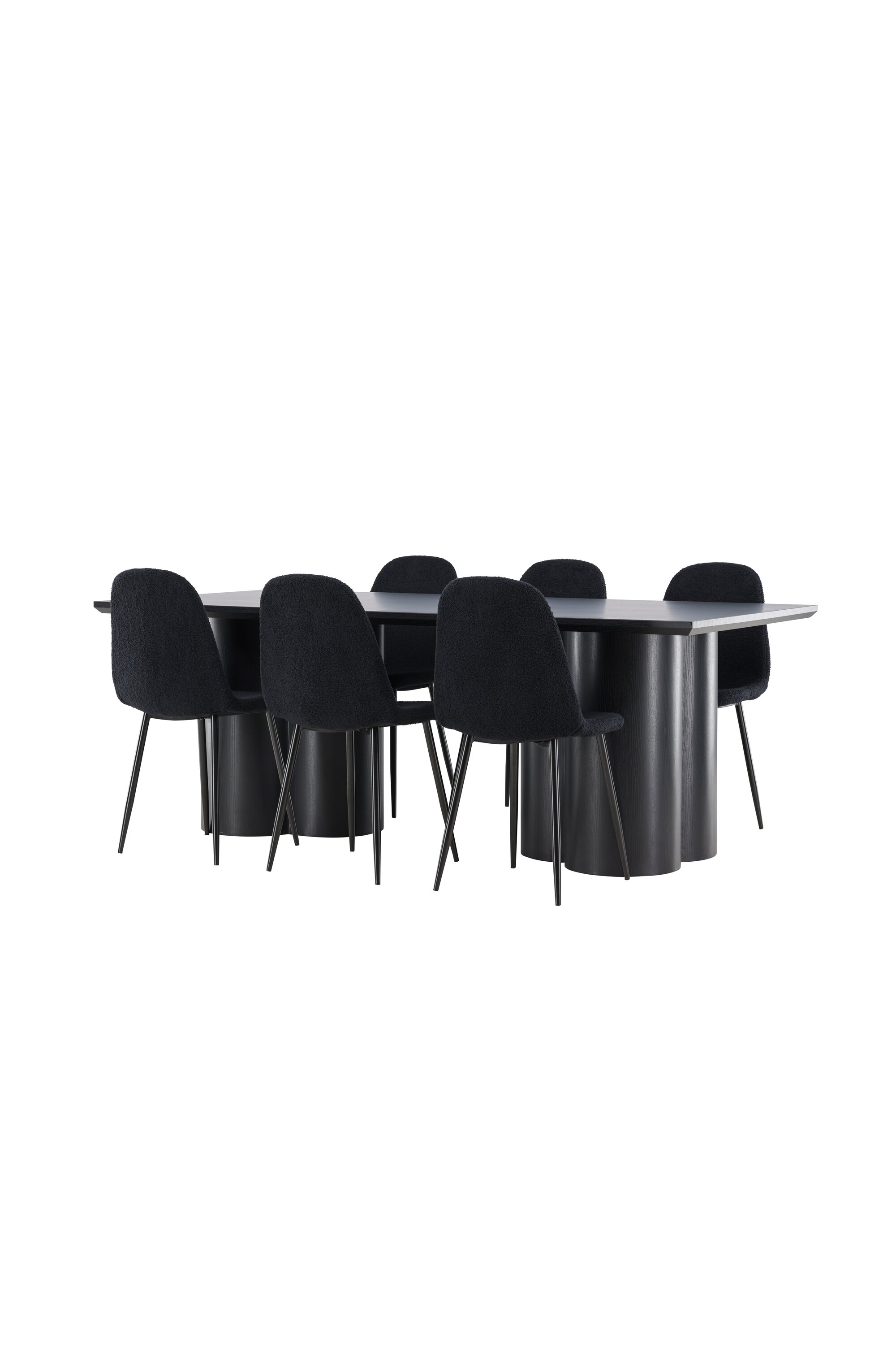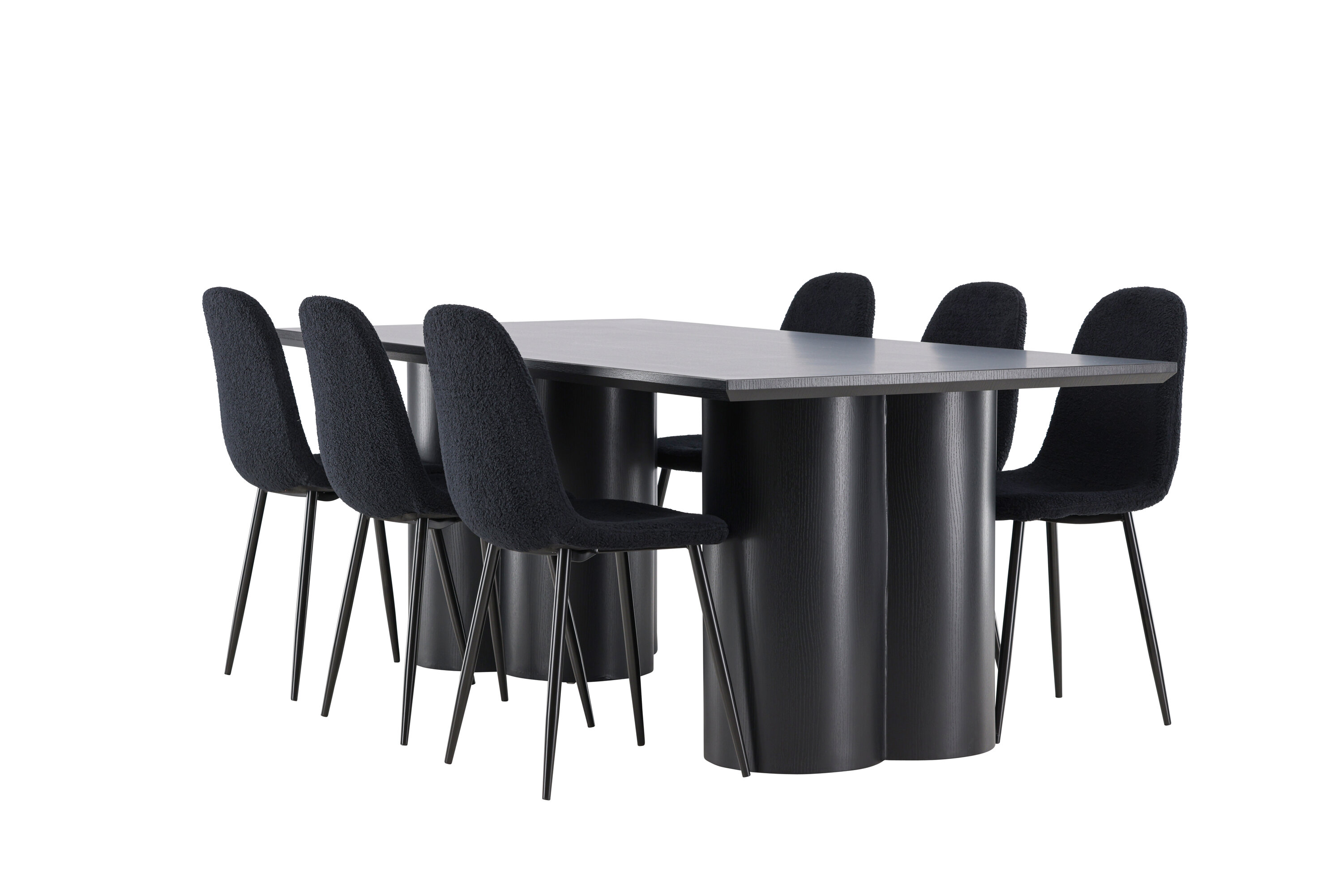 Avastage täiuslik elegantsi ja funktsionaalsuse kombinatsioon söögikomplektiga, mis sisaldab Polari söögitooli ja Olivia söögilauda. Üheskoos loovad need moodsa ja kutsuva atmosfääri kõikideks teie söögikordadeks ja seltskondlikeks koosviibimisteks. Tool on FSC®-sertifikaadiga (FSC®C177288), mis tähendab, et see koosneb vastutustundlikust metsandusest, inimeste ja keskkonnaga arvestavast metsandusest pärit puidust. Polari söögitool on ideaalne kombinatsioon moodsast elegantsist ja lihtsusest teie einestamiskorralduses. Tooli sügavmust värv ja polüester teddy materjal annavad eksklusiivse tunde ja pakuvad mugavat istumiskogemust kõikidel õhtusöökidel ja koosviibimistel. Selle kaasaegne disain ja puhtad jooned pakuvad ajatut esteetikat, mis täiendab kõiki interjööri stiile. Polari söögitooli jalad on valmistatud mustast terasest, pakkudes tugevat ja tugevat konstruktsiooni, aidates samal ajal kaasa selle elegantsele välimusele. Oma lihtsuse ja mitmekülgsusega on Polar teie kodu teretulnud täiendus. Kogege elegantsust ja funktsionaalsust söögilauaga Olivia. See laud on oma suurte mõõtmetega 210×100 cm ideaalne sõprade ja pere tervitamiseks ühisteks eineteks ja koosviibimisteks. Keerulises mustas toonis Olivia söögilaud õhkab elegantsi ja modernsust. Selle tugev konstruktsioon tagab stabiilsuse paljudeks aastateks. Loo Olivia söögilauaga oma kodus trendikas atmosfäär. Selle elegantne disain ja ajatu värvitoon sobivad ideaalselt erinevate interjööristiilidega. Laske Olivia söögilaual luua teie seltskondlikke koosviibimisi ja mälestusi, kui jagate oma lähedastega eineid ja vestlusi. Selle muljetavaldava ja funktsionaalse lauaga saate oma kodule elegantsi ja seltskondlikkust anda.