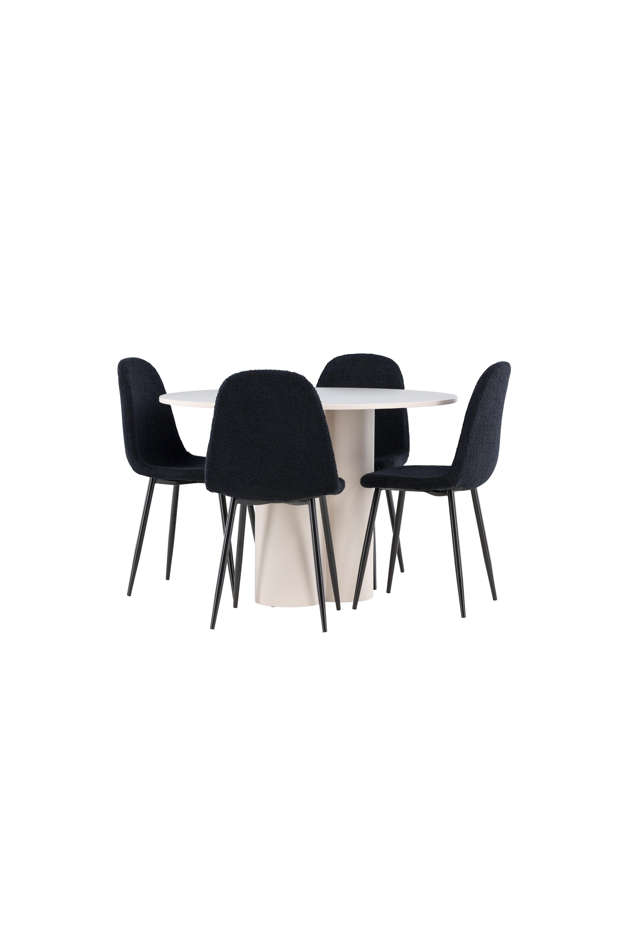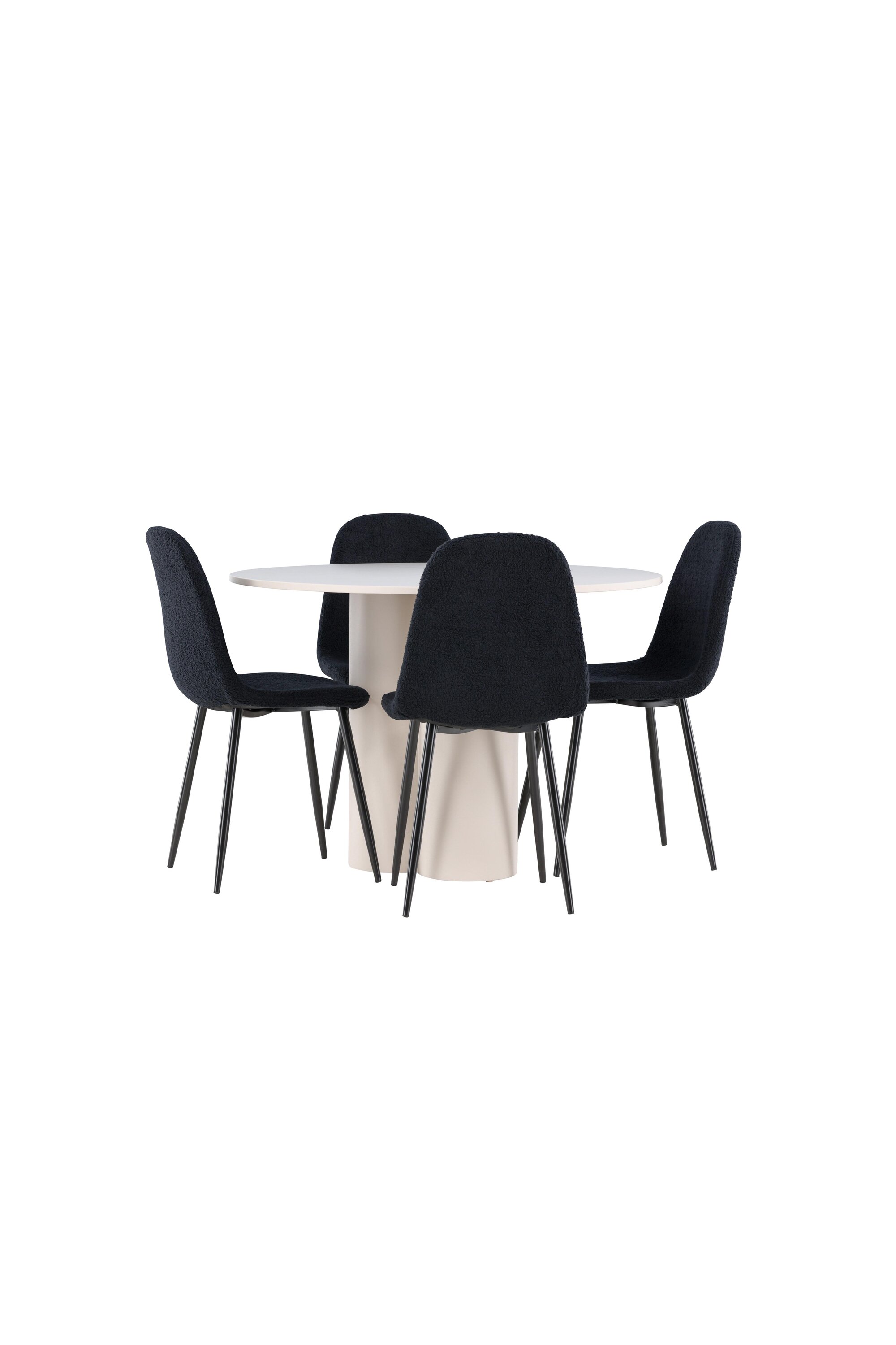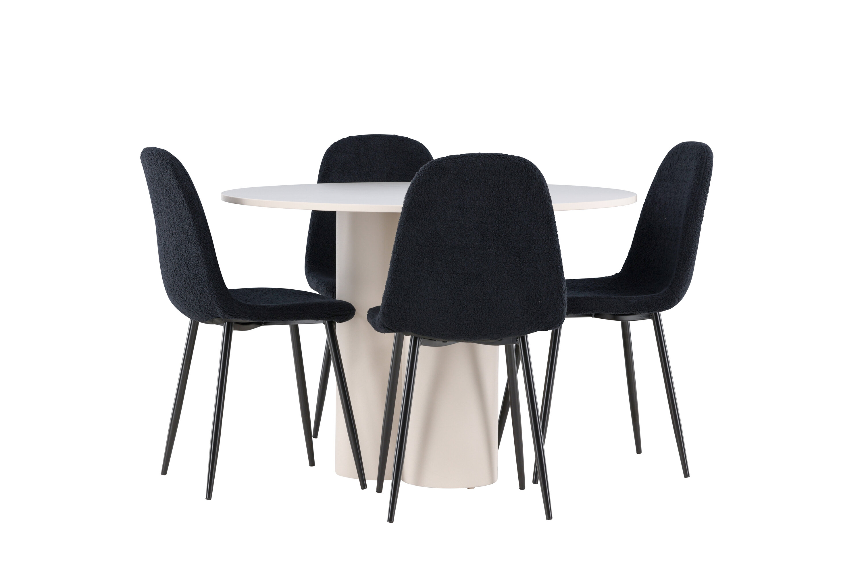 Looge elegantne ja kutsuv söögituba meie elegantse söögikomplektiga, mis ühendab Olivia laua mugavate Polari toolidega. See söögikomplekt, mis sobib ideaalselt nii igapäevaseks õhtusöögiks kui ka pidulikuks sündmuseks, loob teie söögitoale kaasaegse ja harmoonilise atmosfääri. MDF-st valmistatud Olivia laual on helebeež värv, mis lisab teie söögitoale sooja ja kutsuva tunde. 110 cm läbimõõduga laud pakub rohkelt ruumi söögiks ja vestlusteks, ümar kuju loob aga tasakaalustatud ja sotsiaalse keskkonna. Laua vastupidav konstruktsioon tagab pikaajalise kasutuse ja stabiilsuse. Neli Polari tooli täiendavad lauda suurepäraselt oma elegantsete mustast polüesterkarussist istmetega. Need toolid pakuvad nii mugavust kui ka stiili, muutes need ideaalseks pikaks ja nauditavaks õhtusöögiks pere ja sõpradega. Nende kaasaegne disain koos kõrgete seljatugede ja pehmete istmetega annab teie söögitoale rafineeritud ja kaasaegse ilme. See söögikomplekt on täiuslik kombinatsioon esteetikast ja funktsionaalsusest, mistõttu on see suurepärane valik neile, kes otsivad elegantset ja mugavat söögituba. Täiustage oma söögituba Olivia laua ja Polari toolide kombinatsiooniga ning looge koht, kus jagatakse mälestusi ja rõõmu.