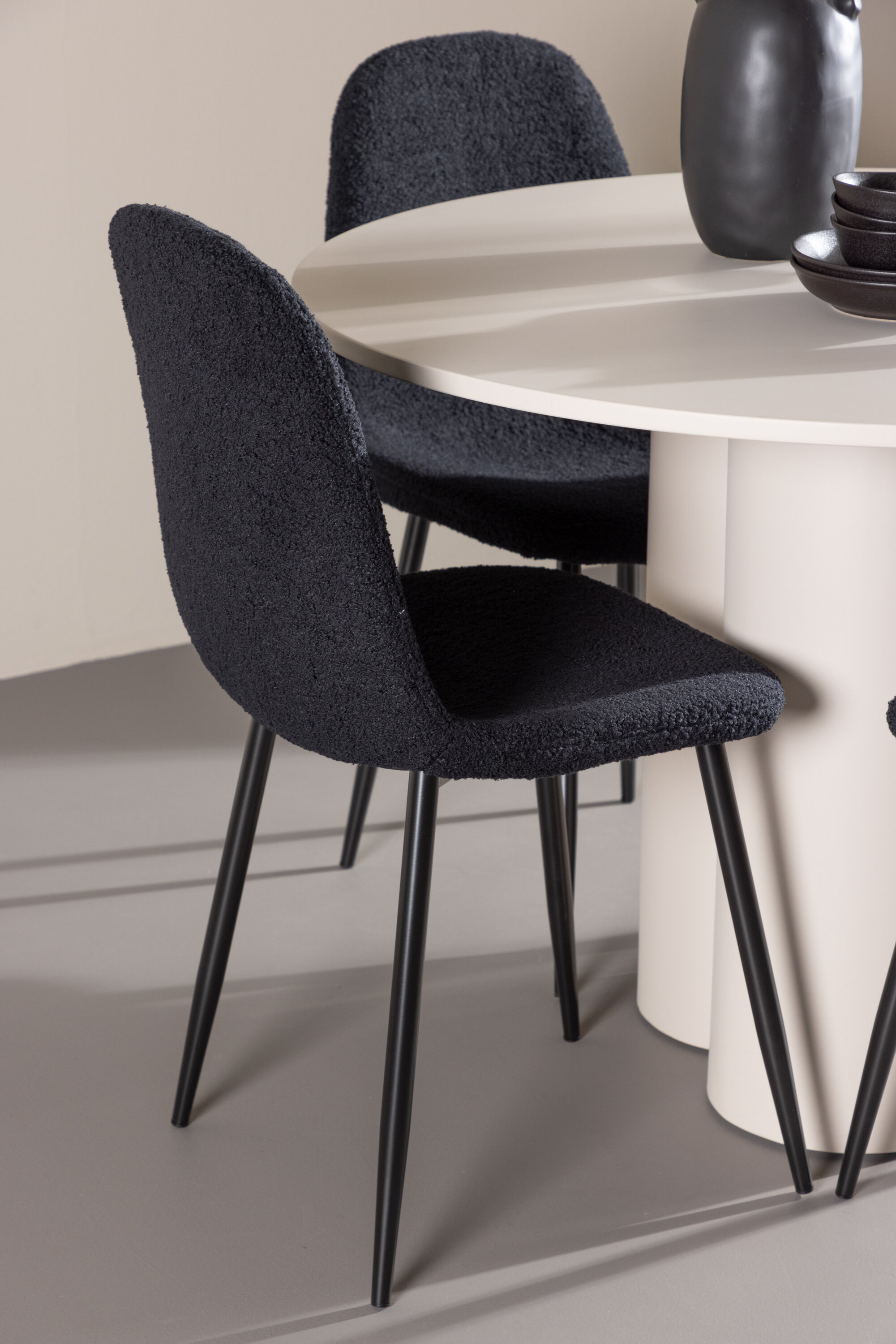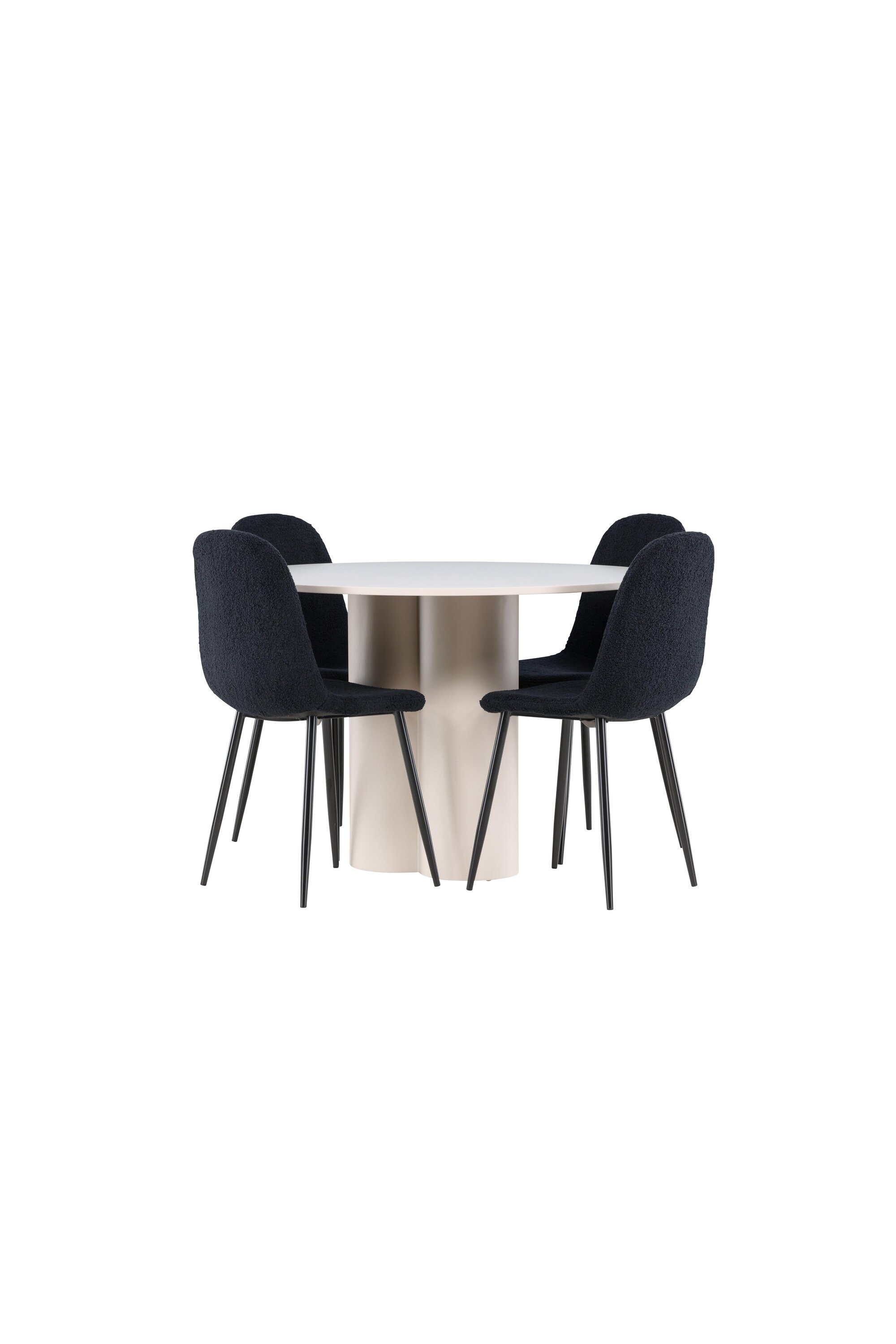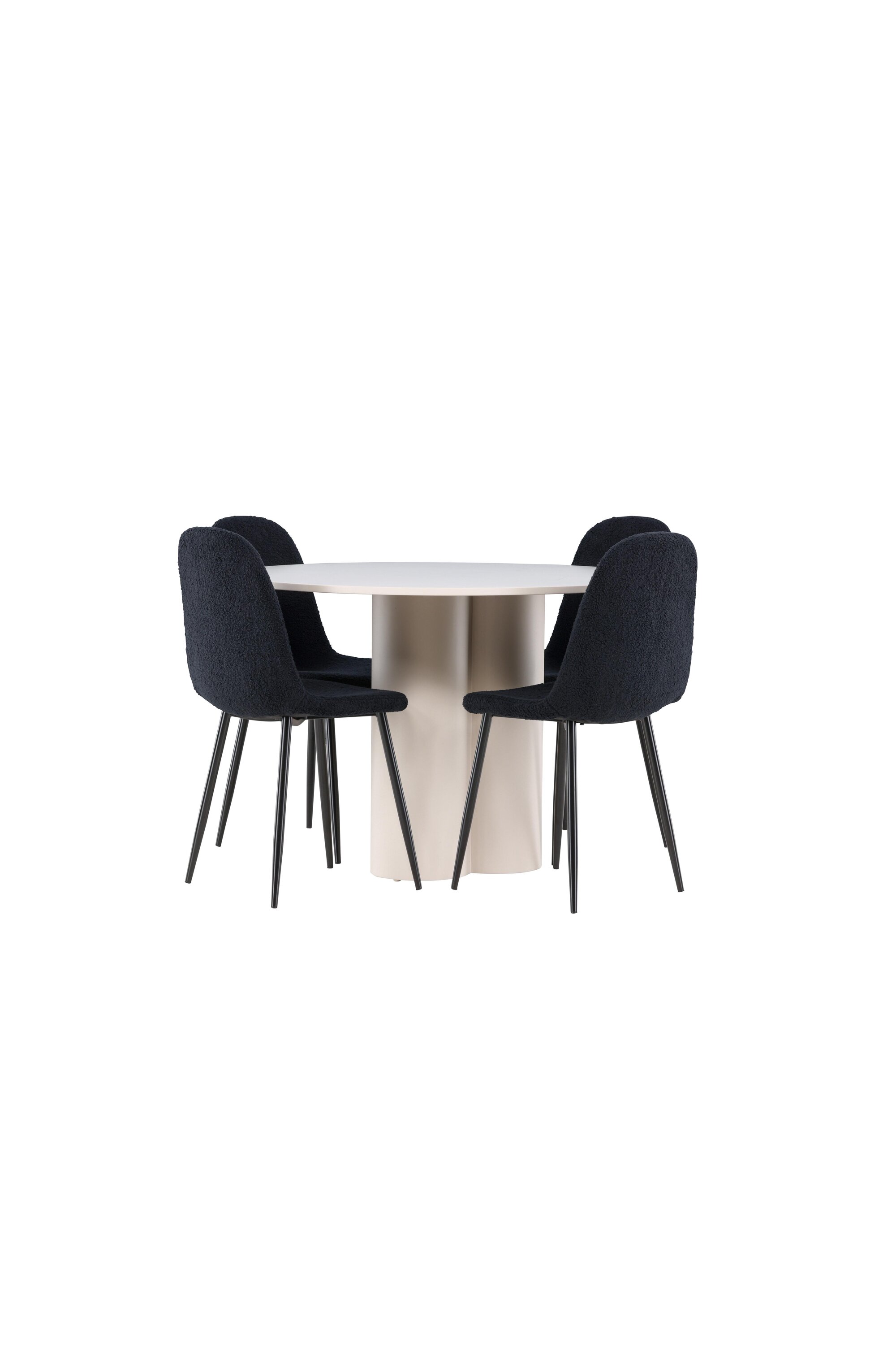 Looge elegantne ja kutsuv söögituba meie elegantse söögikomplektiga, mis ühendab Olivia laua mugavate Polari toolidega. See söögikomplekt, mis sobib ideaalselt nii igapäevaseks õhtusöögiks kui ka pidulikuks sündmuseks, loob teie söögitoale kaasaegse ja harmoonilise atmosfääri. MDF-st valmistatud Olivia laual on helebeež värv, mis lisab teie söögitoale sooja ja kutsuva tunde. 110 cm läbimõõduga laud pakub rohkelt ruumi söögiks ja vestlusteks, ümar kuju loob aga tasakaalustatud ja sotsiaalse keskkonna. Laua vastupidav konstruktsioon tagab pikaajalise kasutuse ja stabiilsuse. Neli Polari tooli täiendavad lauda suurepäraselt oma elegantsete mustast polüesterkarussist istmetega. Need toolid pakuvad nii mugavust kui ka stiili, muutes need ideaalseks pikaks ja nauditavaks õhtusöögiks pere ja sõpradega. Nende kaasaegne disain koos kõrgete seljatugede ja pehmete istmetega annab teie söögitoale rafineeritud ja kaasaegse ilme. See söögikomplekt on täiuslik kombinatsioon esteetikast ja funktsionaalsusest, mistõttu on see suurepärane valik neile, kes otsivad elegantset ja mugavat söögituba. Täiustage oma söögituba Olivia laua ja Polari toolide kombinatsiooniga ning looge koht, kus jagatakse mälestusi ja rõõmu.