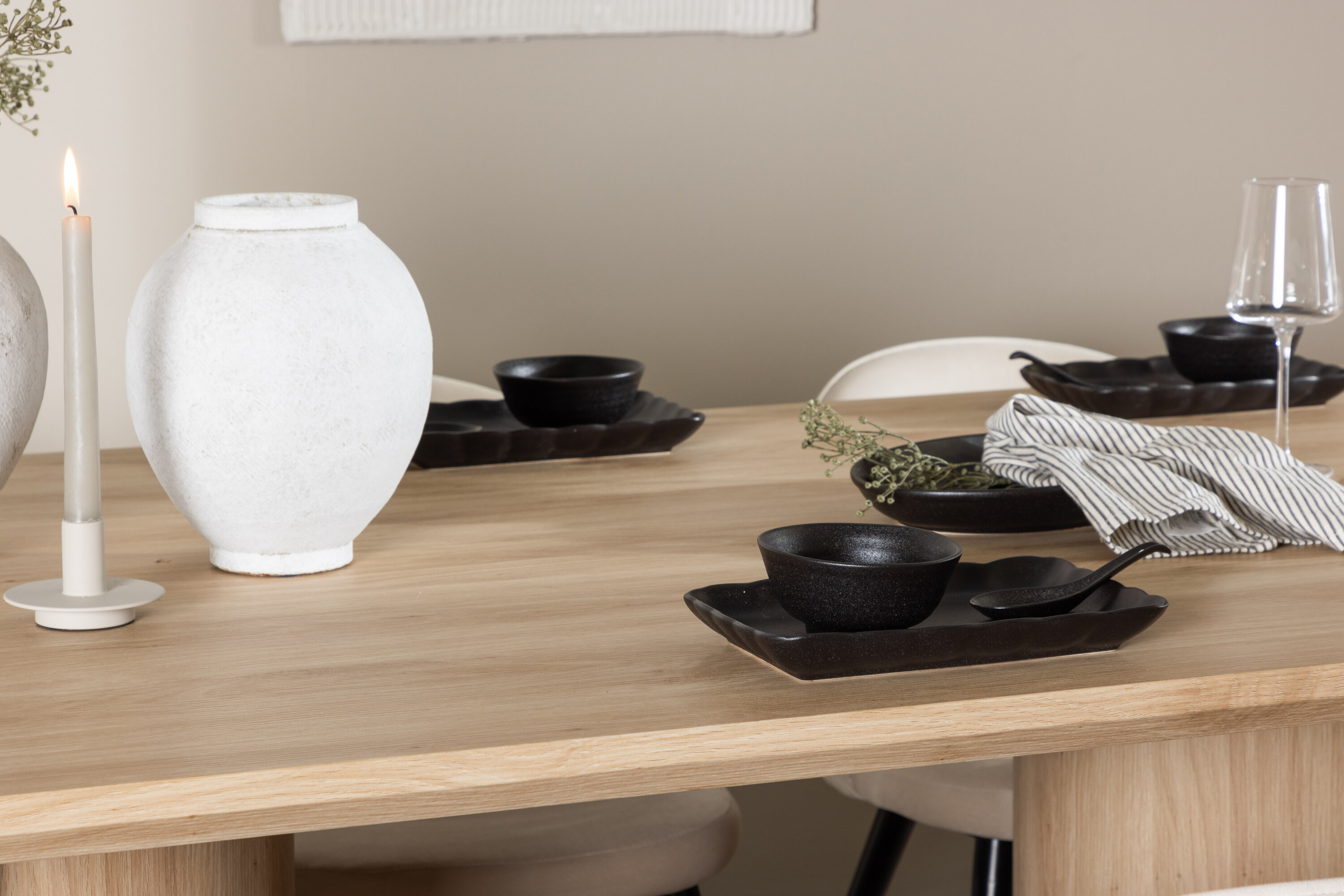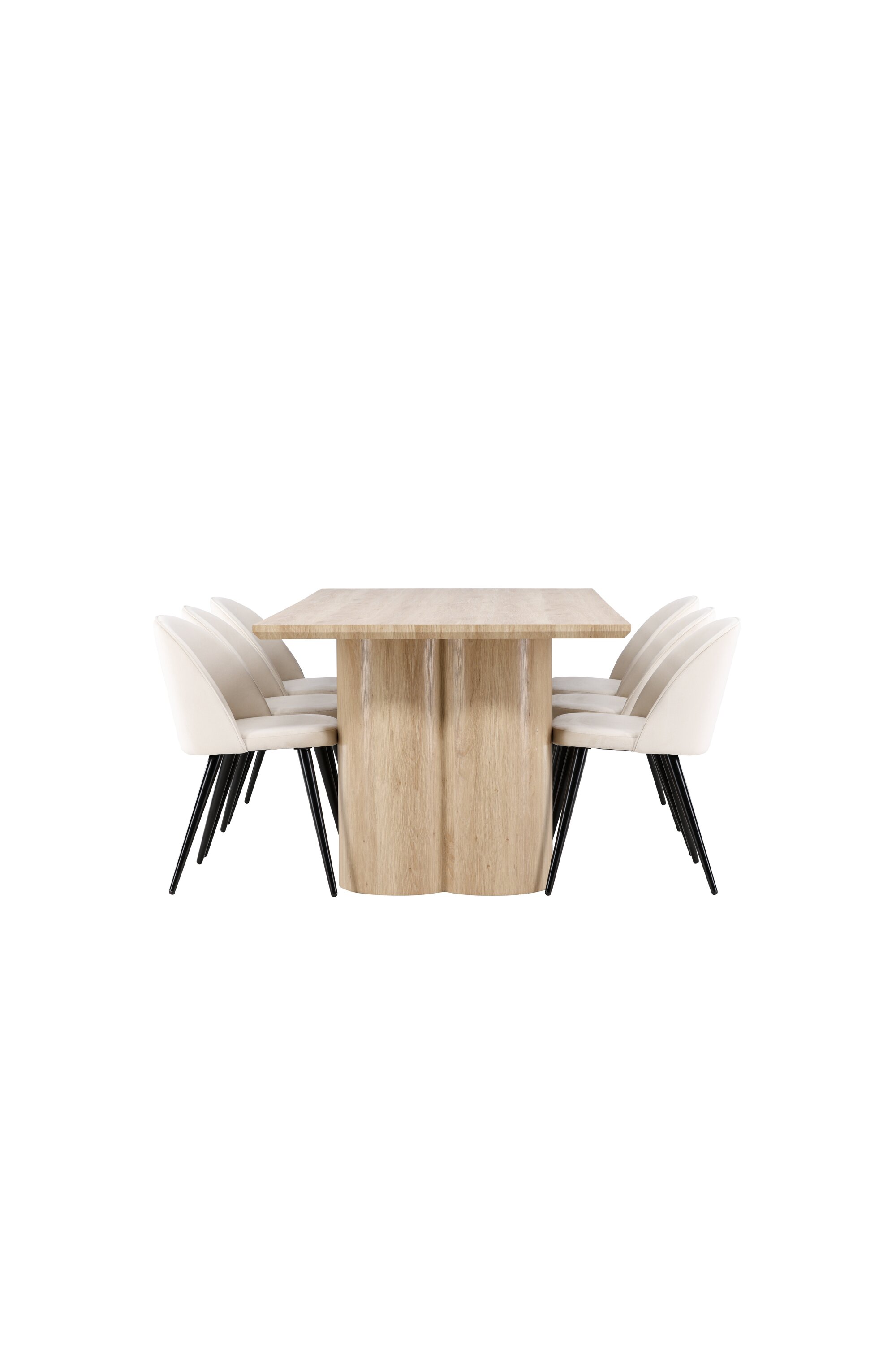 Looge meie moodsa söögikomplektiga, mis ühendab elegantsi ja mugavust, kutsuv ja stiilne söögituba. Moodne tooliunistus Velvet sarjast sileda beeži värviga! Sellel söögitoolil on täielikult polsterdatud disain, mille seljatugi ja iste on kergelt ümardatud sametkangast ning jalad mustast pulbervärvitud metallist – tagatud nii mugav kui ka pilkupüüdev. Sisusta oma kodu süda kutsuvalt ja hubaselt ning naudi koos imelisi eineid! Avasta Olivia söögilaua ilu ja funktsionaalsus. Oma suurte mõõtmetega 210×100 cm on see laud ideaalne valik sõprade ja pere tervitamiseks ühisele einele ja suhtlemisele. Olivia söögilaud on veetlevas valgeks lubjatud värvitoonis, mis loob teie tuppa maalähedase ja pingevaba õhkkonna. Maalähedane toon annab teie söögikordadele ja vestlustele soojuse ja harmoonia tunde. Looge mälestusi ja nautige meeldivaid hetki oma lähedastega Olivia söögilaua taga. Muljetavaldav suurus ja pingevaba värv aitavad luua teie kodus kutsuva ja külalislahke õhkkonna. Laske Olivia söögilaual luua teie seltskondlikke koosviibimisi ja mälestusi, mis kestavad kogu elu. Andke oma kodule harmoonia ja kogukonna tunne selle fantastilise ja funktsionaalse lauaga.