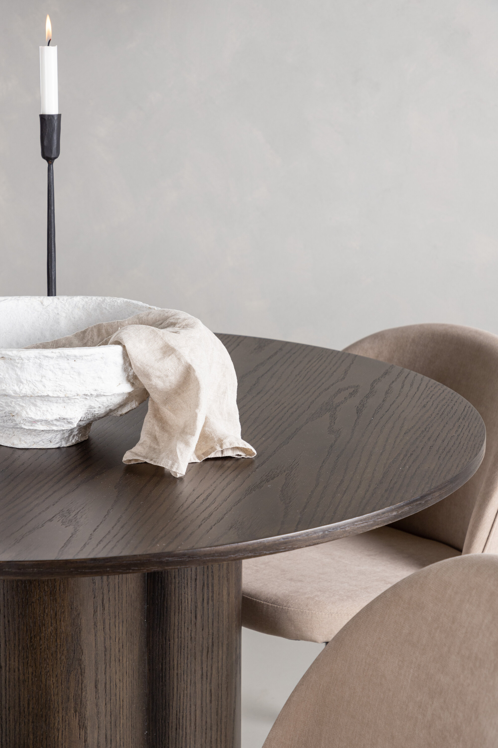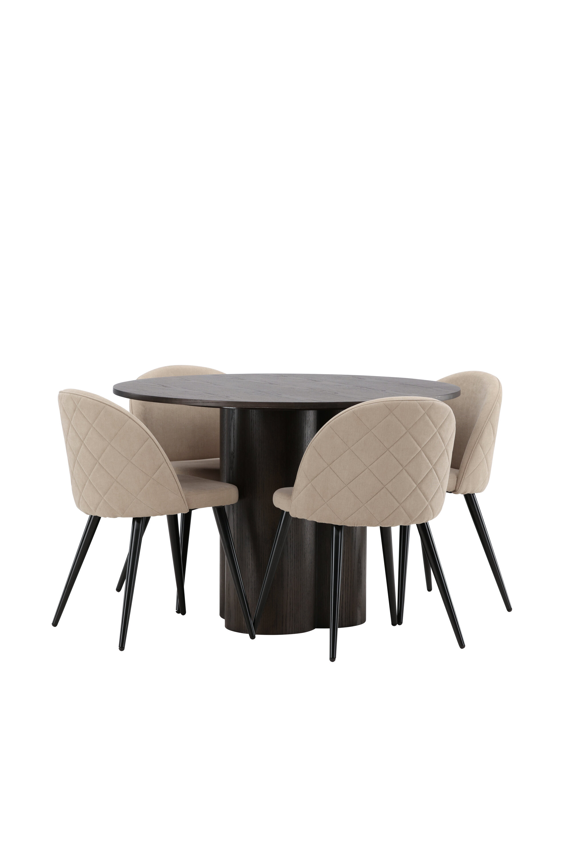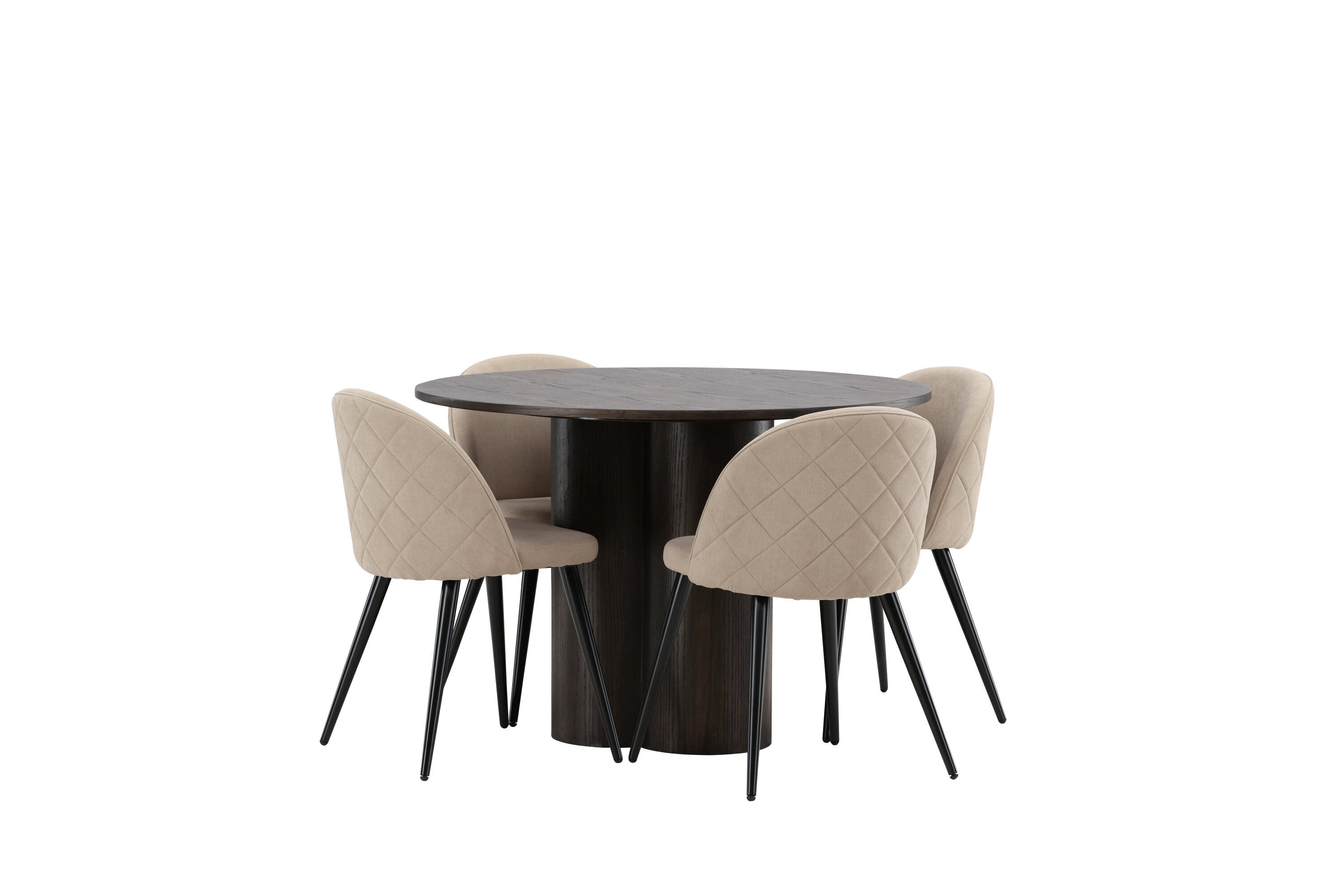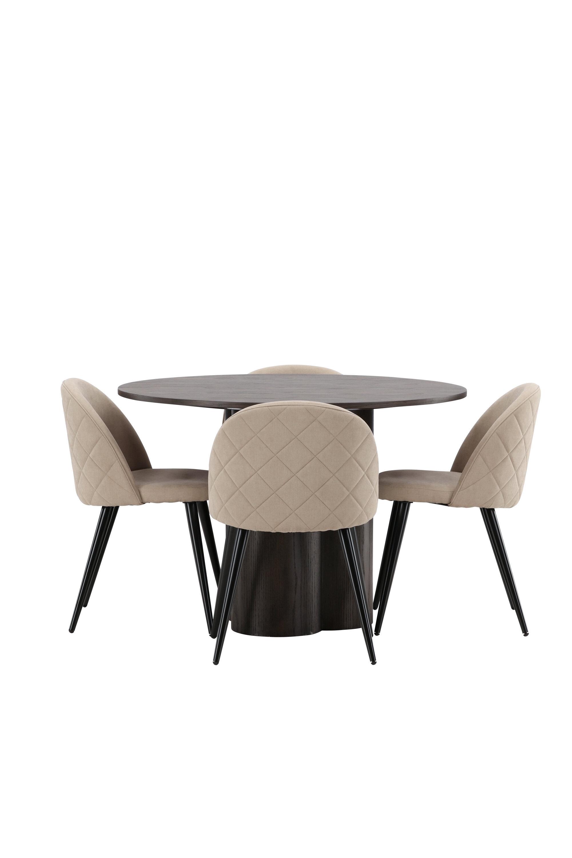 Loo pilkupüüdja oma kodu südames! Söögilaud Olivia avaldab muljet oma skandinaavialiku ja maitseka disainiga. Laud on maitsekas MDF-plaadist mokavärvi, õhukese ümara ülaosa ja kolme silindrikujulise jalaga, mis on koondatud laua keskosa alla. Värvil on hele kate, mis teeb materjali mustri nähtavaks. Siin koos Velvet Stitches sarja söögitoolidega. Sellel söögitoolil on täielikult polsterdatud disain, kergelt ümardatud seljatugi ja iste beežist polüesterkangast ning jalad mustast pulbervärvitud metallist. Istu mugavalt ja mõnusalt!