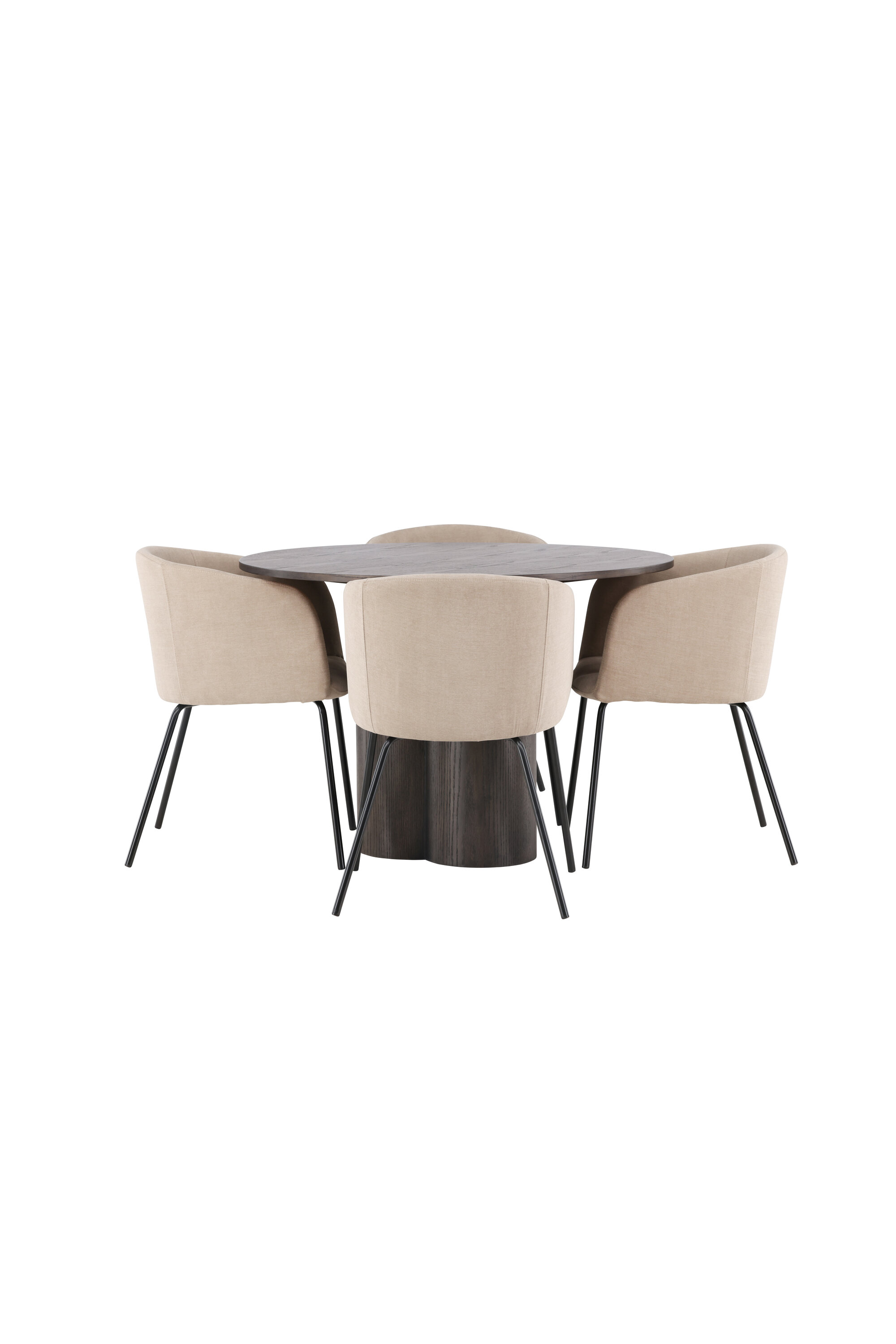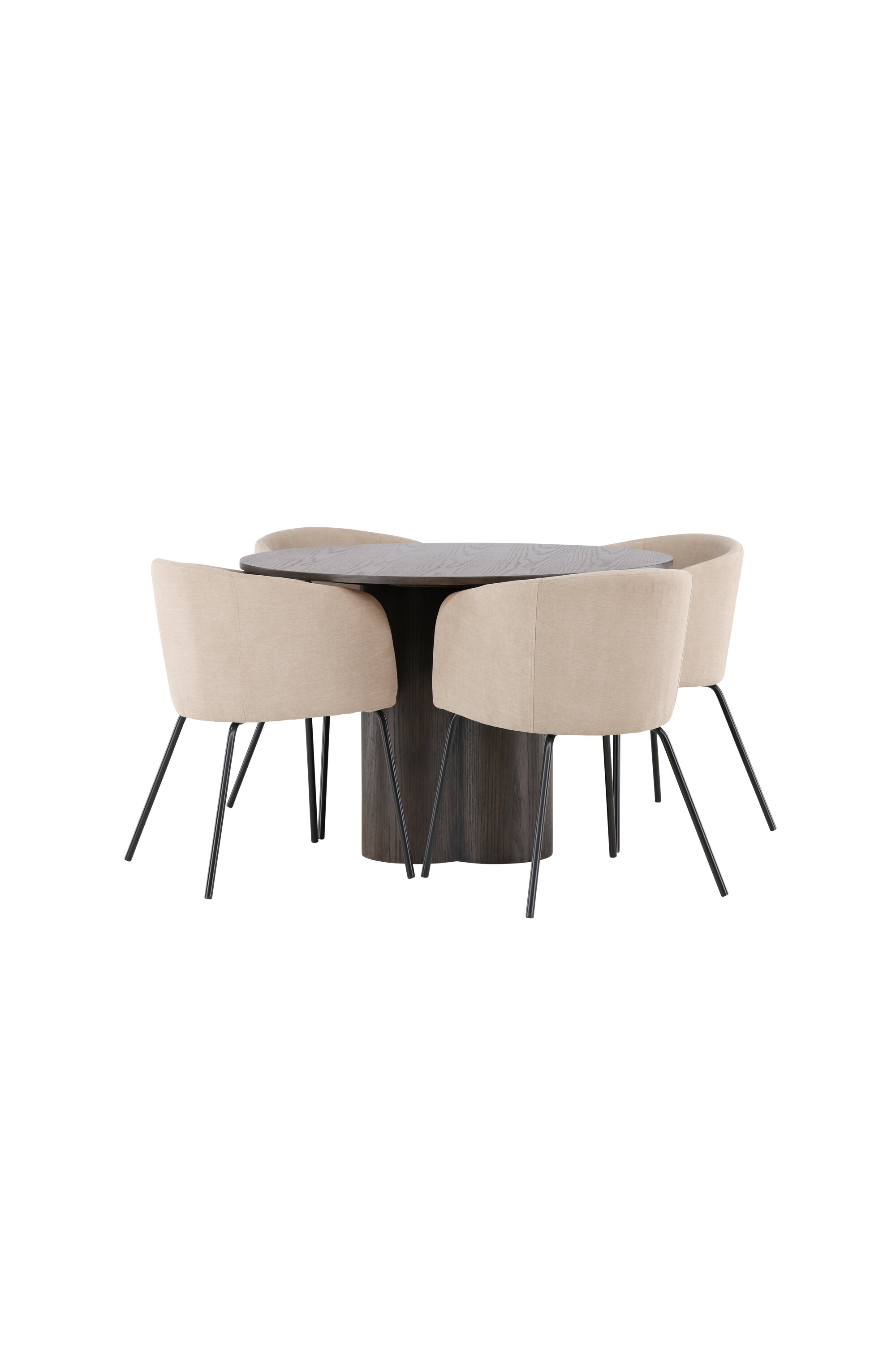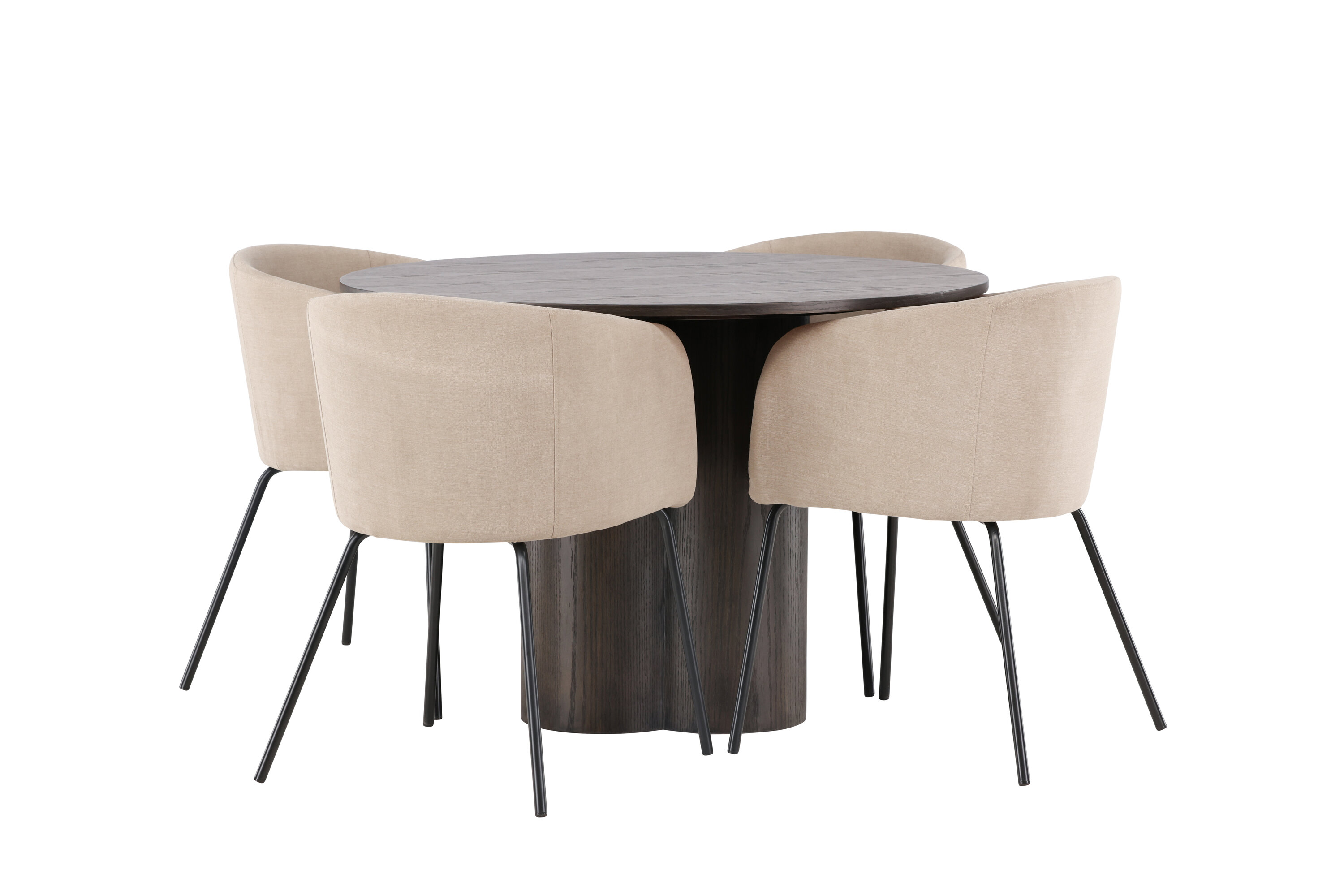 Maalähedased värvid soojendavad teie kodu atmosfääri! Ümmargune söögilaud Olivia on skandinaavialiku ülddisainiga moodsas mokavärvis. Laual on õhuke MDF lauaplaat ja kolm silindrikujulist jalga, mis on koondatud laua keskosa alla. Värvil on hele kate, mis teeb materjali mustri nähtavaks. Siin koos meie mugavate söögitoolidega Berit. Toolil on täielikult polsterdatud disain, kergelt ümardatud seljatugi ja iste polüesterlinast ning kitsad mustast rauast jalad. Siin peaks olema hea end sisse seada! Laua mõõdud: 110 cm.