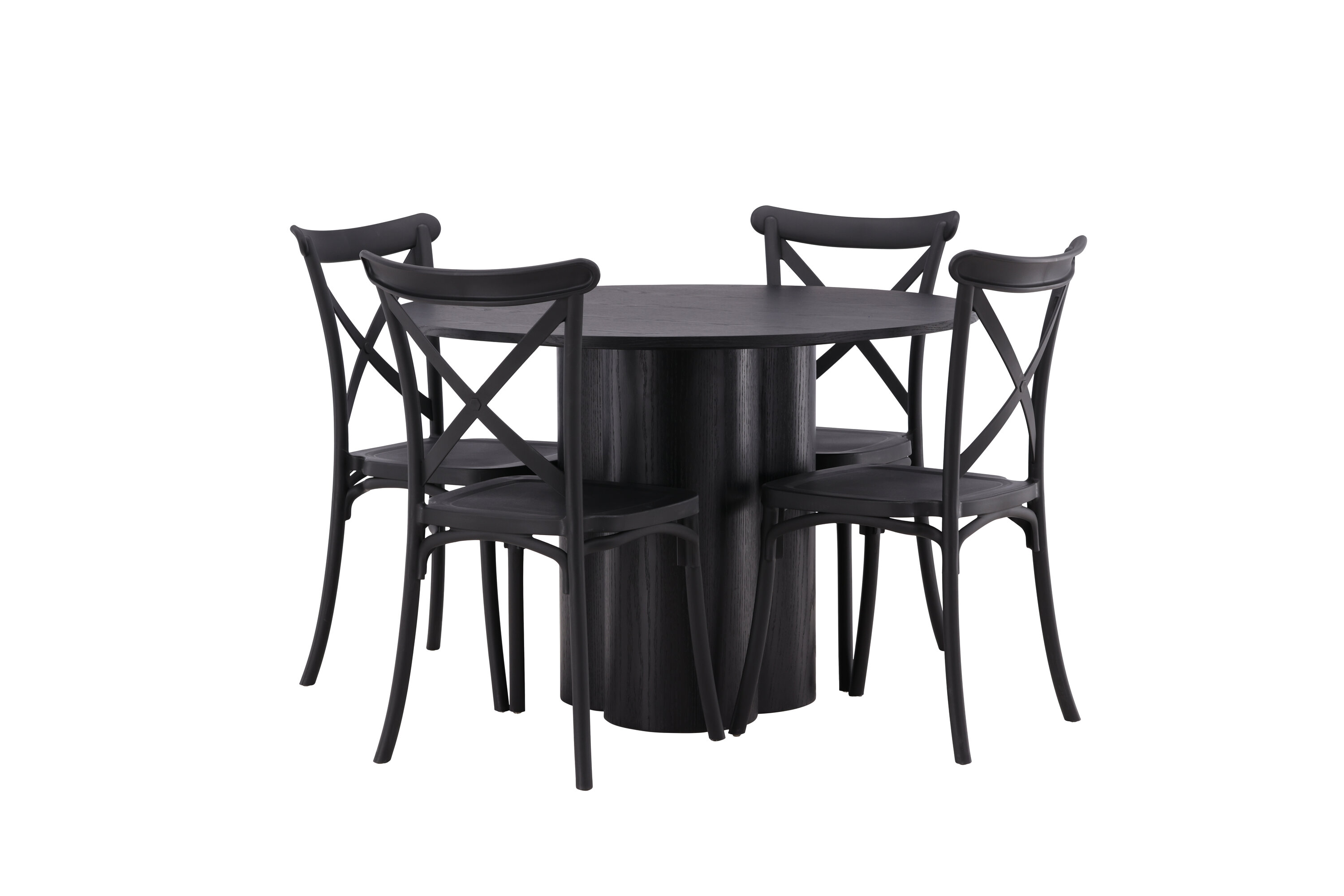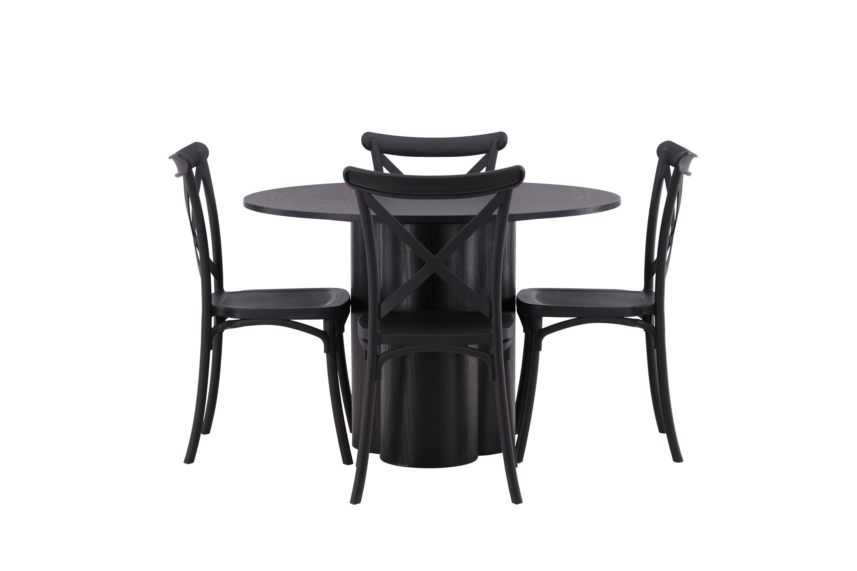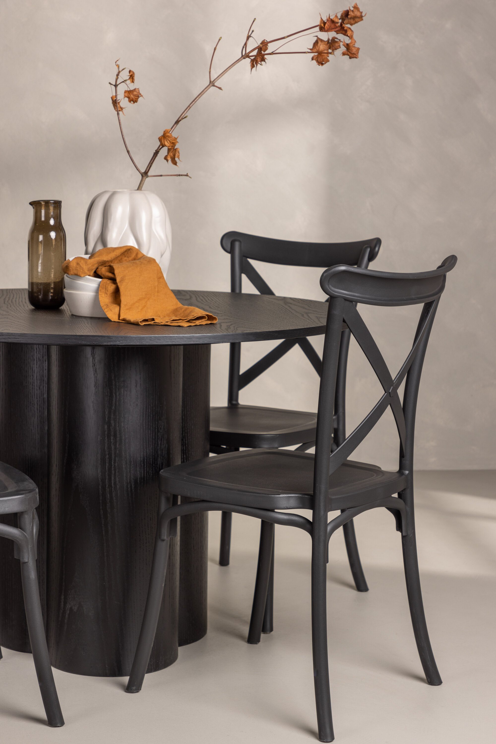 Tõstke stiilitaset oma kodu südames! Siin on meie armsad Crosett sarja söögitoolid, mis ühendavad klassikalised stiilid kaasaegse disainiga. Iste on järjekindlalt valmistatud käepärasest plastikust ja selle mattmust värv, mis peab ajaproovile vastu. See sobib ideaalselt meie populaarse söögilauaga Olivia. Laual on kõikehõlmav mustast MDF-plaadist terviklik disain, õhuke ümar ülaosa ja kolm silindrikujulist jalga, mis on koondatud laua keskosa alla. Värvil on spoonitud plaadil hele kate, mis teeb materjali mustri nähtavaks. Nautige edaspidi meeldivaid sööke!