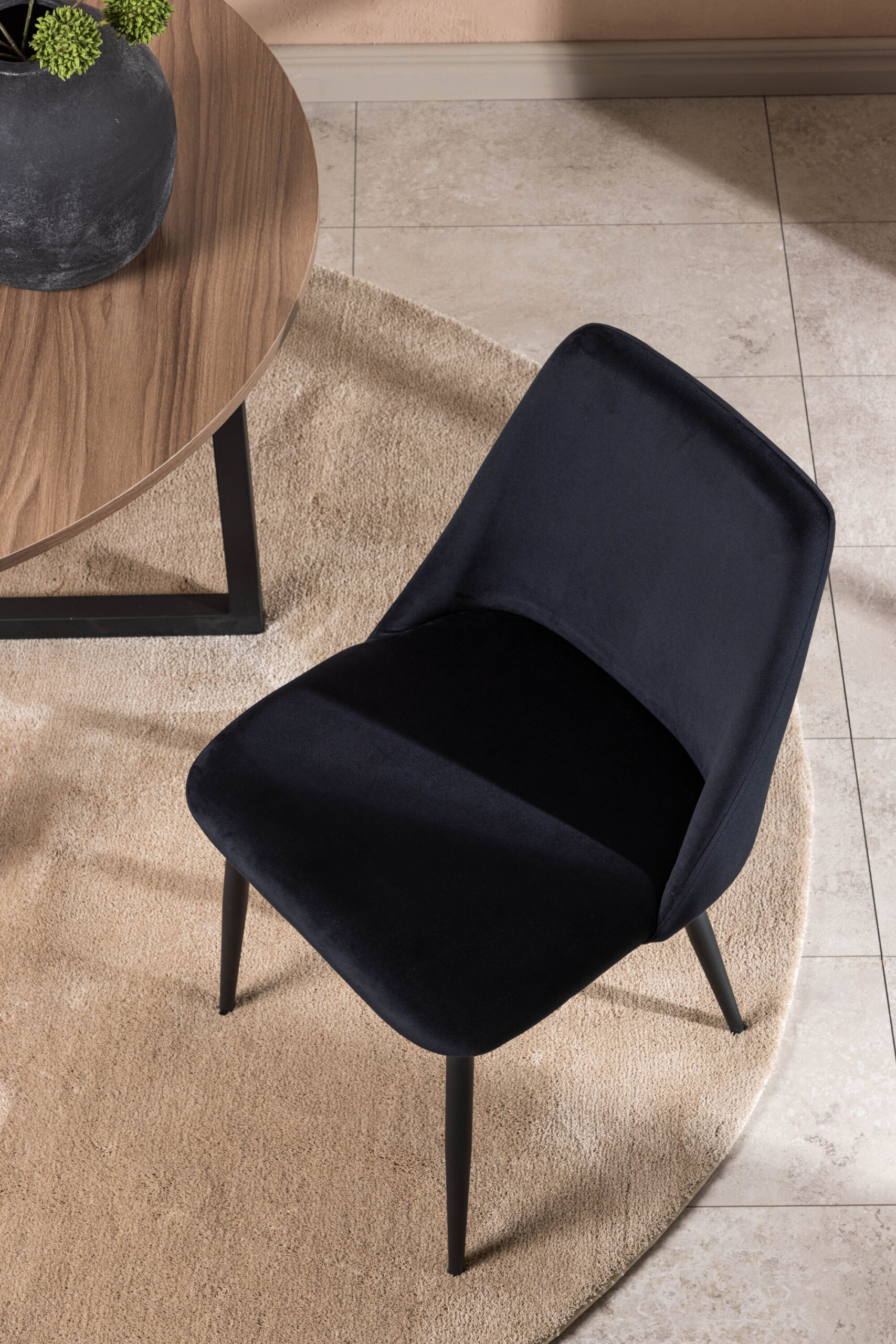 Söögitool sarjast NIGHT on sama mugav kui stiilne! Toolil on mustast sametkangast täielikult riietatud iste ja sobivat musta värvi toolijalad. Siit saate söögitooli, mis loob ruumi luksusliku sära ning aitab kaasa kutsuvale ja moeteadlikule õhkkonnale. Maitsva eine jaoks peaks olema mõnus end sisse seada!