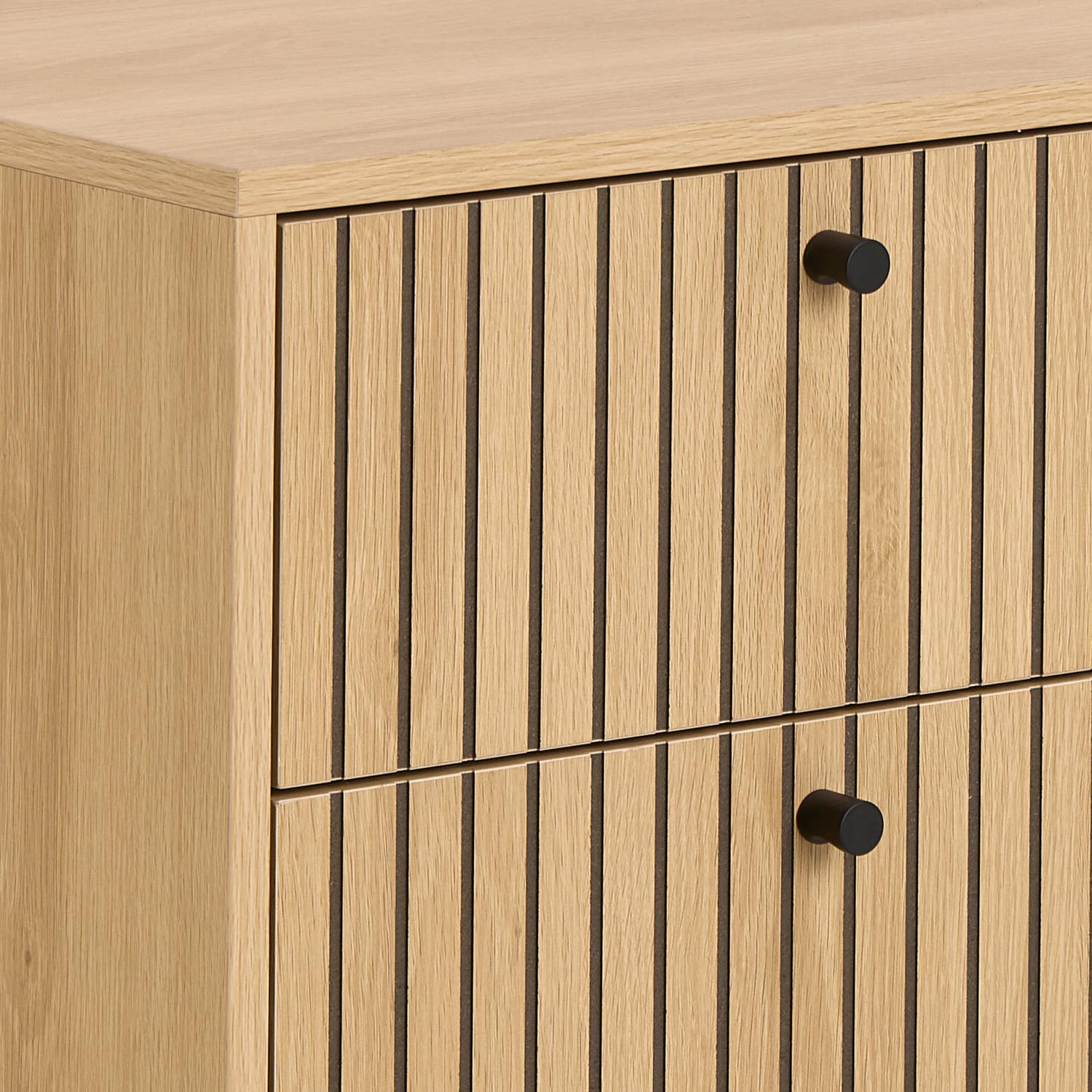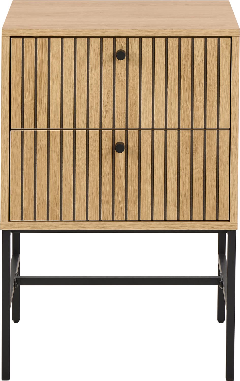 Ristkülikukujuline öökapp köidab tähelepanu. Kontrastne tamme välimus ja musta värvi aktsendid loovad hästi tasakaalustatud terviku. Kaks sahtlit pakuvad piisavalt hoiuruumi oluliste asjade jaoks. Kergesti hooldatav pind. Öökapp on valmistatud tamme melamiinist. Alus on valmistatud mattmustast pulbervärvitud terasest. Mõõdud 45,6x40xH70cm.
