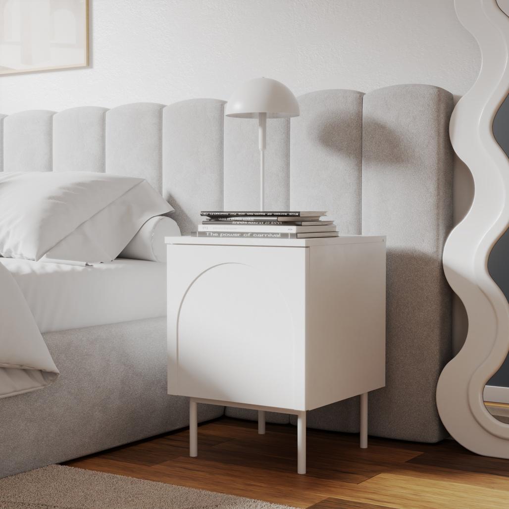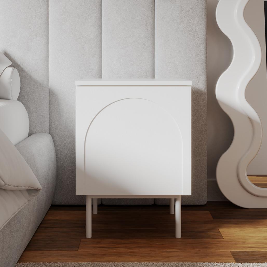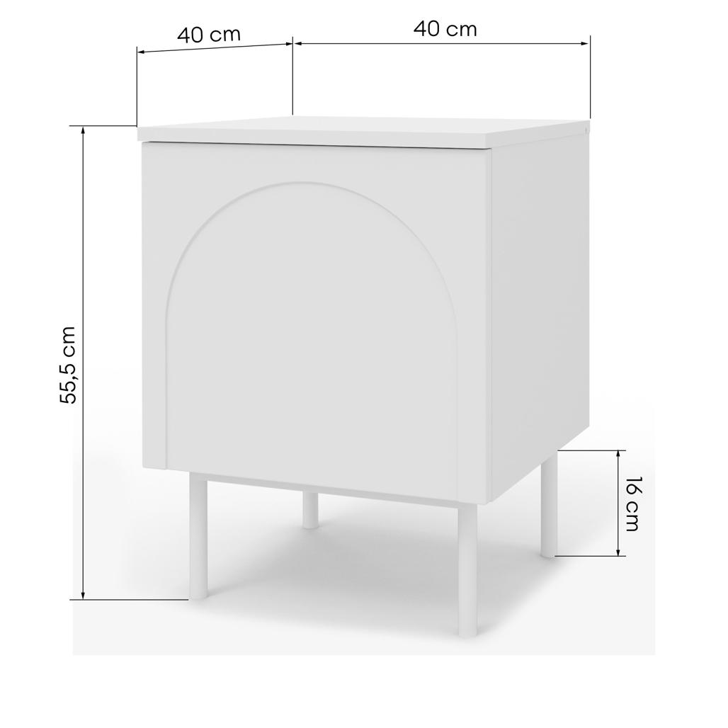 ASTHETIC öökapp mitte ainult ei lisa teie magamistuppa ainulaadset iseloomu vaid pakub ka palju funktsionaalset hoiuruumi. Suletud kapi ja praktilise riiuliga abil saate hõlpsalt korraldada väiksemaid esemeid samas kui lükkamisega avatav süsteem tagab pingutuseta ja mugava kasutamise. ASTHETIC öökapp pole mitte ainult väga praktiline vaid ka tõeline esiletõst teie interjööris. Selle stiilne esikülg mida kaunistavad dekoratiivsed kaarekujulised sooned annab sellele erilise iseloomu ja kõrged jalad lisavad kerge ja elegantse välimuse. Dekoratiivsed kaarekujulised sooned esiküljel. Valged metalljalad. Suletud kapp riiuliga. Lükkamisega avatav süsteem. Uksi saab paigaldada kas vasakule või paremale küljele. Mõõtmed: Kõrgus: 55 5 cm. Laius: 40 cm. Sügavus: 40 cm. Jalgade kõrgus: 16 cm.