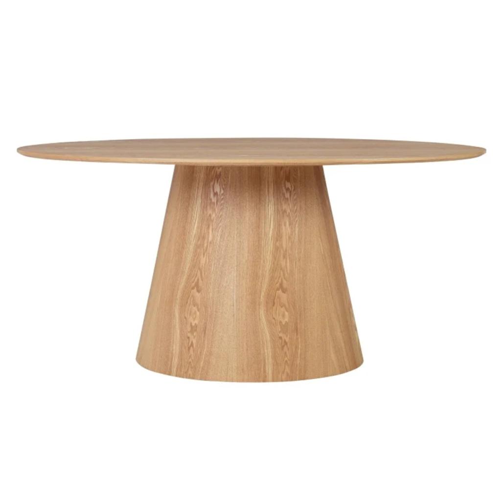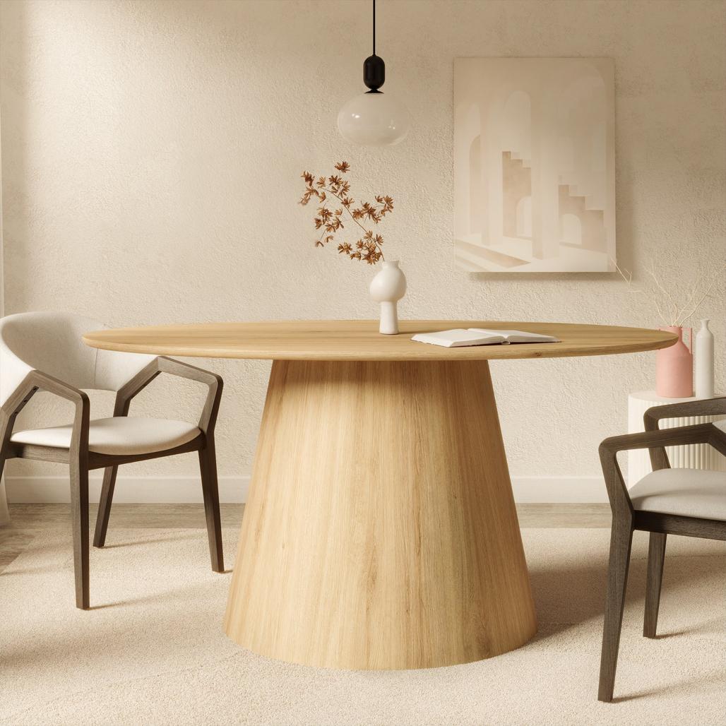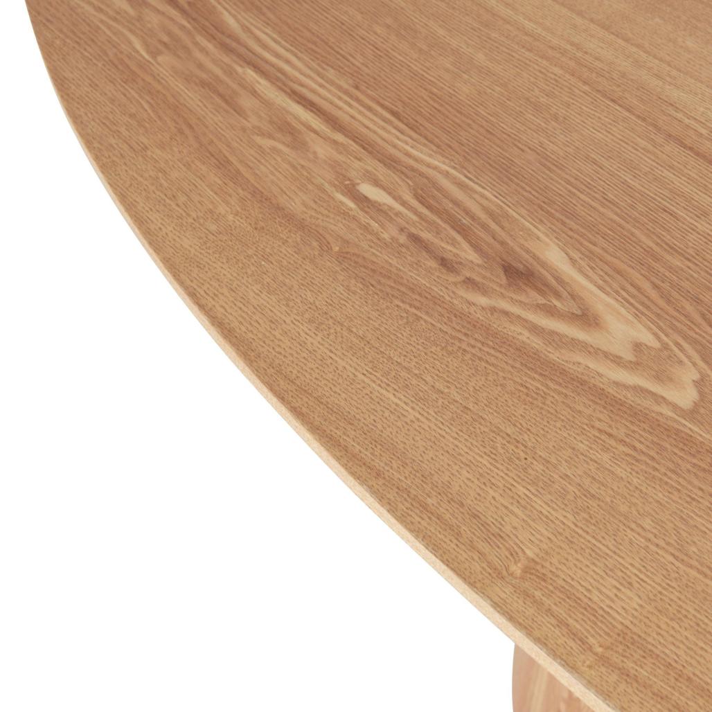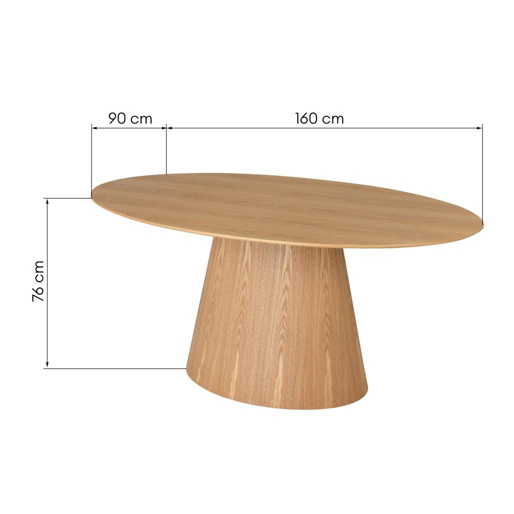 Ovaalne puidust söögilaud NOEL 160 cm See ovaalne söögilaud ühendab elegantsi ja funktsionaalsuse ideaalselt – see toob teie interjööri pehme ja orgaanilise vormi pakkudes samal ajal vastupidavat ja kutsuvat pinda igapäevasteks söögikordadeks või erilisteks koosviibimisteks. Vastupidavast MDF-plaadist valmistatud ja sooja saarespooniga viimistletud laud ühendab endas töödeldud puidu tugevuse ja naturaalse puidusüü ilu. Peamised omadused: Ovaalne lauaplaat pehmema ja kutsuvama ilme saavutamiseks. Valmistatud vastupidavast MDF-plaadist naturaalse saarespooniga. Laius: 160 cm – mahutab mugavalt kuni 6 inimest. Sile lakitud pind kauakestva ilme saavutamiseks. Kus stiil kohtub igapäevase mugavusega. See laud on loodud moodsatesse eluruumidesse ning loob sooja ja seltskondliku söögikeskkonna. Ovaalne kuju soodustab suhtlemist muutes laua taga vestlemise lihtsamaks lisades samal ajal teie koju ka rafineeritud ja kaasaegse hõngu. Olenemata sellest kas naudite vaikset hommikusööki või õhtusööki sõpradega pakub see laud stiilset ja stabiilset alust igaks sündmuseks. Materjal: MDF saarespooniga. Mõõdud: Kõrgus: 76 cm Laius: 160 cm Sügavus: 90 cm