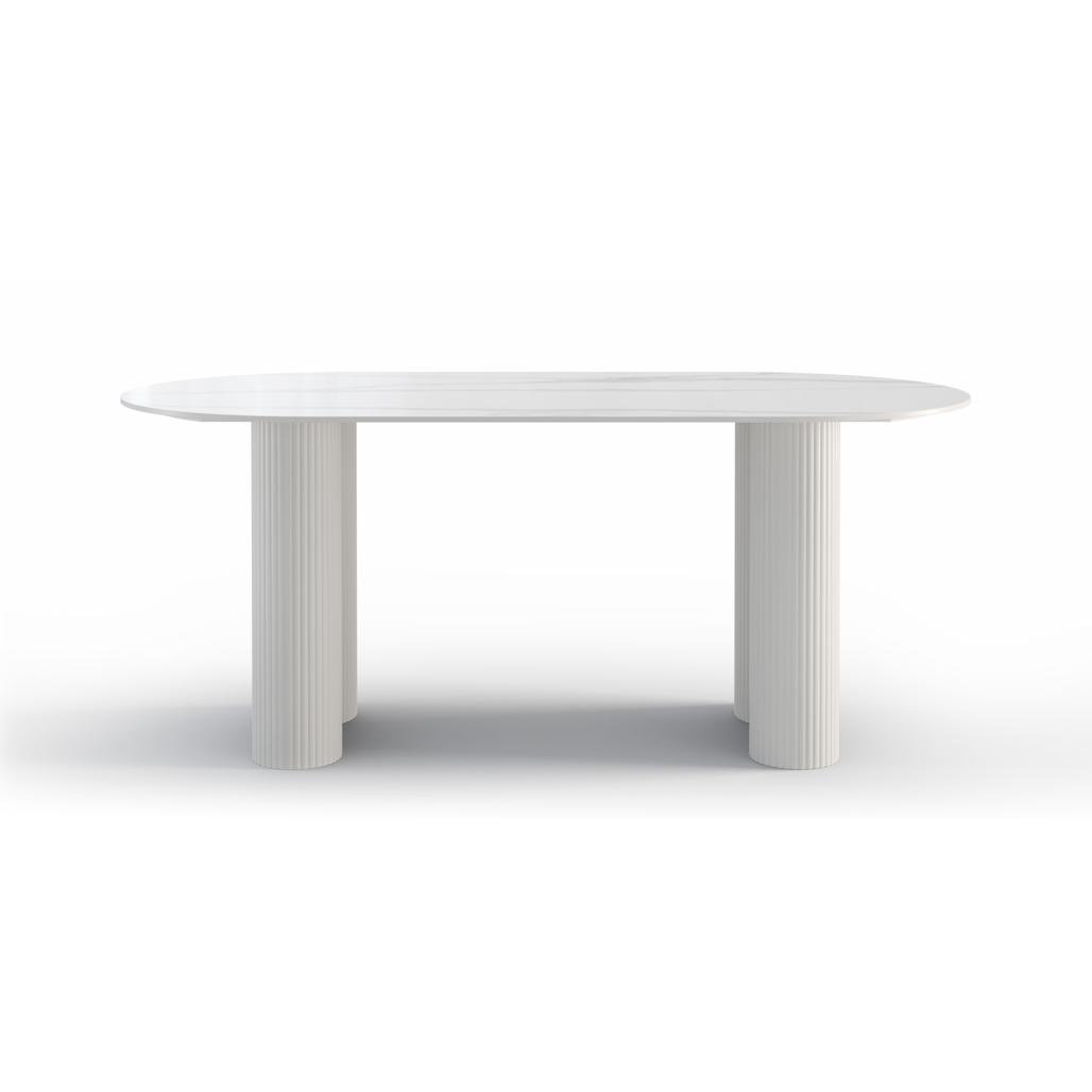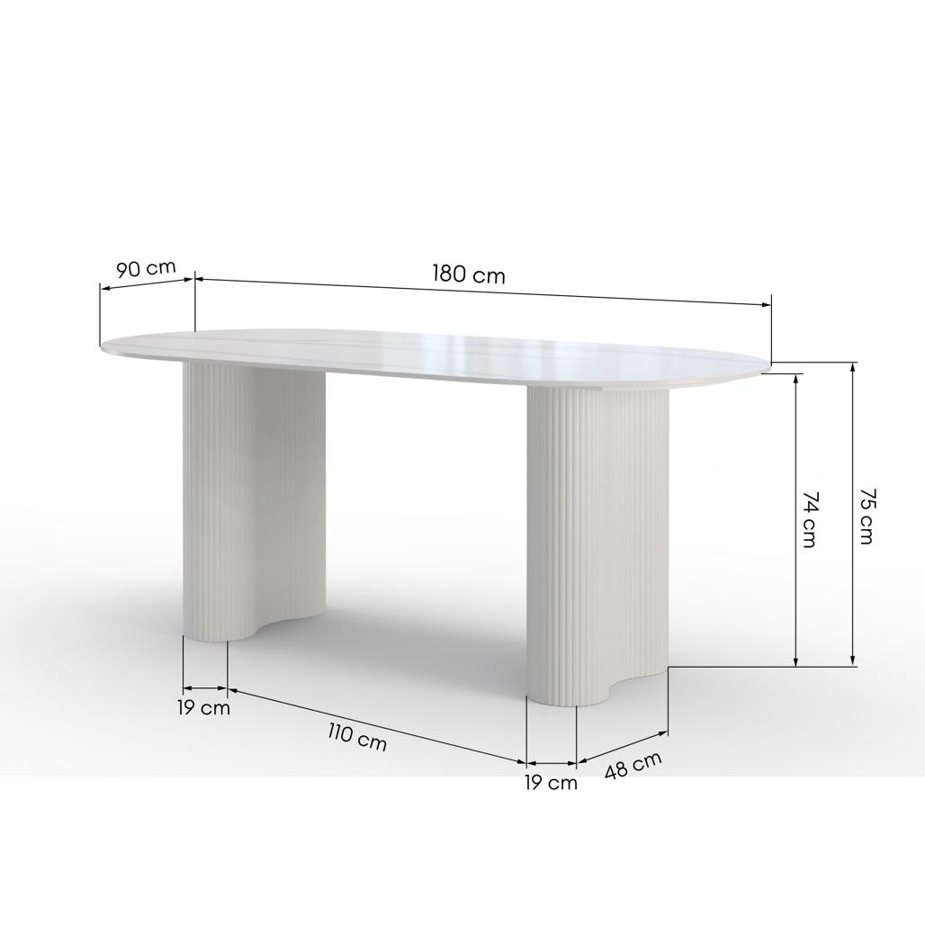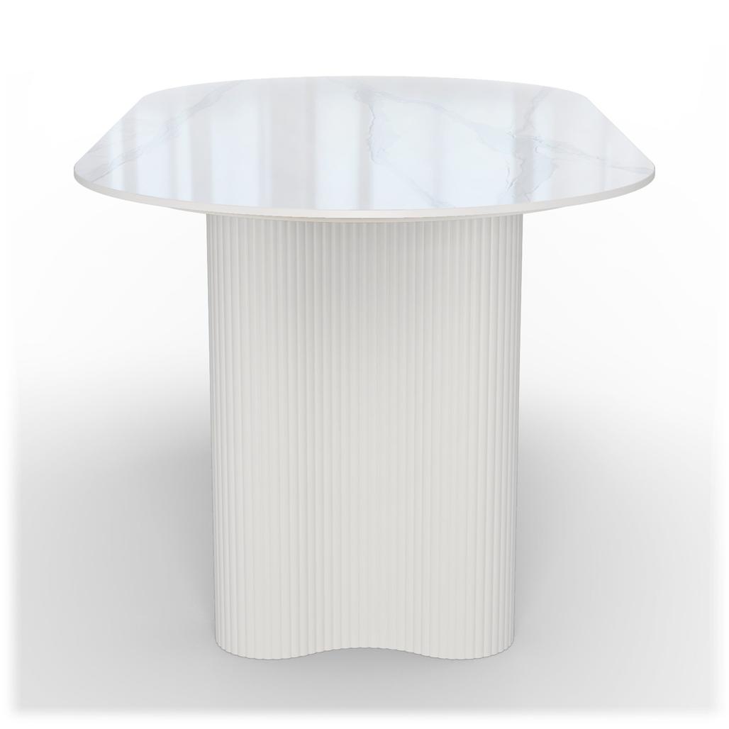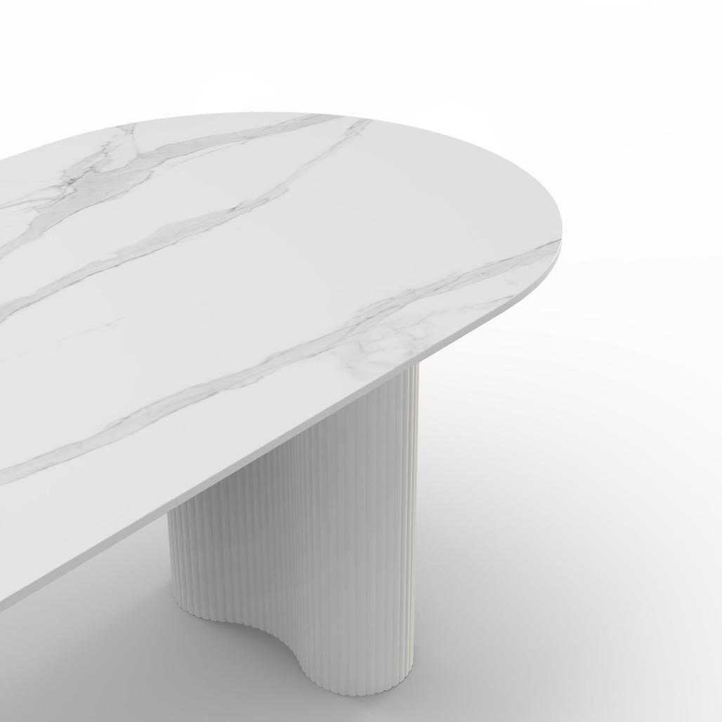 Ovaalne söögilaud Poela lamellid valge marmori efekt paagutatud