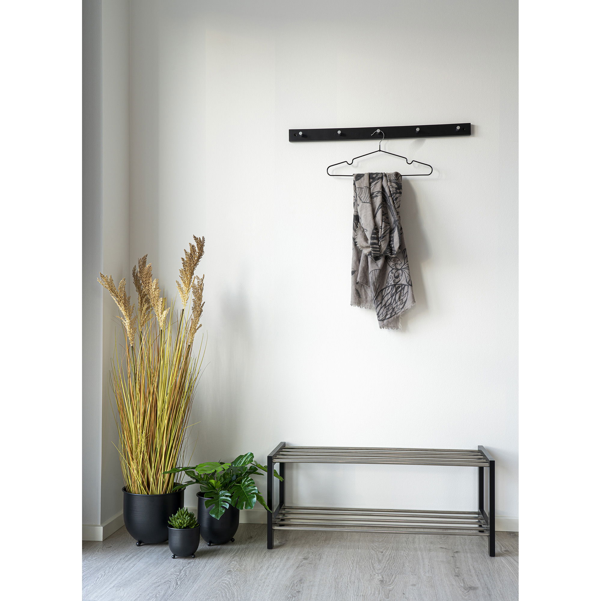 Padova jalanõuderiiul, puit/teras, 2 riiulit, must, 78×34 cm