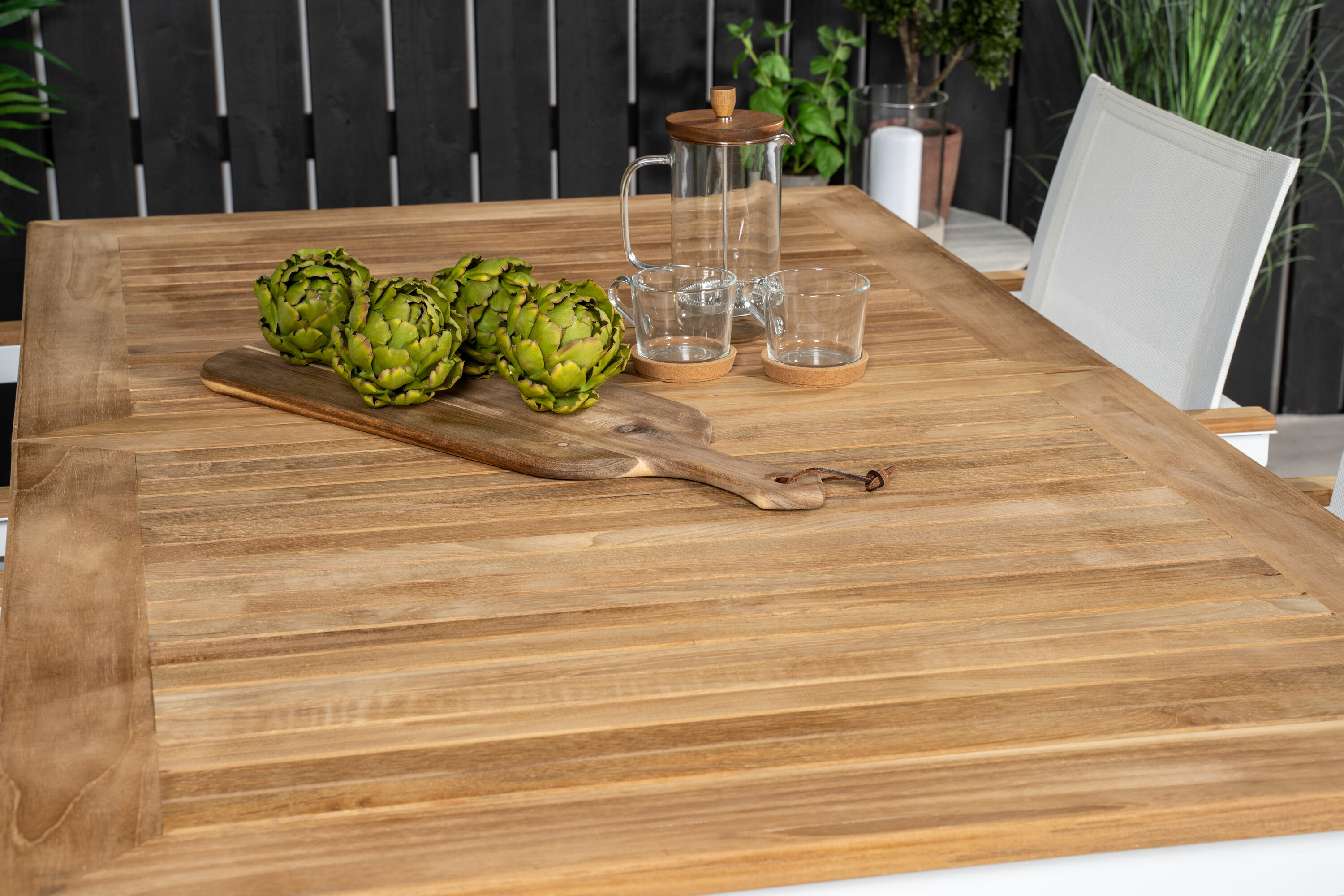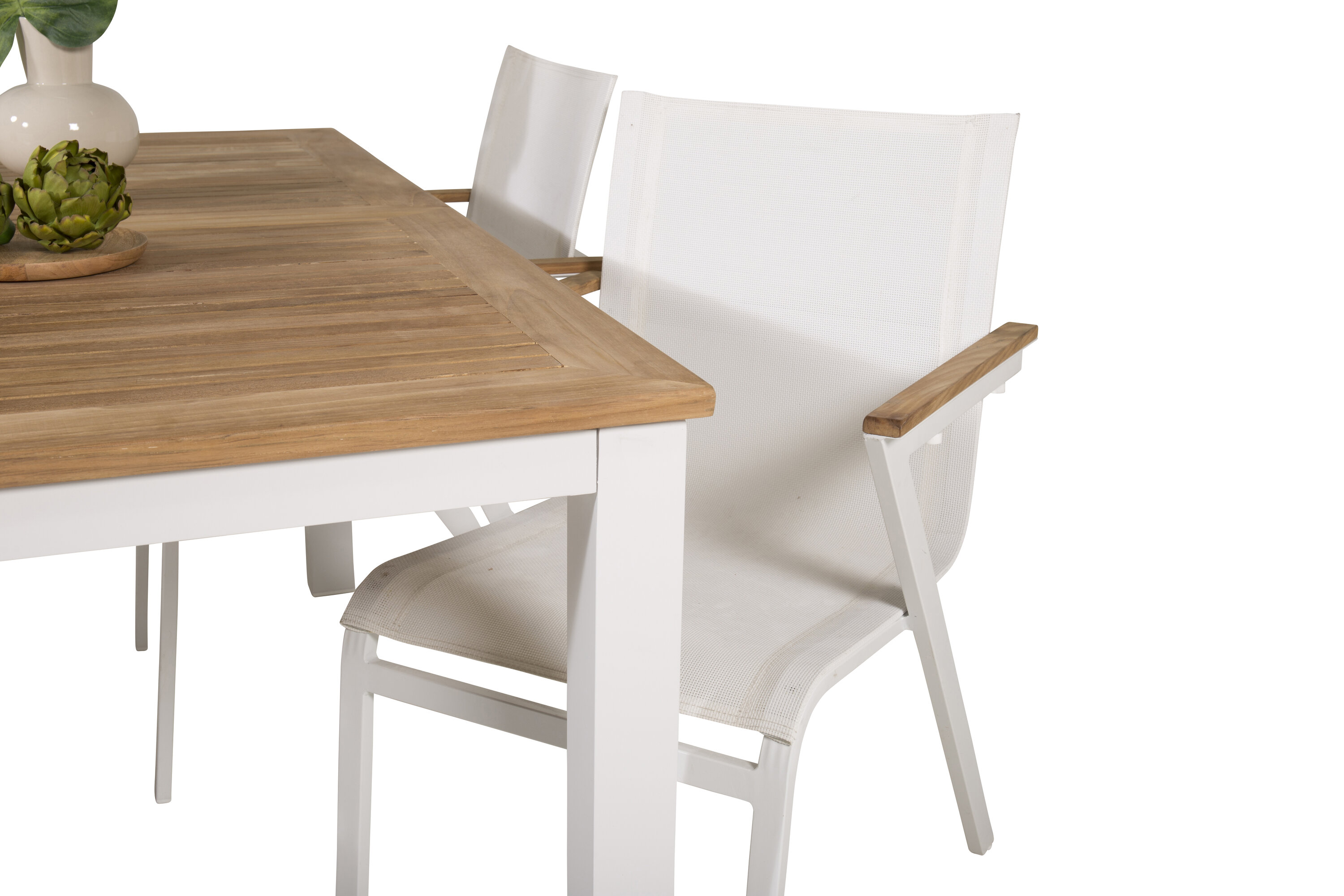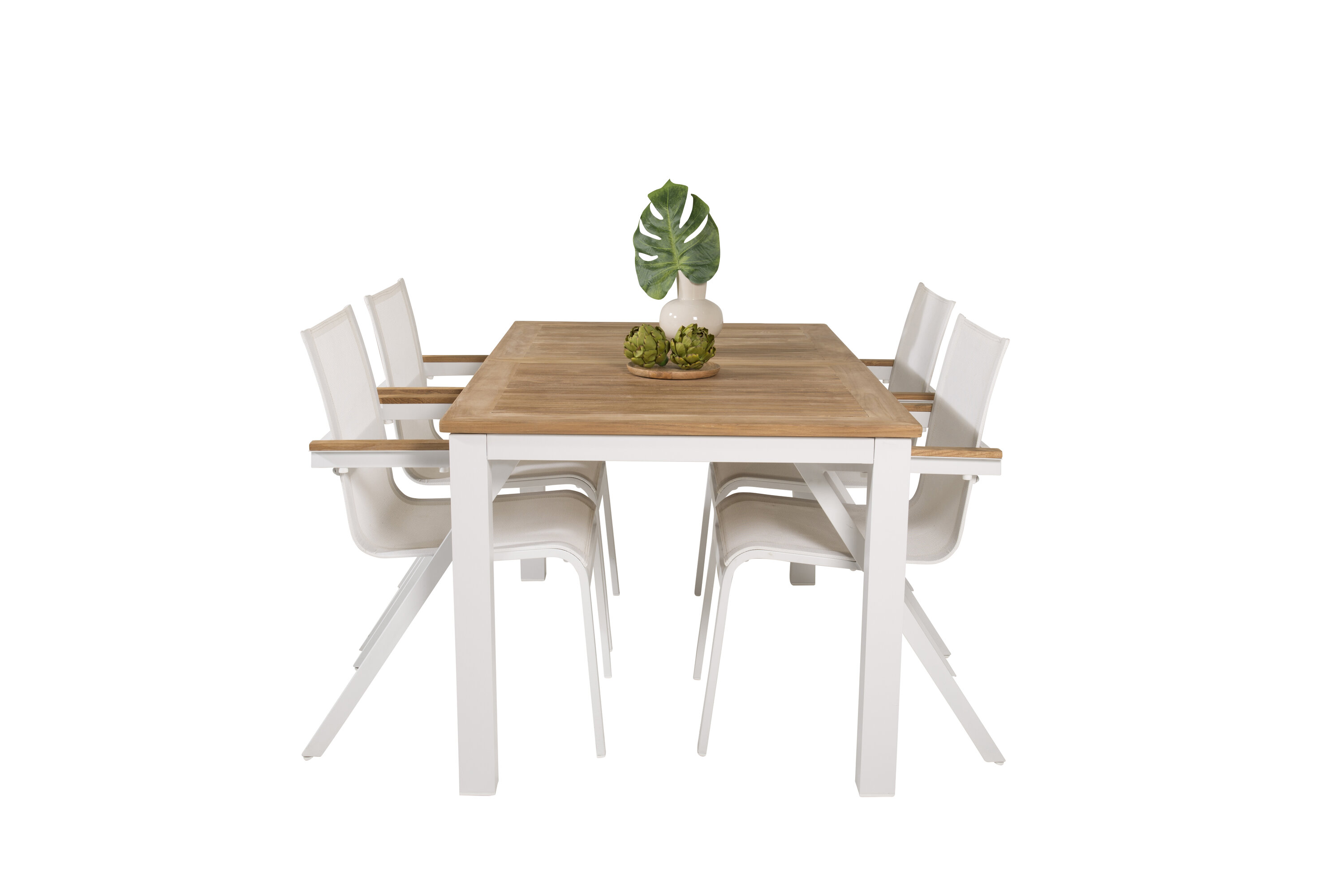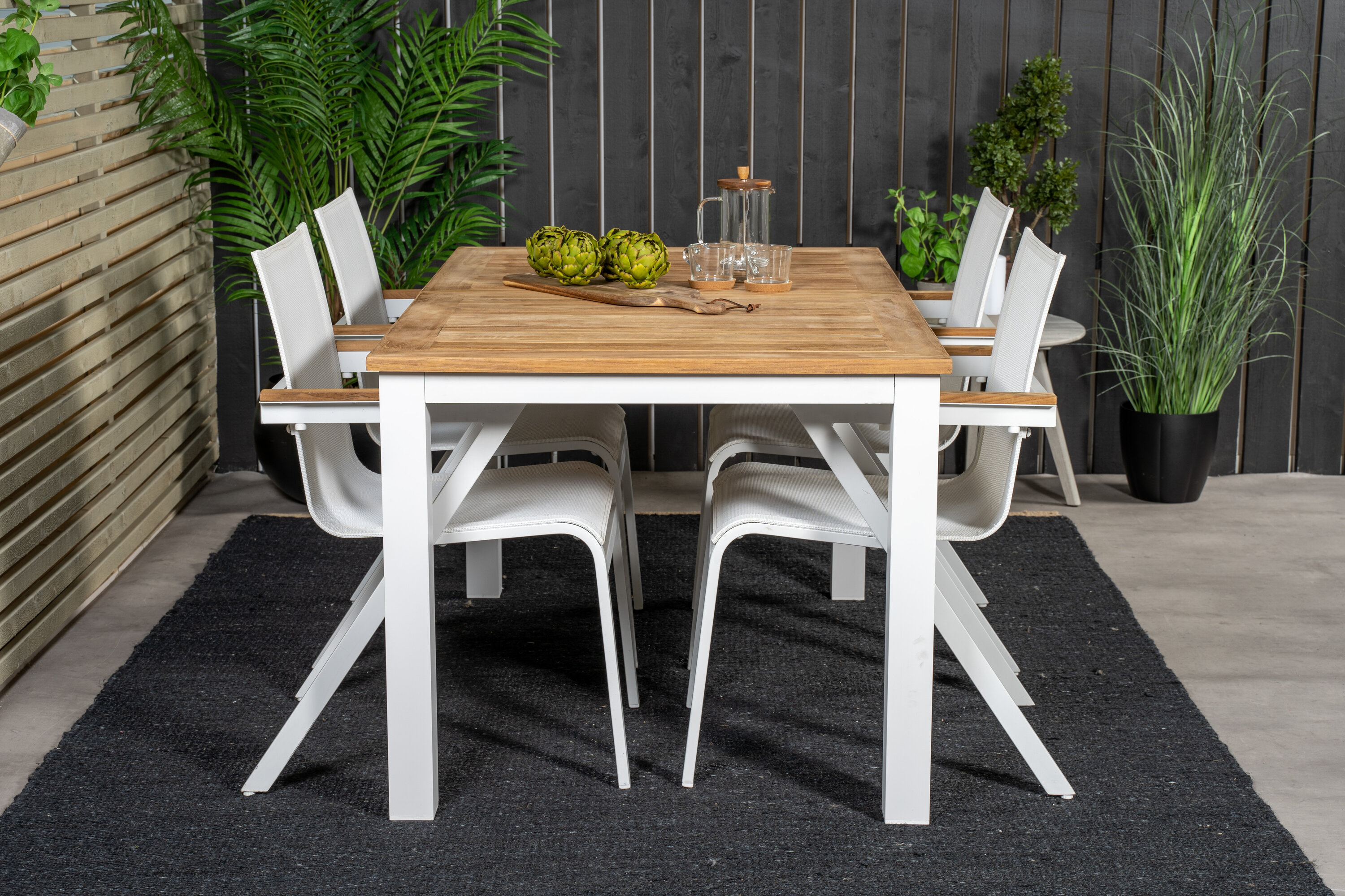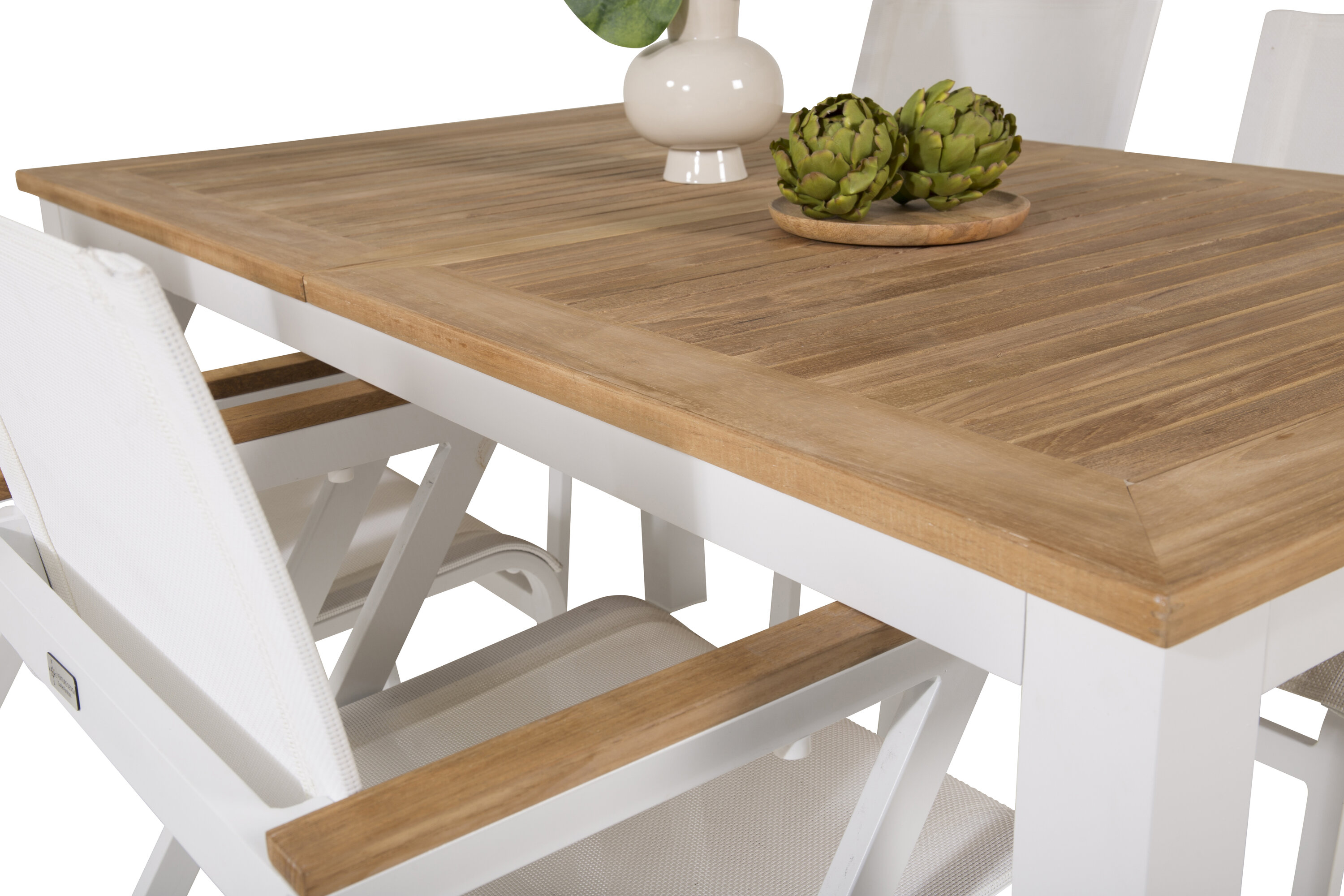 Koguge pere ühele mõnusale lõunasöögile päikese käes! Meil on söögilaud Panama stiilse puidust lauaplaadiga koos trendikate Mexico seeria söögitoolidega. Stiilne ja praktiline toidugrupp ideaalses kombinatsioonis teie terrassile.