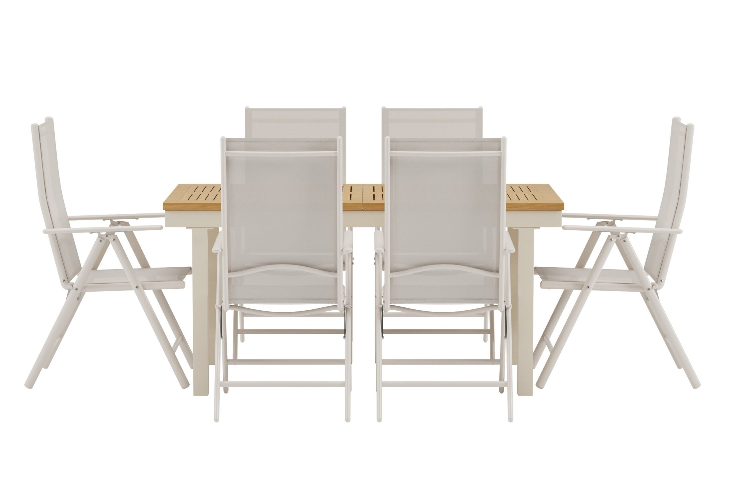 Looge selle stiilse Break lamamistoolide ja kaasaegse pikendatava Panama söögilaua kombinatsiooniga paindlik ja elegantne välisöögituba. Lamamistool Break ühendab endas vastupidava alumiiniumraam mugava tekstiilist istmega. Elegantne beež värv annab harmoonilise ilme, samas kui reguleeritav seljatugi ja kokkupandav konstruktsioon pakuvad nii mugavust kui ka lihtsat hoiustamist. Tool, mis sobib nii pikkadeks õhtusöökideks kui ka lõõgastavateks hetkedeks päikese käes. Panama söögilaud on kaasaegne ja paindlik pikendatav laud kauni tiikpuust lauaplaadi ja kerge alumiiniumraamiga. Lauda saab hõlpsasti kohandada vastavalt oma seltskonna suurusele ja see muutub kiiresti loomulikuks kogunemiskohaks nii igapäevaseks söömiseks kui ka pidulikuks sündmuseks.