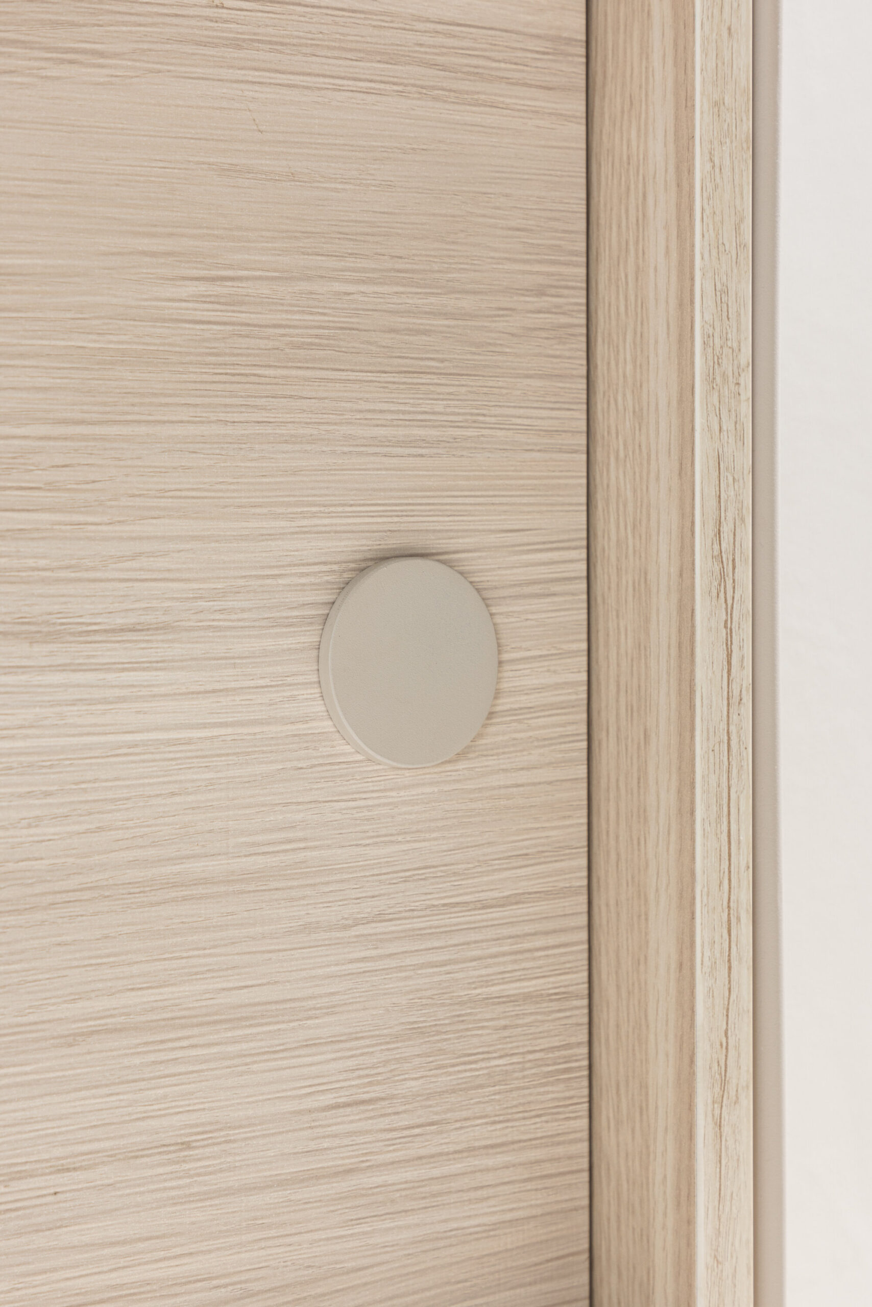 Diskreetne beeži värvi terasraam lisab teie ruumile luksusliku tunde, pakkudes samal ajal riiulile vajalikku stabiilsust. Valge kahe uksega kapp, mis on valmistatud krohvitud MDF-ist, sulandub ideaalselt terasraami värviga, luues harmoonilise tasakaalu. Sisse peidetud riiulitel saate oma asju lihtsalt hoiule panna ning luua oma koju puhta ja korrastatud keskkonna.
