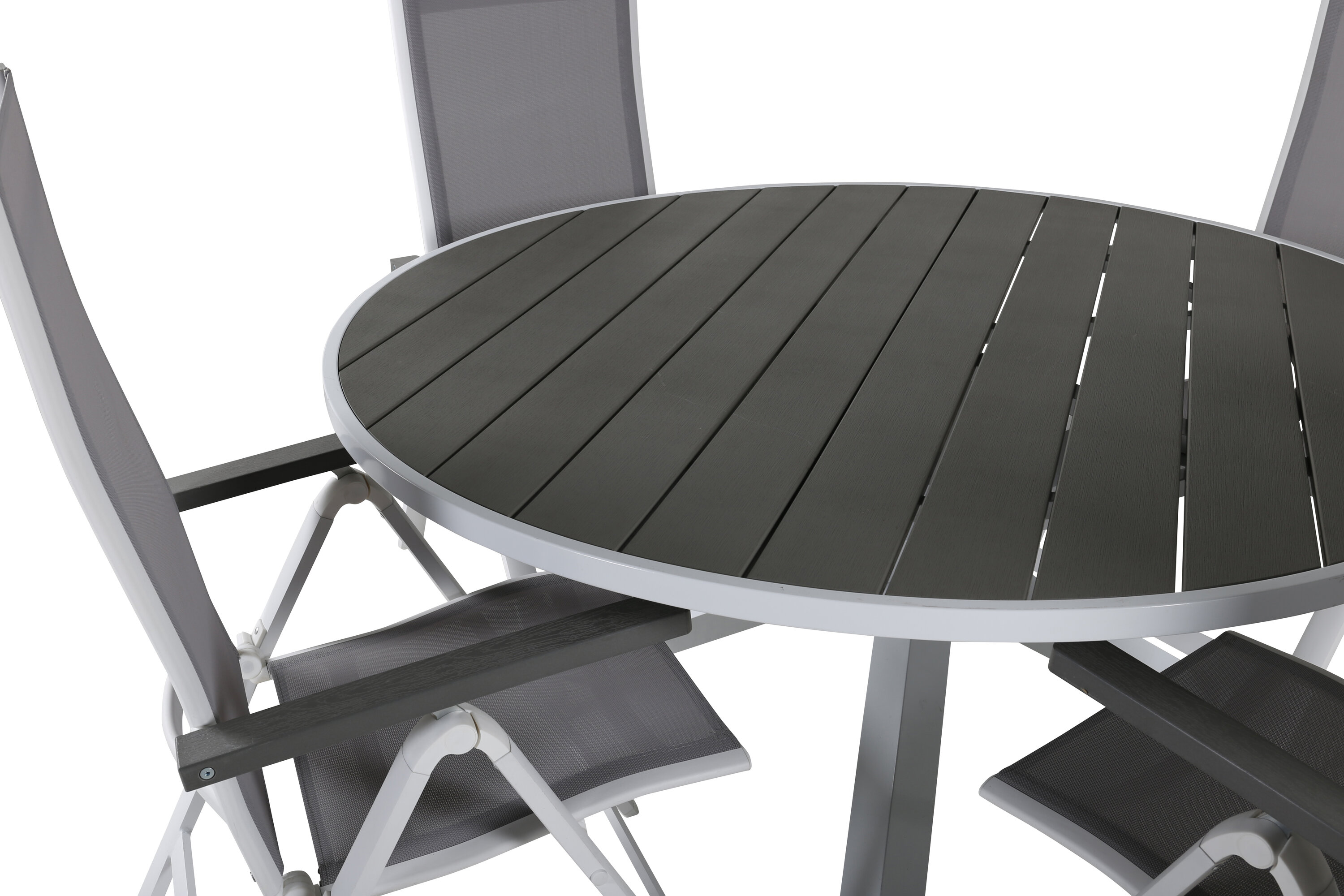 Loo terrassil seltskondlik ja meeldiv õhkkond armsa ümmarguse toidugrupiga! Söögilaud Parma on kombineeritud Albany sarja kokkupandavate toolidega. Reguleerige seljatuge optimaalse mugavuse tagamiseks – siin istute teie ja teie külalised mugavalt mitu tundi!