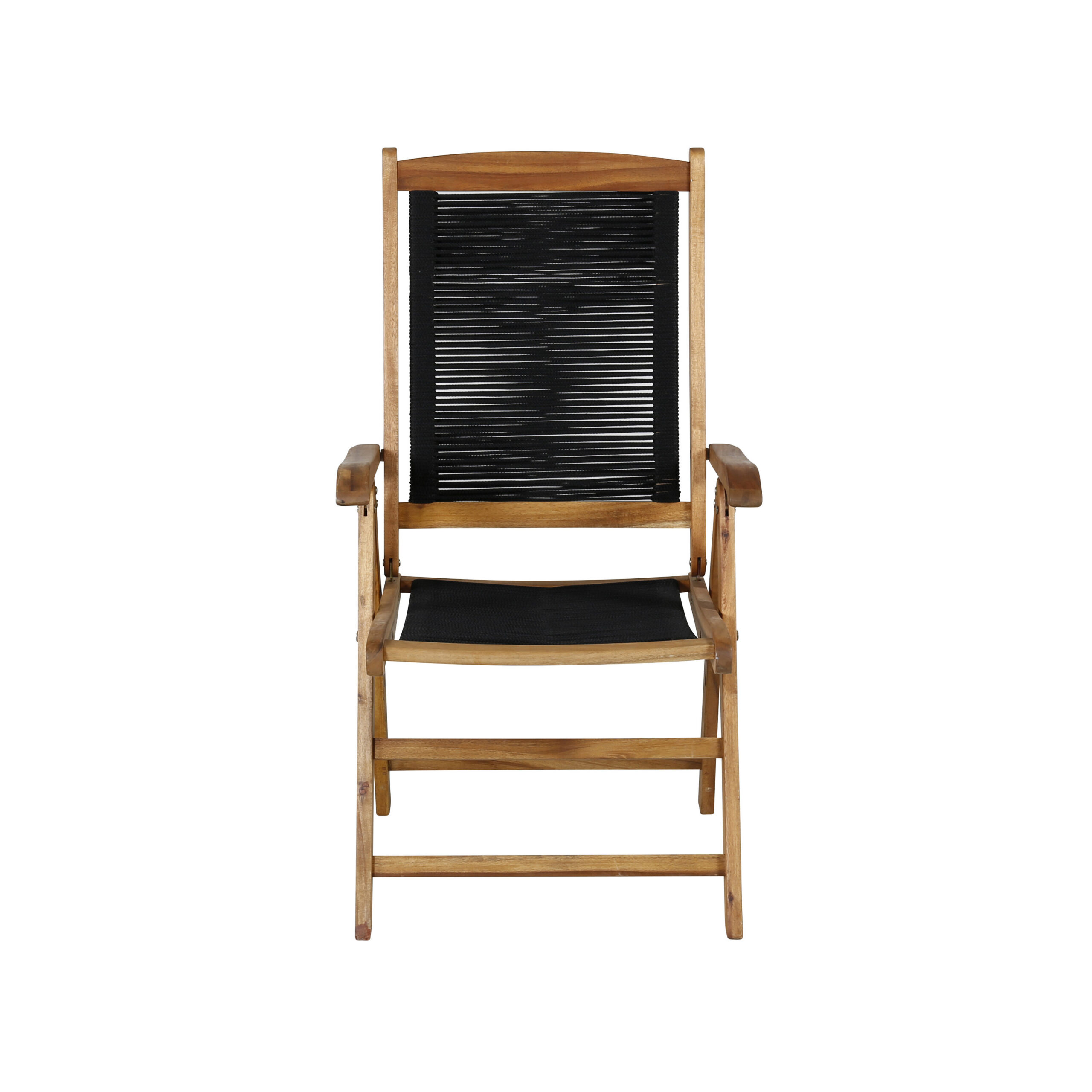 Musta ja puidu kokkusobitamine tundub just õige! Tänu moekale akaatsiast konstruktsioonile ja vastupidavast mustast nöörist istmele on tool rõdul kindlasti pilkupüüdja. Kokkupandav söögitool, mis annab siseõuele kindlasti pompoosse ilme.