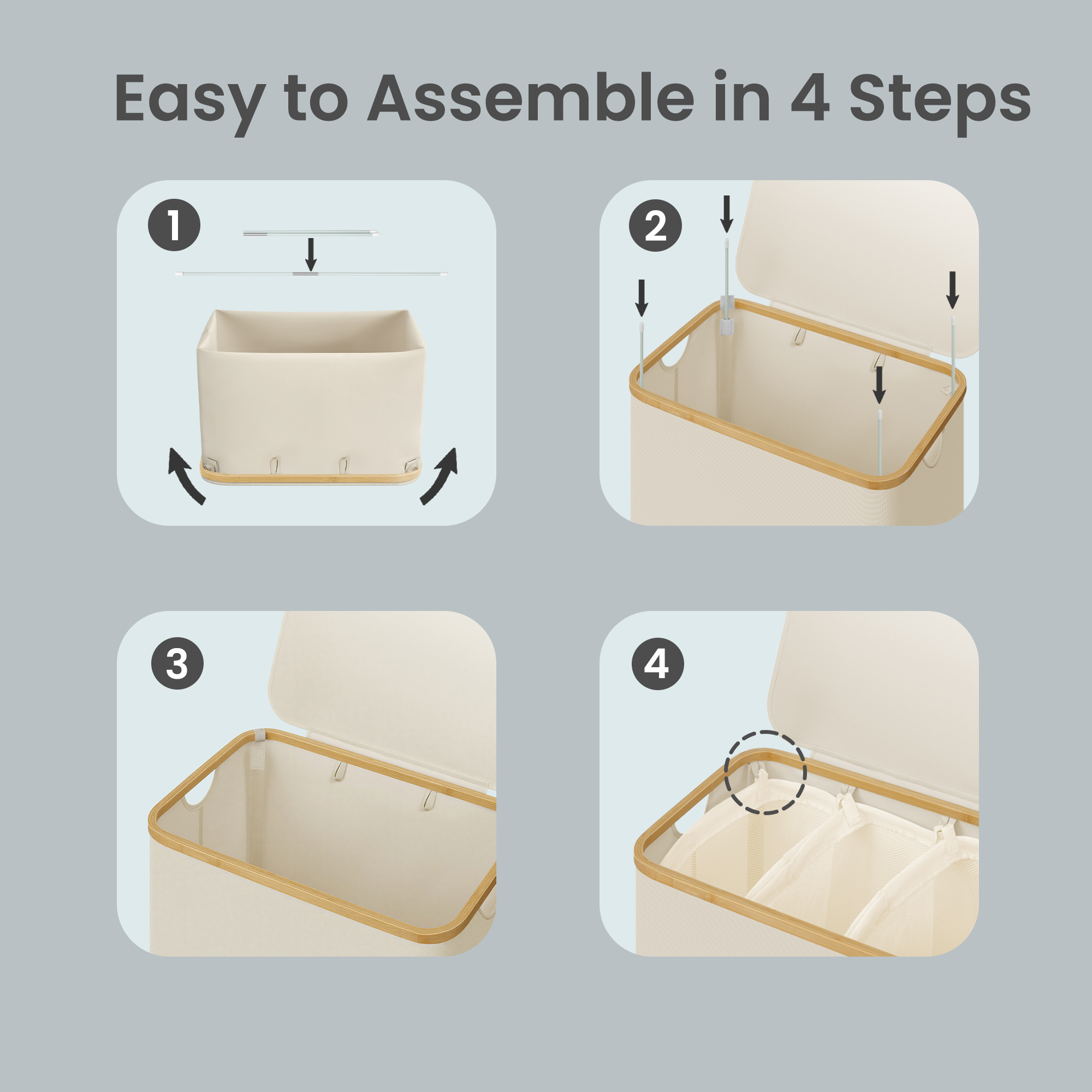 Spetsifikatsioonid: Värv: Kreemvalge Materjal: 600D Oxford-kangas, bambus, klaaskiust vardad, papp Toote mõõdud: 60 x 38,5 x 70,5 cm (23,6 tolli P x 15,2 tolli L x 27,8 tolli K) Toote kaal: 2,4 kg (5,3 naela) Maksimaalne staatiline kandevõime: 20 kg (44 naela) Pakisisu: 1 x pesukorv 1 x kokkupanekukomplekt 1 x juhend