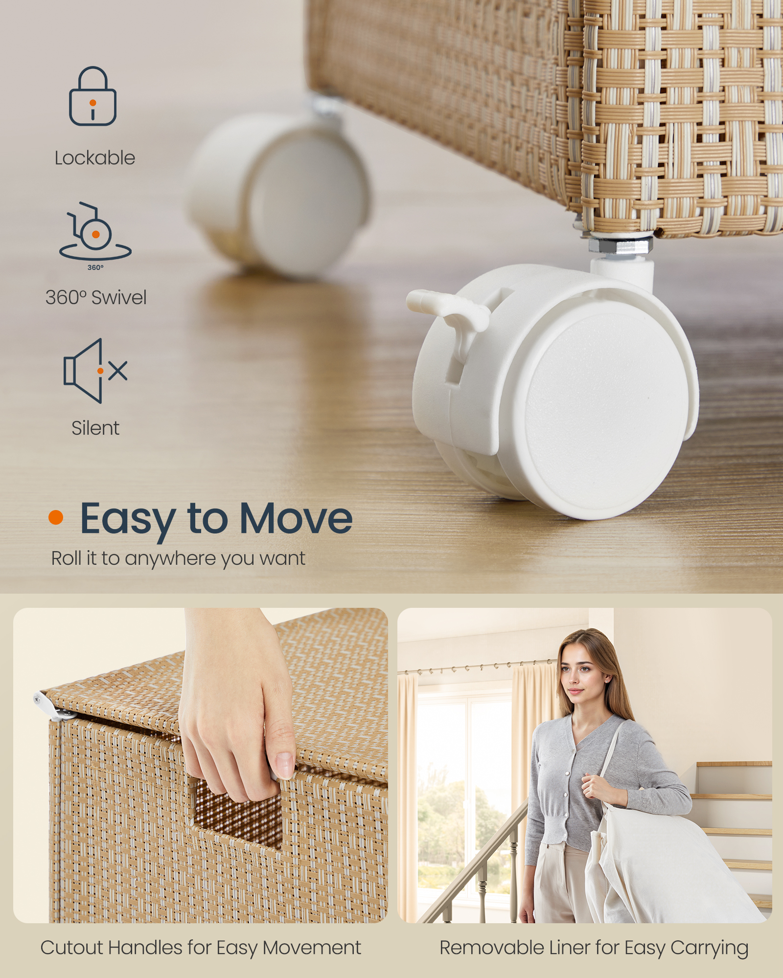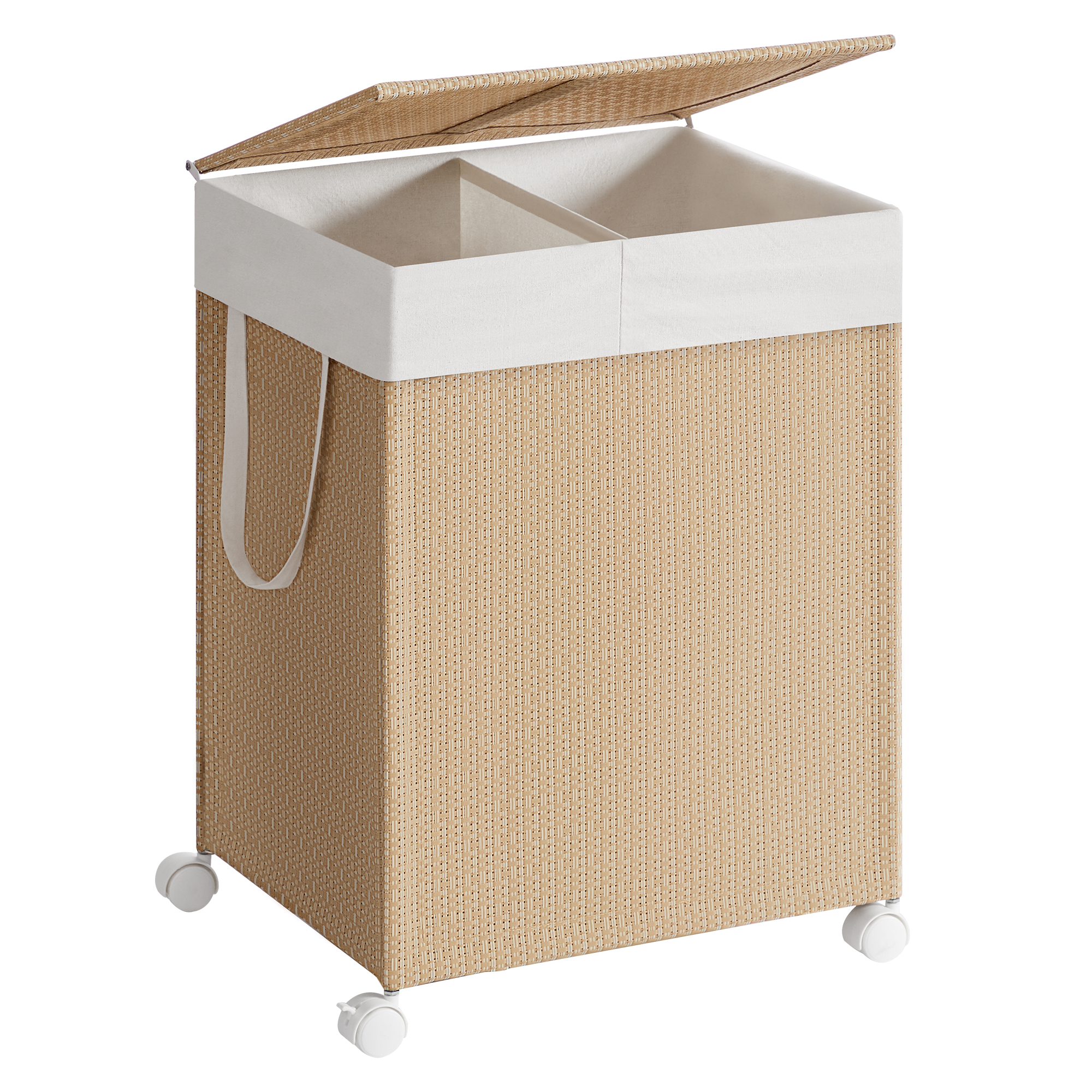 Toote andmed: Värvus: Naturaalne beež-mattvalge Materjal: teras, sünteetilisest kiust kangas, polüester-puuvillast kangas Suurus: 46,5 x 37,5 x 65 cm (P x L x K) Kaal: 3,7 kg Korvi maksimaalne staatiline kandevõime: 10 kg Kaane maksimaalne staatiline kandevõime: 5 kg