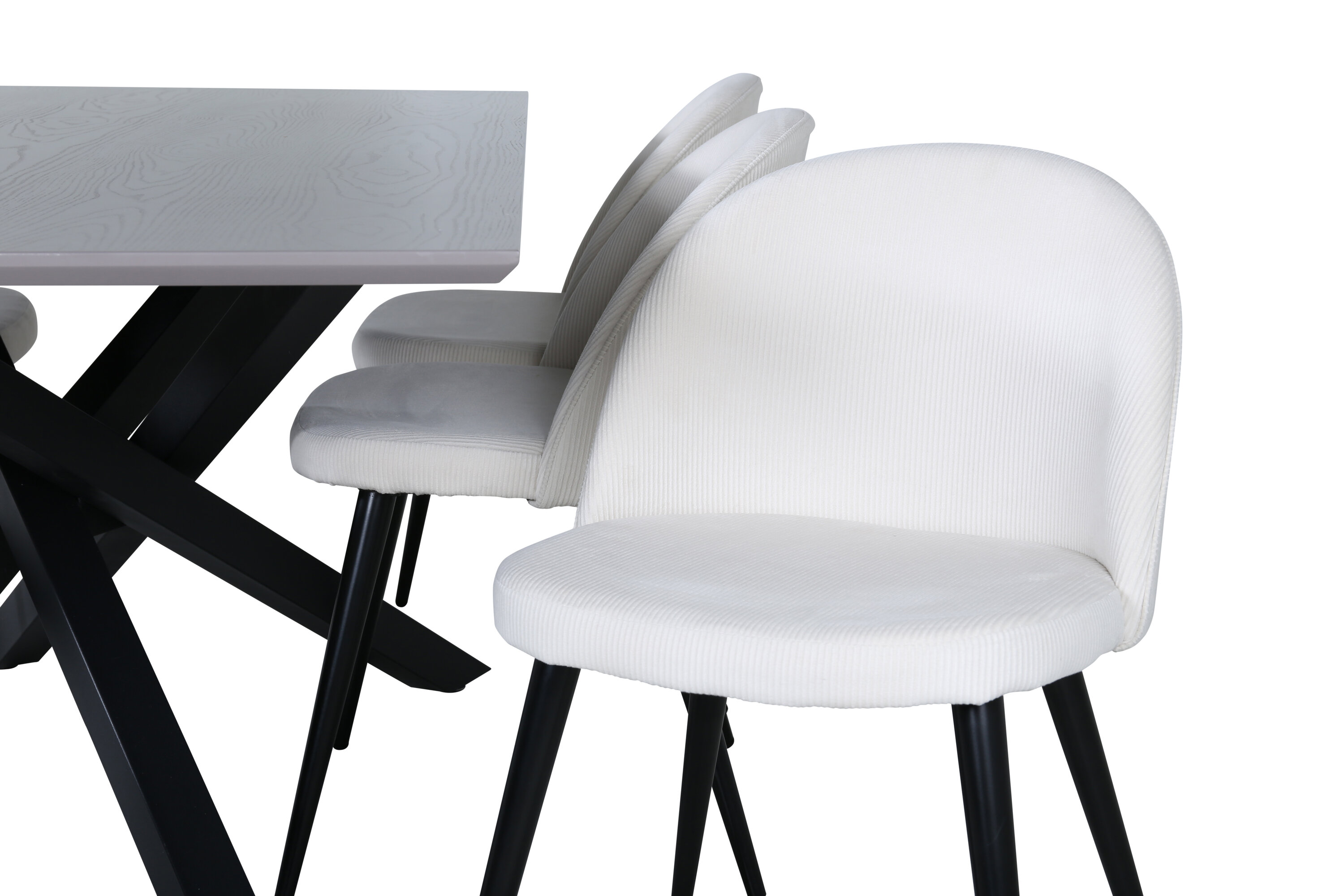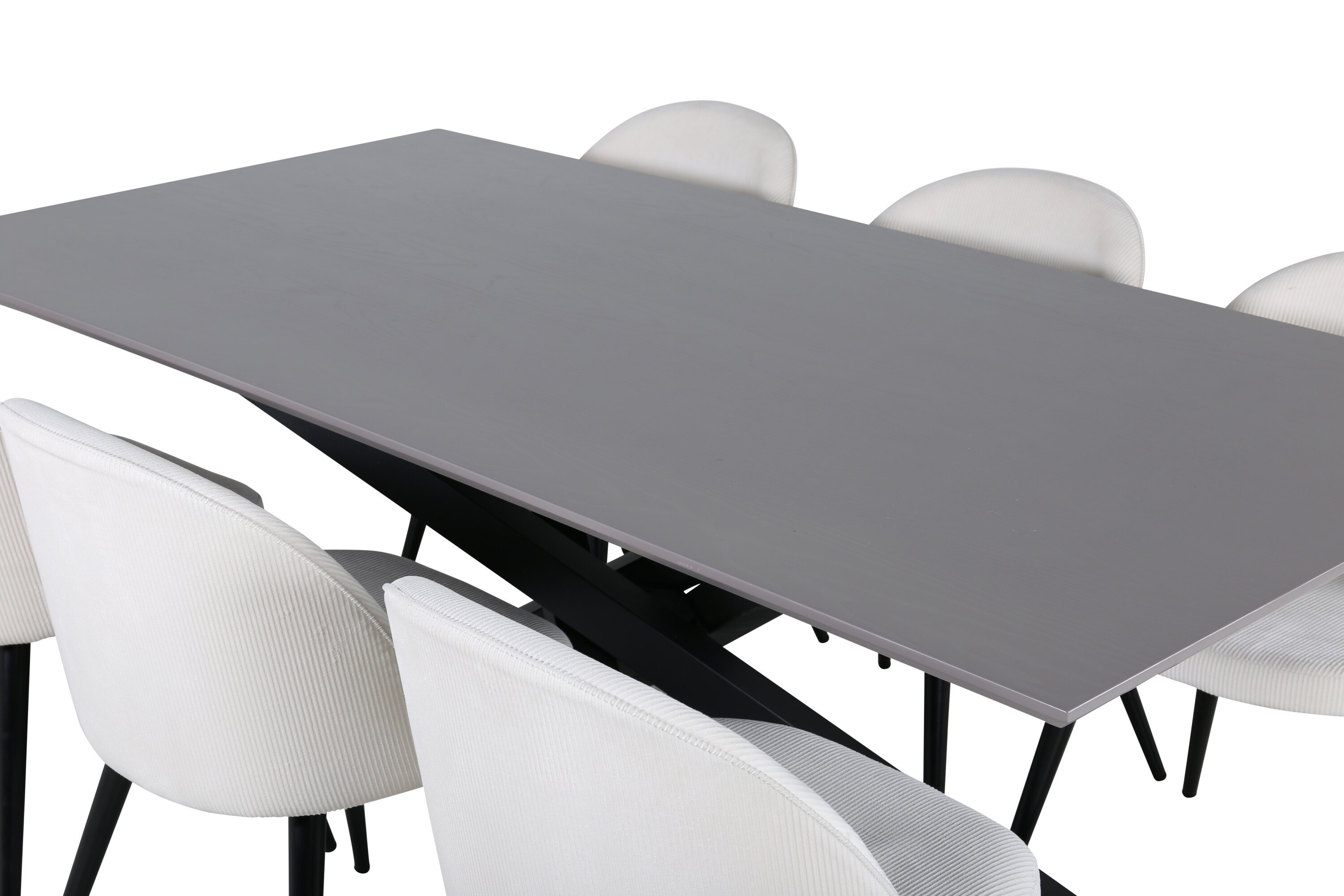 Piazza on meie populaarne ristkülikukujuline söögilaud, millel on luksuslik tunne ja trendikad detailid. Lauaplaat on valmistatud halli värvi MDF spoonist ja korpus loob mustast rauast ristjalgadega ühtlase pilgupüüdja. Siin maitsev kombinatsioon Velvet sarja söögitoolidega, mis loovad elutoas kena terviku. Toolijalad on kergesti laienevad mustast rauast ja istmed on täielikult riietatud beeži sametkangasse. Loo kodune atmosfäär võluva toidugrupiga!