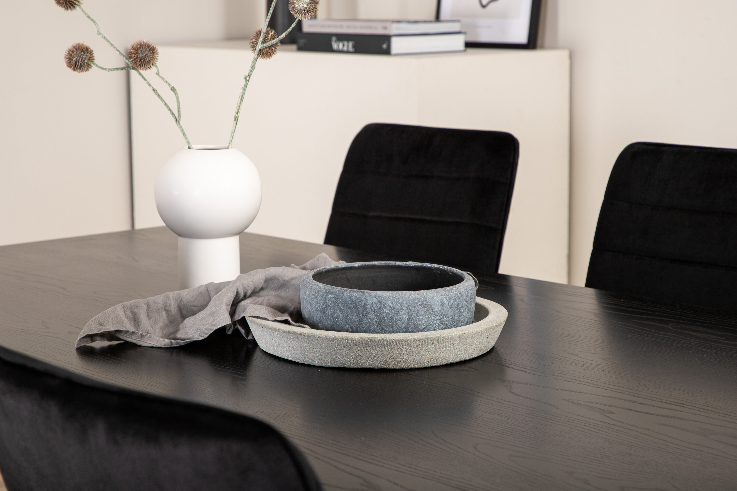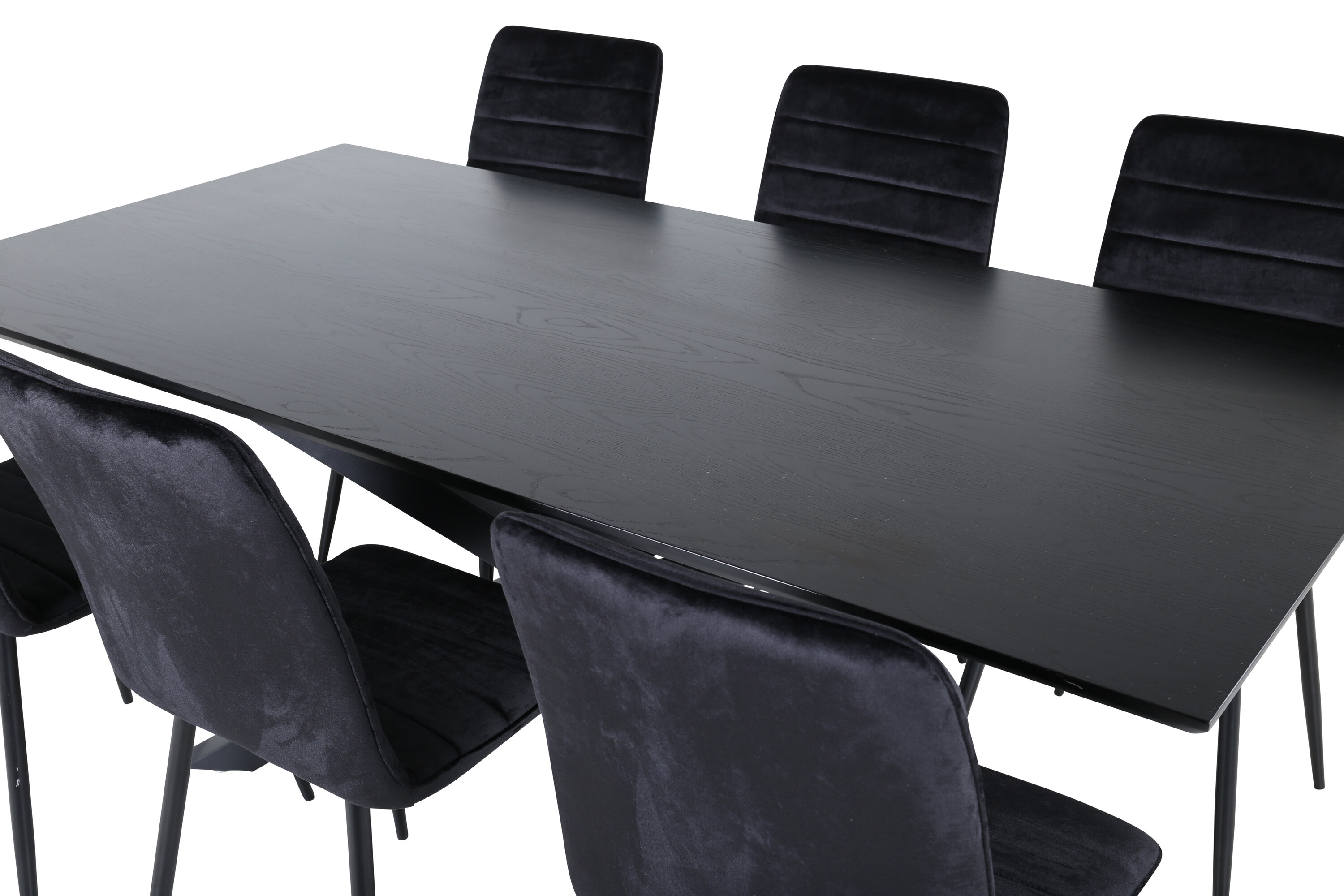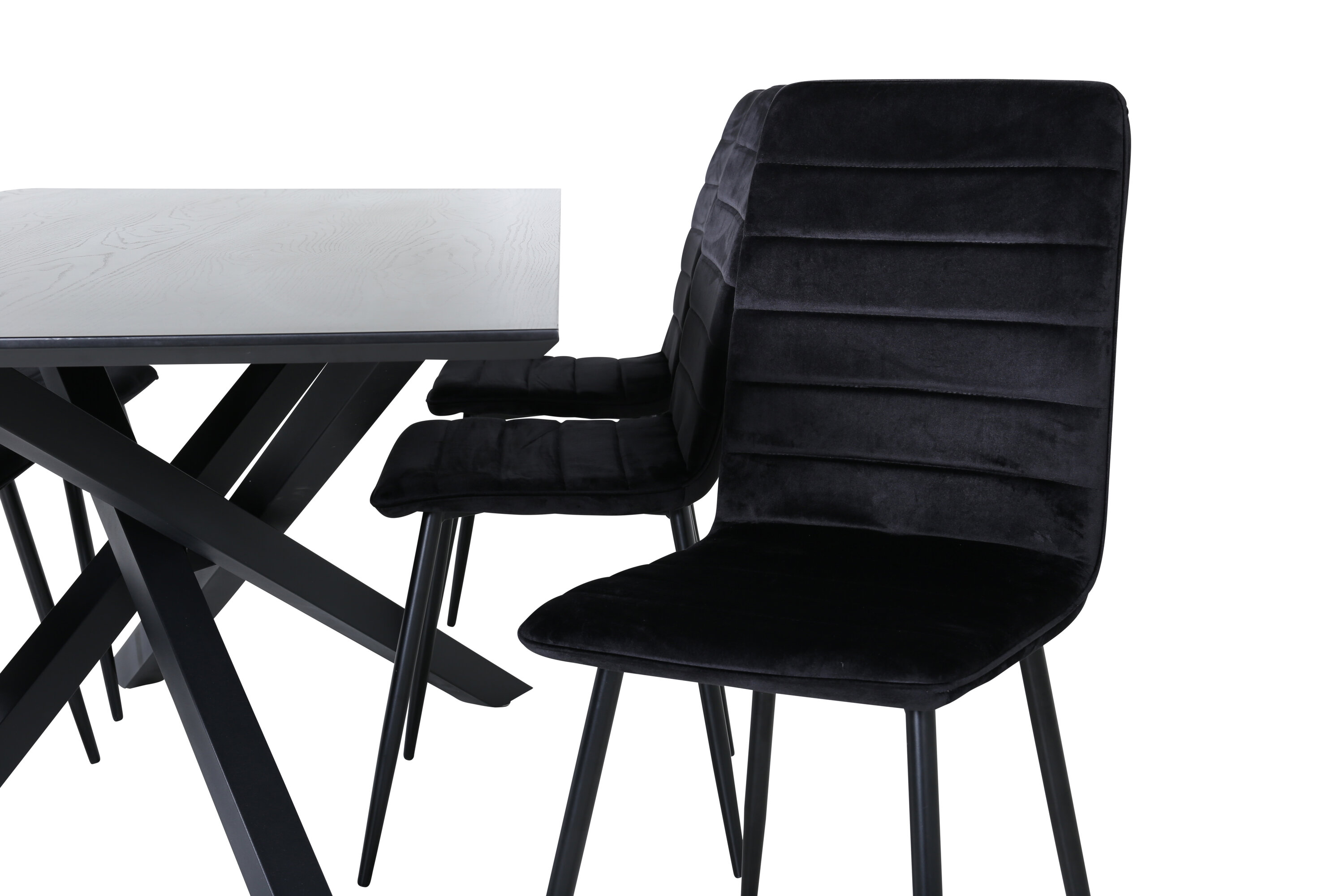 Täielik musta toidugrupp ei lähe kunagi ajast maha! Piazza on meie populaarne ristkülikukujuline söögilaud, millel on luksuslik tunne ja trendikad detailid. Lauaplaat on valmistatud määrdunud musta värvi MDF spoonist ja korpus loob ühtlase pilgupüüdja mustast rauast ristjalgadega. Siin koos 6 sirge disainiga Windu luksusliku söögitooliga. Toolidel on mustad sametist istmed, mis annavad ruumile kena läike ning kitsad rauast toolijalad. Siin istute teie ja teie külalised mugavalt kaua!
