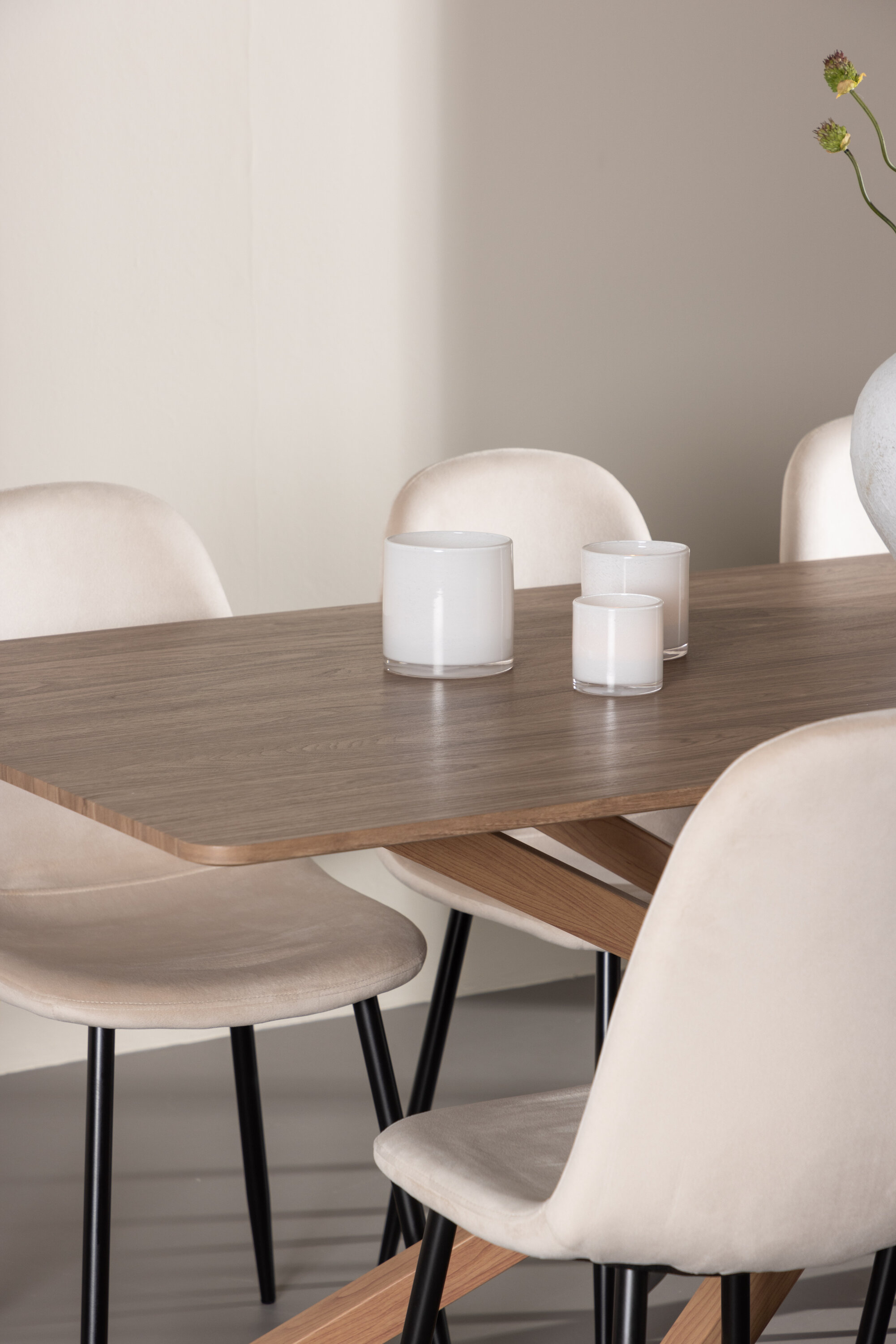 Avastage moodne söögikomplekt, mis ühendab elegantsi ja mugavuse stiiliga! Stiilne Polari seeria söögitool on stiilse beeži värvi ja täielikult polsterdatud disainiga. Kergelt ümar sametkangast seljatugi ja iste pakuvad kutsuvat ja mugavat istumiskogemust, mustast pulbervärvitud metallist jalad lisavad aga modernset hõngu. Ideaalne kodusüdame sisustamiseks ja koos mõnusate einete nautimiseks! Vajalik kokkupanek. Täiendage Piazza söögilauda – harmooniline mööbliese suhtlemiseks ja kogukonnaks. Suurte mõõtmetega 180×90 cm pakub Piazza piisavalt ruumi nii pere kui ka sõprade tervitamiseks. Mokavärvi laud annab ruumile maalähedase ja sooja atmosfääri, mis sobib suurepäraselt hubaseks koosviibimiseks ja pikkadeks õhtusöökideks. Piazza söögilaud ühendab Skandinaavia disaini lihtsuse ja elegantsiga, muutes selle teie kodu keskseks osaks, kus edeneb nii sõprus kui stiil.