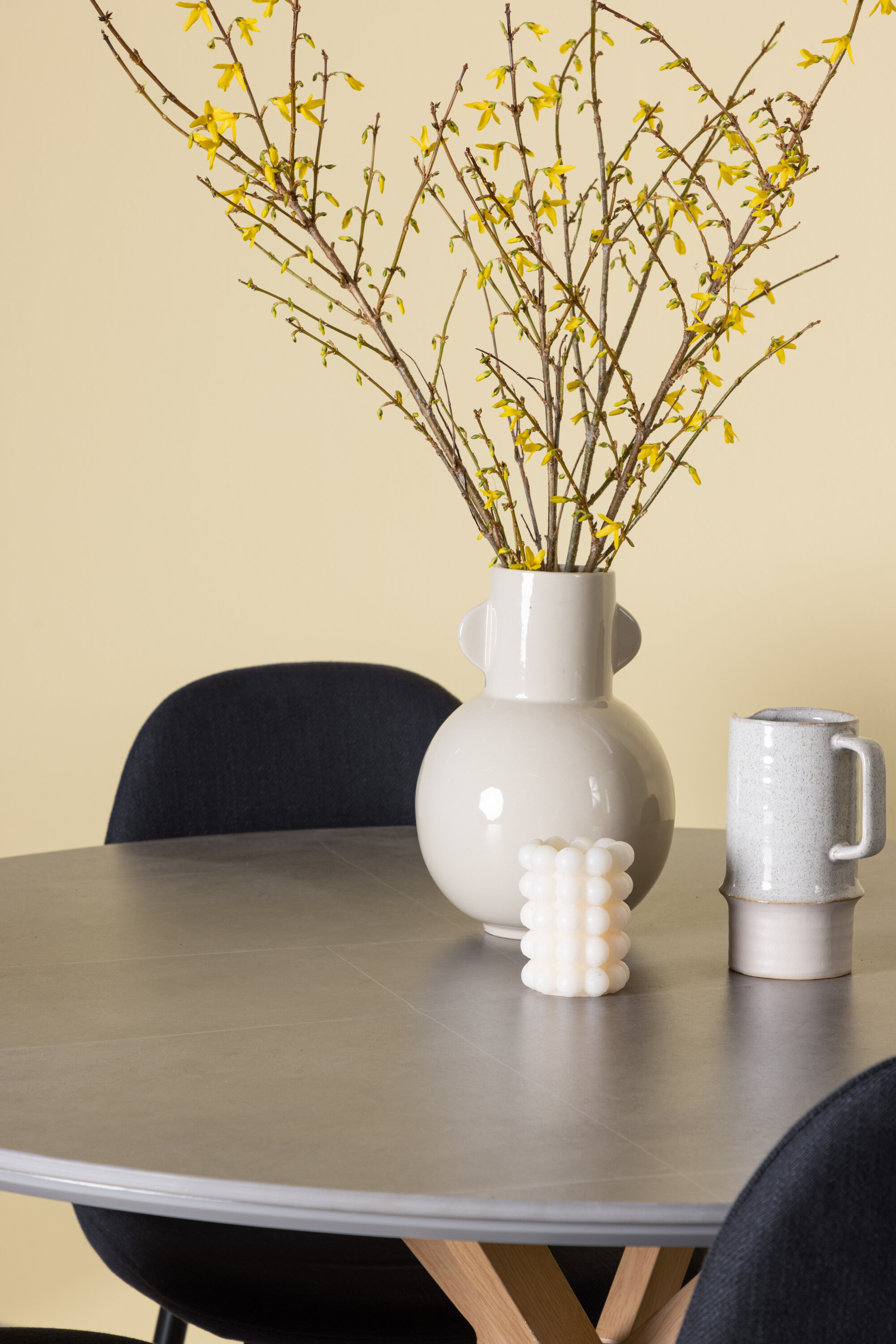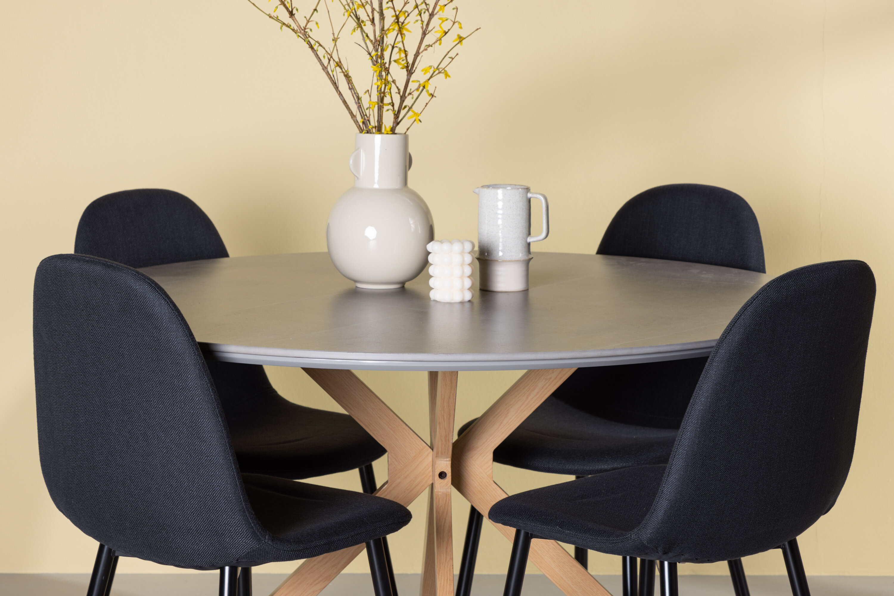 Polari toolid on loodud optimaalse mugavuse tagamiseks nende polüesterpolstri ja tugevate terasest jalgadega. Toolide must värv loob stiilse kontrasti halli lauaga. Iga tool on loodud pakkuma mugavat istumiskogemust pikkade söögikordade ja vestluste ajal.