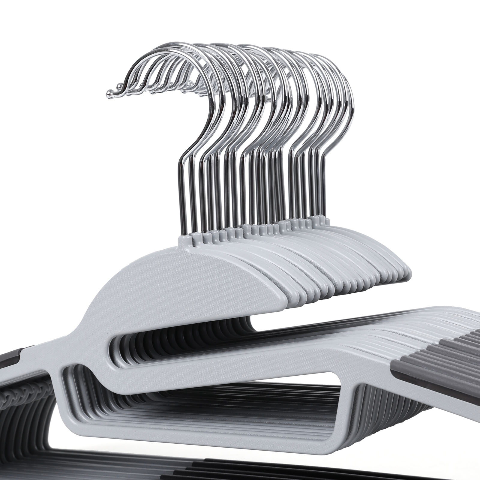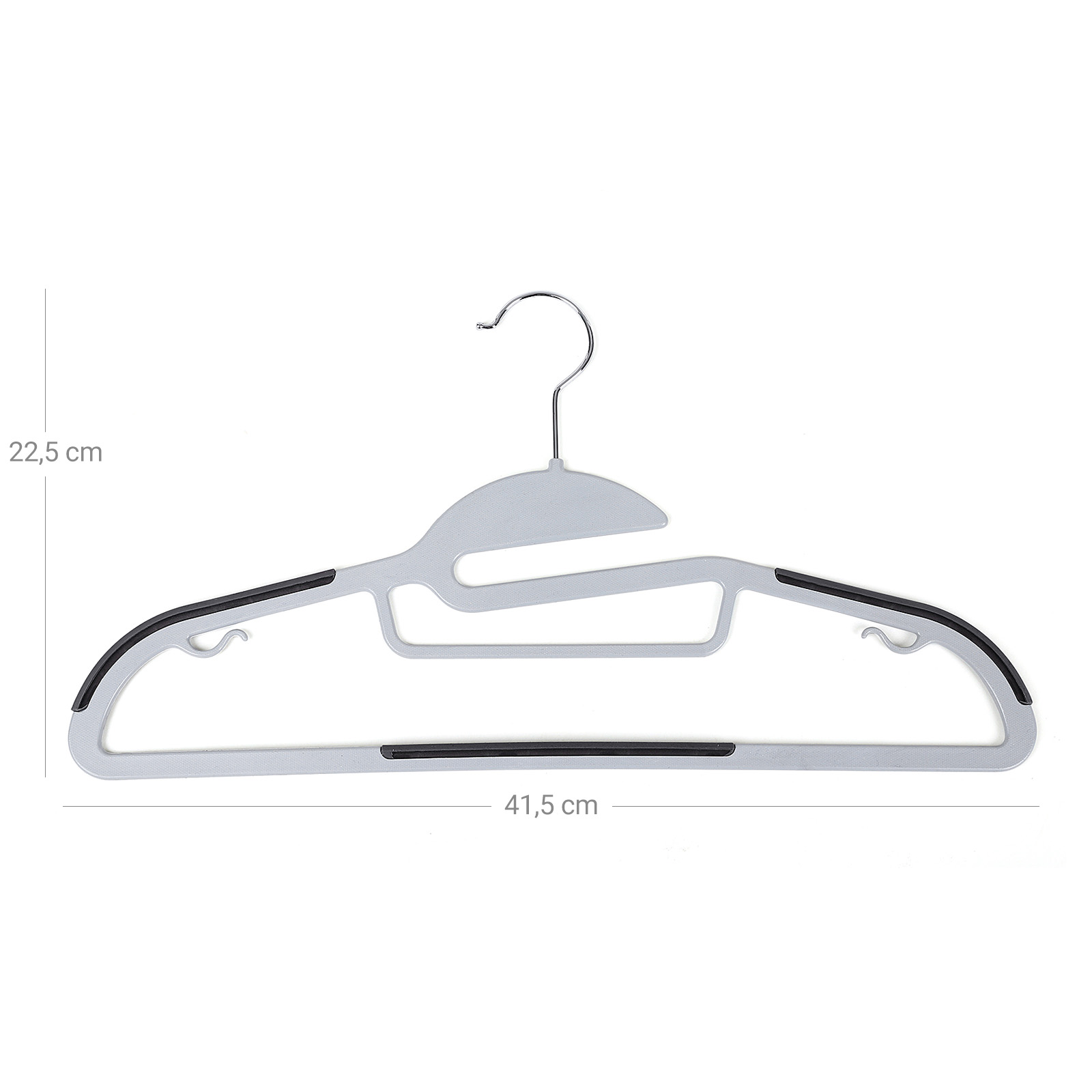 Spetsifikatsioonid: – Värvus: helehall, tumehall – Materjal: ABS-plastik, metallkonks – Iga riidepuu suurus: 41,5 x 0,5 x 22,5 cm (P x L x K) – Iga riidepuu kaal: 86 g – Iga riidepuu maksimaalne staatiline kandevõime: 5 kg Pakisisu: – 20 x mantlit