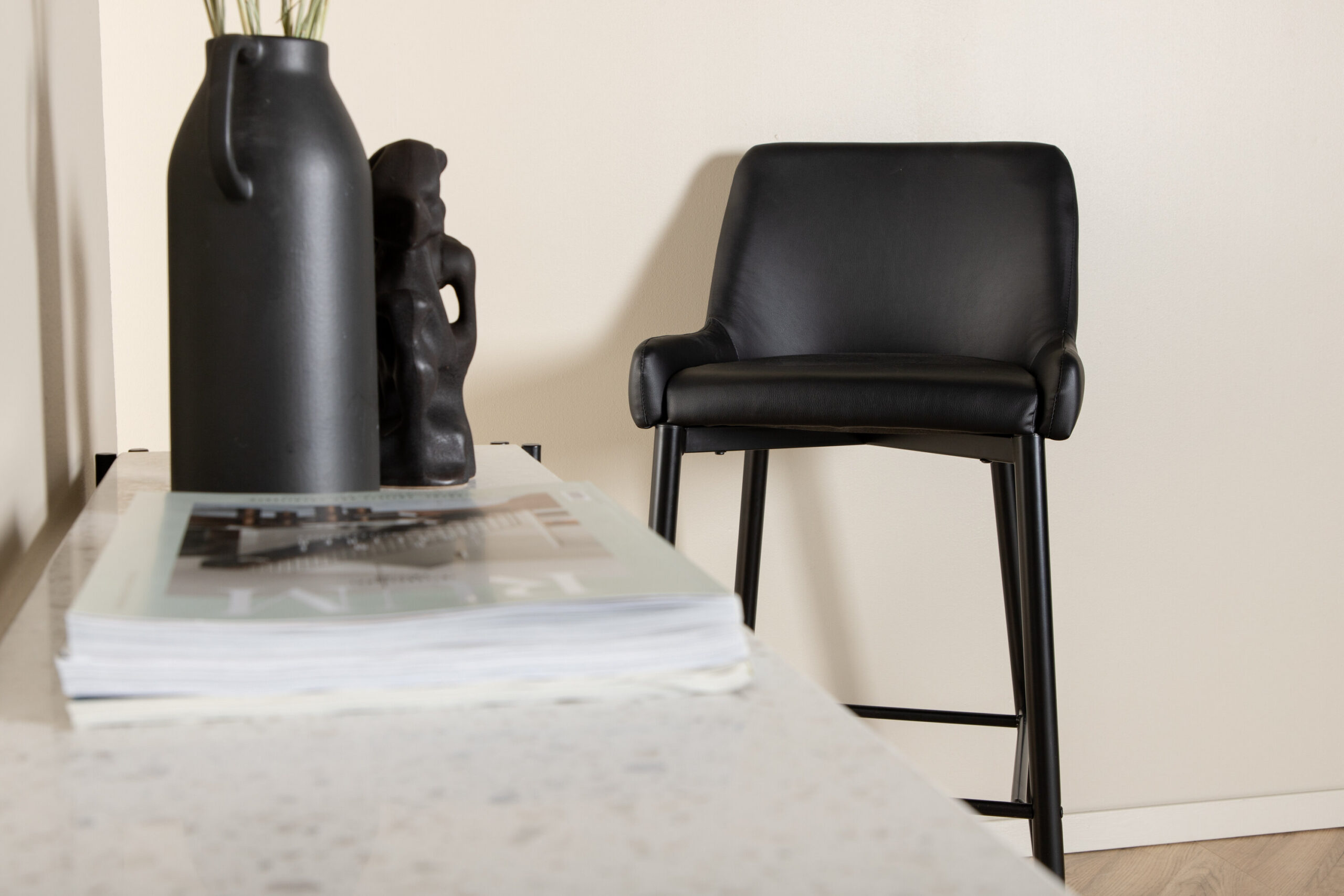 Mugava disainiga must kohmakas baaripukk – siin ei pea te Plaza sarja baaripukkidega kompromisse disaini ja mugavuse vahel! Disain on hästi läbimõeldud: musta polsterdatud polüuretaanist mälu- ja polüestrist täielikult kaetud tool ning musta pulbervärvitud metallist kitsas jalatugi koos integreeritud jalatoega lisamugavuse tagamiseks. Vajalik on kergem montaaž.