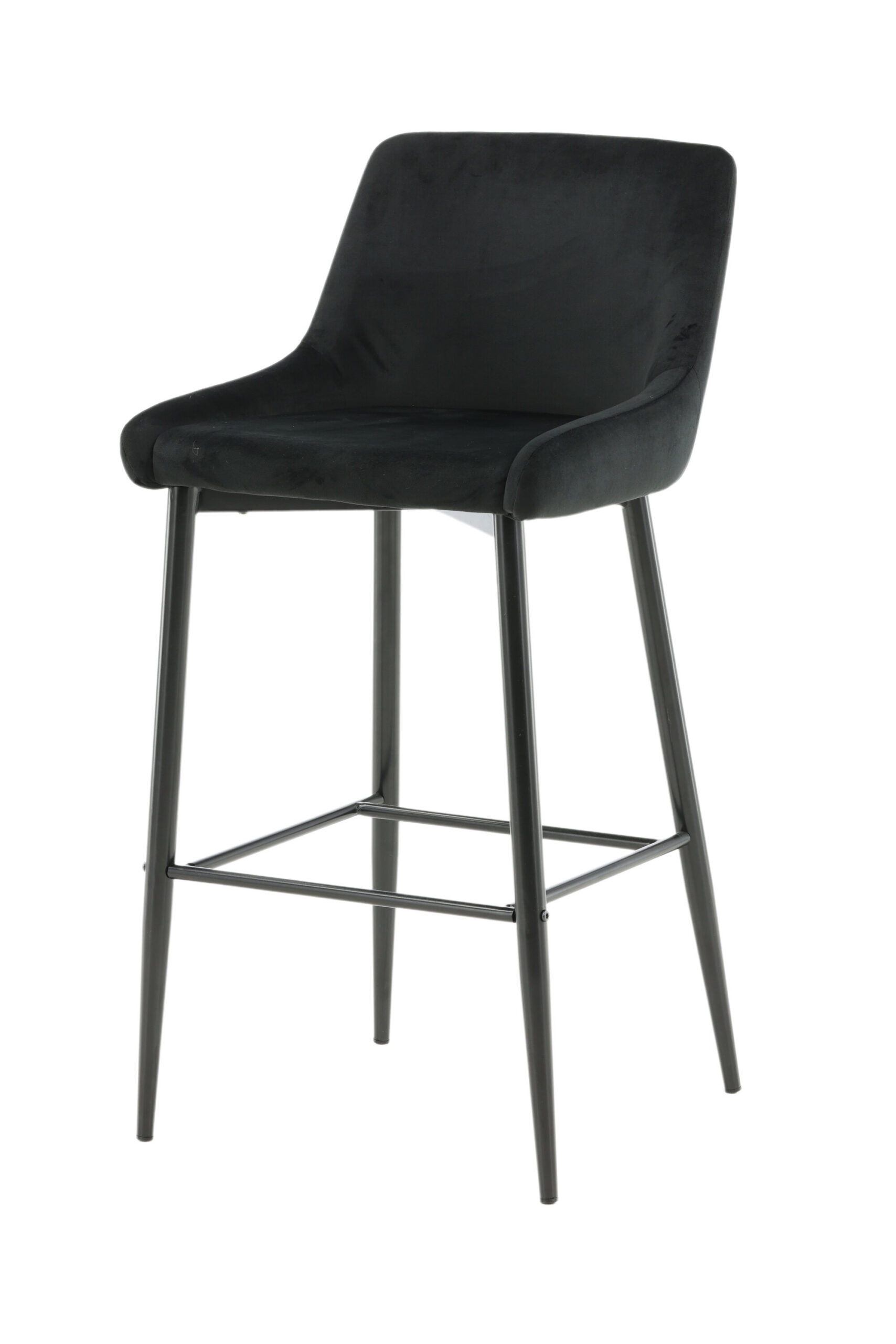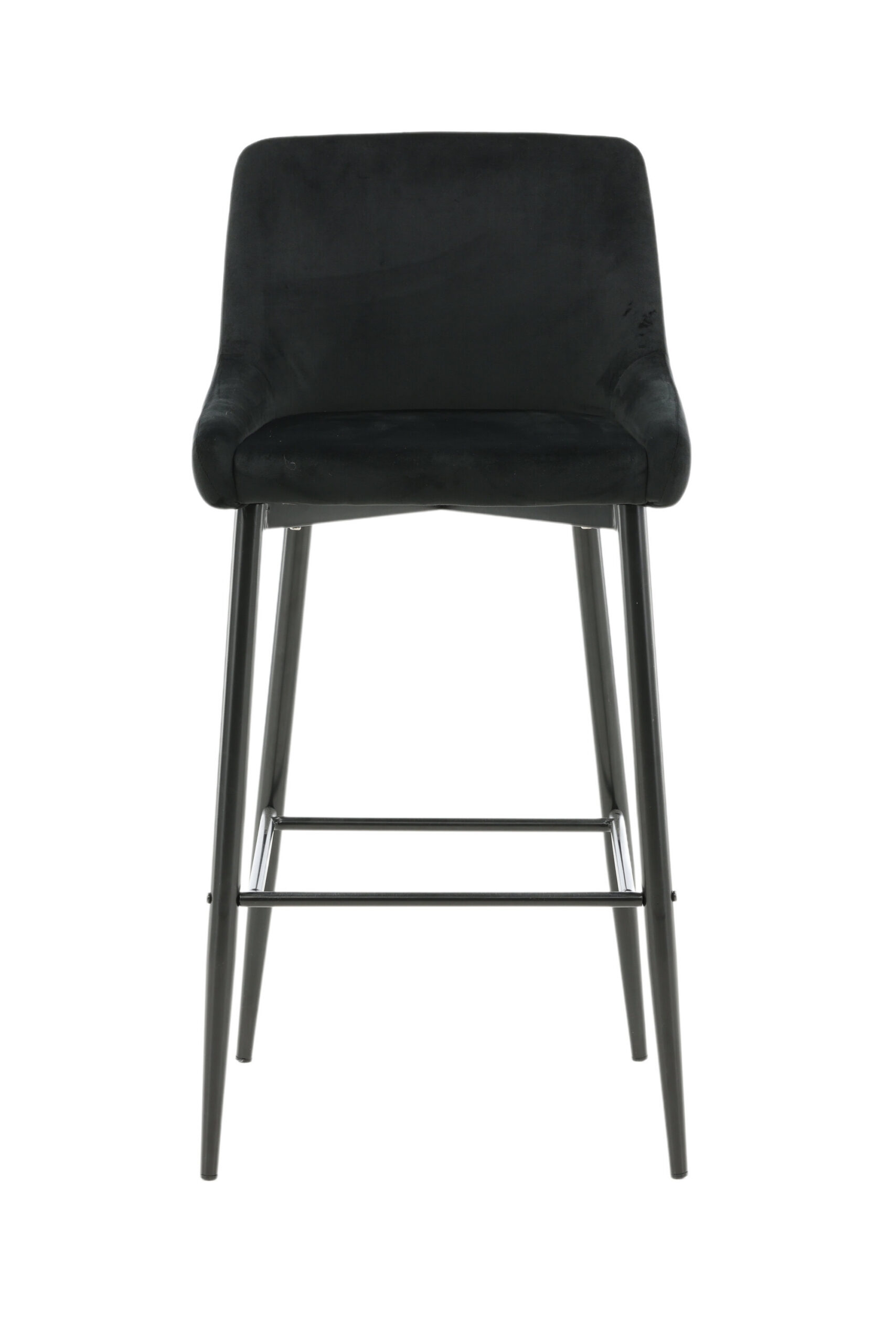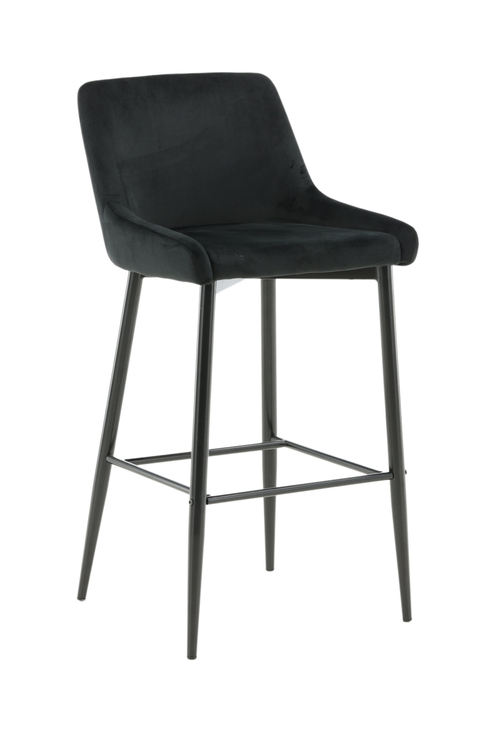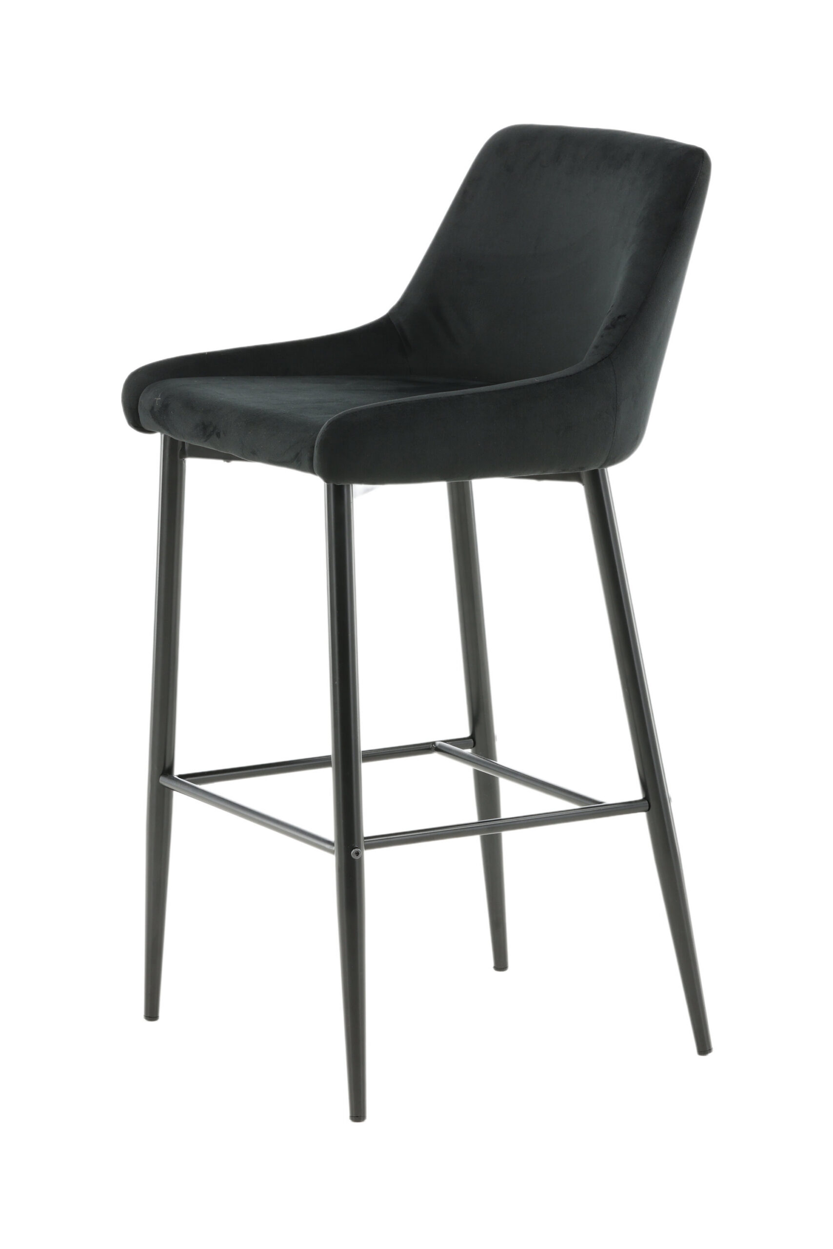 Ärge tehke järeleandmisi ei disaini ega mugavuse osas Plaza sarja baaripukiga! Disain on läbimõeldud: polsterdatud musta sametkangast täielikult polsterdatud tool ja mustast pulbervärvitud metallist õhukesed jalad koos integreeritud jalatoega lisamugavuse tagamiseks. Vajalik kokkupanek. Hooldusnõuanne: immuta kangas enne kasutamist kangasprei, mis hõlbustab ka mustuse ja plekkide eemaldamist tulevikus. Eemaldage plekid kohe, ärge hõõruge, vaid proovige lapiga õrnalt imenduda.