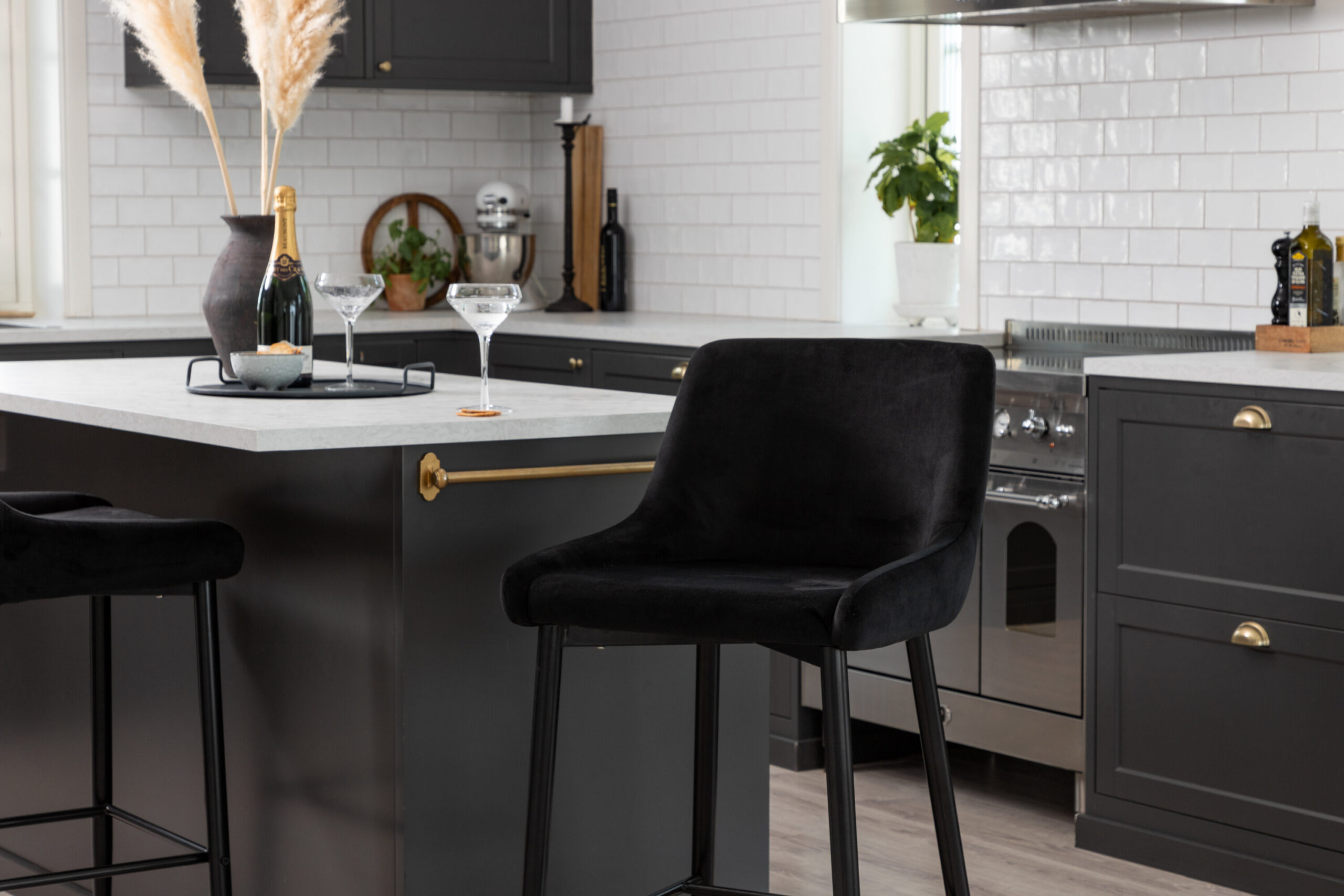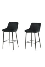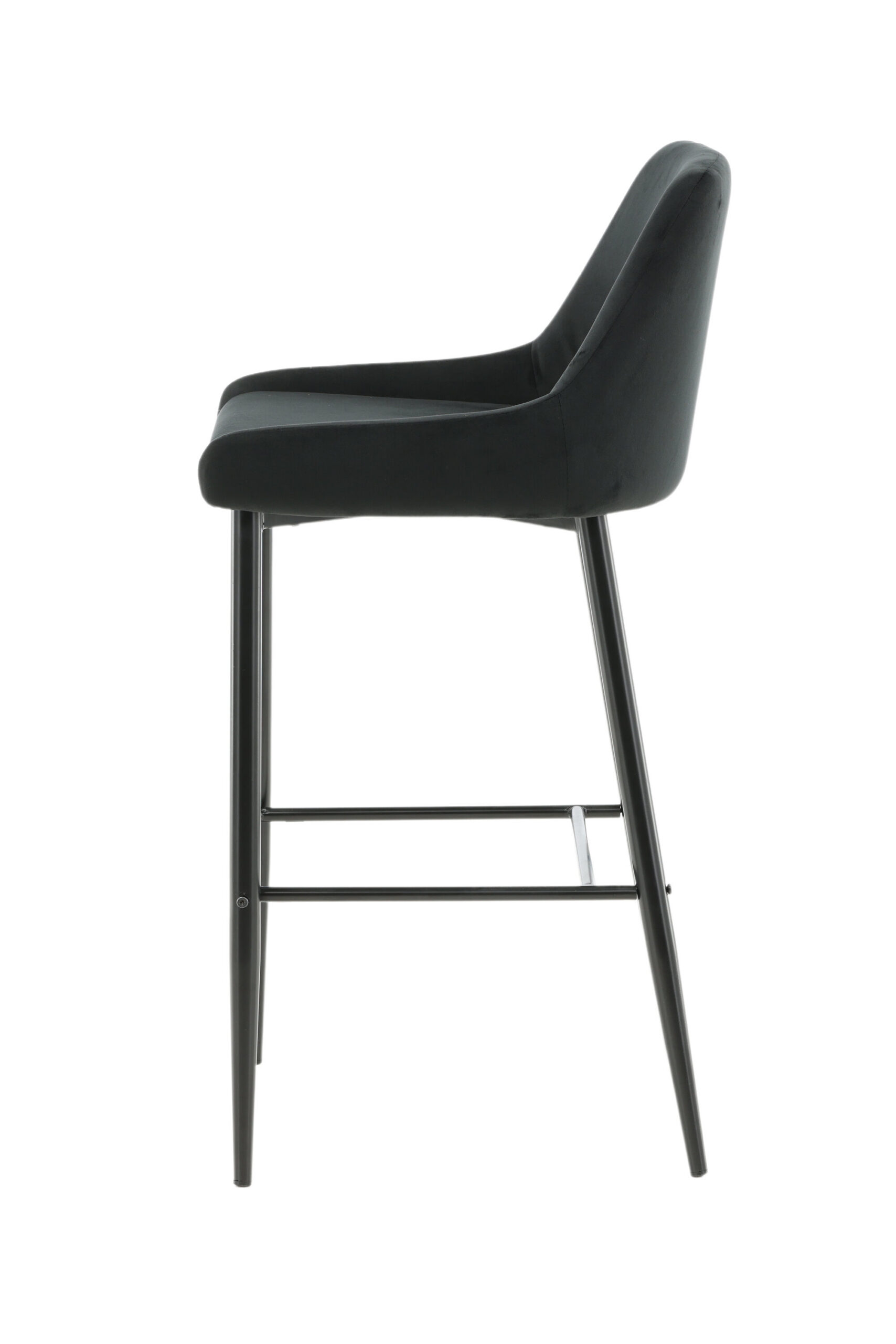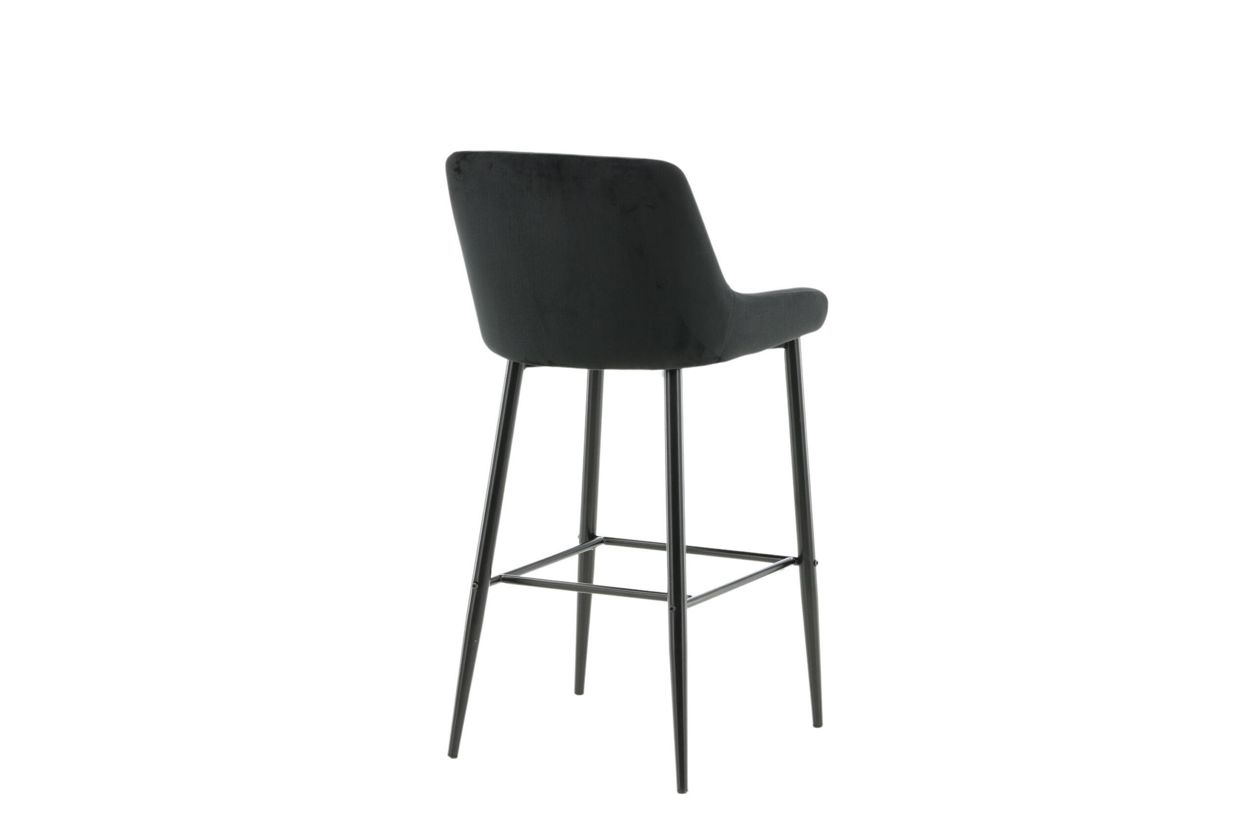 Ärge tehke järeleandmisi ei disaini ega mugavuse osas Plaza sarja baaripukiga! Disain on läbimõeldud: polsterdatud musta sametkangast täielikult polsterdatud tool ja mustast pulbervärvitud metallist õhukesed jalad koos integreeritud jalatoega lisamugavuse tagamiseks. Vajalik kokkupanek. Hooldusnõuanne: immuta kangas enne kasutamist kangasprei, mis hõlbustab ka mustuse ja plekkide eemaldamist tulevikus. Eemaldage plekid kohe, ärge hõõruge, vaid proovige lapiga õrnalt imenduda.