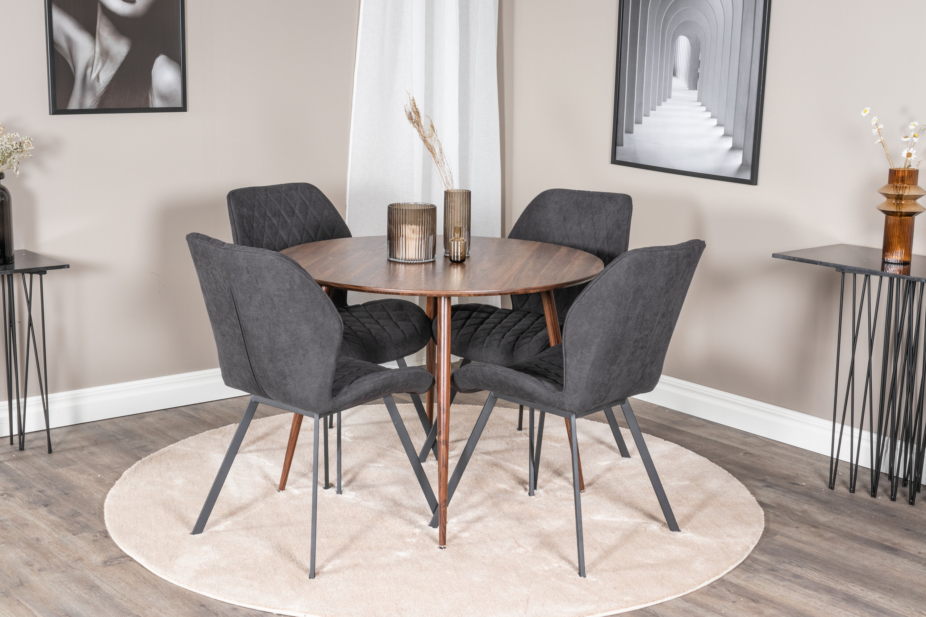 Kaasaegne toidugrupp kutsuva ja lihtsa disainiga. Siin on meie ümmargune söögilaud Plaza kombineeritud kaunist puidust Gemma sarja mugavate söögitoolidega. Sisustage elutuba pere toidugrupiga, mis tõenäoliselt sobib teie vajadustega sama hästi kui teie muu sisustusega.