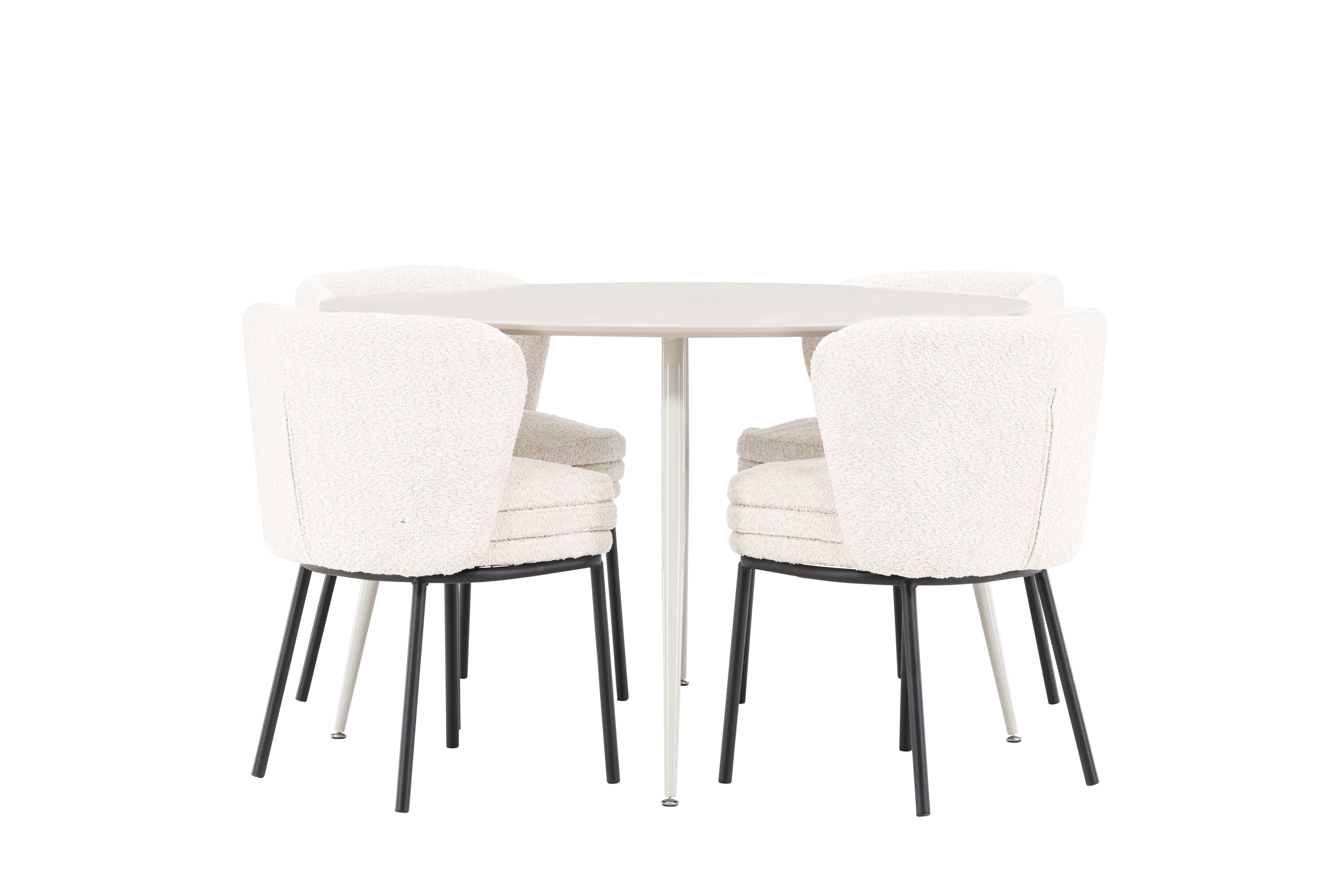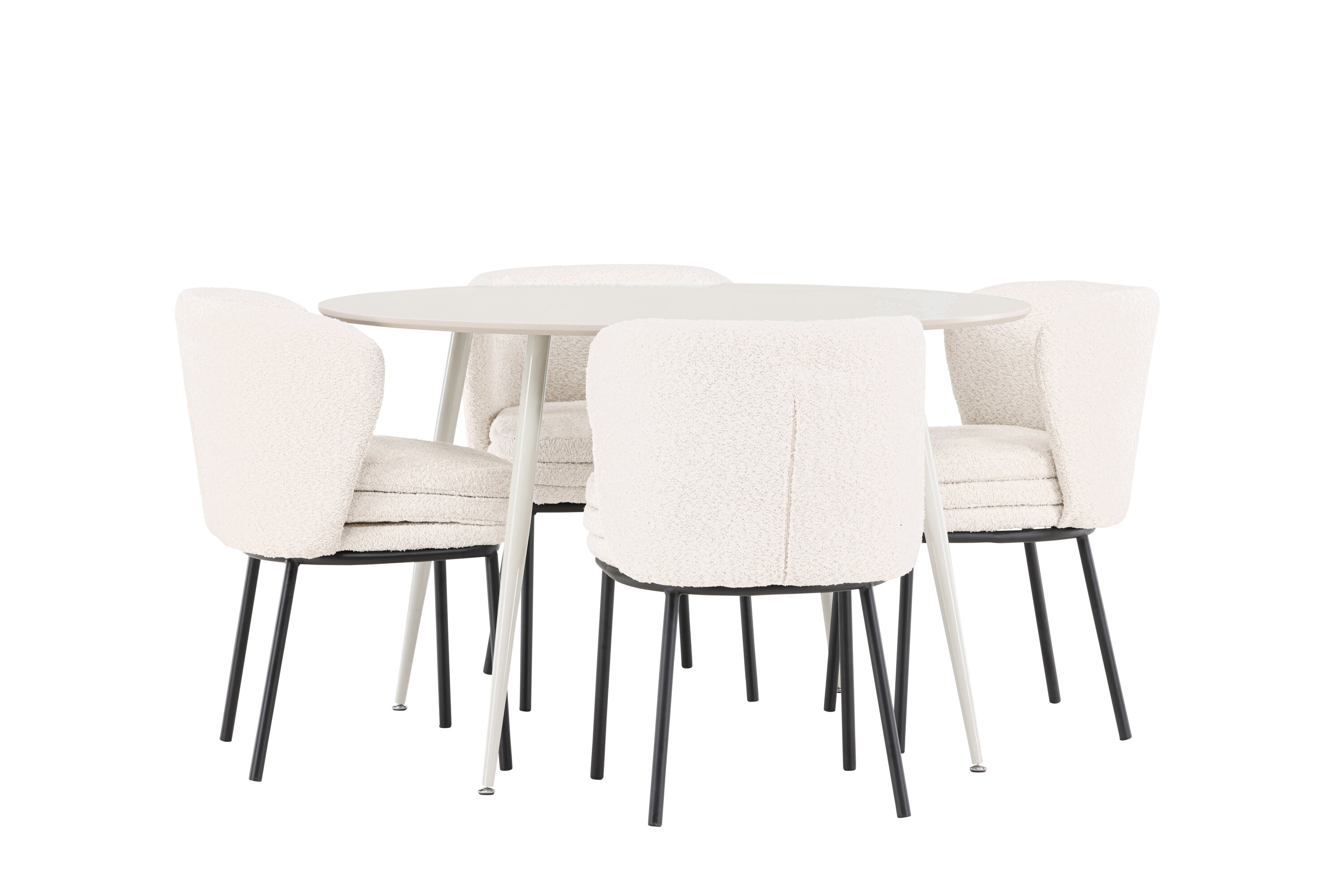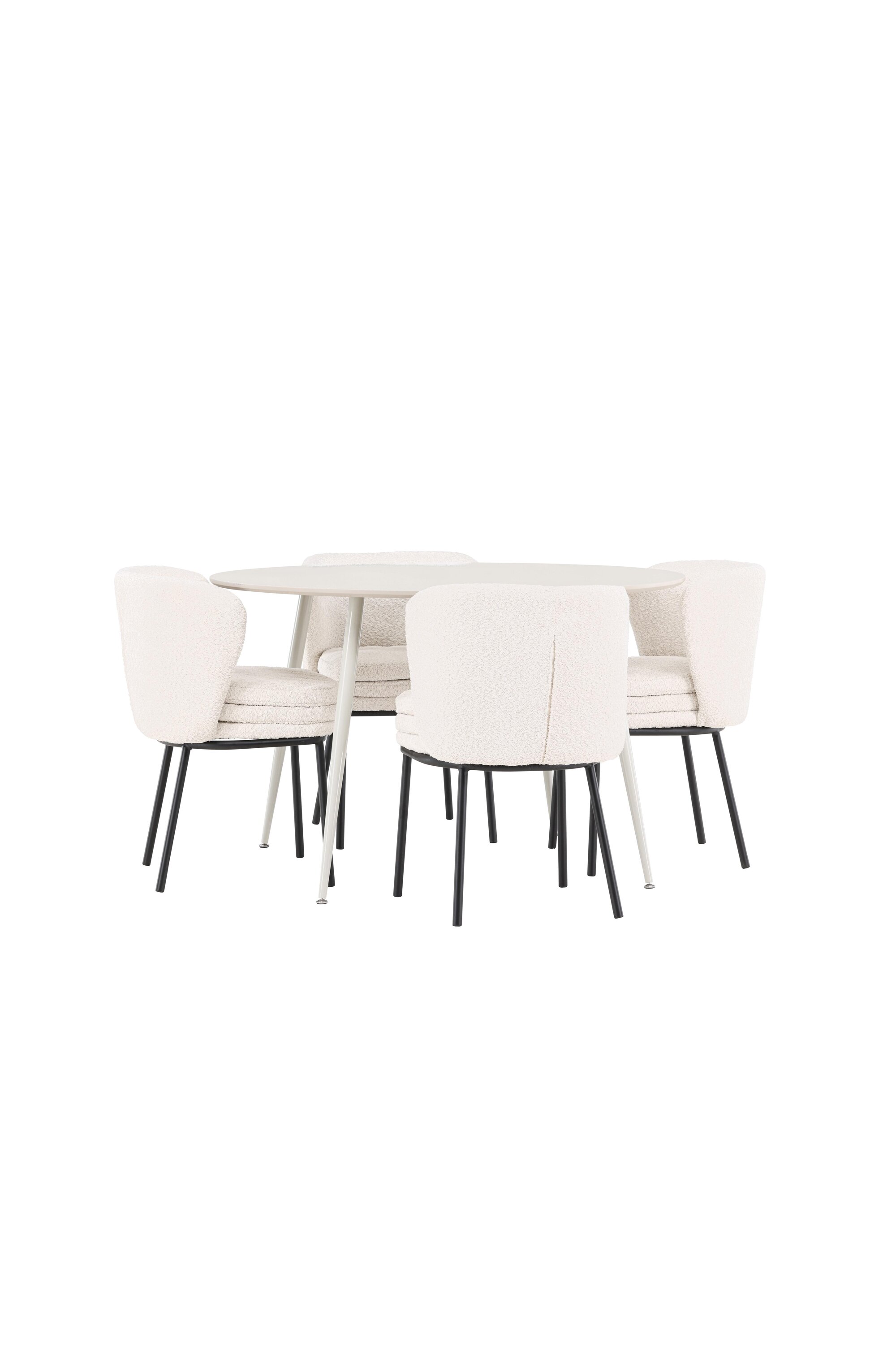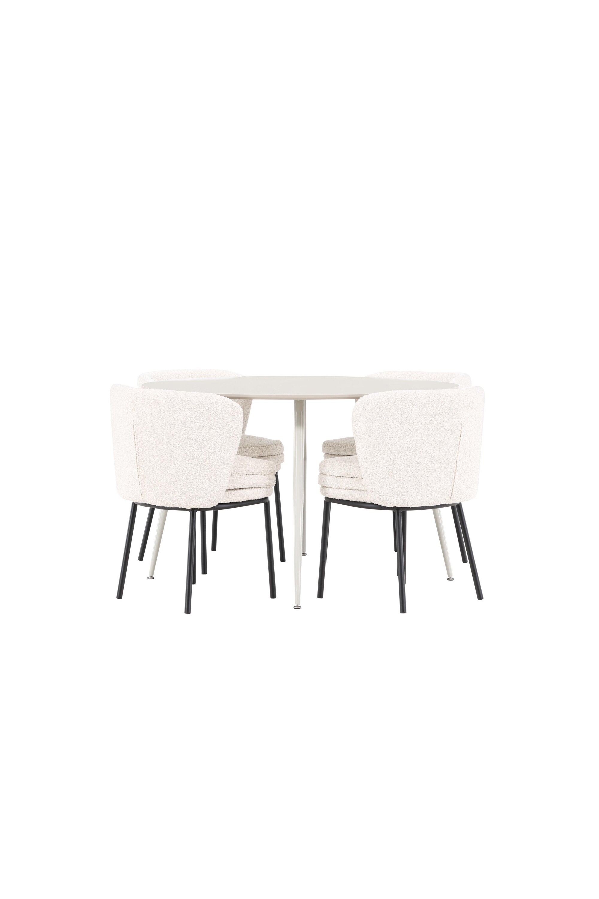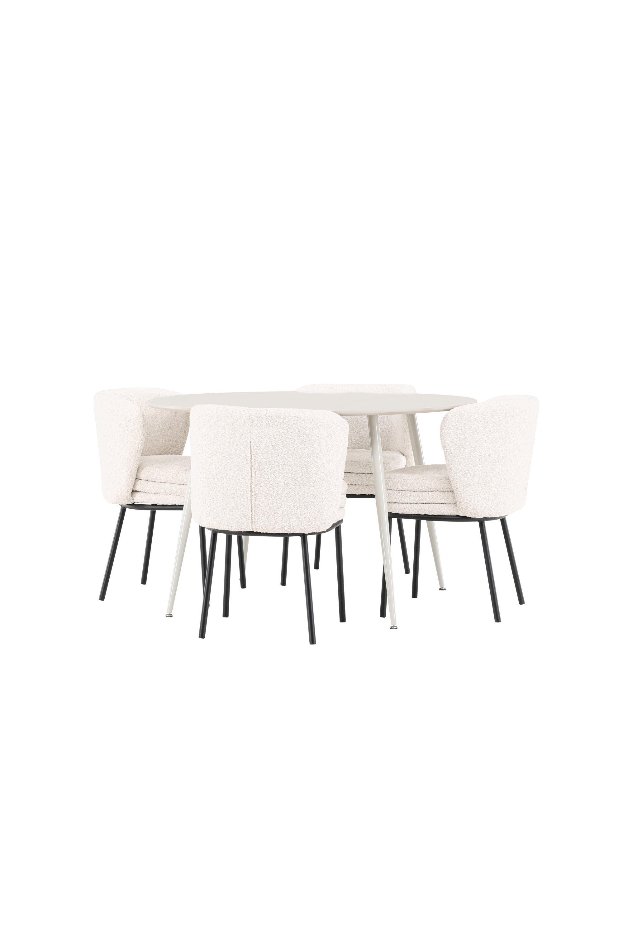 Andke oma söögitoale kaasaegne ja täiustatud uuendus meie elegantse söögikomplektiga, mis ühendab stiilse Plaza laua luksuslike Agnese toolidega. See söögikomplekt, mis sobib ideaalselt nii igapäevaseks õhtusöögiks kui ka erilistel puhkudel, loob teie koju kutsuva ja elegantse atmosfääri. MDF-plaadist Plaza laud on helebeeži värvi, mis lisab teie söögitoale pehme ja sooja tunde. Rikkaliku 120 cm läbimõõduga laud pakub palju ruumi söögiks ja vestlusteks, samas kui selle ümar kuju aitab luua harmoonilist ja tasakaalustatud keskkonda. Laua tugev konstruktsioon tagab pikaajalise kasutamise ja stabiilsuse. Neljal Agnese toolil on elegantne valge boucle materjalist iste, mis pakub nii mugavust kui ka luksust. Toole täiendavad mustad jalad, mis loovad moodsa ja klanitud kontrasti. Need toolid pakuvad mugavuse ja stiili kombinatsiooni, muutes need ideaalseks pikaks ja meeldivaks einetamiseks pere ja sõpradega. Nende kaasaegne disain ja pehmed istmed annavad teie söögitoale rafineeritud ja kaasaegse ilme. See söögikomplekt on täiuslik segu esteetikast ja funktsionaalsusest, mistõttu on see suurepärane valik neile, kes otsivad elegantset ja mugavat söögituba. Täiustage oma söögituba Plaza laua ja Agnese toolide stiilse kombinatsiooniga ning looge koht, kus jagatakse mälestusi ja rõõmu.