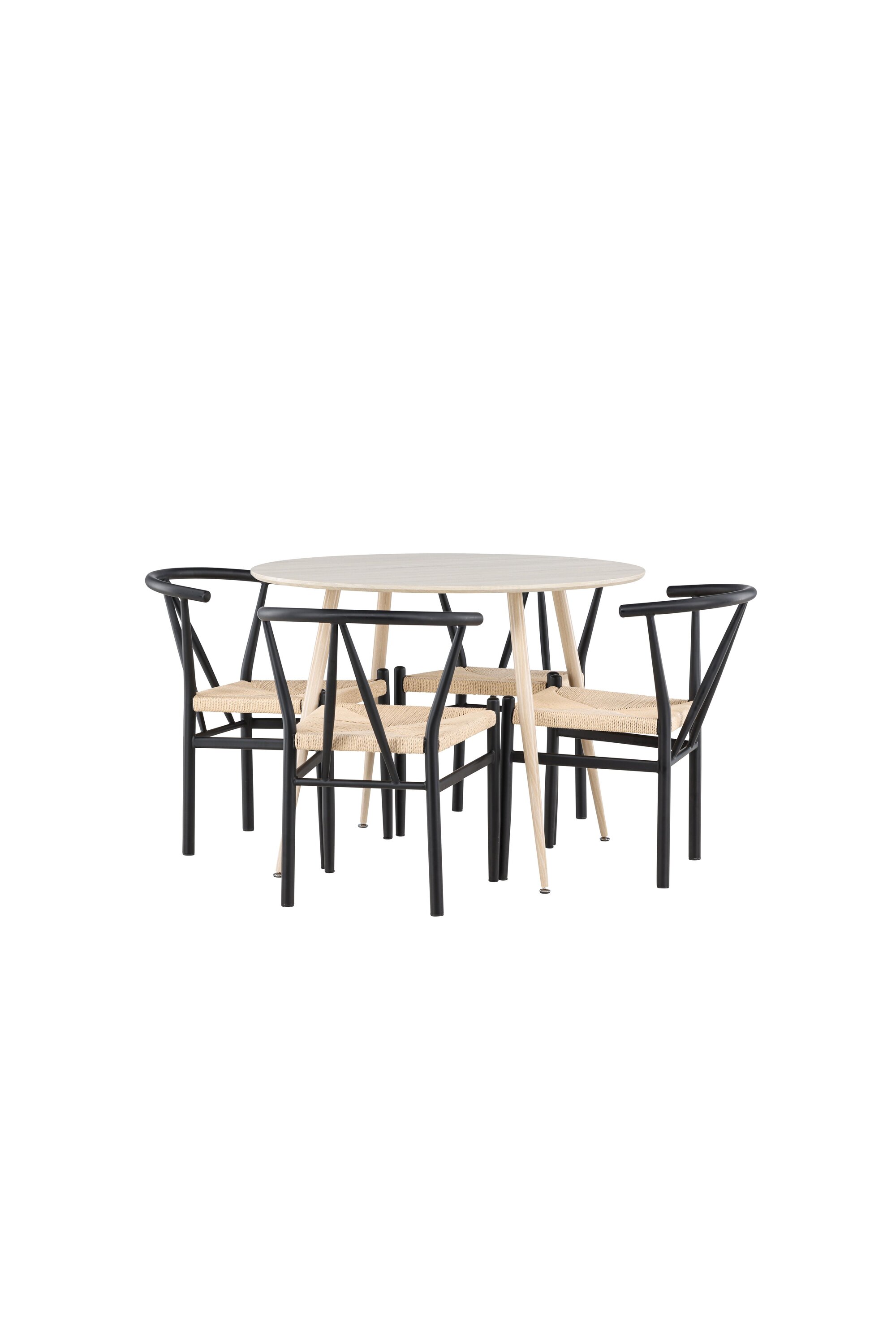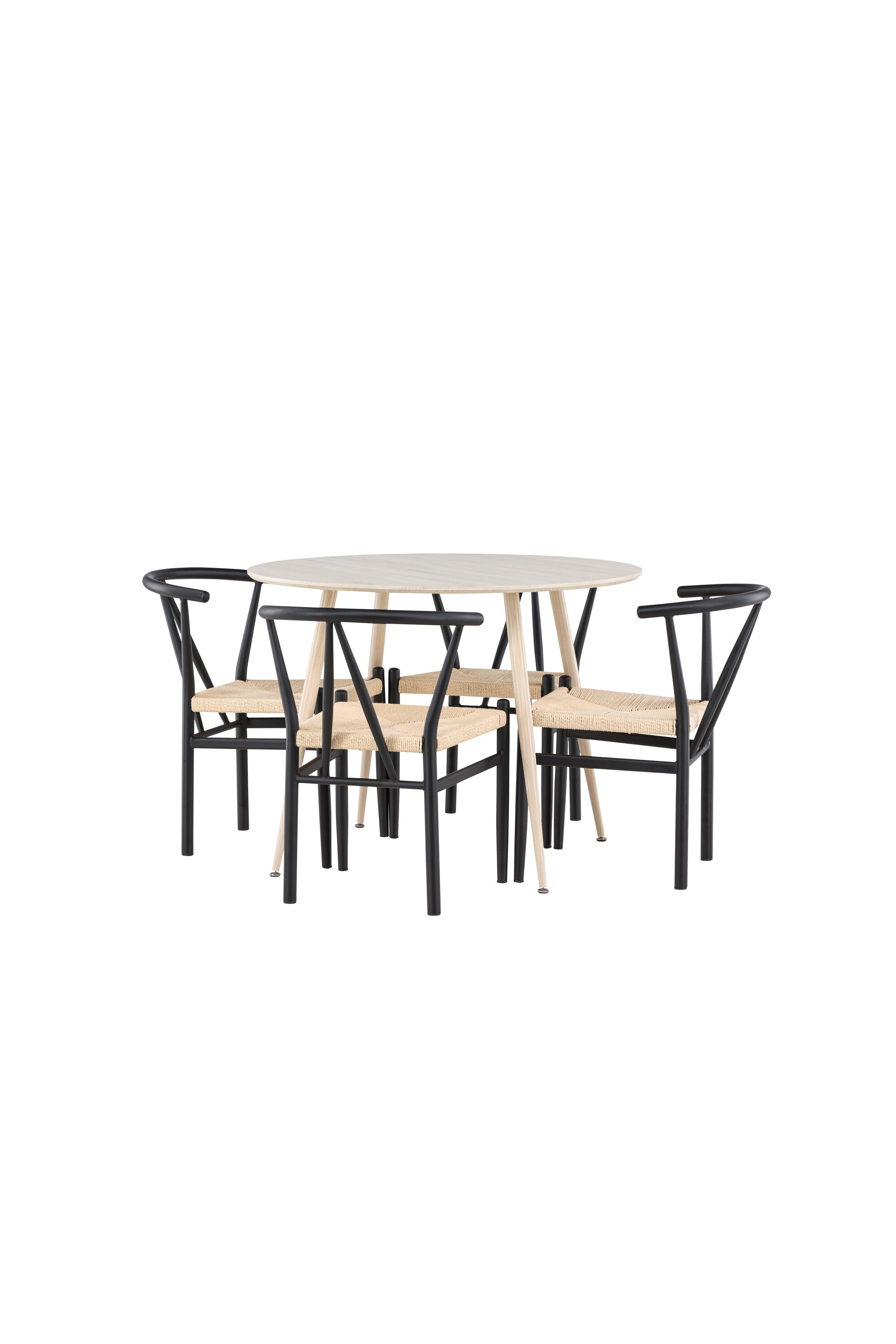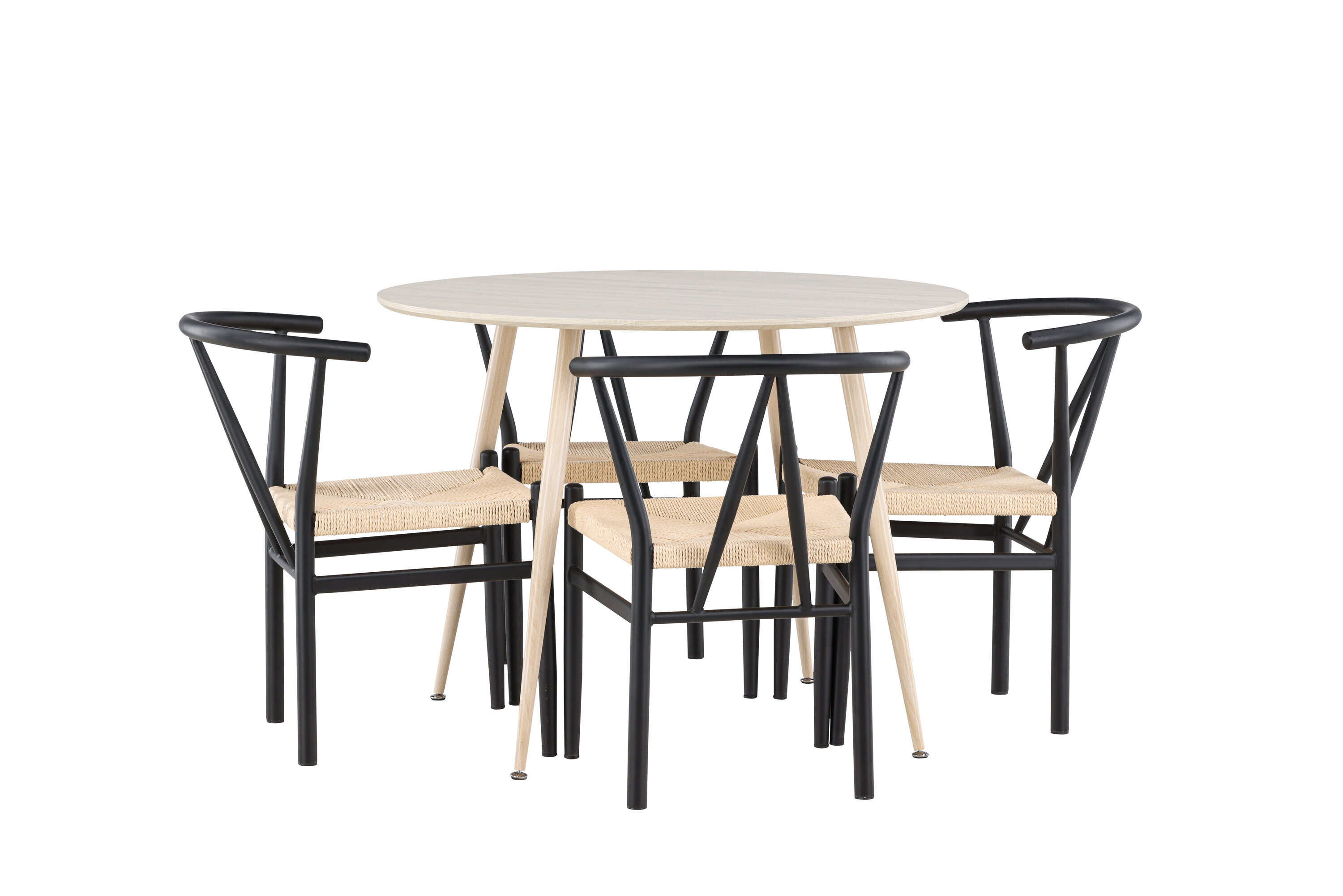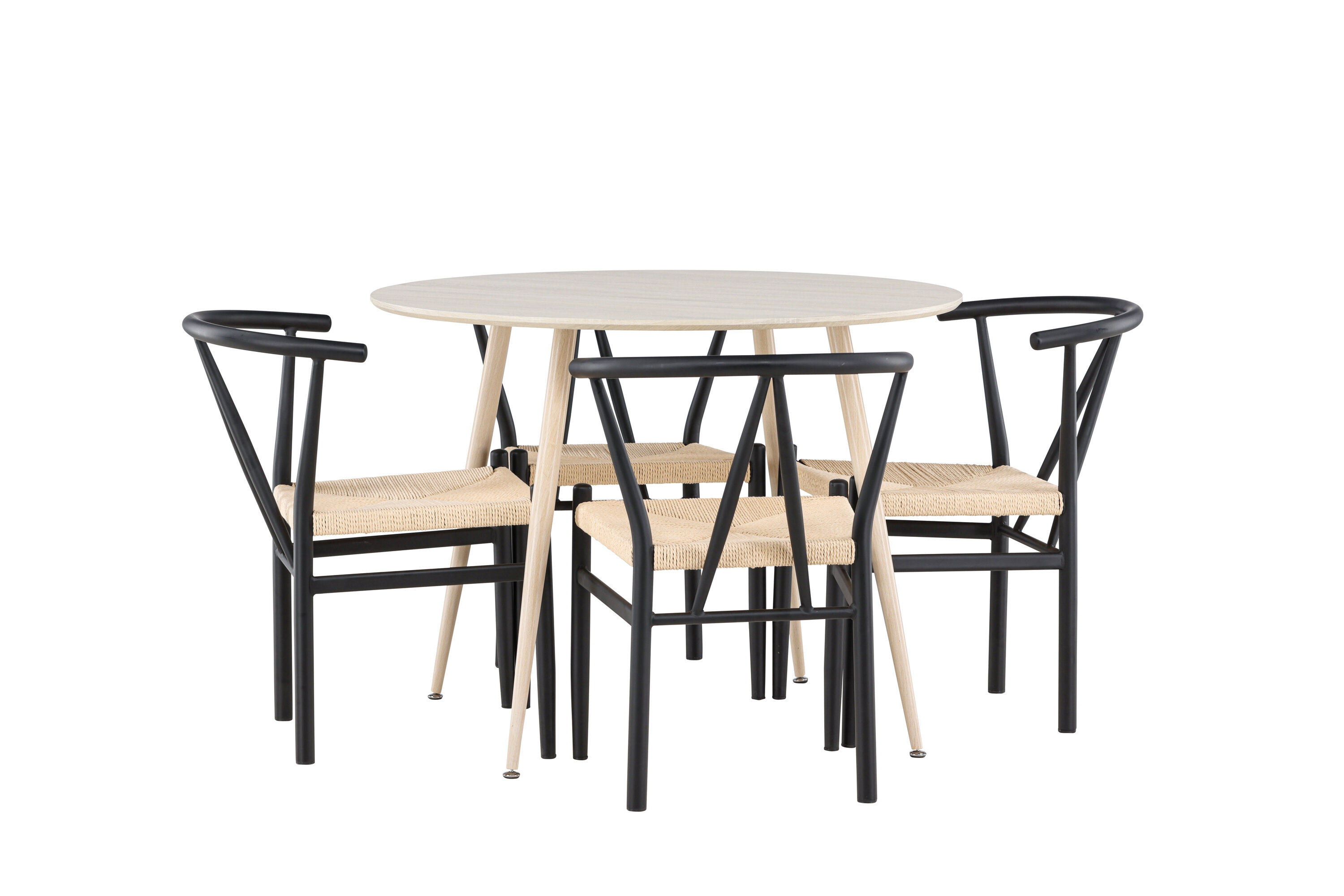 Avastage oma koju ideaalne söögikomplekt Plaza söögilaua ja Alfonsi söögitoolidega. Plaza söögilaud, mille läbimõõt on 100 cm, on valmistatud vastupidavast MDF-materjalist ja on valge pigmendiga, mis annab ruumile sooja ja kutsuva tunde. Selle kaasaegne disain ja puhtad jooned loovad rahuliku ja harmoonilise atmosfääri, muutes iga toidukorra lõõgastavaks kogemuseks. Kompaktne formaat muudab Plaza ideaalseks väiksematesse ruumidesse, pakkudes samas piisavalt ruumi mugavaks einetamiseks pere ja sõpradega. Täiendage oma söögilauda meie stiilsete Alfonsi söögitoolidega, mis ühendavad elegantselt stiili ja funktsionaalsuse. Beežist rotangist istme ja mustast terasest raamiga annavad need teie söögilauale ajatu ja klassikalise tunde. Alfonsi söögitoolid ei paku mitte ainult mugavat kohta istumiseks ja einete nautimiseks, vaid ka võimaluse luua laua ümber kogukonda. Tugev konstruktsioon ja tugev materjal muudavad Alfonsi valmis taluma paljusid õhtusööke ja koosviibimisi. Anna oma kodule kaasaegne ja stiilne hõng Plaza söögilaua ja Alfonsi söögitoolidega – ideaalne kombinatsioon kõigile, kes hindavad oma sisekujunduses nii stiili kui ka funktsionaalsust.