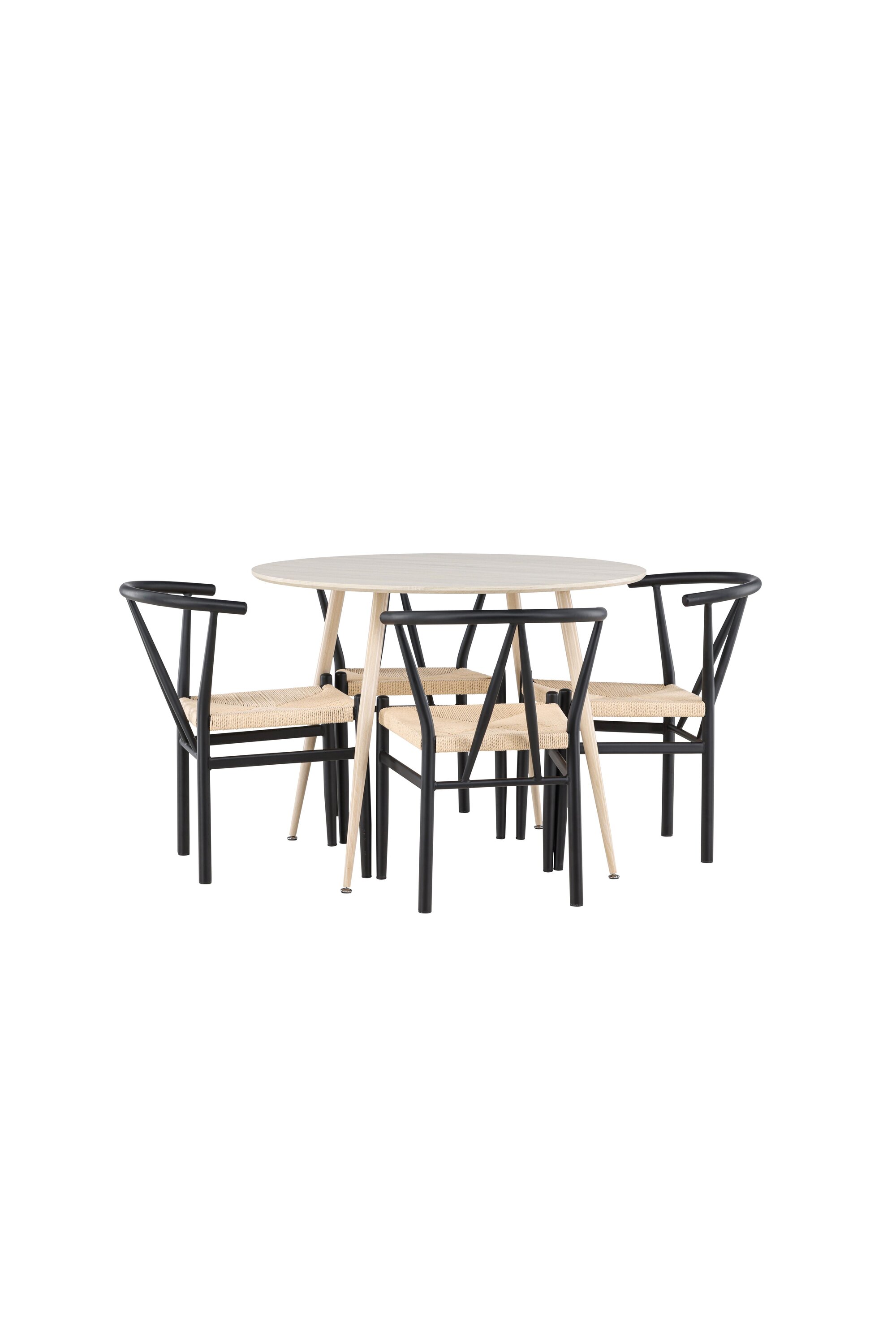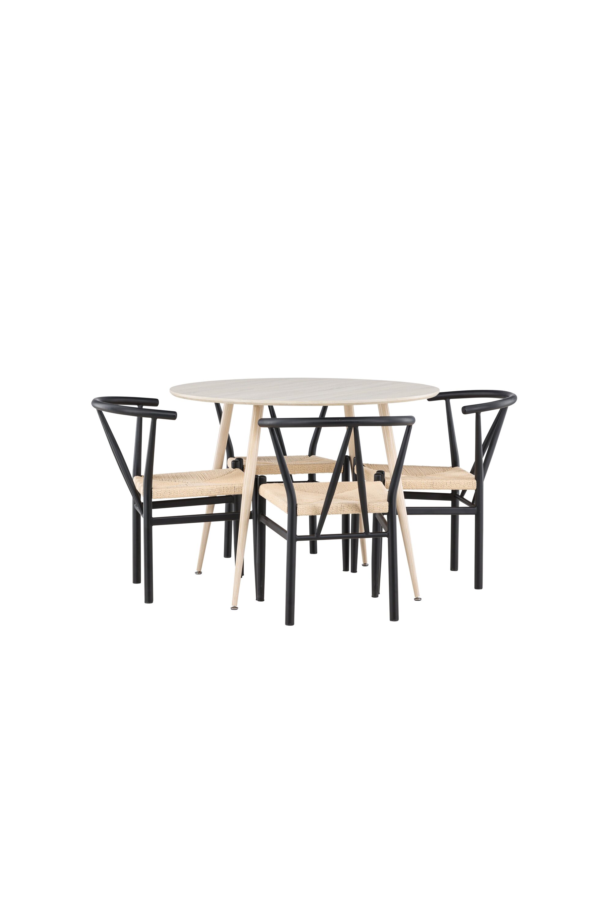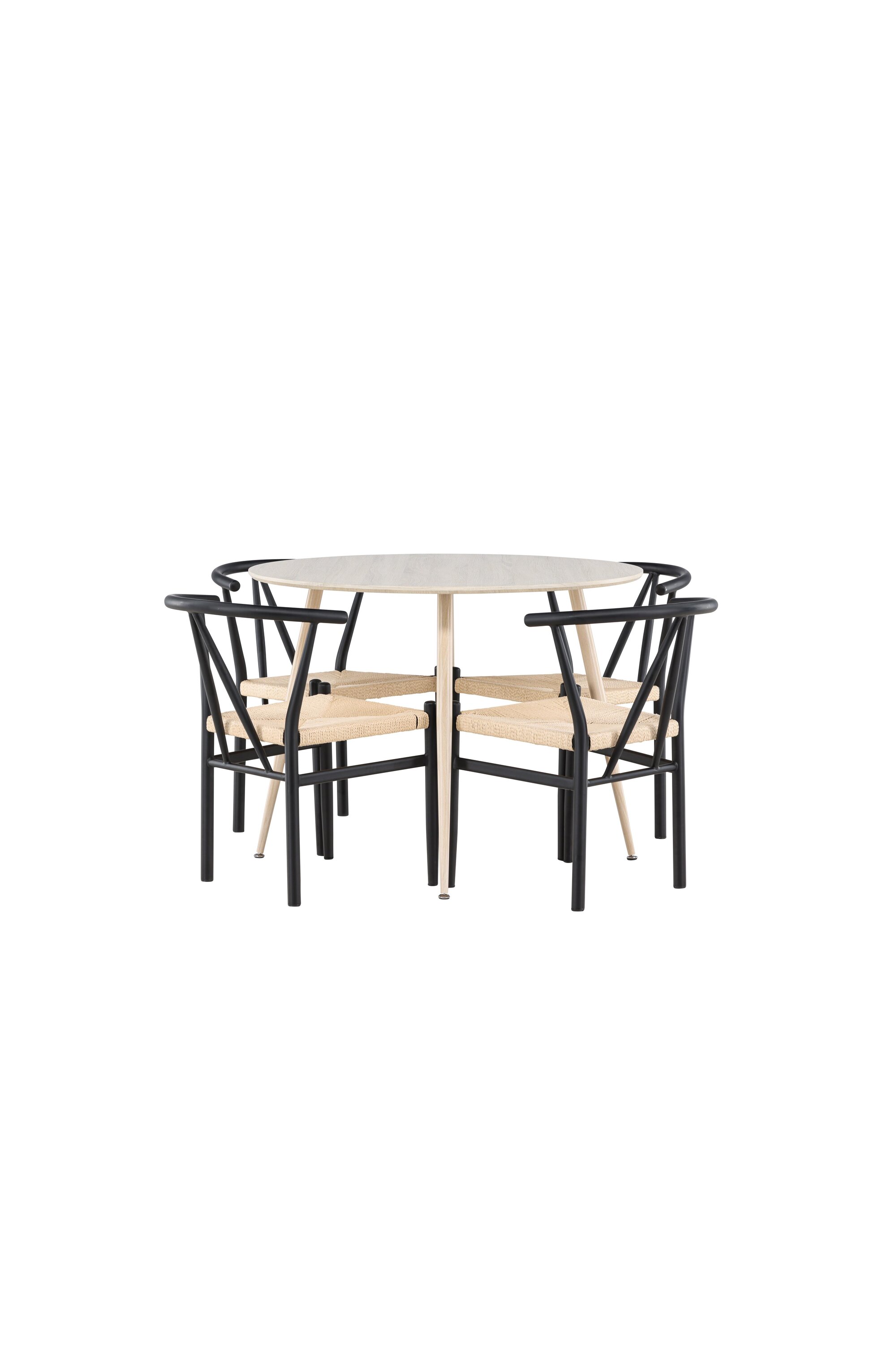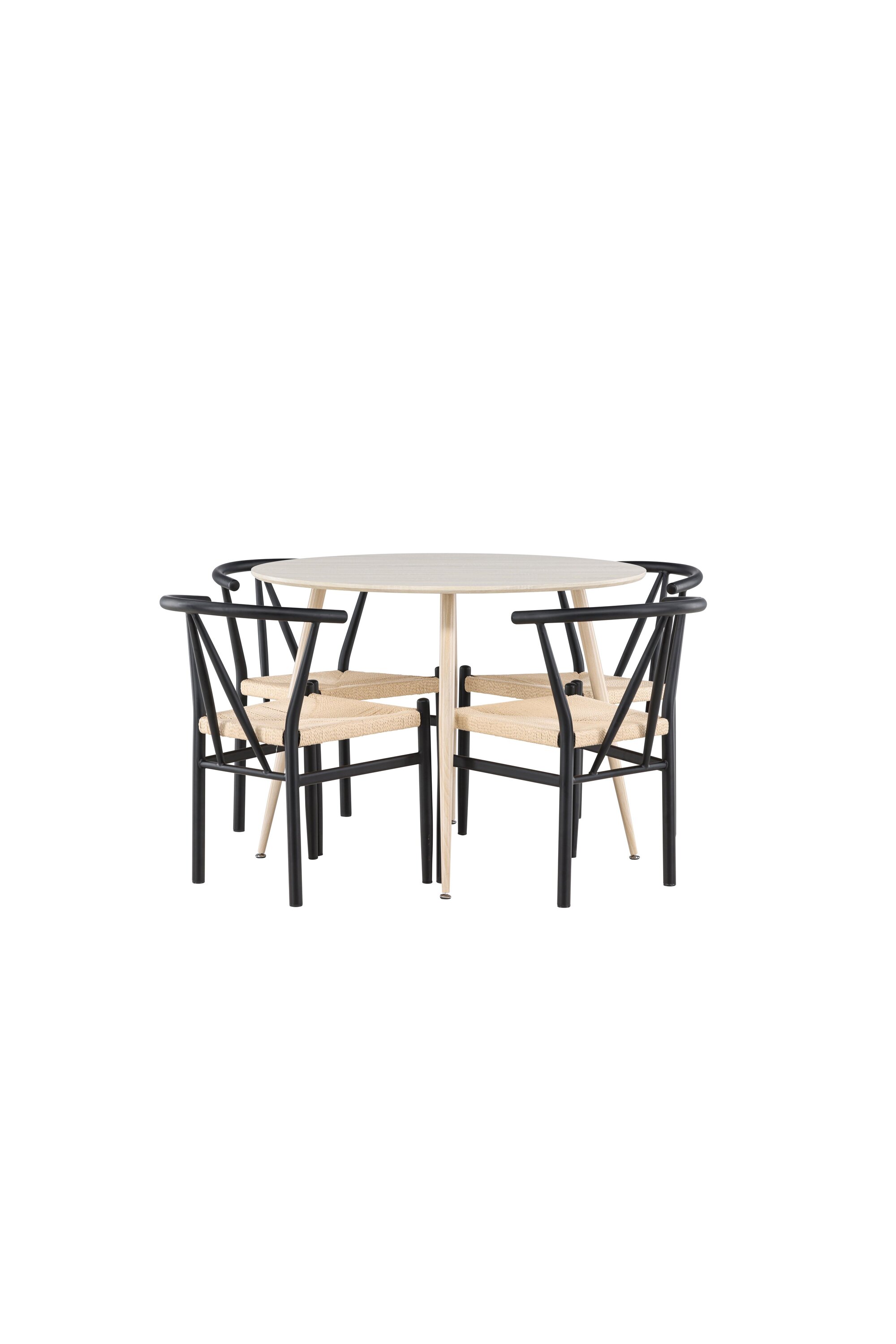 Avastage oma koju ideaalne söögikomplekt Plaza söögilaua ja Alfonsi söögitoolidega. Plaza söögilaud, mille läbimõõt on 100 cm, on valmistatud vastupidavast MDF-materjalist ja on valge pigmendiga, mis annab ruumile sooja ja kutsuva tunde. Selle kaasaegne disain ja puhtad jooned loovad rahuliku ja harmoonilise atmosfääri, muutes iga toidukorra lõõgastavaks kogemuseks. Kompaktne formaat muudab Plaza ideaalseks väiksematesse ruumidesse, pakkudes samas piisavalt ruumi mugavaks einetamiseks pere ja sõpradega. Täiendage oma söögilauda meie stiilsete Alfonsi söögitoolidega, mis ühendavad elegantselt stiili ja funktsionaalsuse. Beežist rotangist istme ja mustast terasest raamiga annavad need teie söögilauale ajatu ja klassikalise tunde. Alfonsi söögitoolid ei paku mitte ainult mugavat kohta istumiseks ja einete nautimiseks, vaid ka võimaluse luua laua ümber kogukonda. Tugev konstruktsioon ja tugev materjal muudavad Alfonsi valmis taluma paljusid õhtusööke ja koosviibimisi. Anna oma kodule kaasaegne ja stiilne hõng Plaza söögilaua ja Alfonsi söögitoolidega – ideaalne kombinatsioon kõigile, kes hindavad oma sisekujunduses nii stiili kui ka funktsionaalsust.
