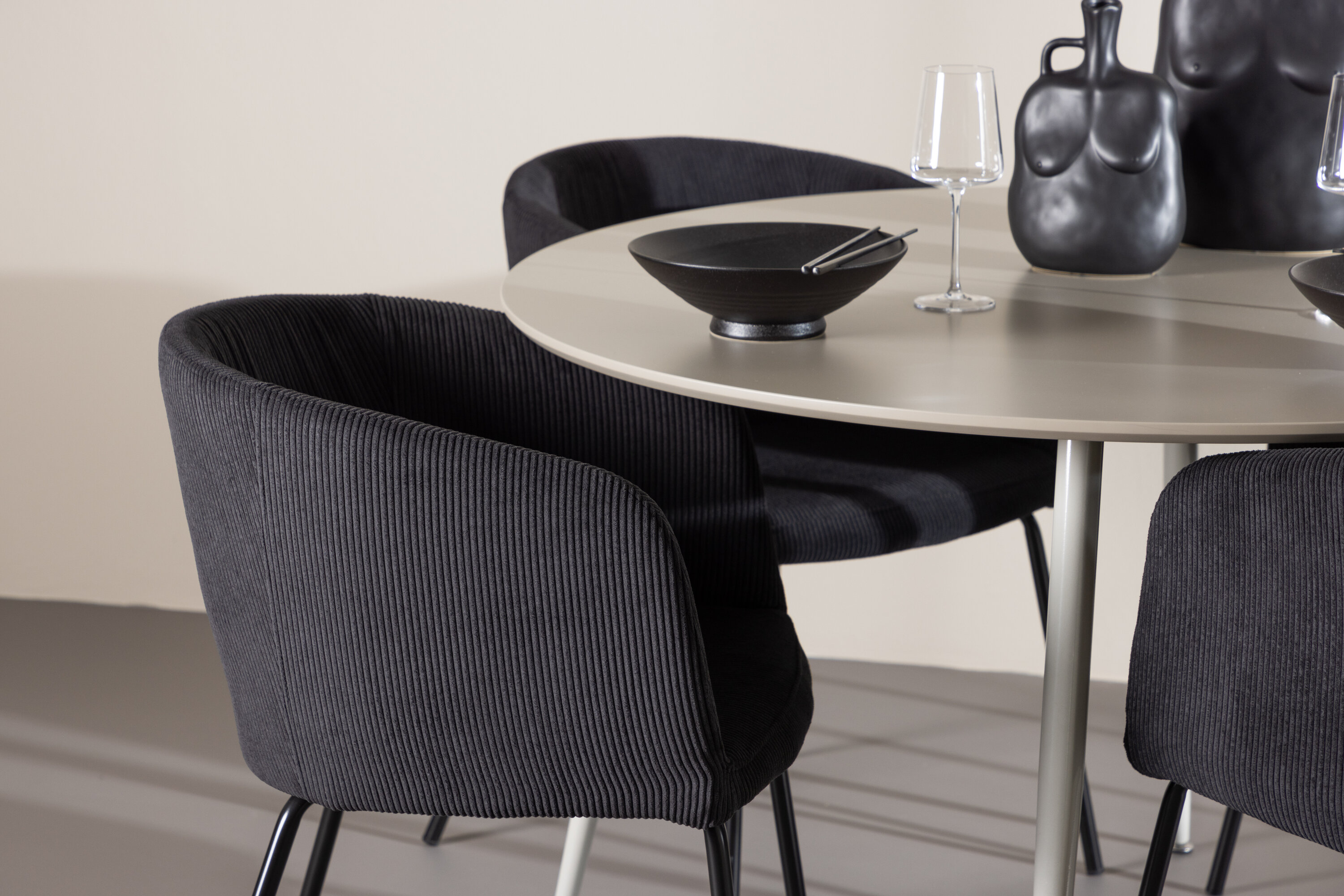 Looge stiilne ja kutsuv söögituba meie elegantse söögikomplektiga, mis ühendab keeruka Plaza laua mugavate Beriti toolidega. See söögikomplekt sobib suurepäraselt nii igapäevasteks eineteks kui ka pidulikeks sündmusteks, andes teie söögitoale kaasaegse ja peene tunde. MDF-plaadist Plaza laud on helebeeži värvi, mis lisab teie söögitoale sooja ja kutsuva tunde. Rikkaliku 120 cm läbimõõduga laud pakub rohkelt ruumi söögiks ja vestlusteks ning selle ümar kuju loob harmoonilise ja tasakaalustatud atmosfääri. Laua tugev konstruktsioon tagab pikaajalise kasutamise ja stabiilsuse. Neli Beriti tooli täiendavad lauda suurepäraselt oma elegantsete musta sametiga polsterdatud istmetega. Need toolid pakuvad nii mugavust kui ka stiili, muutes need ideaalseks pikkadeks ja nauditavateks eineteks pere ja sõpradega. Nende kaasaegne disain koos kõrgete seljatugede ja pehmete istmetega annab teie söögitoale rafineeritud ja kaasaegse ilme. See söögikomplekt on täiuslik segu esteetikast ja funktsionaalsusest, mistõttu on see suurepärane valik neile, kes otsivad elegantset ja mugavat söögituba. Täiustage oma söögituba Plaza laua ja Berit toolide stiilse kombinatsiooniga ning looge koht, kus jagatakse mälestusi ja rõõmu.