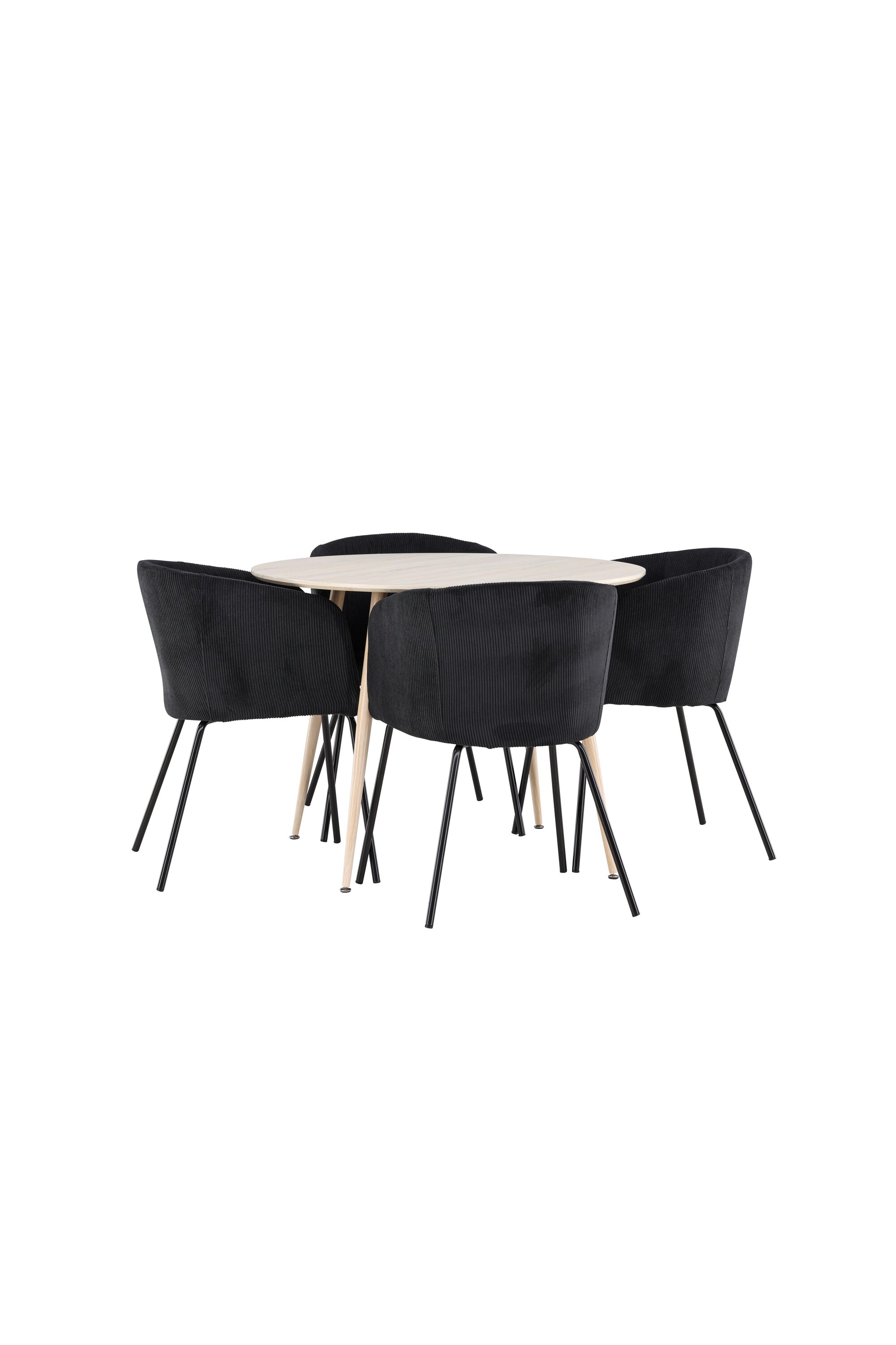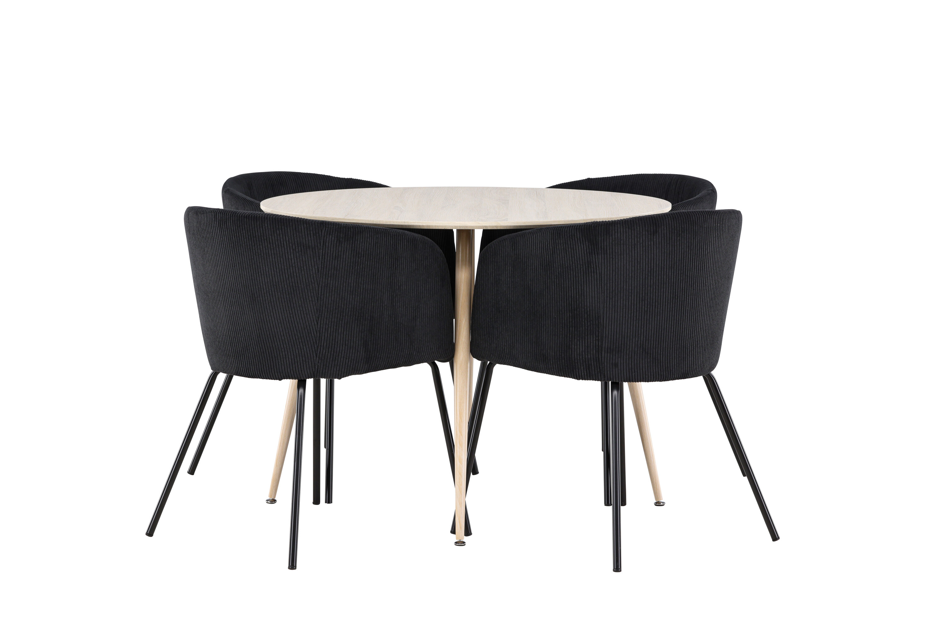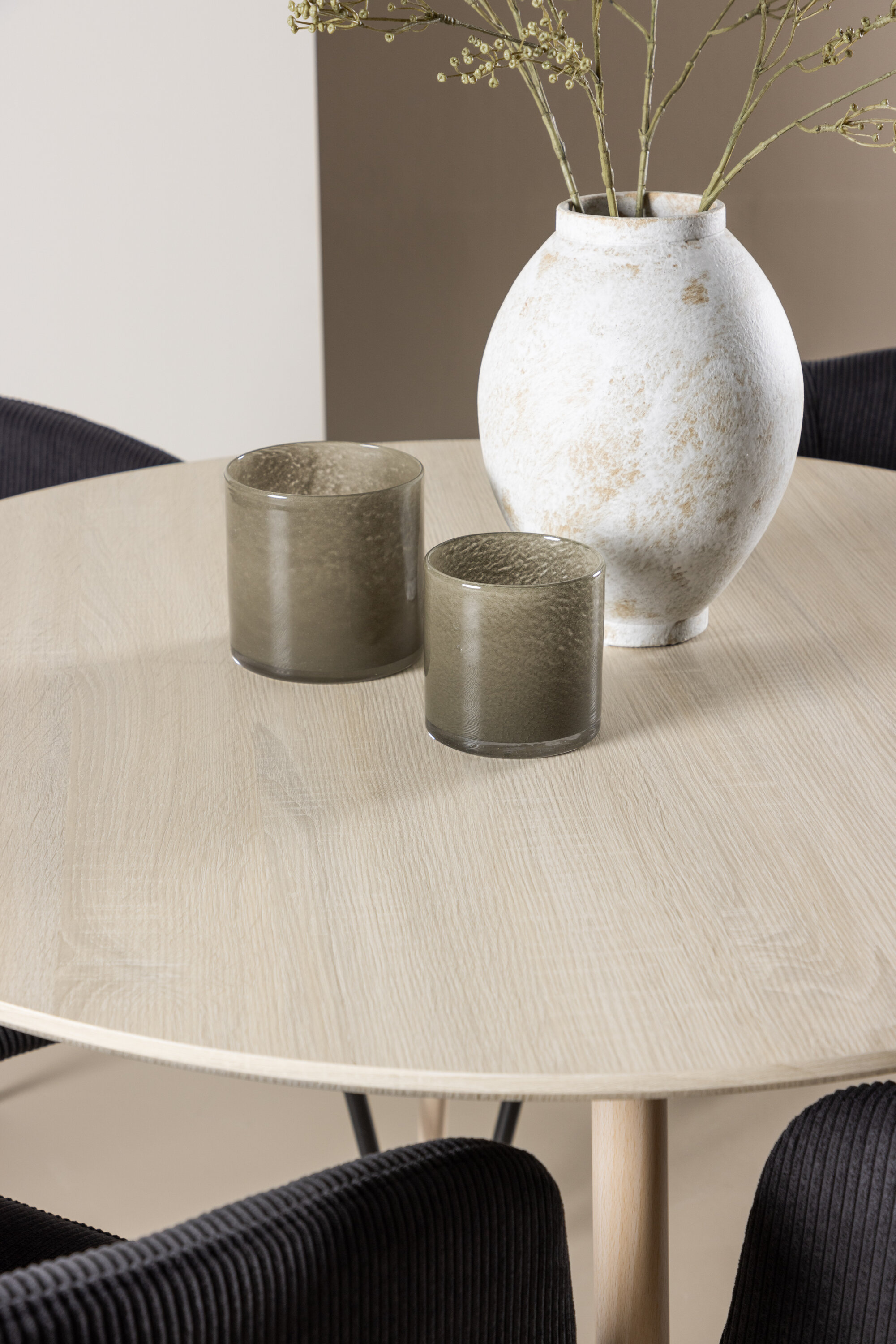 Avastage oma koju ideaalne söögikomplekt Plaza söögilaua ja Berit söögitoolidega. Plaza söögilaud, mille läbimõõt on 100 cm, on valmistatud vastupidavast MDF-materjalist ja on valge pigmendiga, mis annab ruumile sooja ja kutsuva tunde. Selle kaasaegne disain ja puhtad jooned loovad rahuliku ja harmoonilise atmosfääri, muutes iga toidukorra lõõgastavaks kogemuseks. Kompaktne formaat muudab Plaza ideaalseks väiksematesse ruumidesse, pakkudes samas piisavalt ruumi mugavaks einetamiseks pere ja sõpradega. Täiendage oma söögilauda Berit söögitoolidega, mis pakuvad luksuslikku mugavust ja kaasaegset stiili. Elegantse musta sametist polstri ja klanitud mustast terasest jalgadega Berit on täiuslik kombinatsioon keerukast disainist ja mugavusest. Berit avaldab muljet oma laia istmega, pakkudes palju ruumi mugavaks istumiskogemuseks söögi ajal või pikkadel vestlustel söögilaua taga. Selle kaasaegne ilme ja stiilsed mustast terasest jalad annavad Beritile omanäolise ja stiilse iseloomu, mis tõstab iga söögitoa esile. Andke oma söögitoale luksuse ja modernsuse tunne selle söögikomplektiga, mis ühendab stiili ja funktsionaalsuse parimal viisil. Plaza söögilaua ja Berit söögitoolidega saate elegantse ja mugava lahenduse kõikideks oma söögikordadeks.