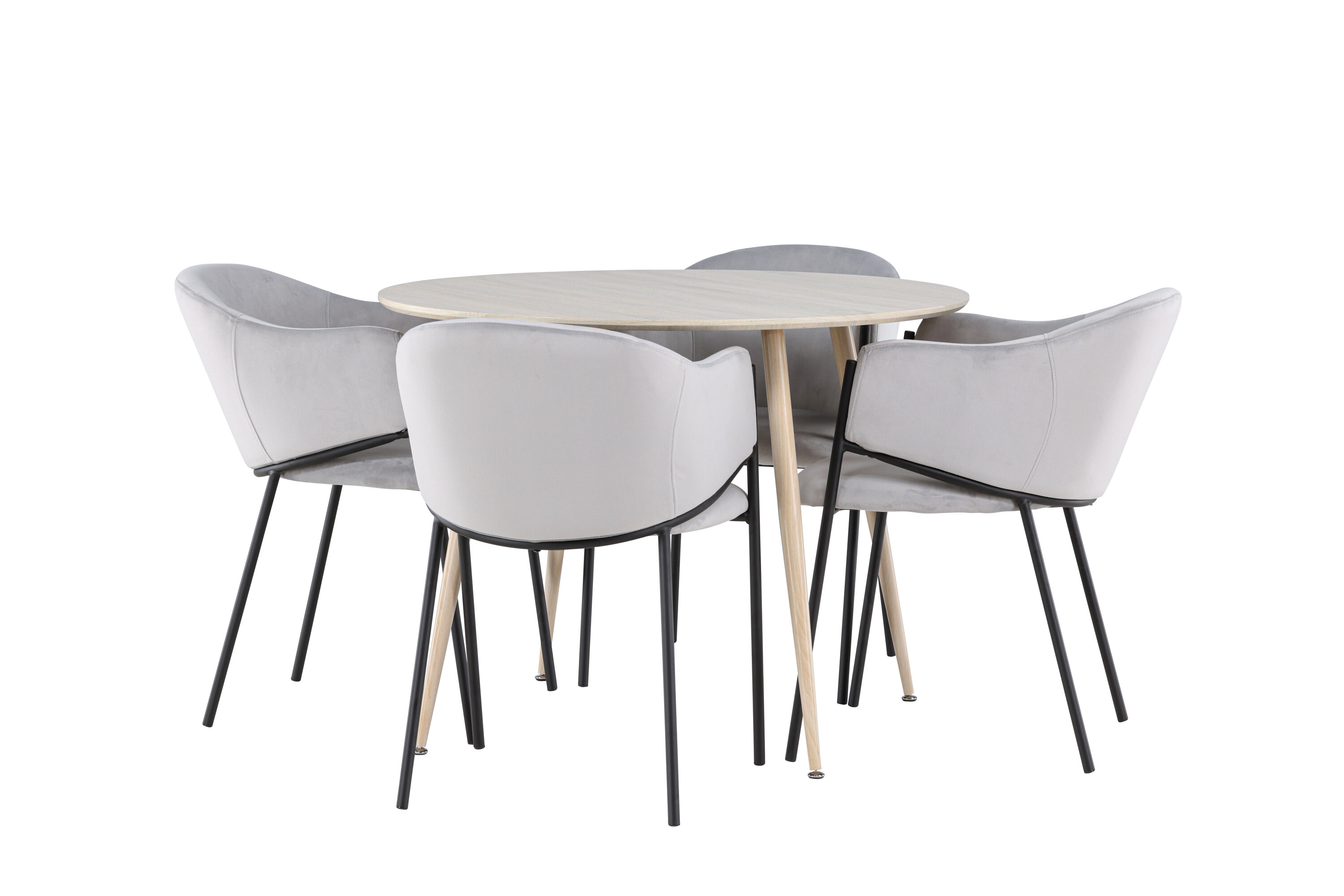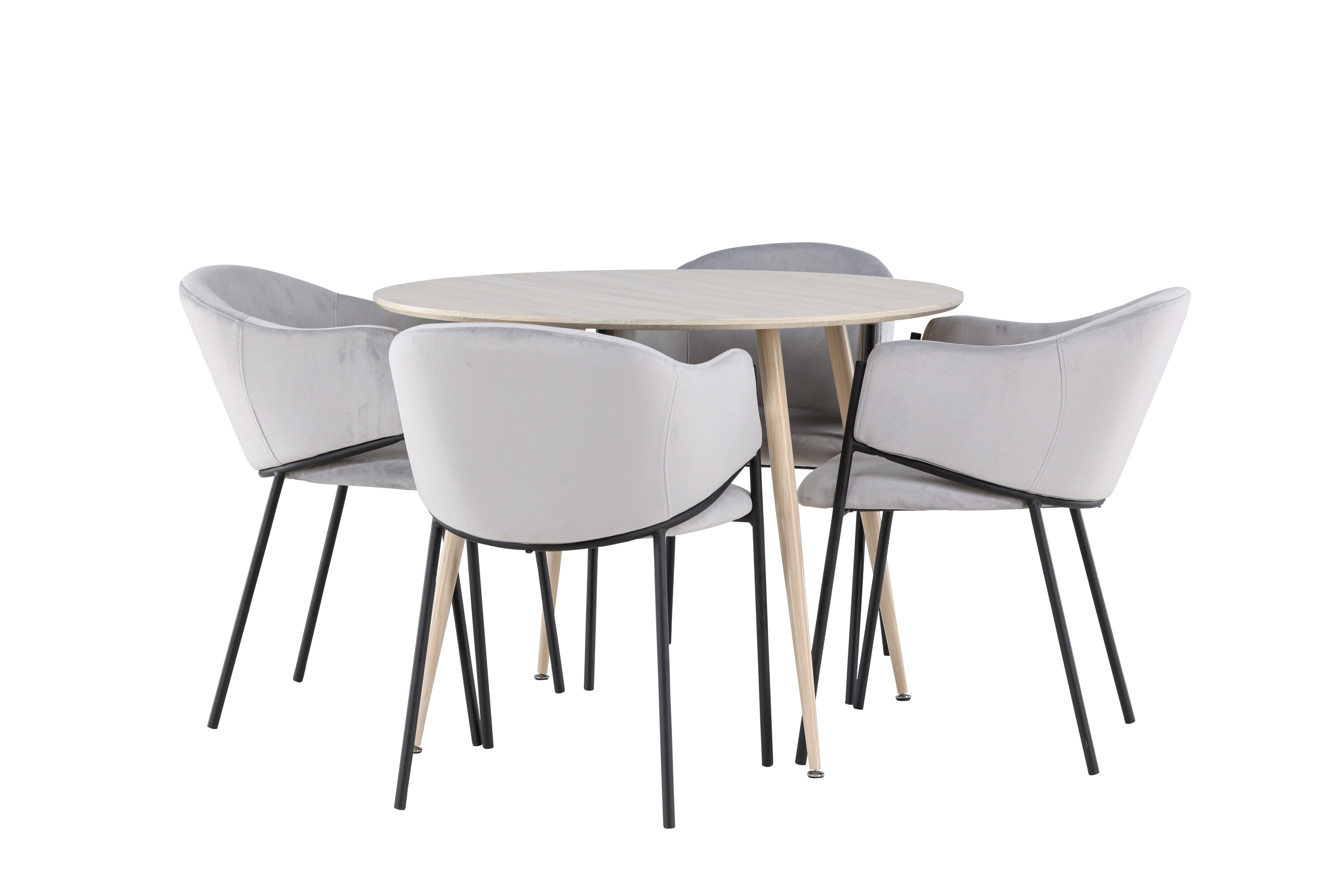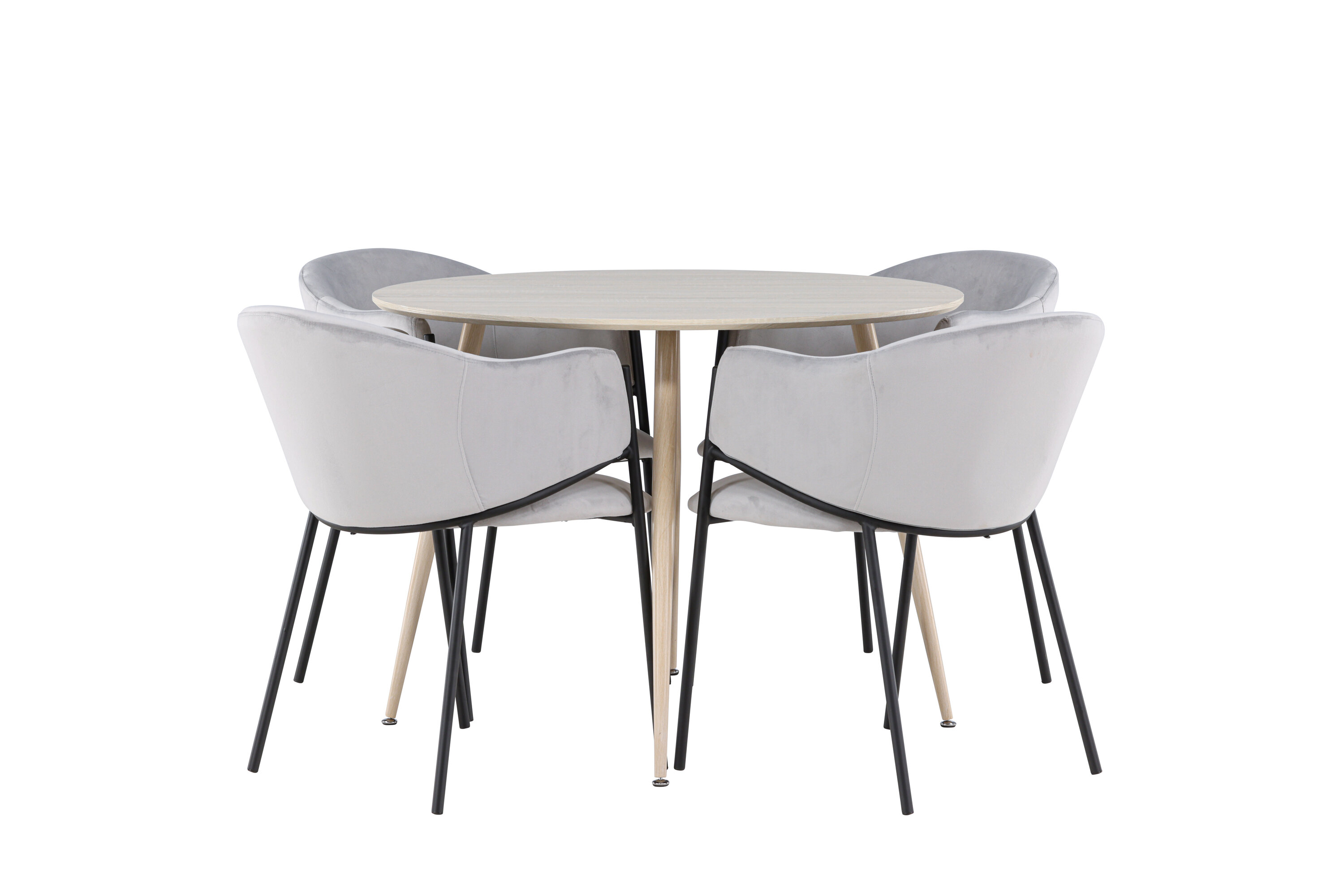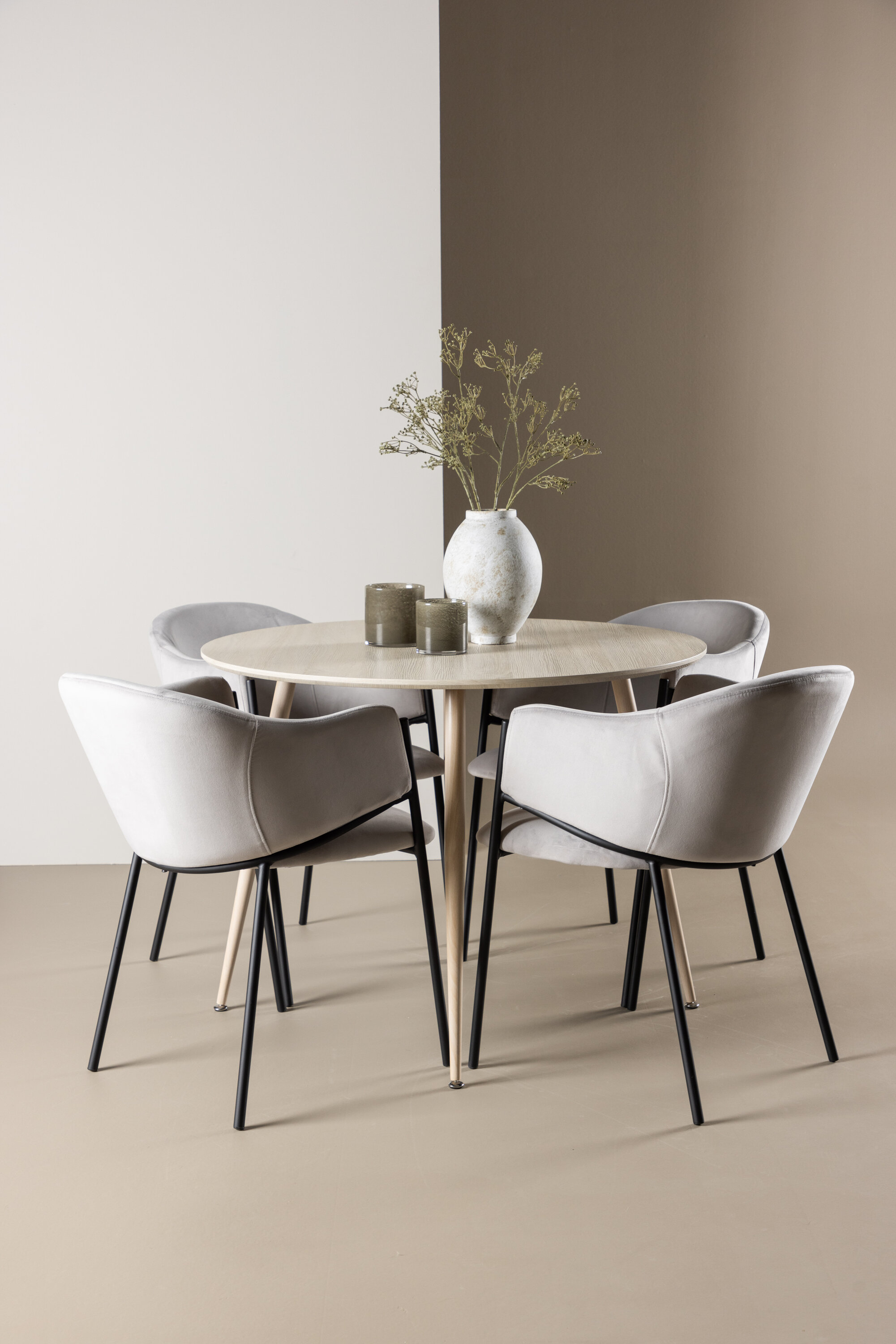 Avasta oma koju täiuslik söögikomplekt Plaza söögilaua ja Evelina söögitoolidega. Plaza söögilaud, mille läbimõõt on 100 cm, on valmistatud vastupidavast MDF-materjalist ja on valge pigmendiga, mis annab ruumile sooja ja kutsuva tunde. Selle kaasaegne disain ja puhtad jooned loovad rahuliku ja harmoonilise atmosfääri, muutes iga toidukorra lõõgastavaks kogemuseks. Kompaktne formaat muudab Plaza ideaalseks väiksematesse ruumidesse, pakkudes samas piisavalt ruumi mugavaks einetamiseks pere ja sõpradega. Täienda oma söögilauda Evelina söögitoolidega, mis pakuvad nostalgilist ilmet ja luksuslikku hõngu sinu söögilaua ümber. Toolidel on täielikult polsterdatud iste, millel on helehallist sametkangast ümar seljatugi ja dekoratiivne, minimalistlik mustast terasest jalaraam. Trendikas disain avaldab muljet ja on täielikult kooskõlas praeguste trendidega. Istuge mugavalt ja nautige einet nendes elegantsetes söögitoolides, mis on ühtaegu stiilsed ja mugavad. Anna oma kodule kaasaegne ja stiilne hõng Plaza söögilaua ja Evelina söögitoolidega – ideaalne kombinatsioon neile, kes hindavad oma sisekujunduses nii stiili kui ka funktsionaalsust. Selle stiilse söögikomplektiga looge hubane atmosfäär ja nautige maitsvaid eineid.