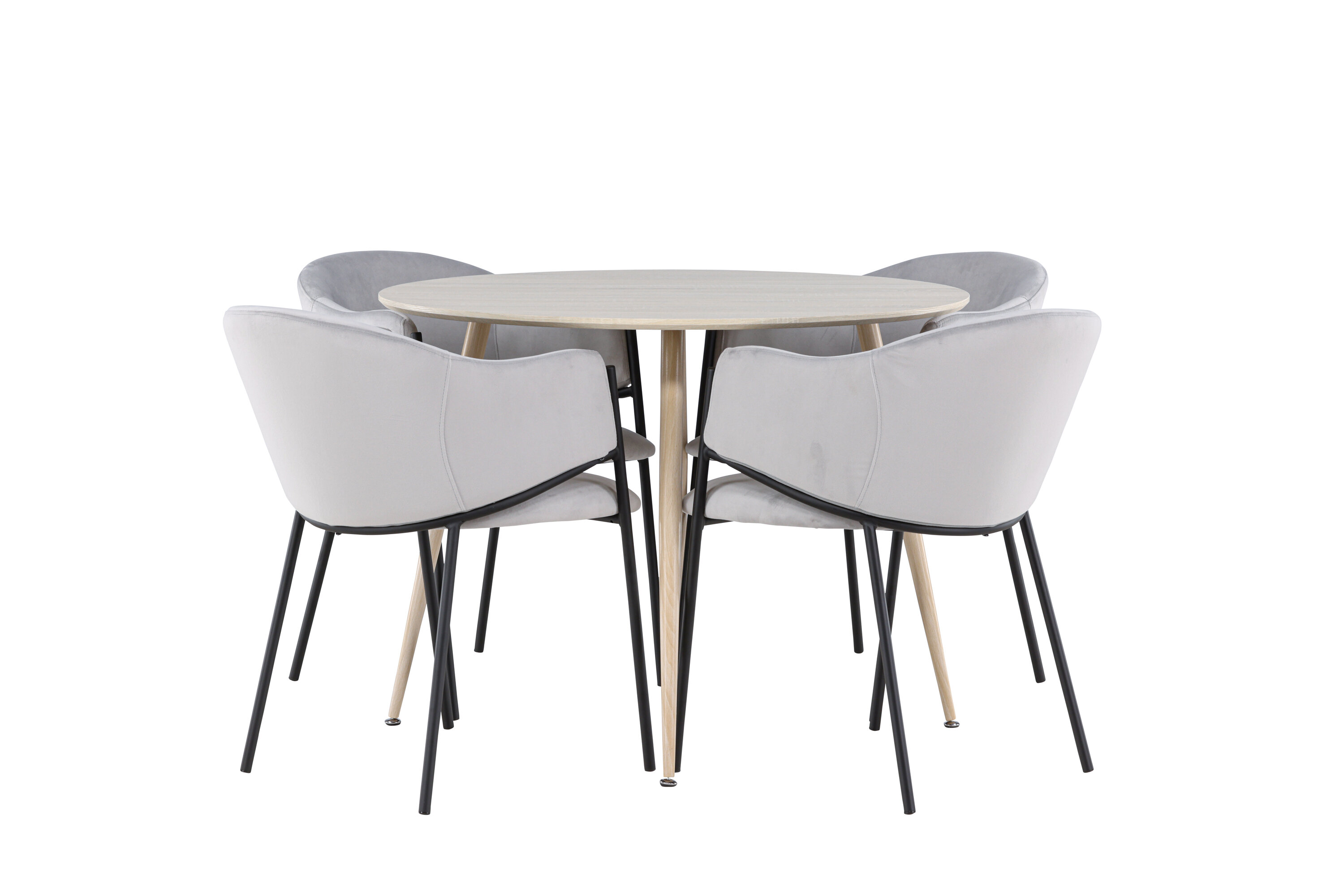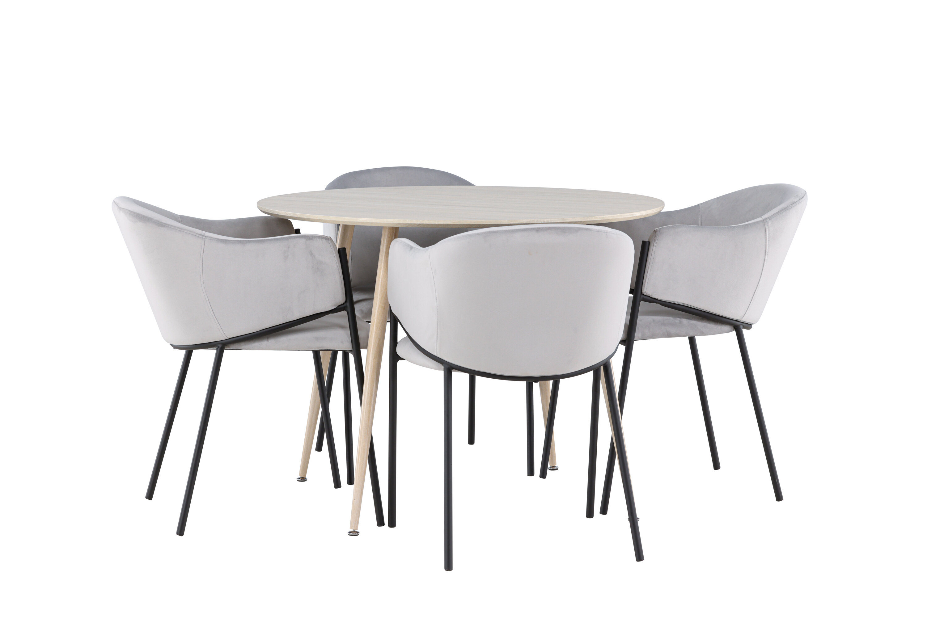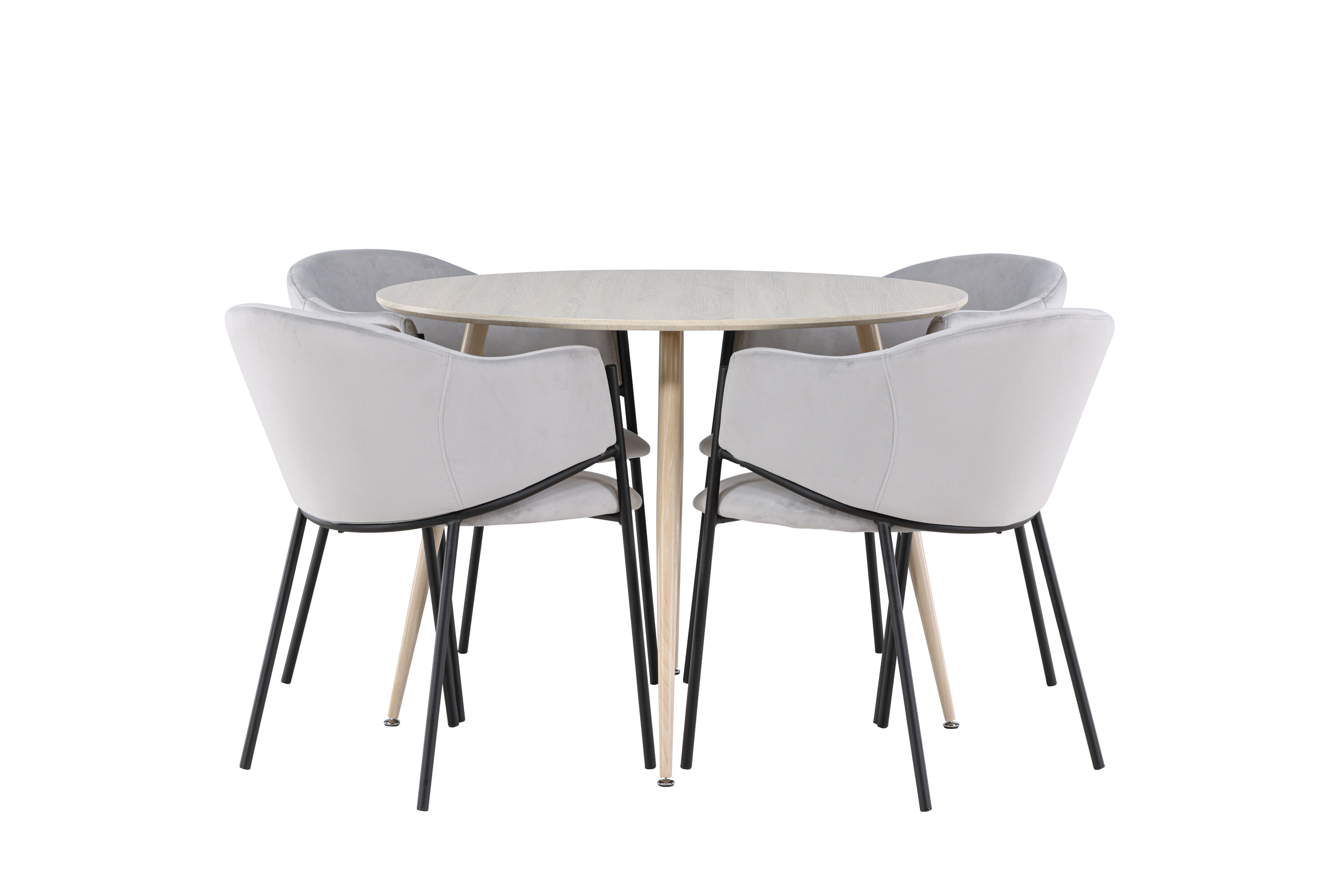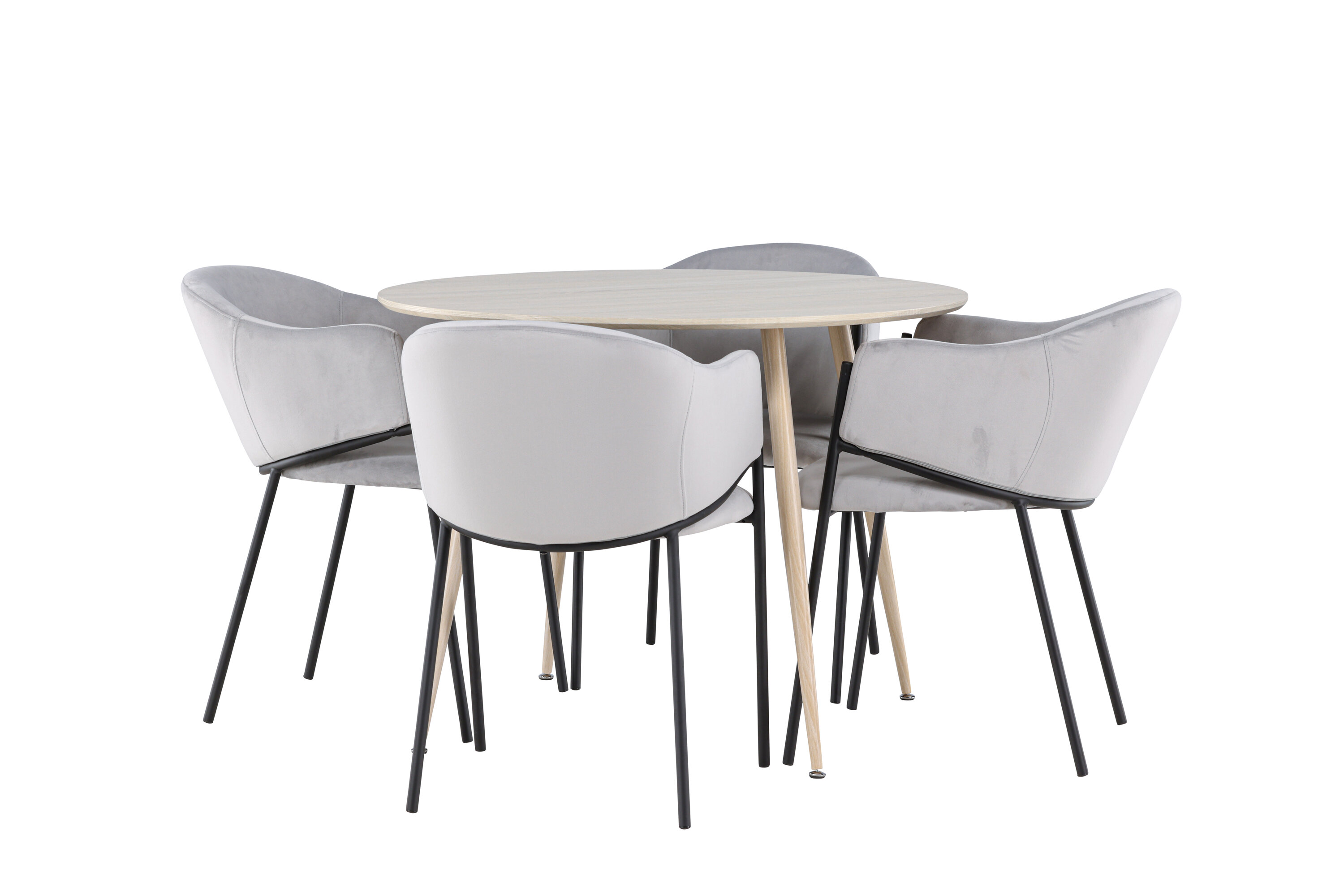 Avasta oma koju täiuslik söögikomplekt Plaza söögilaua ja Evelina söögitoolidega. Plaza söögilaud, mille läbimõõt on 100 cm, on valmistatud vastupidavast MDF-materjalist ja on valge pigmendiga, mis annab ruumile sooja ja kutsuva tunde. Selle kaasaegne disain ja puhtad jooned loovad rahuliku ja harmoonilise atmosfääri, muutes iga toidukorra lõõgastavaks kogemuseks. Kompaktne formaat muudab Plaza ideaalseks väiksematesse ruumidesse, pakkudes samas piisavalt ruumi mugavaks einetamiseks pere ja sõpradega. Täienda oma söögilauda Evelina söögitoolidega, mis pakuvad nostalgilist ilmet ja luksuslikku hõngu sinu söögilaua ümber. Toolidel on täielikult polsterdatud iste, millel on helehallist sametkangast ümar seljatugi ja dekoratiivne, minimalistlik mustast terasest jalaraam. Trendikas disain avaldab muljet ja on täielikult kooskõlas praeguste trendidega. Istuge mugavalt ja nautige einet nendes elegantsetes söögitoolides, mis on ühtaegu stiilsed ja mugavad. Anna oma kodule kaasaegne ja stiilne hõng Plaza söögilaua ja Evelina söögitoolidega – ideaalne kombinatsioon neile, kes hindavad oma sisekujunduses nii stiili kui ka funktsionaalsust. Selle stiilse söögikomplektiga looge hubane atmosfäär ja nautige maitsvaid eineid.