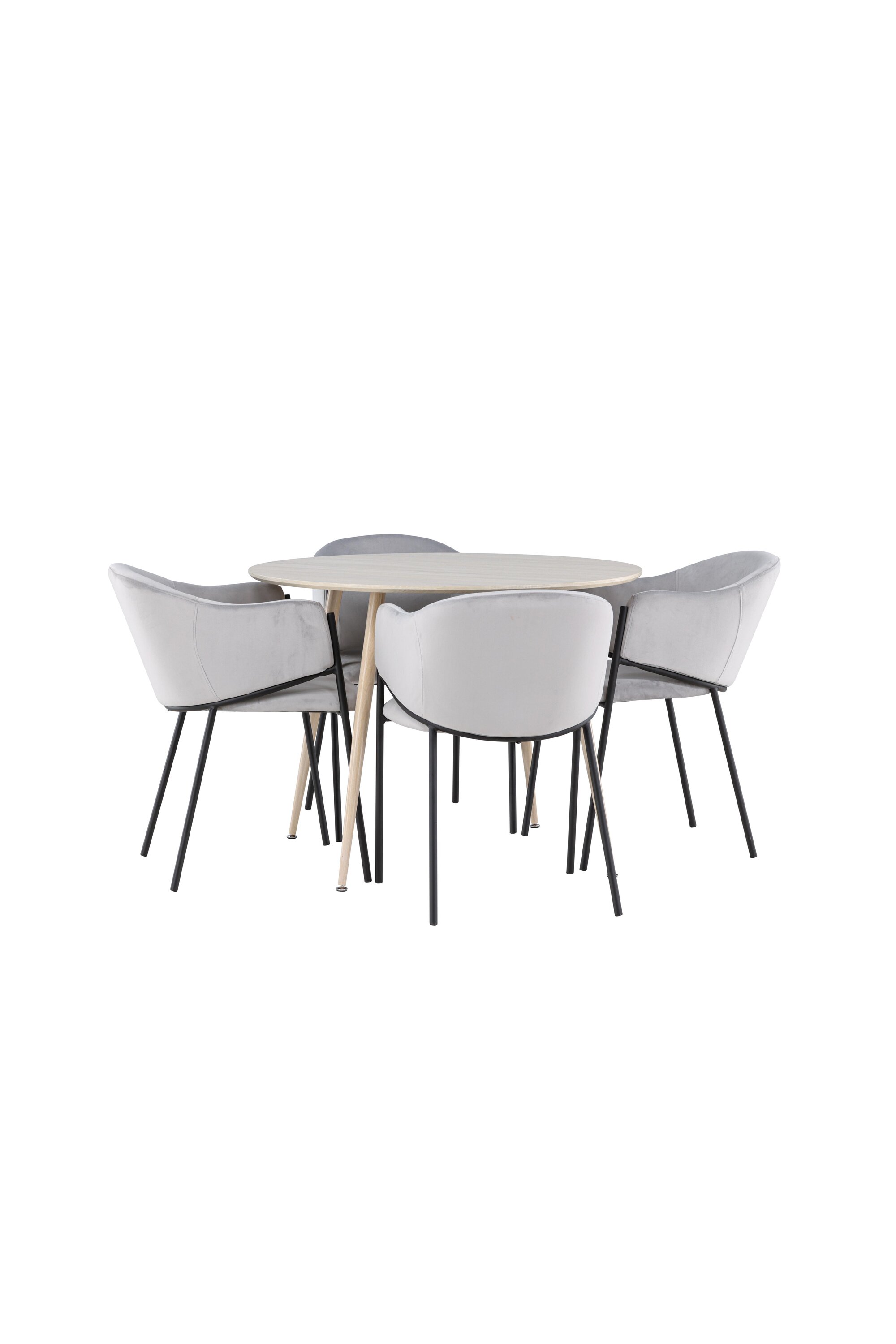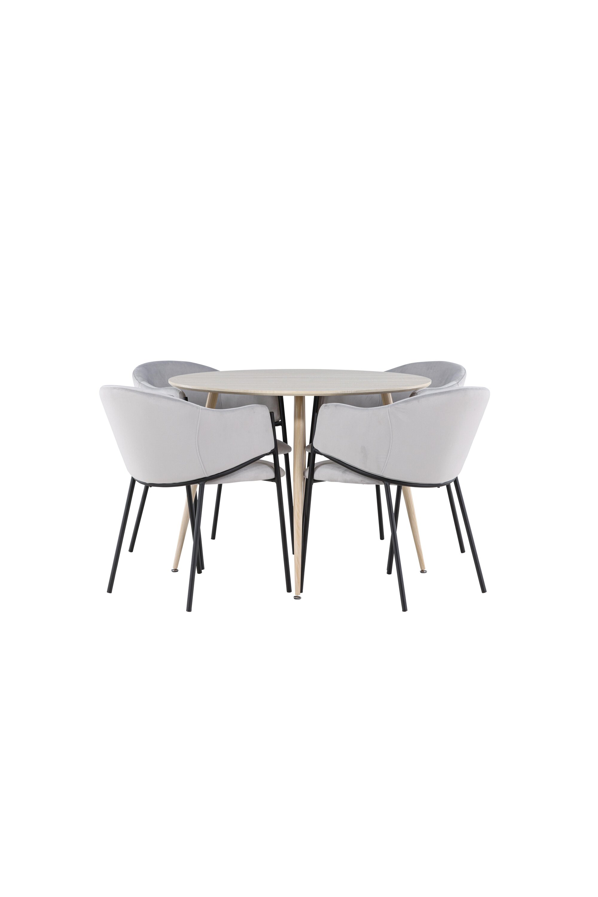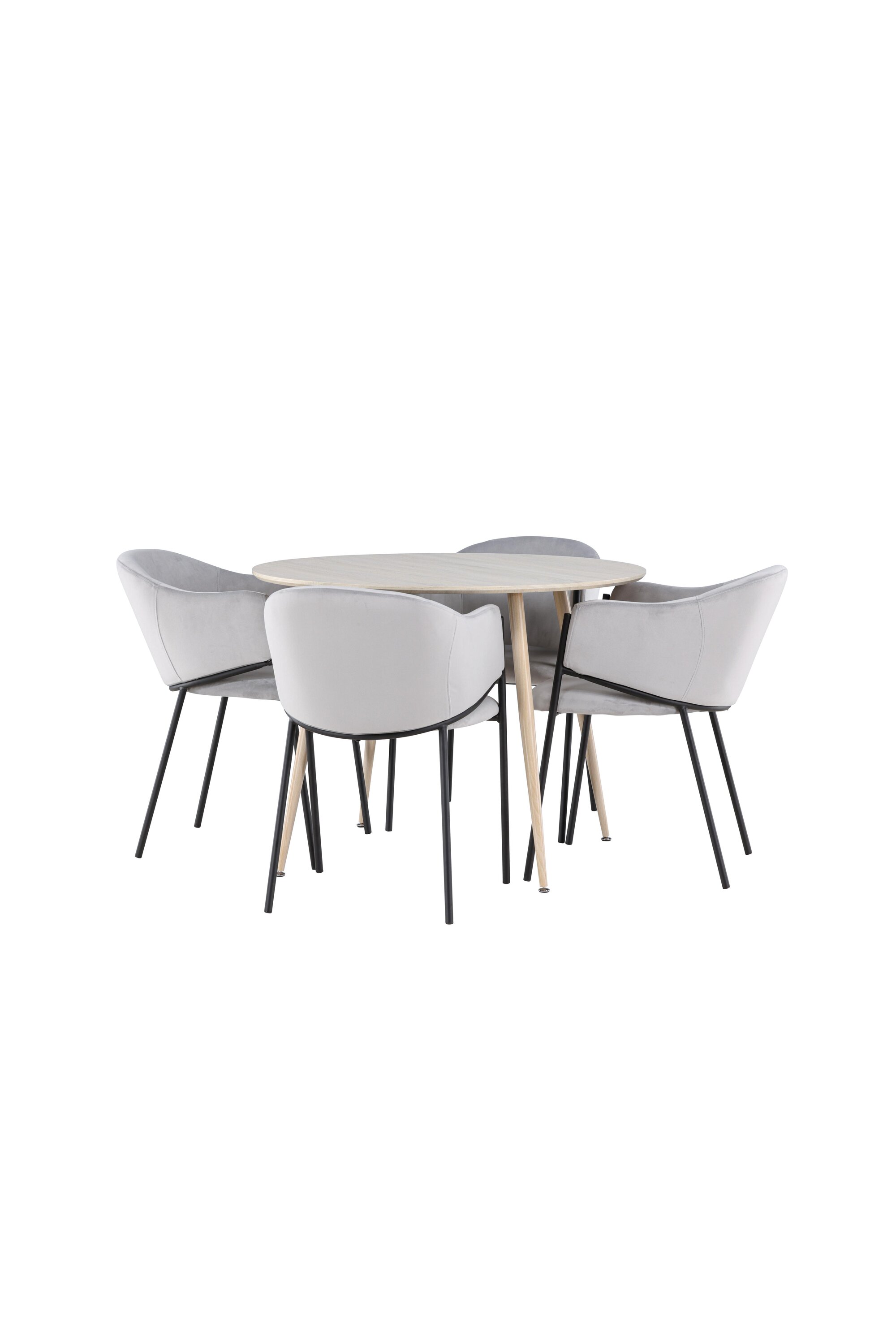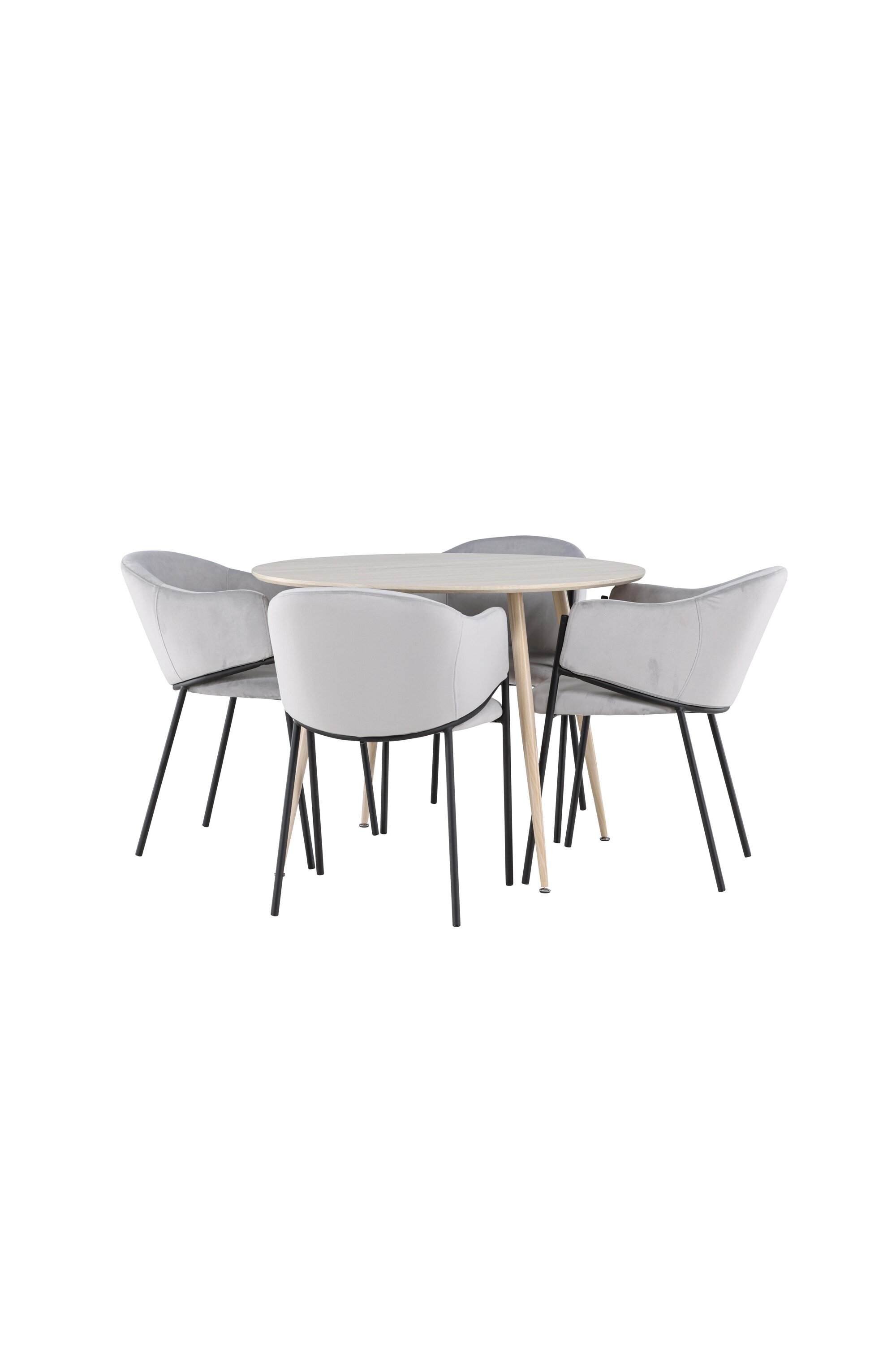 Avasta oma koju täiuslik söögikomplekt Plaza söögilaua ja Evelina söögitoolidega. Plaza söögilaud, mille läbimõõt on 100 cm, on valmistatud vastupidavast MDF-materjalist ja on valge pigmendiga, mis annab ruumile sooja ja kutsuva tunde. Selle kaasaegne disain ja puhtad jooned loovad rahuliku ja harmoonilise atmosfääri, muutes iga toidukorra lõõgastavaks kogemuseks. Kompaktne formaat muudab Plaza ideaalseks väiksematesse ruumidesse, pakkudes samas piisavalt ruumi mugavaks einetamiseks pere ja sõpradega. Täienda oma söögilauda Evelina söögitoolidega, mis pakuvad nostalgilist ilmet ja luksuslikku hõngu sinu söögilaua ümber. Toolidel on täielikult polsterdatud iste, millel on helehallist sametkangast ümar seljatugi ja dekoratiivne, minimalistlik mustast terasest jalaraam. Trendikas disain avaldab muljet ja on täielikult kooskõlas praeguste trendidega. Istuge mugavalt ja nautige einet nendes elegantsetes söögitoolides, mis on ühtaegu stiilsed ja mugavad. Anna oma kodule kaasaegne ja stiilne hõng Plaza söögilaua ja Evelina söögitoolidega – ideaalne kombinatsioon neile, kes hindavad oma sisekujunduses nii stiili kui ka funktsionaalsust. Selle stiilse söögikomplektiga looge hubane atmosfäär ja nautige maitsvaid eineid.