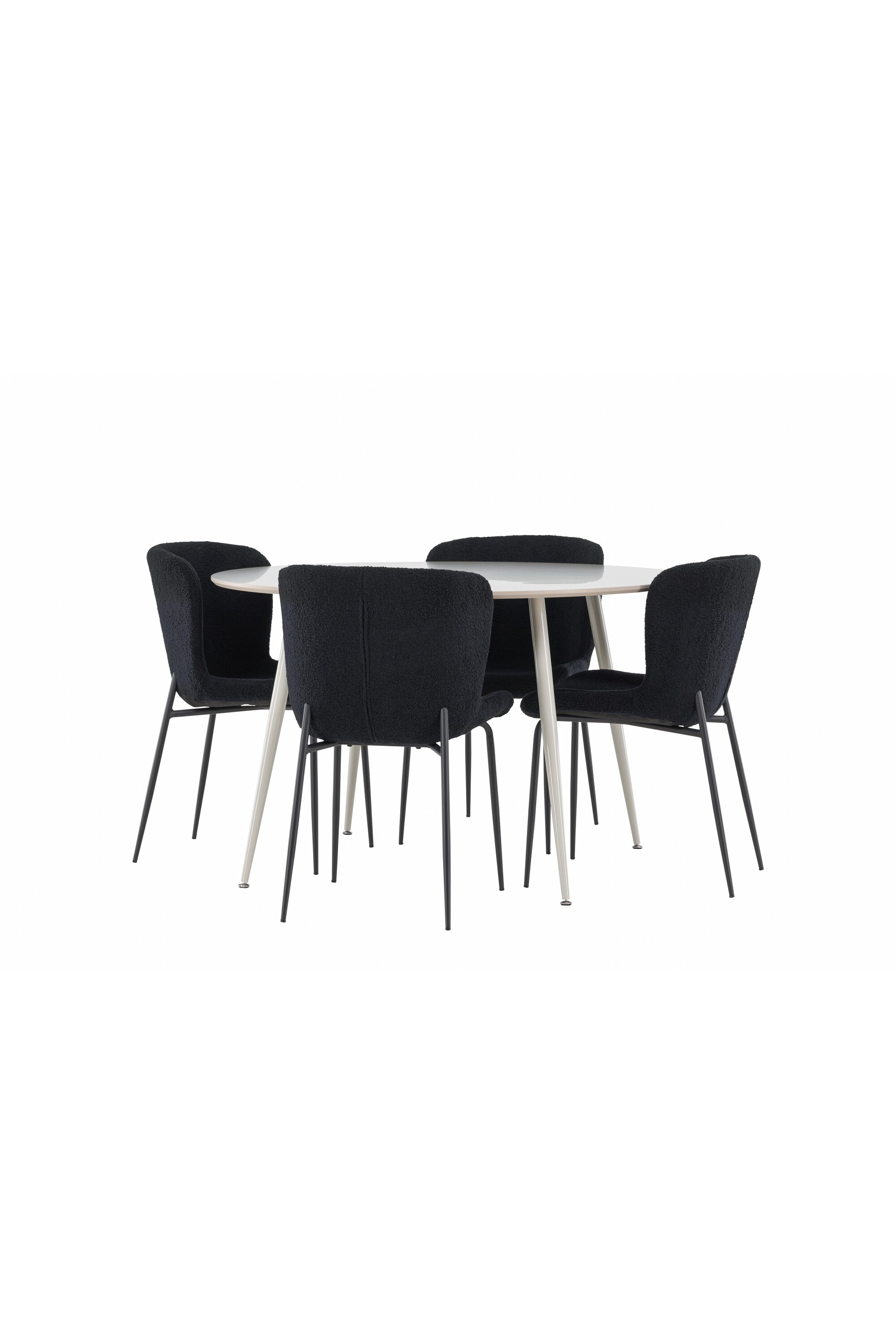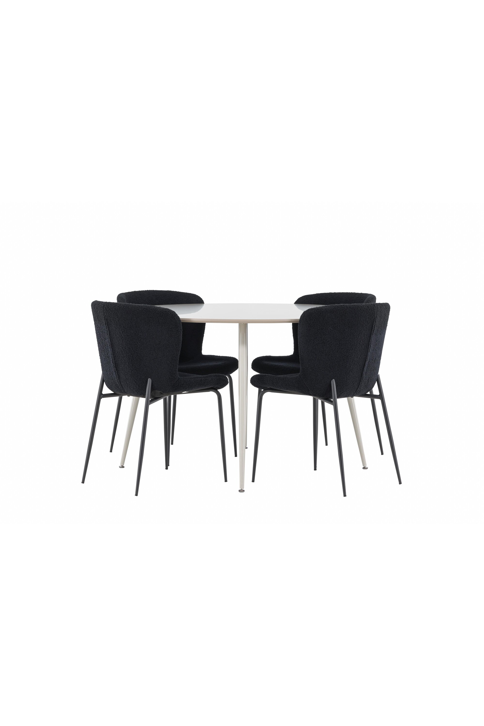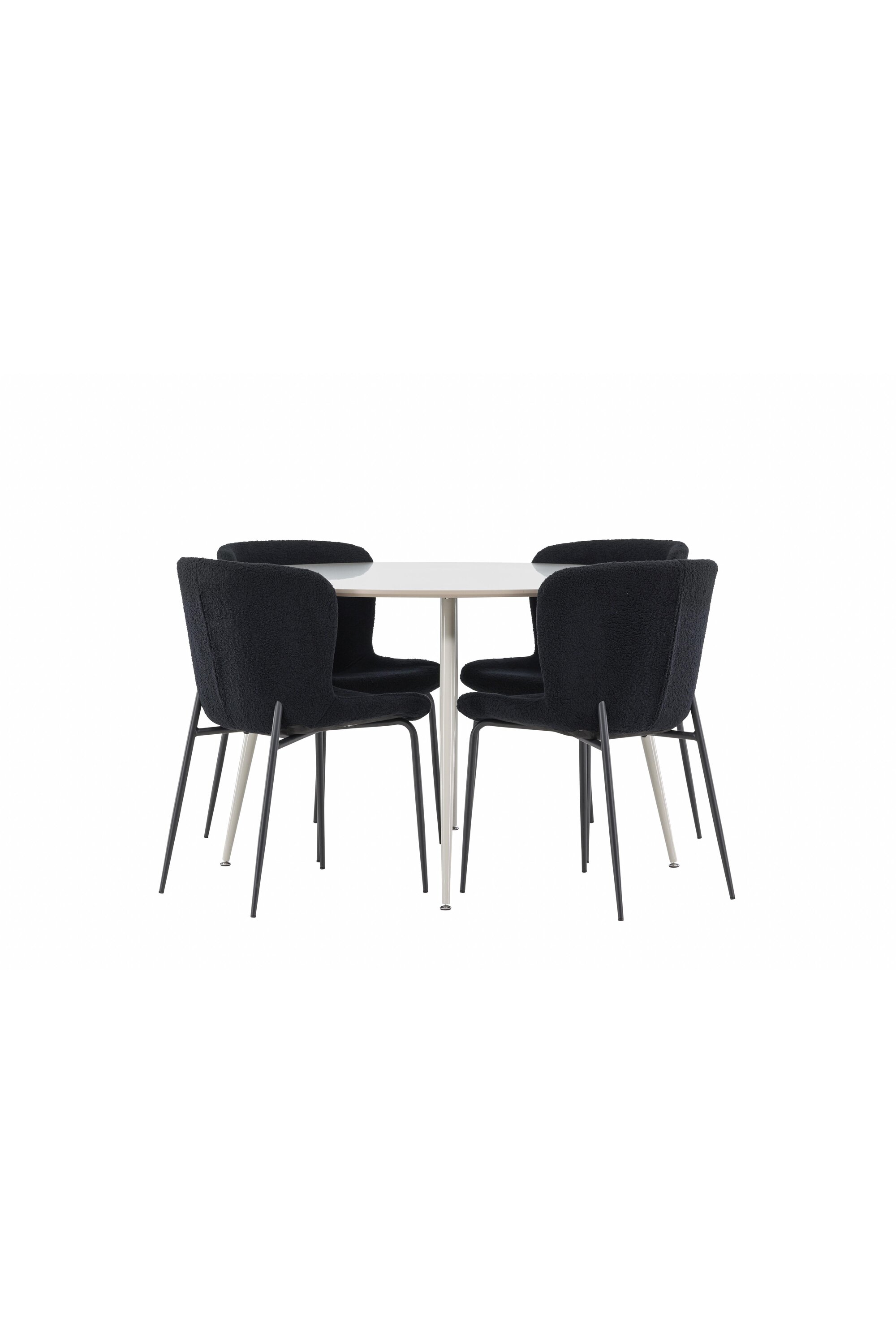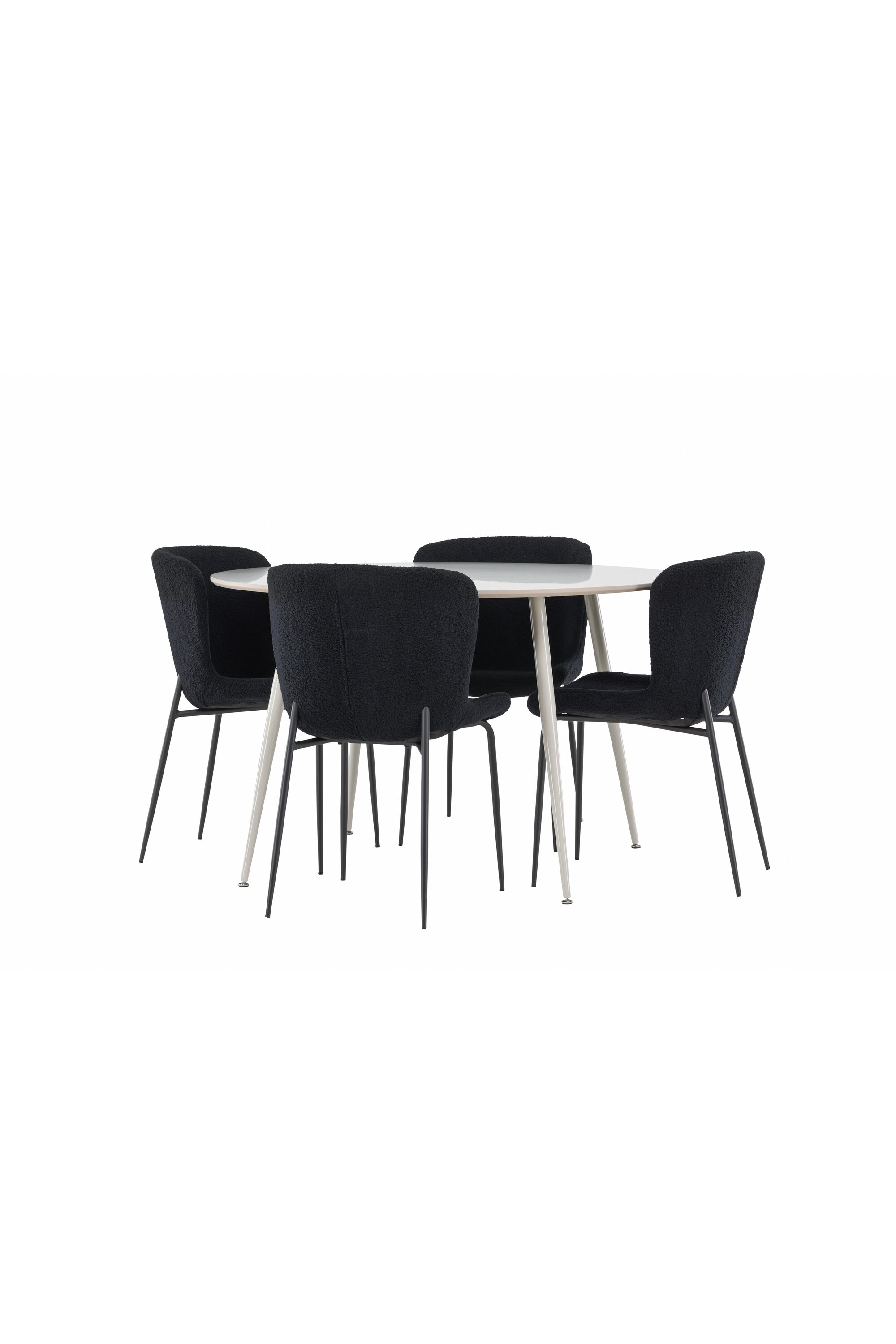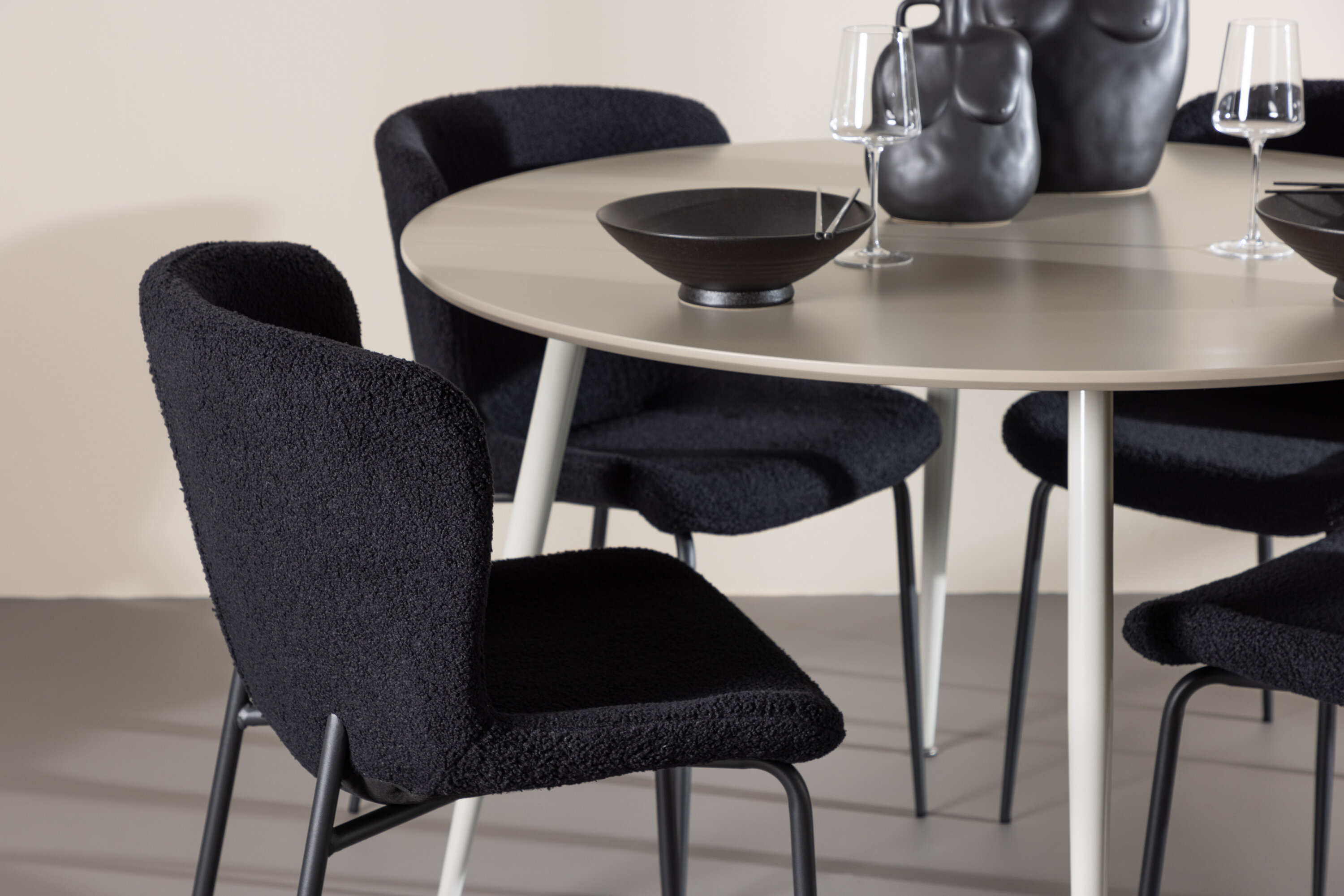 Andke oma söögitoale kaasaegne ja täiustatud uuendus meie elegantse söögikomplektiga, mis ühendab stiilse Plaza laua luksuslike Modesto toolidega. See söögikomplekt, mis sobib ideaalselt nii igapäevaseks õhtusöögiks kui ka erilistel puhkudel, loob teie koju kutsuva ja elegantse atmosfääri. MDF-plaadist Plaza laud on helebeeži värvi, mis lisab teie söögitoale pehme ja sooja tunde. Rikkaliku 120 cm läbimõõduga laud pakub palju ruumi söögiks ja vestlusteks, samas kui selle ümar kuju aitab luua harmoonilist ja tasakaalustatud keskkonda. Laua tugev konstruktsioon tagab vastupidavuse ja stabiilsuse pikaajaliseks kasutamiseks. Neli Modesto tooli on polsterdatud elegantse musta värvi pehme ja mugava polüesterkarussiga. Need toolid pakuvad mugavuse ja stiili kombinatsiooni, muutes need ideaalseks pikaks ja meeldivaks einetamiseks pere ja sõpradega. Nende kaasaegne disain koos kõrgete seljatugede ja luksuslike istmetega annavad teie söögitoale rafineeritud ja kaasaegse ilme. See söögikomplekt on täiuslik segu esteetikast ja funktsionaalsusest, mistõttu on see suurepärane valik neile, kes otsivad elegantset ja mugavat söögituba. Täiustage oma söögituba Plaza laua ja Modesto toolide stiilse kombinatsiooniga ning looge koht, kus jagatakse mälestusi ja rõõmu.