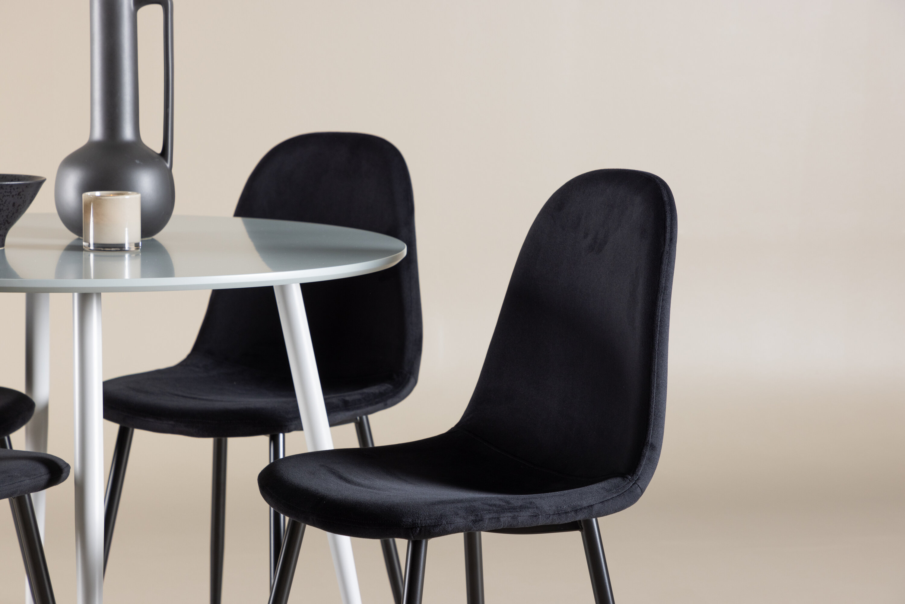 Looge stiilne ja kutsuv söögituba meie elegantse söögikomplektiga, mis ühendab kaasaegse Plaza laua luksuslike Polari toolidega. See söögikomplekt sobib suurepäraselt nii igapäevasteks õhtusöökideks kui ka pidulikel puhkudel, andes teie söögitoale peene ja kaasaegse atmosfääri. Plaza laud on valmistatud MDF-st ja sellel on elegantne hall värv, mis annab teie söögitoale kaasaegse ja stiilse tunde. 100 cm läbimõõduga laud pakub rohkelt ruumi einestamiseks ja vestluseks, samas kui ümar kuju loob harmoonilise ja kutsuva keskkonna. Laua tugev konstruktsioon tagab pikaajalise kasutamise ja stabiilsuse. Neli Polari tooli täiendavad lauda suurepäraselt oma elegantsete musta sametiga polsterdatud istmetega. Need toolid pakuvad nii mugavust kui ka stiili, muutes need ideaalseks pikaks ja nauditavaks õhtusöögiks pere ja sõpradega. Nende kaasaegne disain koos kõrgete seljatugede ja pehmete istmetega annab teie söögitoale luksusliku ja peene ilme. See söögikomplekt on täiuslik segu esteetikast ja funktsionaalsusest, mistõttu on see suurepärane valik neile, kes otsivad elegantset ja mugavat söögituba. Täiustage oma söögituba Plaza laua ja Polari toolide stiilse kombinatsiooniga ning looge koht, kus jagatakse mälestusi ja rõõmu.