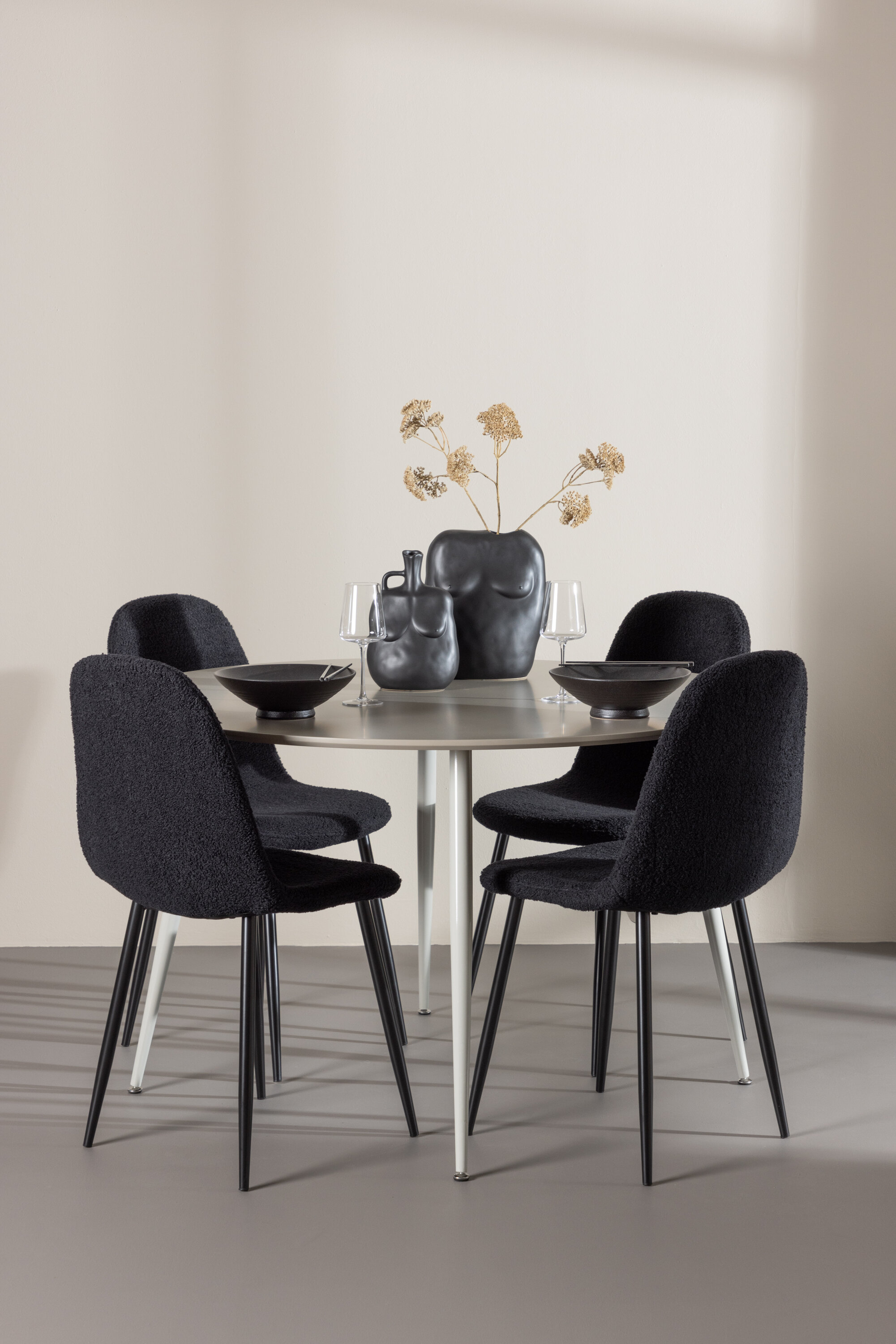 Andke oma söögitoale kaasaegne ja täiustatud uuendus meie elegantse söögikomplektiga, mis ühendab stiilse Plaza laua luksuslike Polari toolidega. See söögikomplekt, mis sobib ideaalselt nii igapäevaseks õhtusöögiks kui ka erilistel puhkudel, loob teie koju kutsuva ja elegantse atmosfääri. MDF-plaadist Plaza laud on helebeeži värvi, mis lisab teie söögitoale pehme ja sooja tunde. Rikkaliku 120 cm läbimõõduga laud pakub palju ruumi söögiks ja vestlusteks, samas kui selle ümar kuju aitab luua harmoonilist ja tasakaalustatud keskkonda. Laua tugev konstruktsioon tagab vastupidavuse ja stabiilsuse pikaajaliseks kasutamiseks. Neli Polari tooli on polsterdatud elegantse musta värvi pehme ja mugava polüesterkarussiga. Need toolid pakuvad mugavuse ja stiili kombinatsiooni, muutes need ideaalseks pikaks ja meeldivaks einetamiseks pere ja sõpradega. Nende kaasaegne disain koos kõrgete seljatugede ja luksuslike istmetega annavad teie söögitoale rafineeritud ja kaasaegse ilme. See söögikomplekt on täiuslik segu esteetikast ja funktsionaalsusest, mistõttu on see suurepärane valik neile, kes otsivad elegantset ja mugavat söögituba. Täiustage oma söögituba Plaza laua ja Polari toolide stiilse kombinatsiooniga ning looge koht, kus jagatakse mälestusi ja rõõmu.