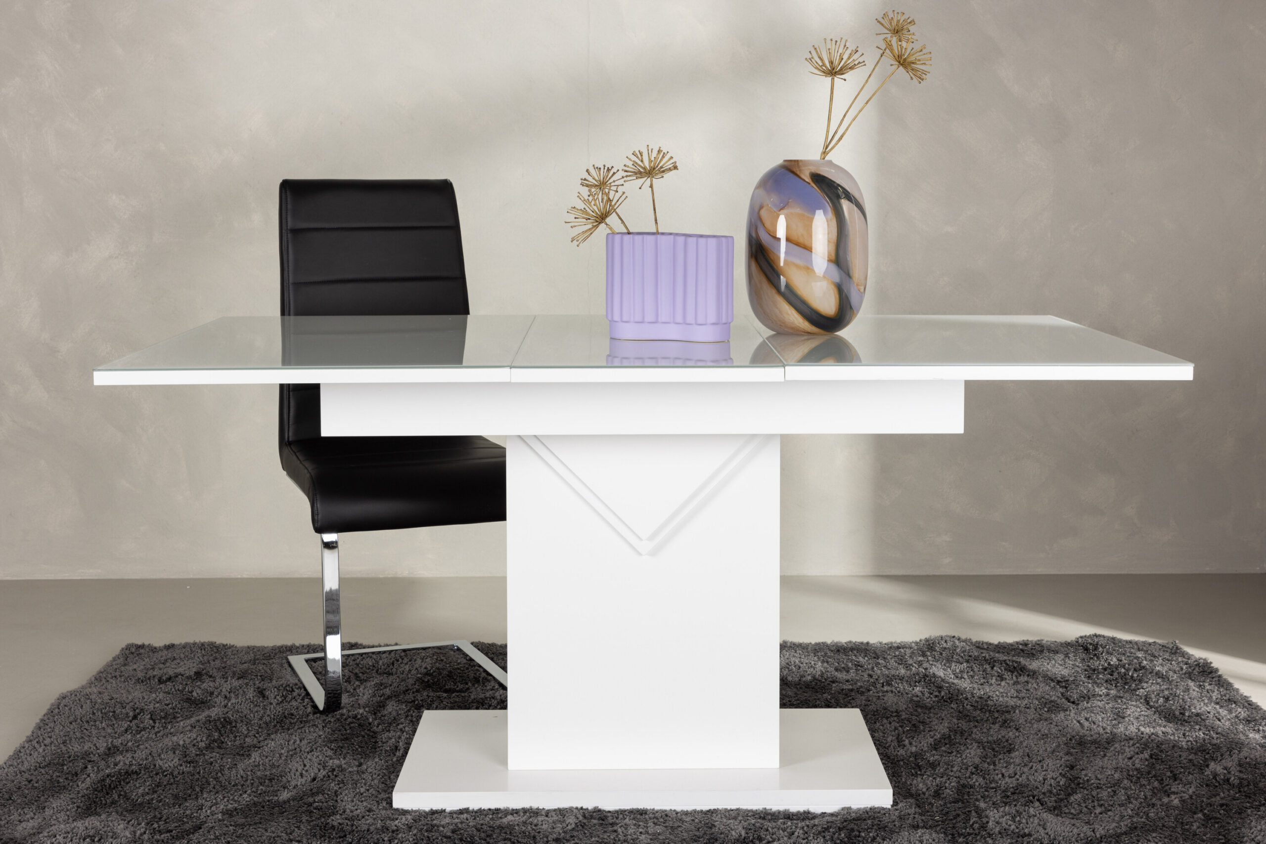 Elegantne ja pompoosne söögilaud Pluto seeriast on ehk just see, mida Sinu elutuba vajab! Lauaplaat on MDF-ist ja klaasist pealisplaadiga ning veermik on vastupidav ja keskele paigutatud. Laud on pikendatav, mistõttu sobib nii väikesele kui ka suuremale peole. Kutsu palju seltskondlikke hetki ees!